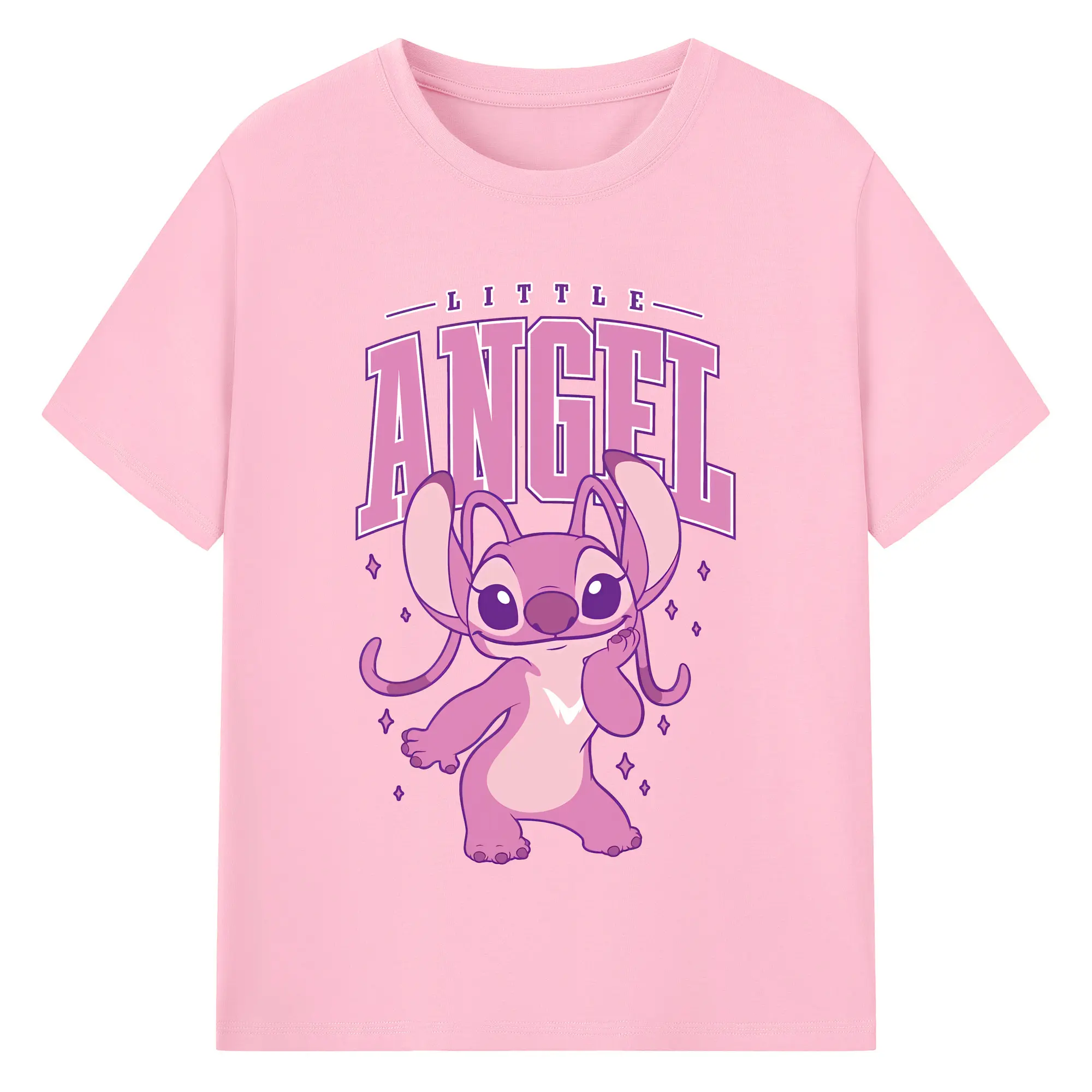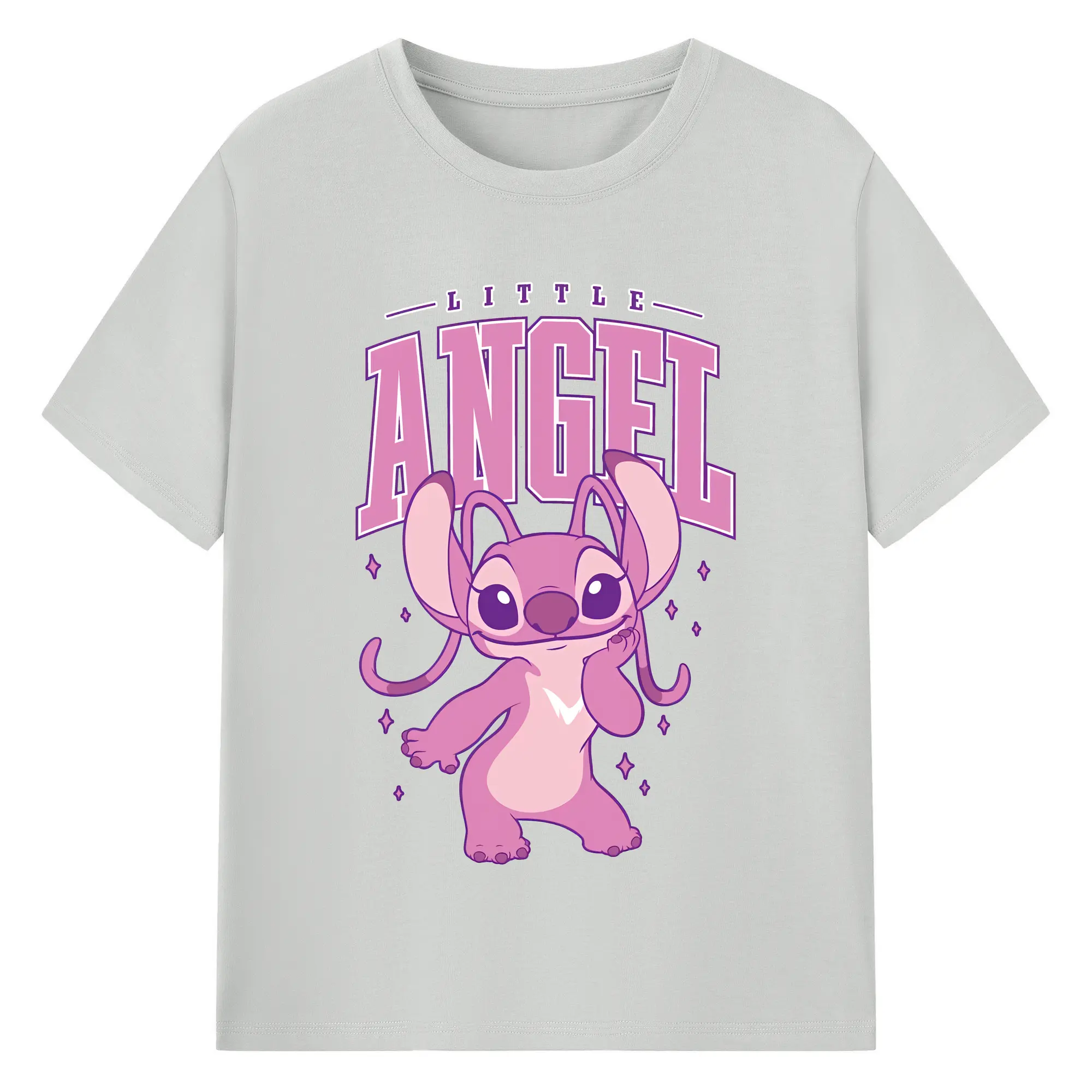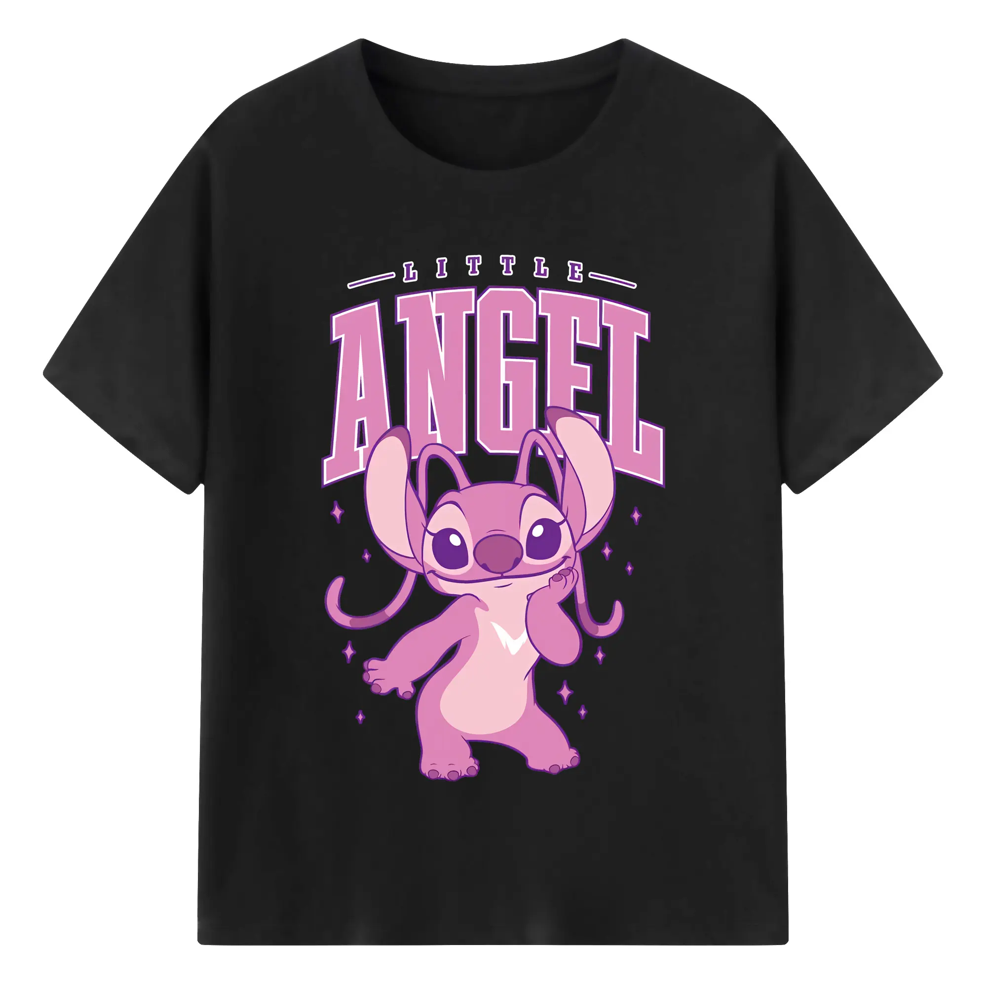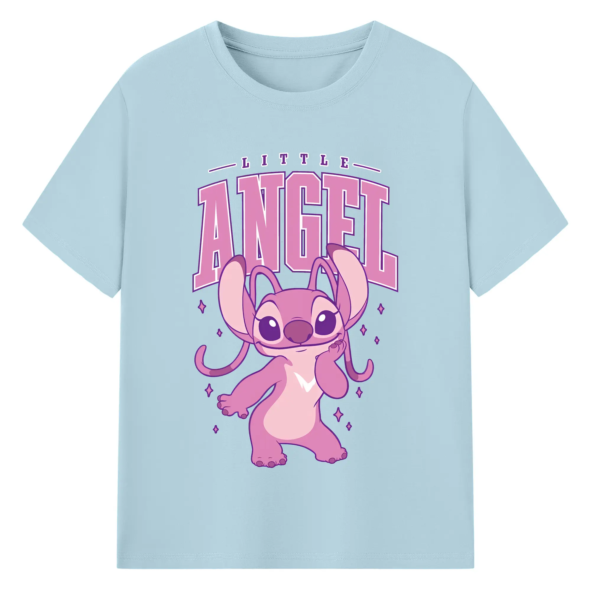 リロ&スティッチ グッズ エンジェル - 綿100% 半袖Tシャツ ・ バックプリント ・ 快適 通気性 ・ 日常使い 散歩 スポーツ用