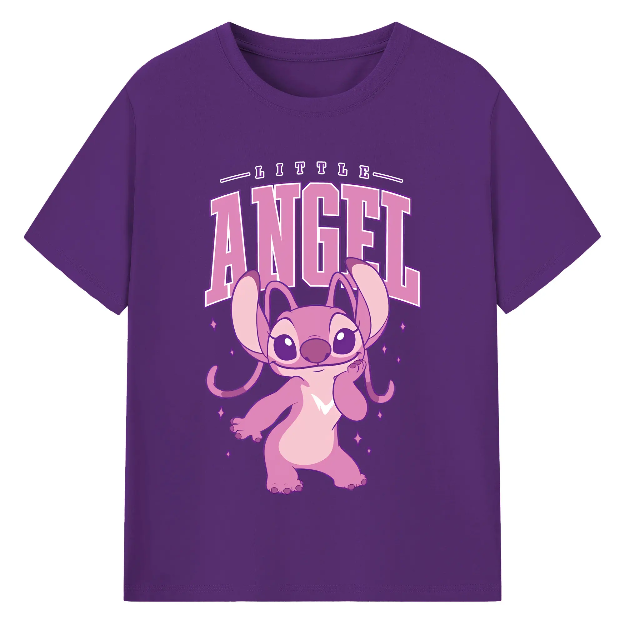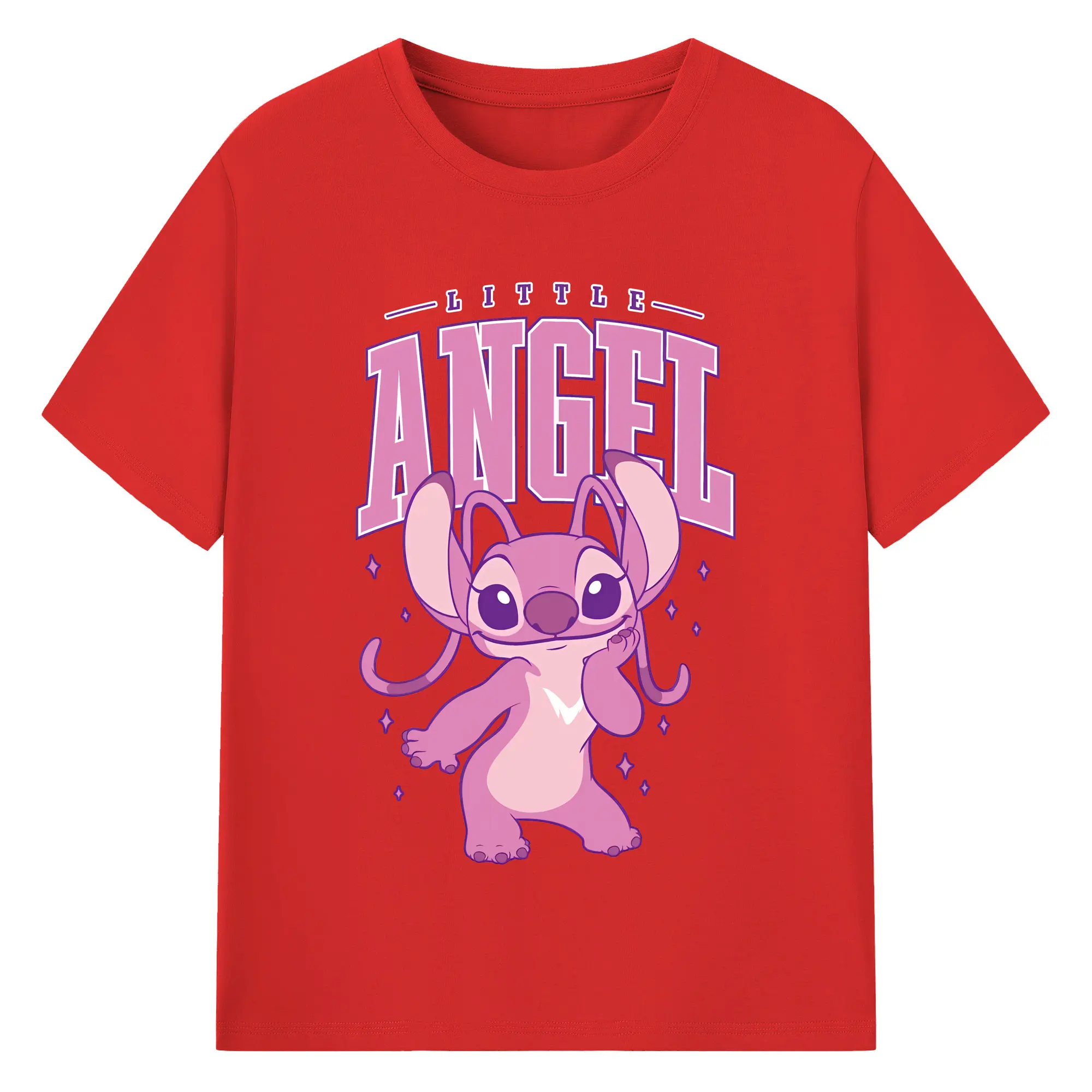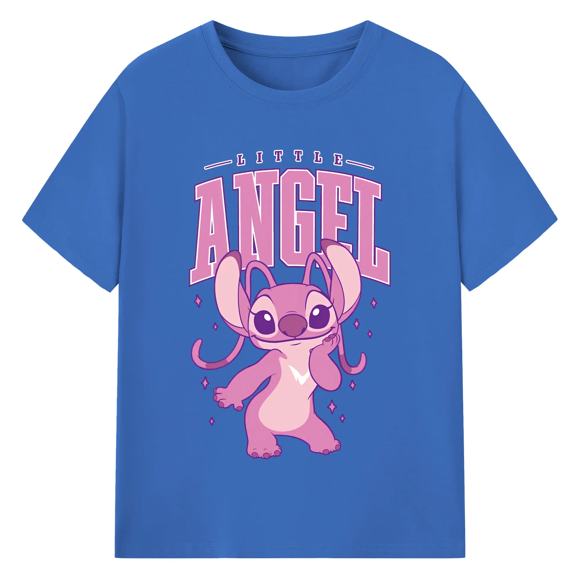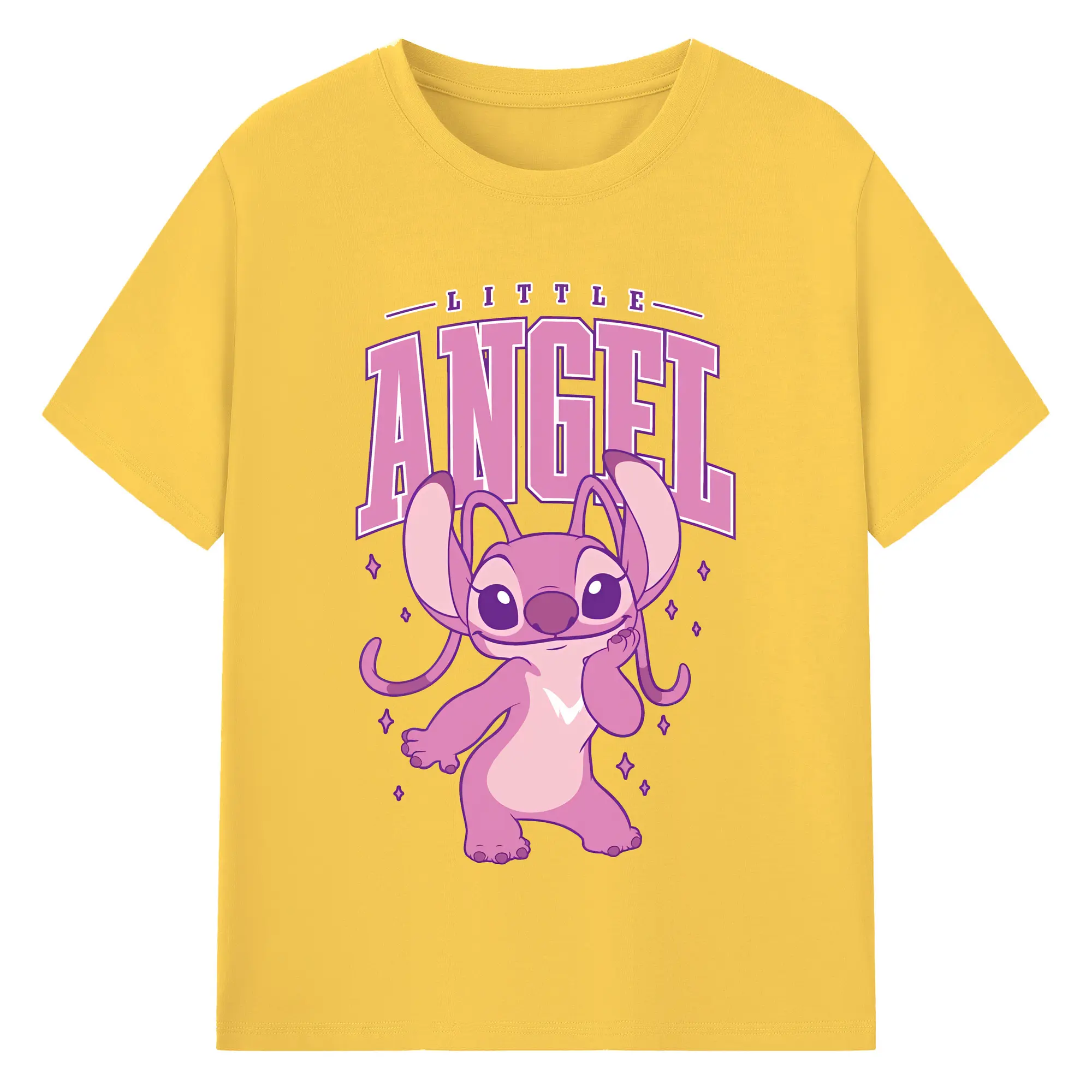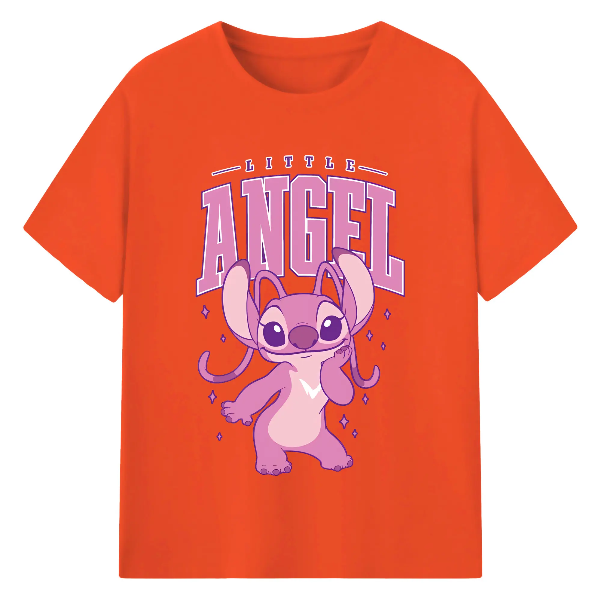 リロ&スティッチ グッズ エンジェル - 綿100% キッズTシャツ ・ フロントプリント ・ 快適 通気性 ・ スポーツ カジュアル 散歩用