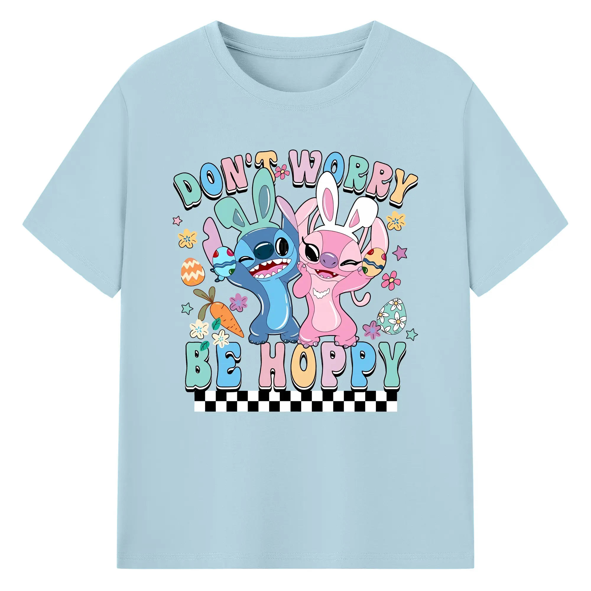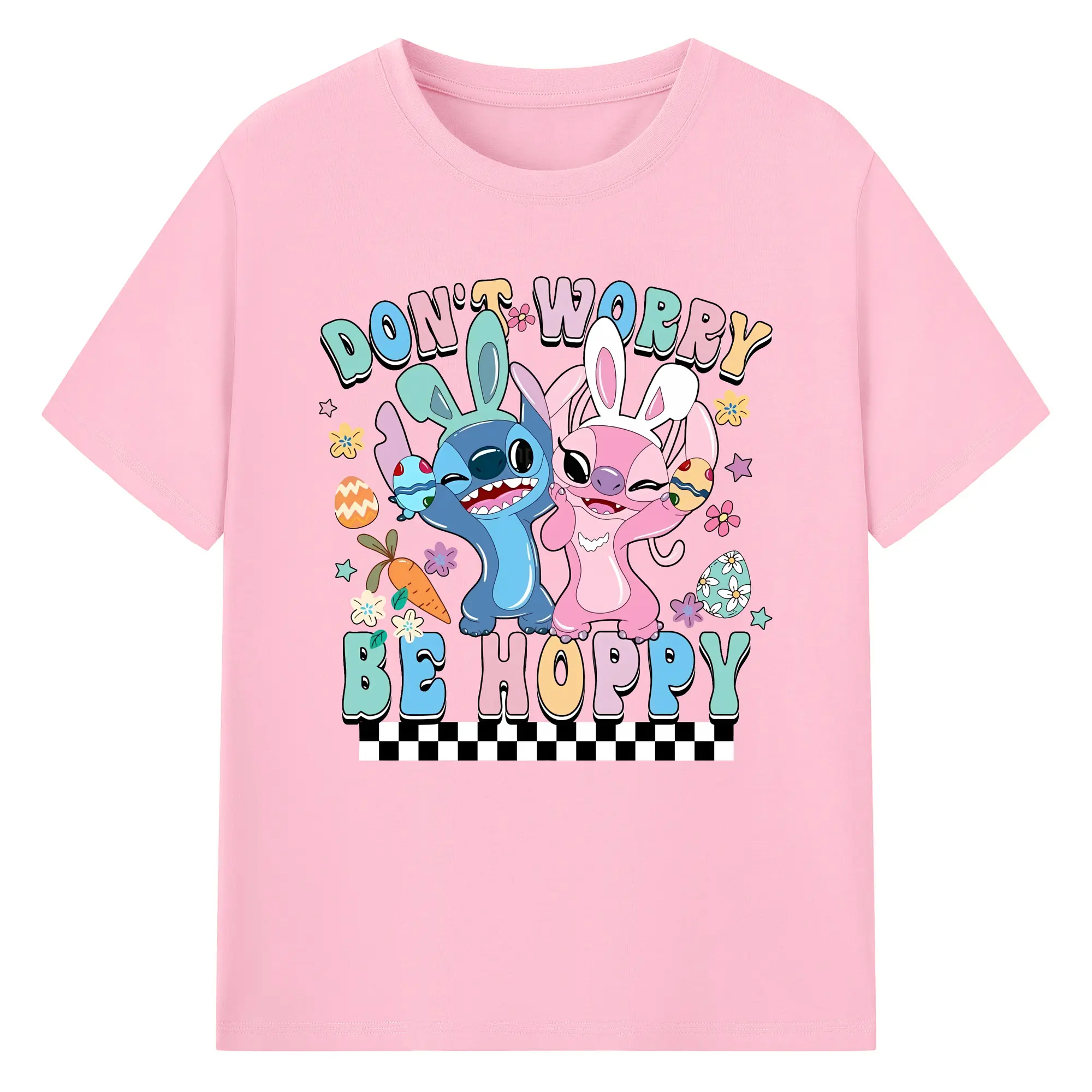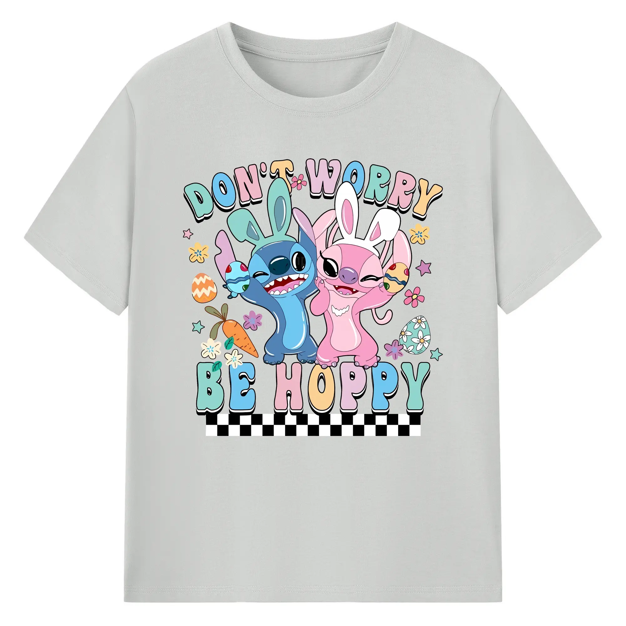 リロ&スティッチ グッズ エンジェル - 綿100% 半袖Tシャツ ・ バックプリント ・ 快適 通気性 ・ 日常使い 散歩 スポーツ用