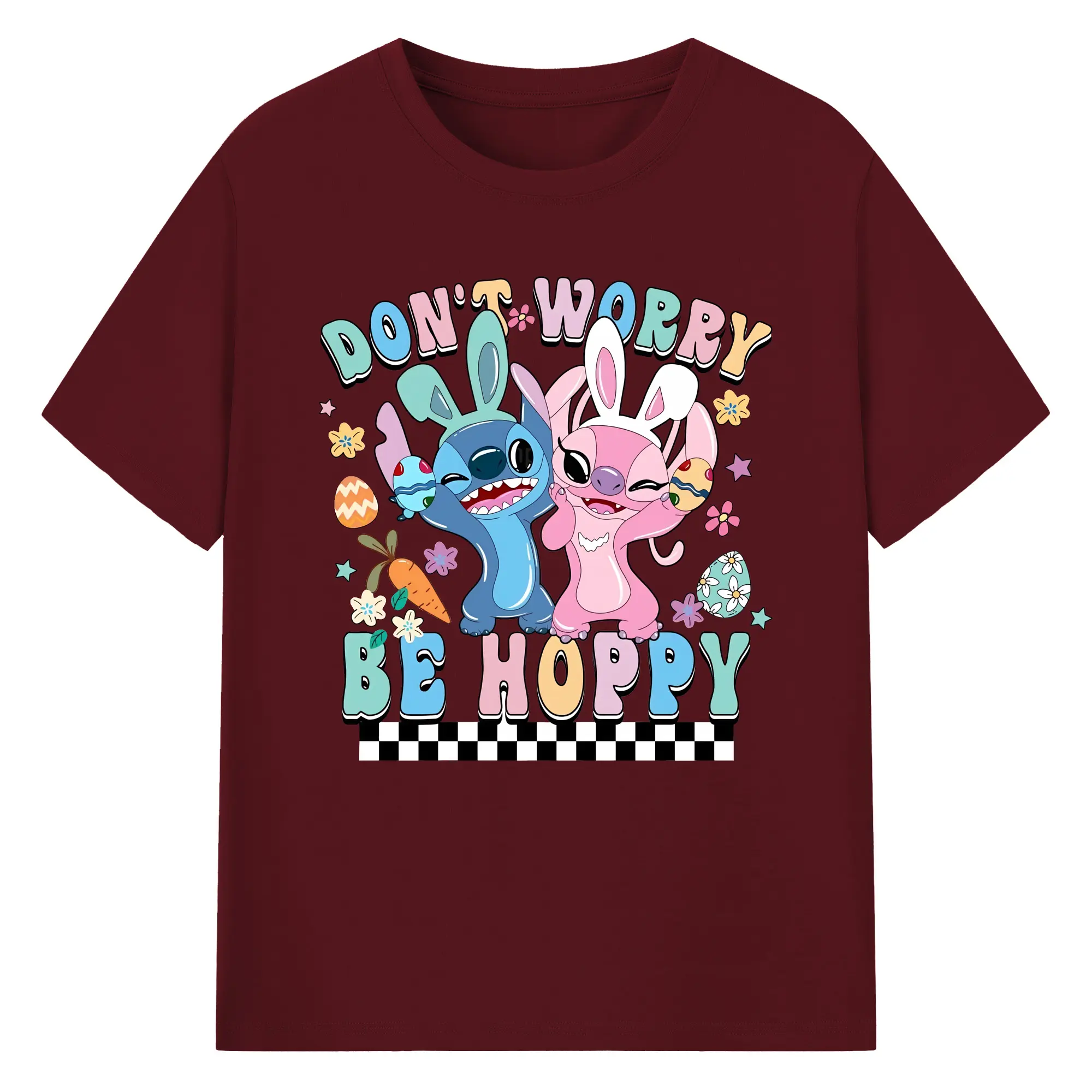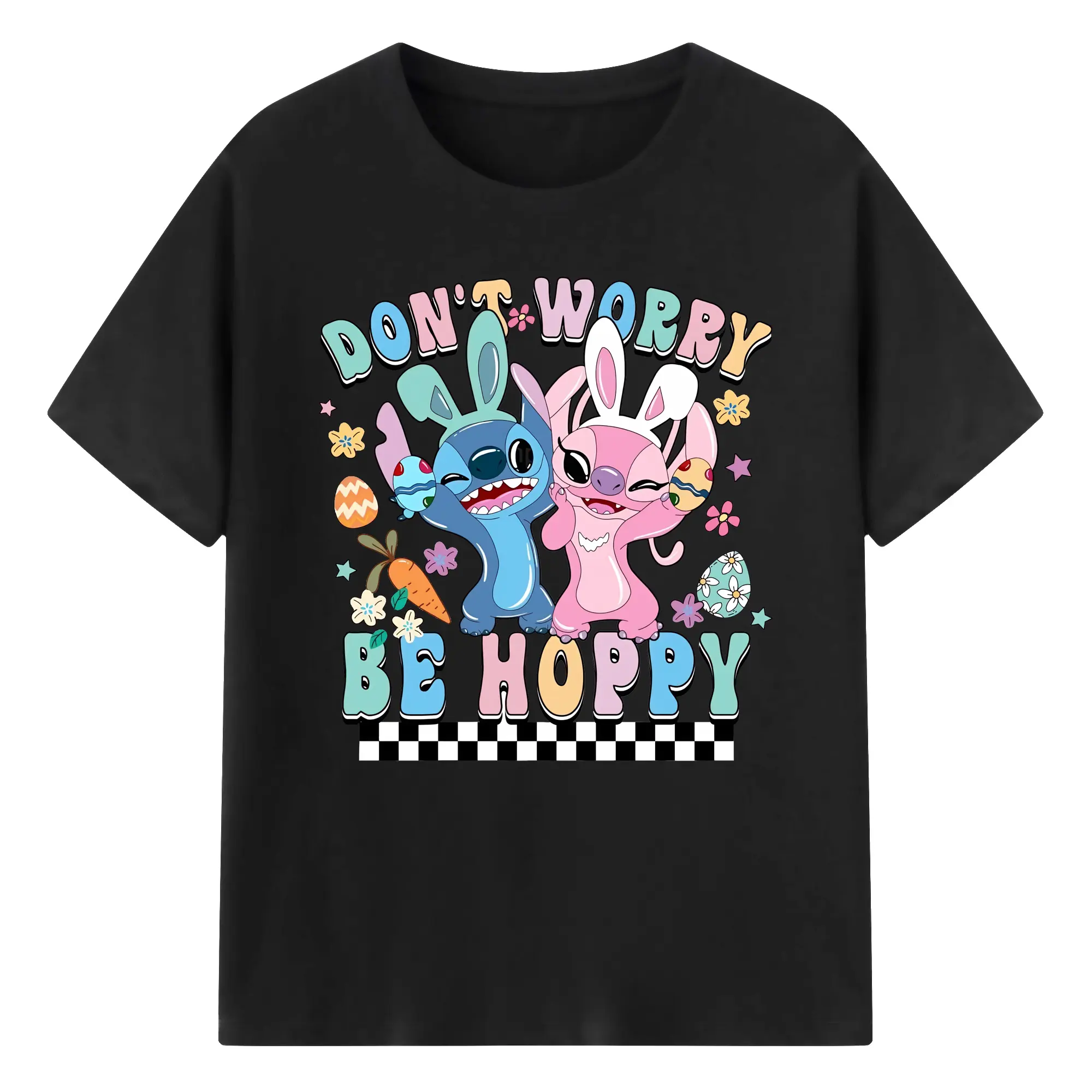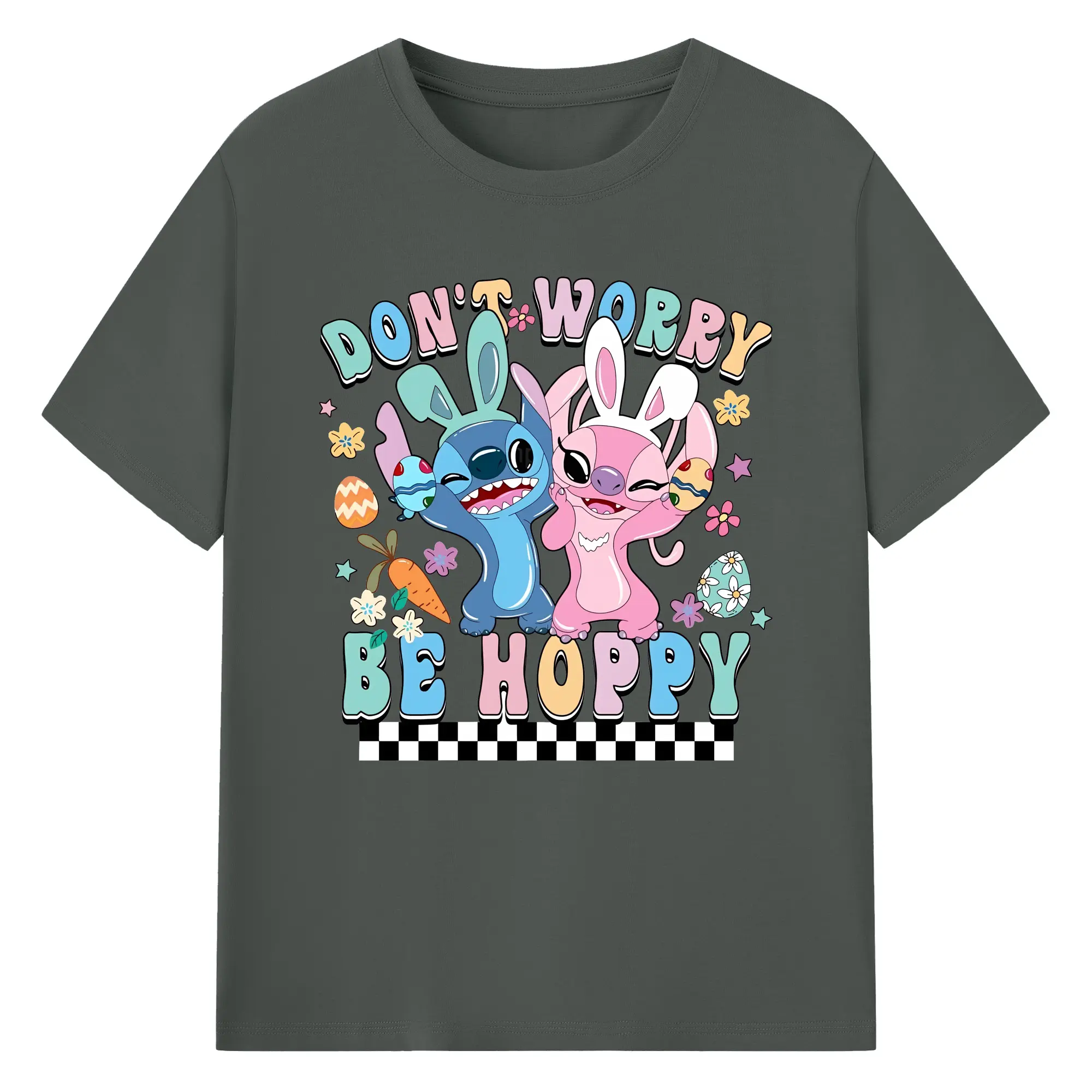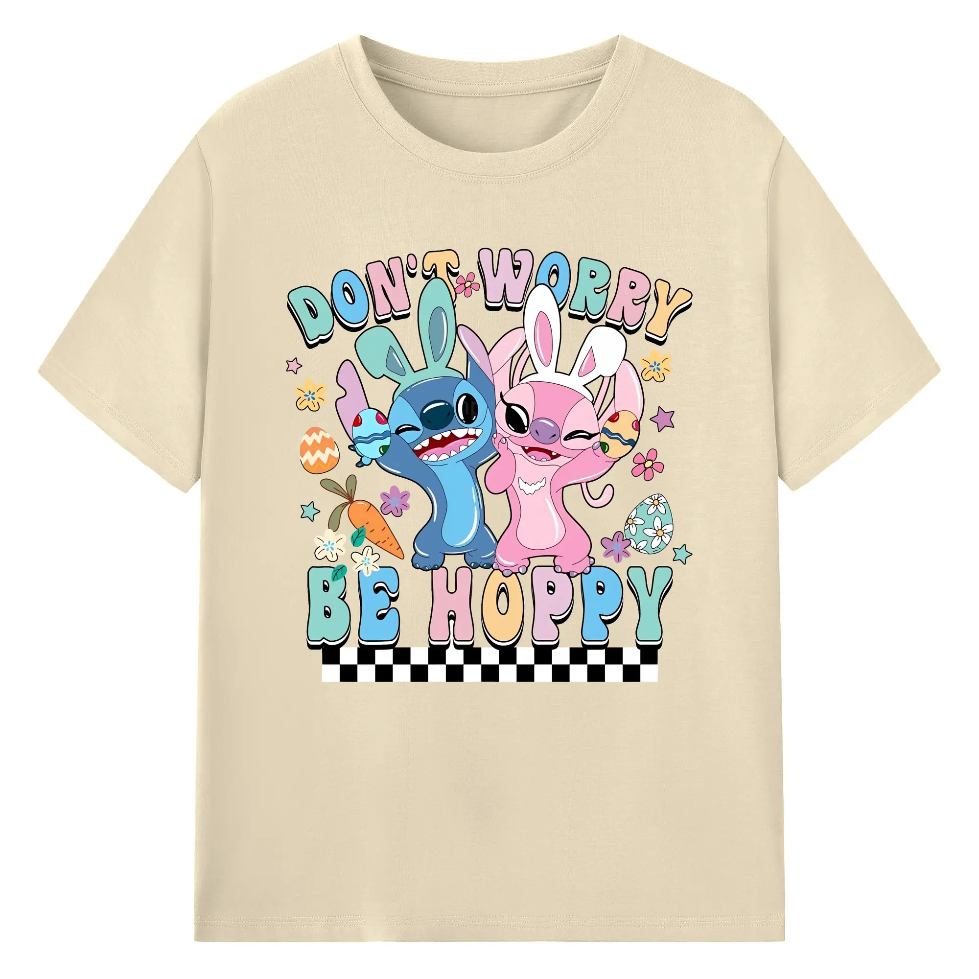 リロ&スティッチ グッズ エンジェル - 綿100% 半袖Tシャツ ・ バックプリント ・ 快適 通気性 ・ 日常使い 散歩 スポーツ用