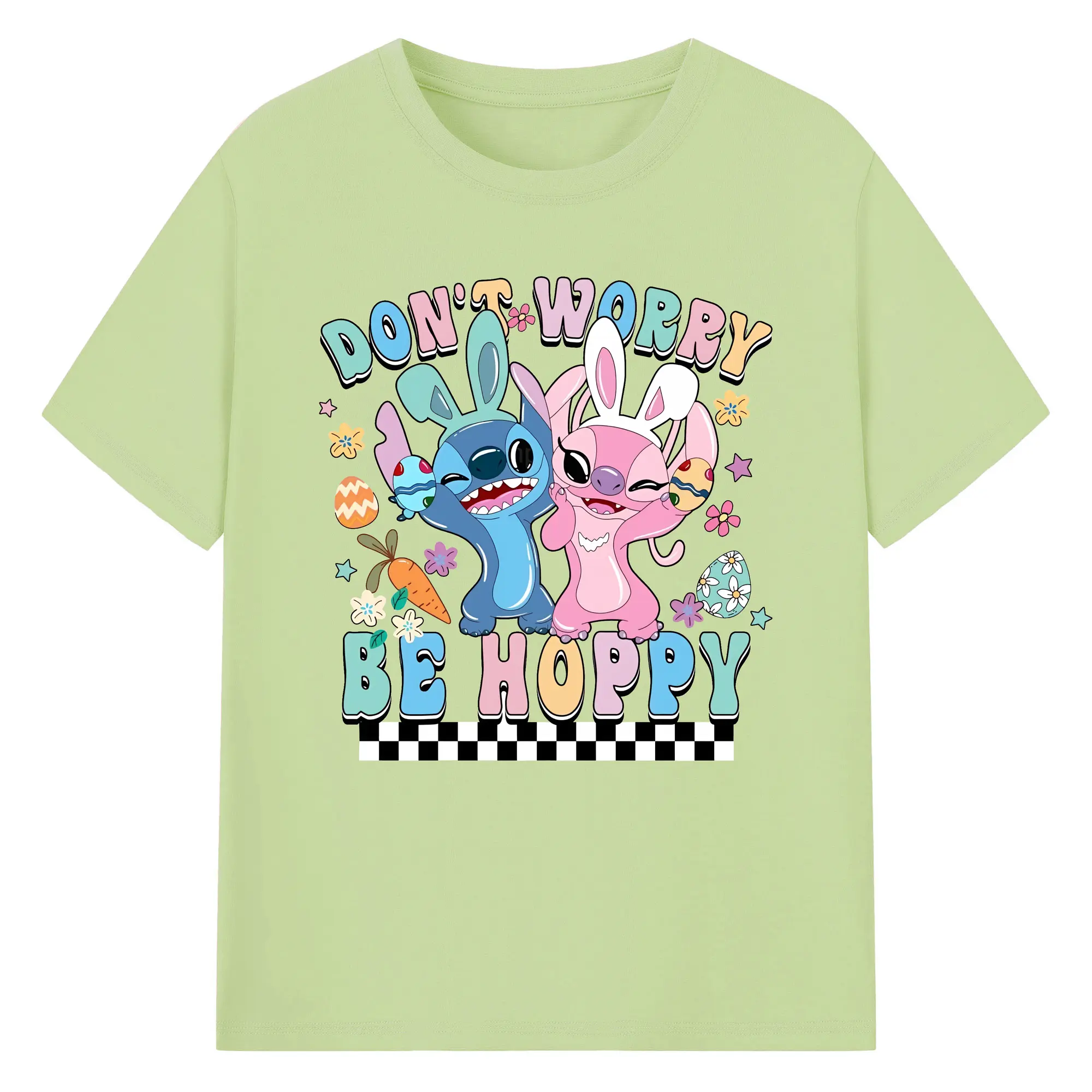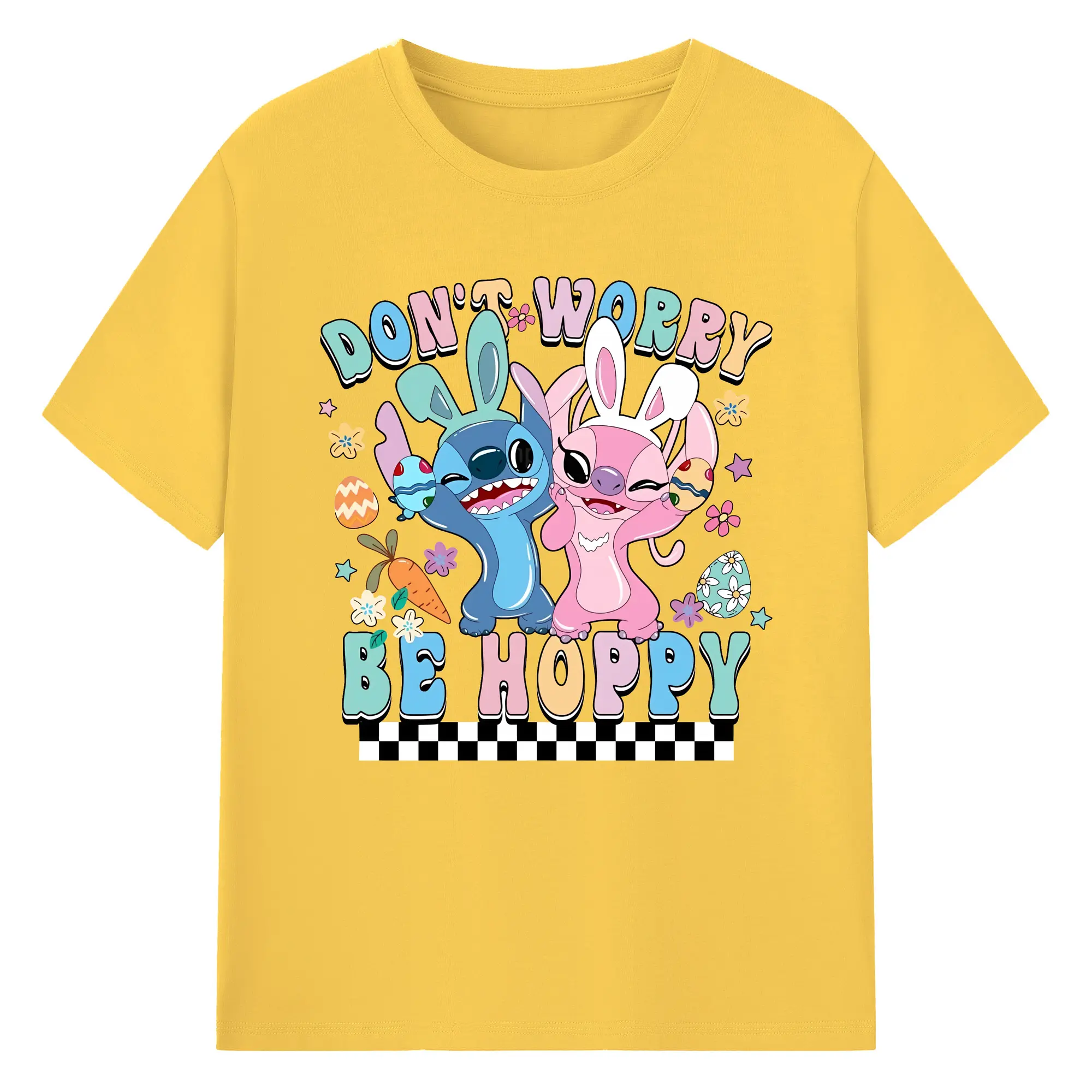 リロ&スティッチ グッズ エンジェル - 綿100% キッズTシャツ ・ フロントプリント ・ 快適 通気性 ・ スポーツ カジュアル 散歩用