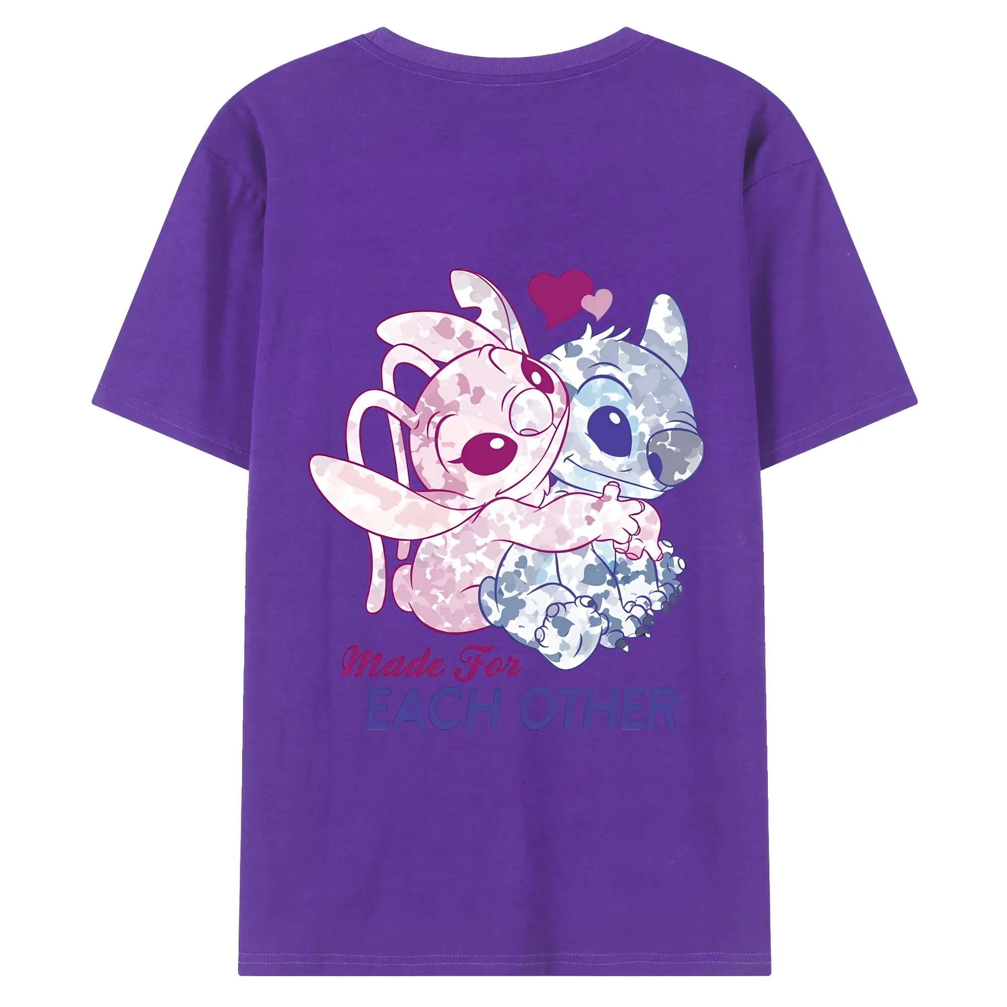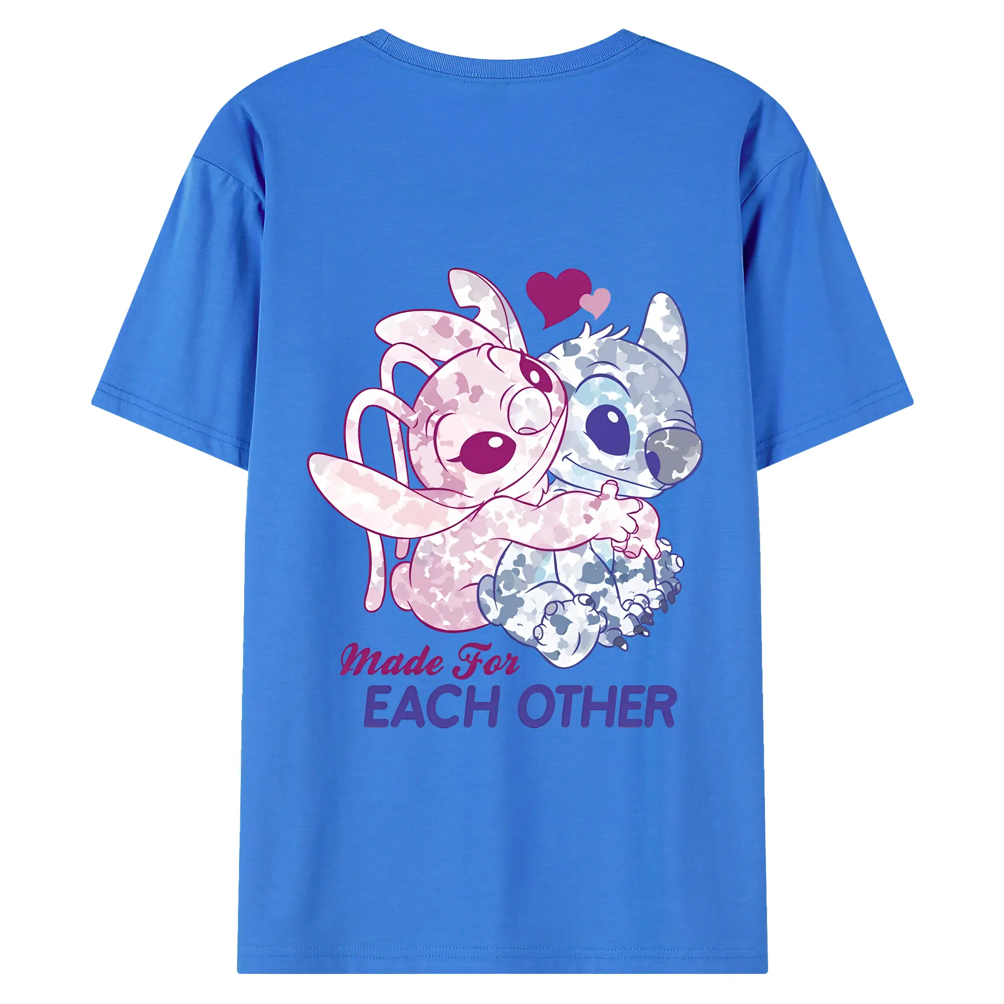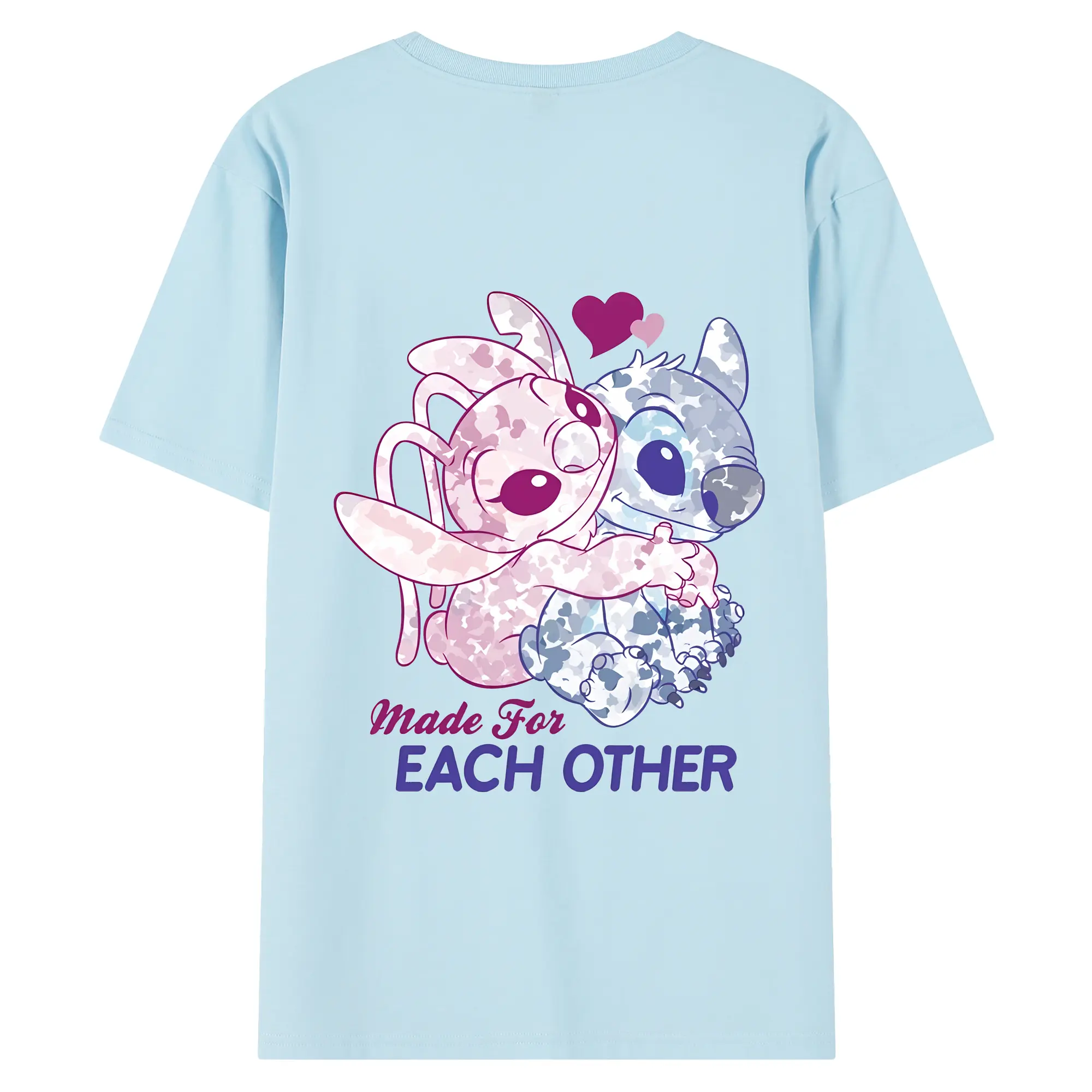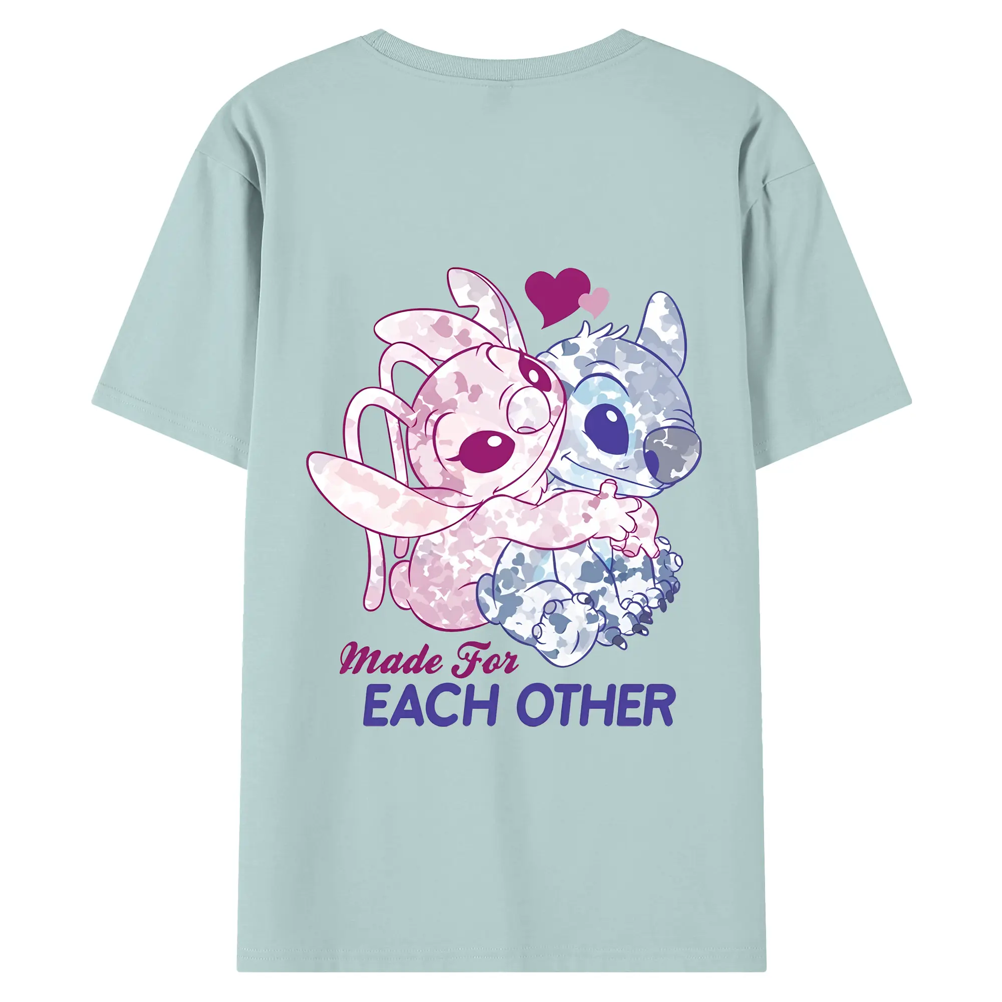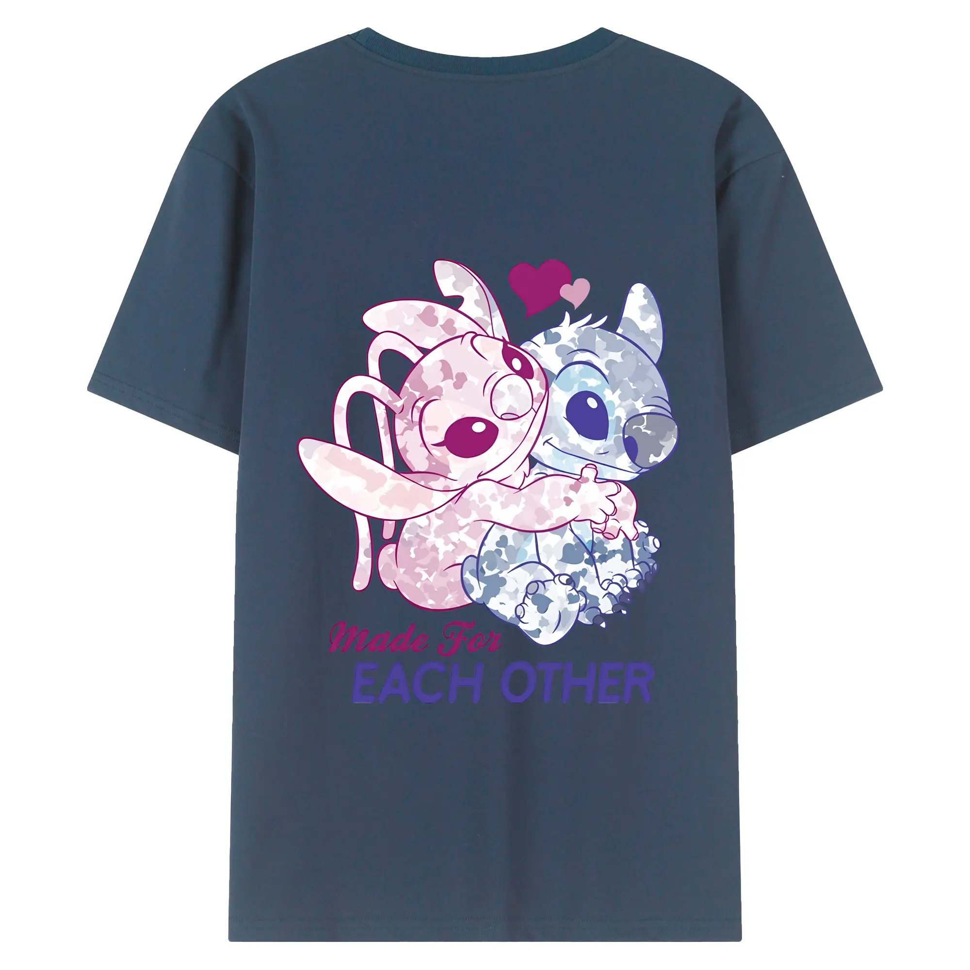 リロ&スティッチ グッズ エンジェル - 綿100% 半袖Tシャツ ・ フロントプリント ・ 快適 通気性 ・ 日常使い 散歩 スポーツ用