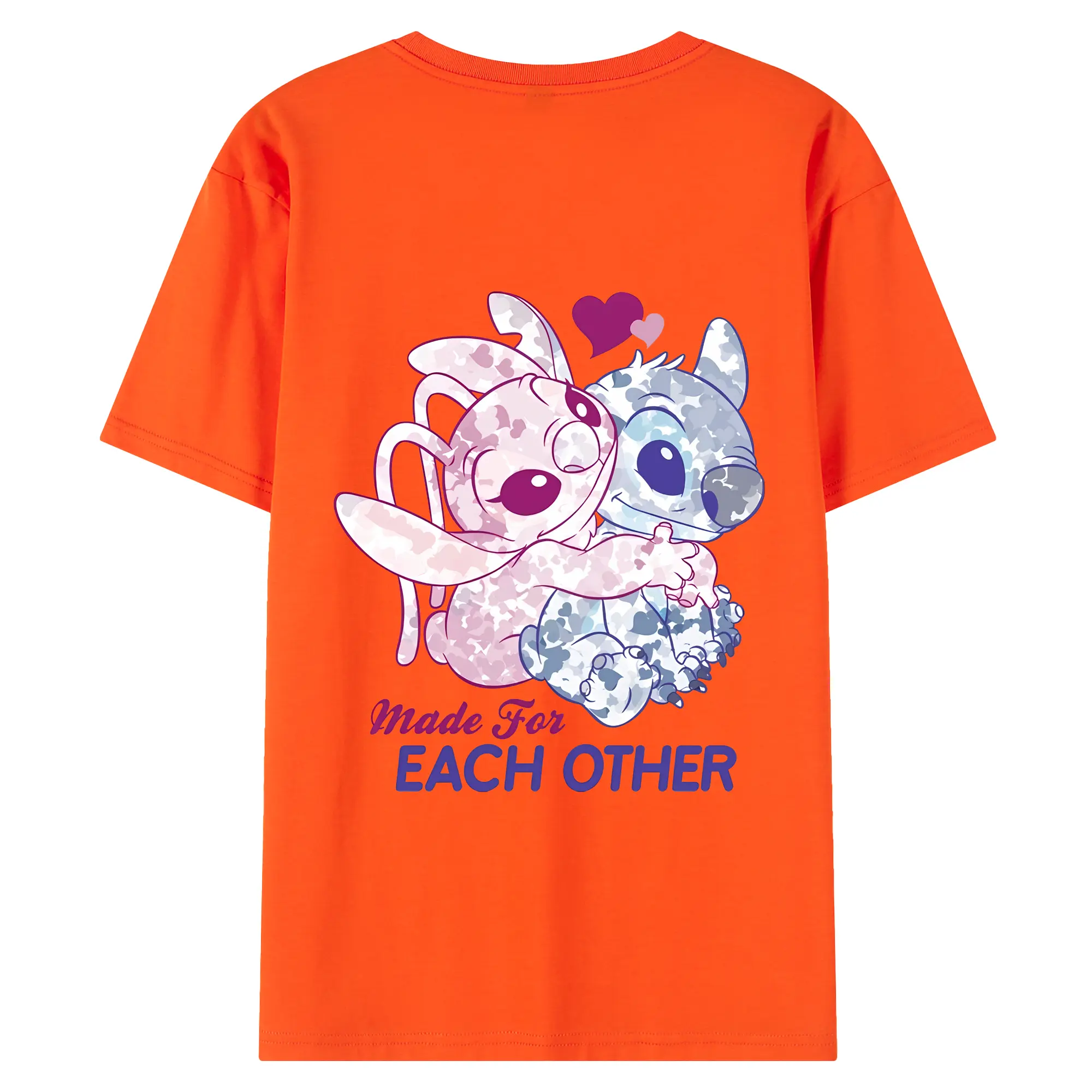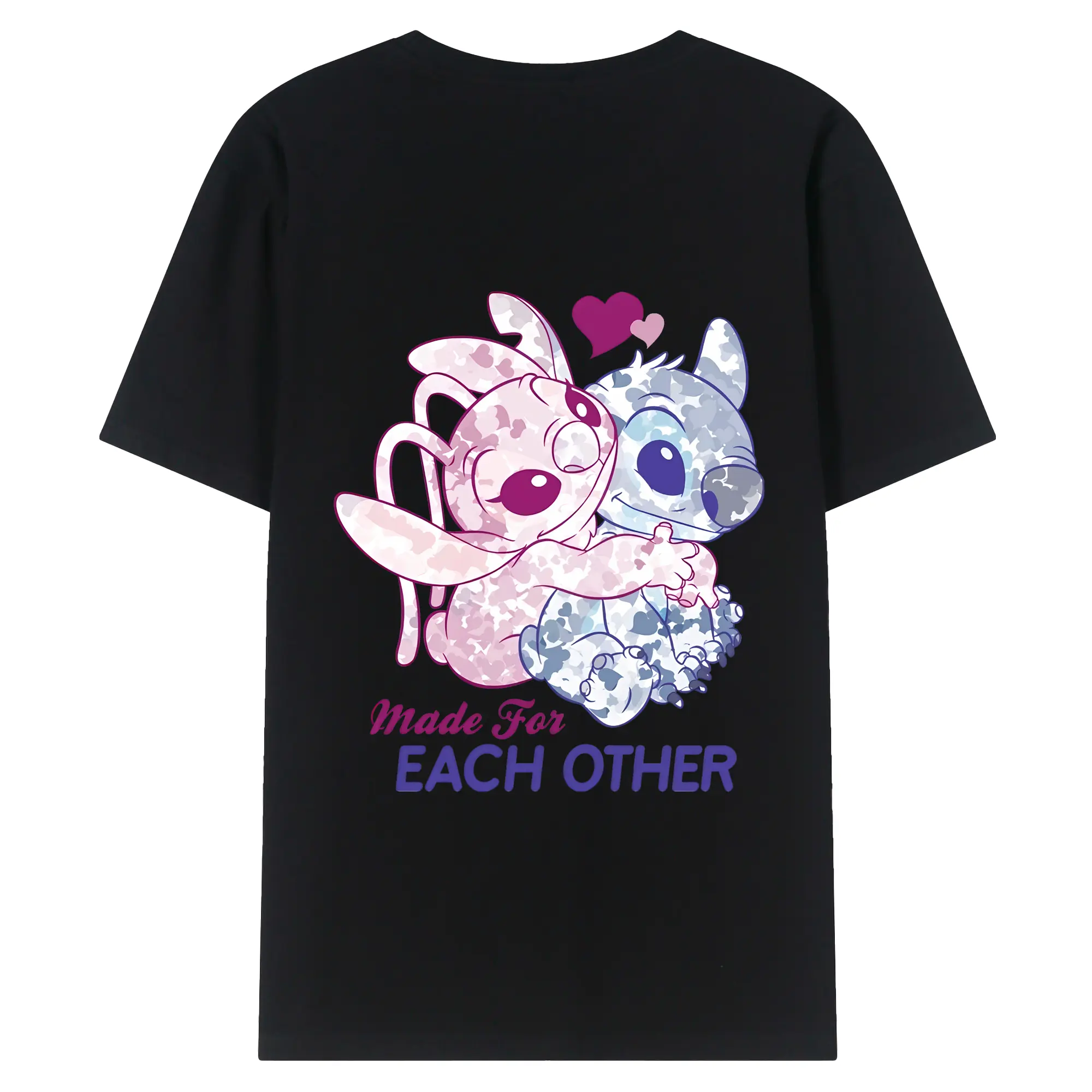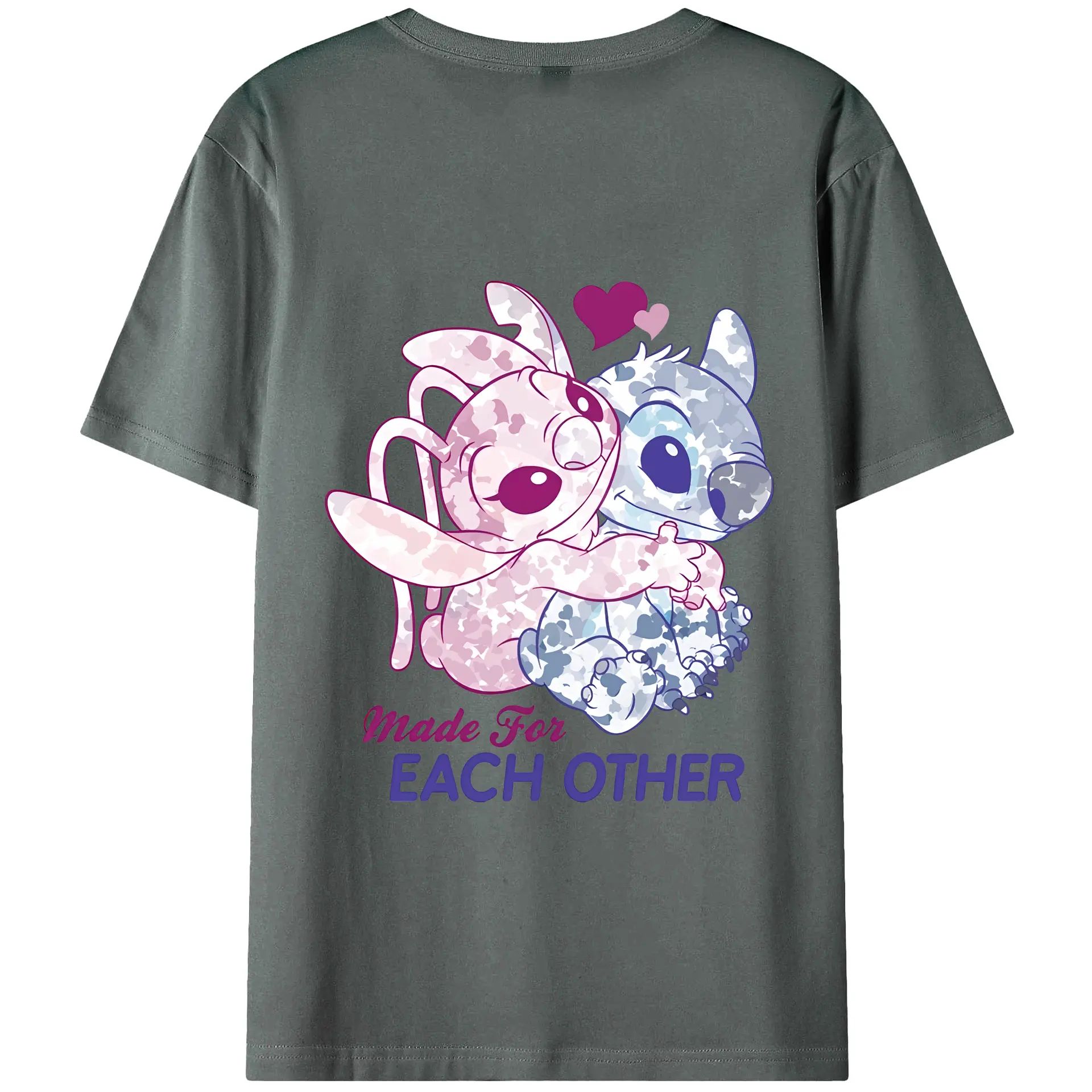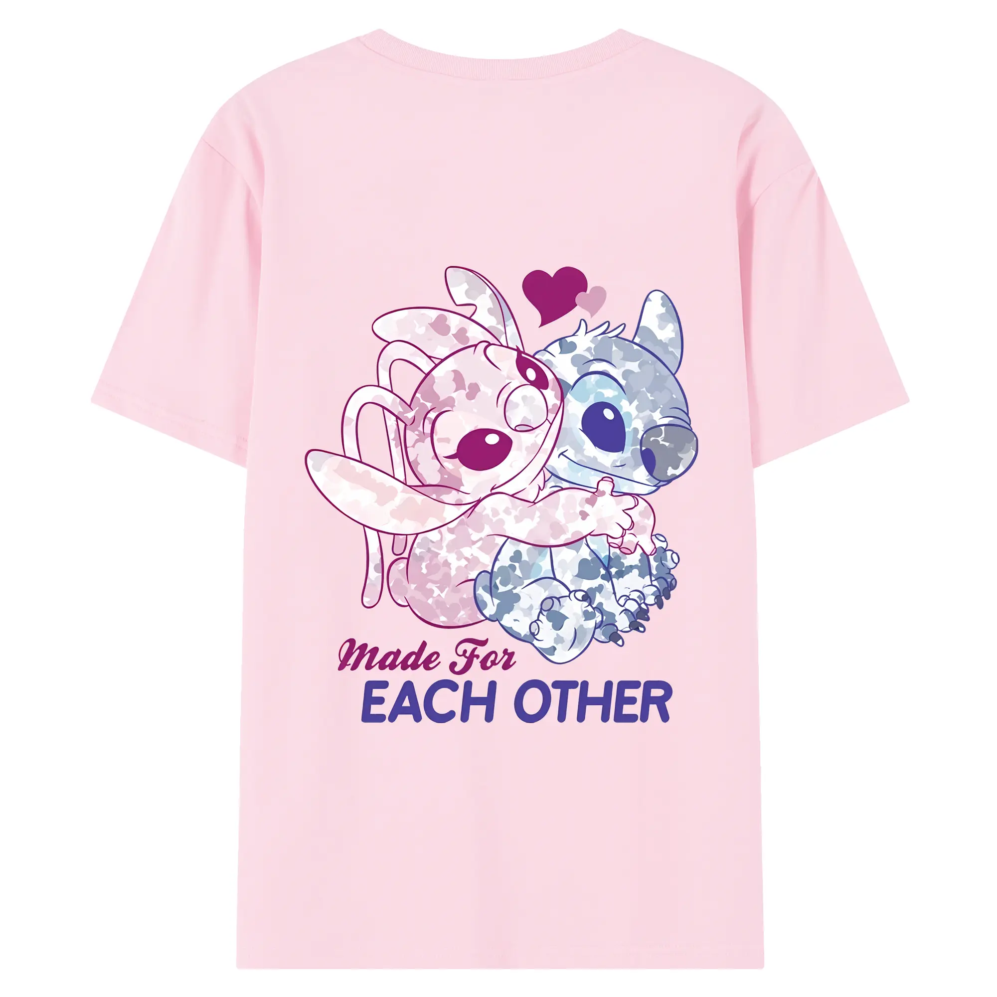 リロ&スティッチ グッズ エンジェル - 綿100% 半袖Tシャツ ・ フロントプリント ・ 快適 通気性 ・ 日常使い 散歩 スポーツ用