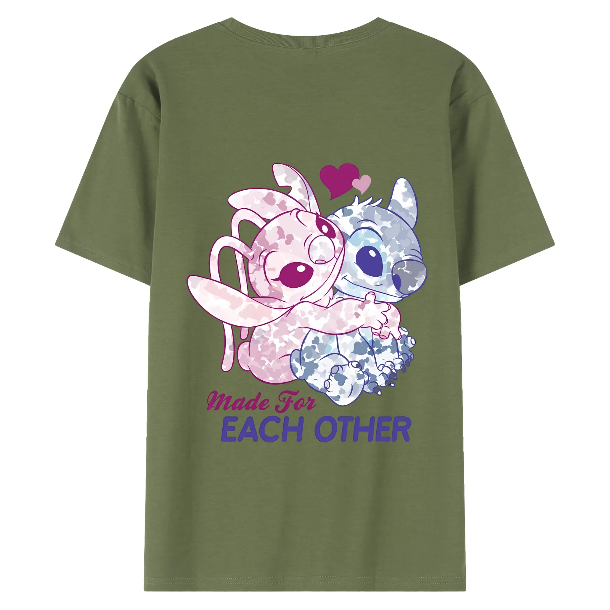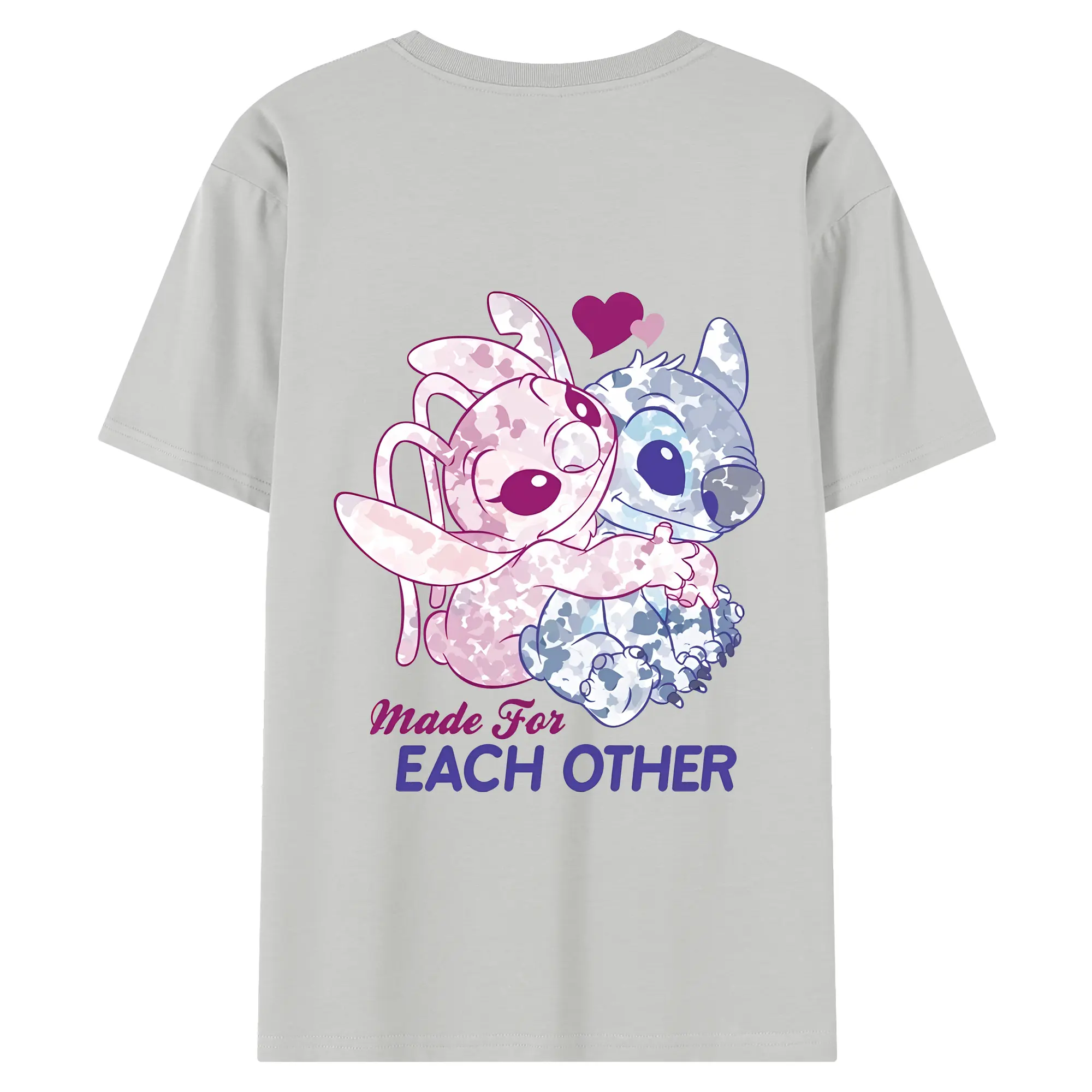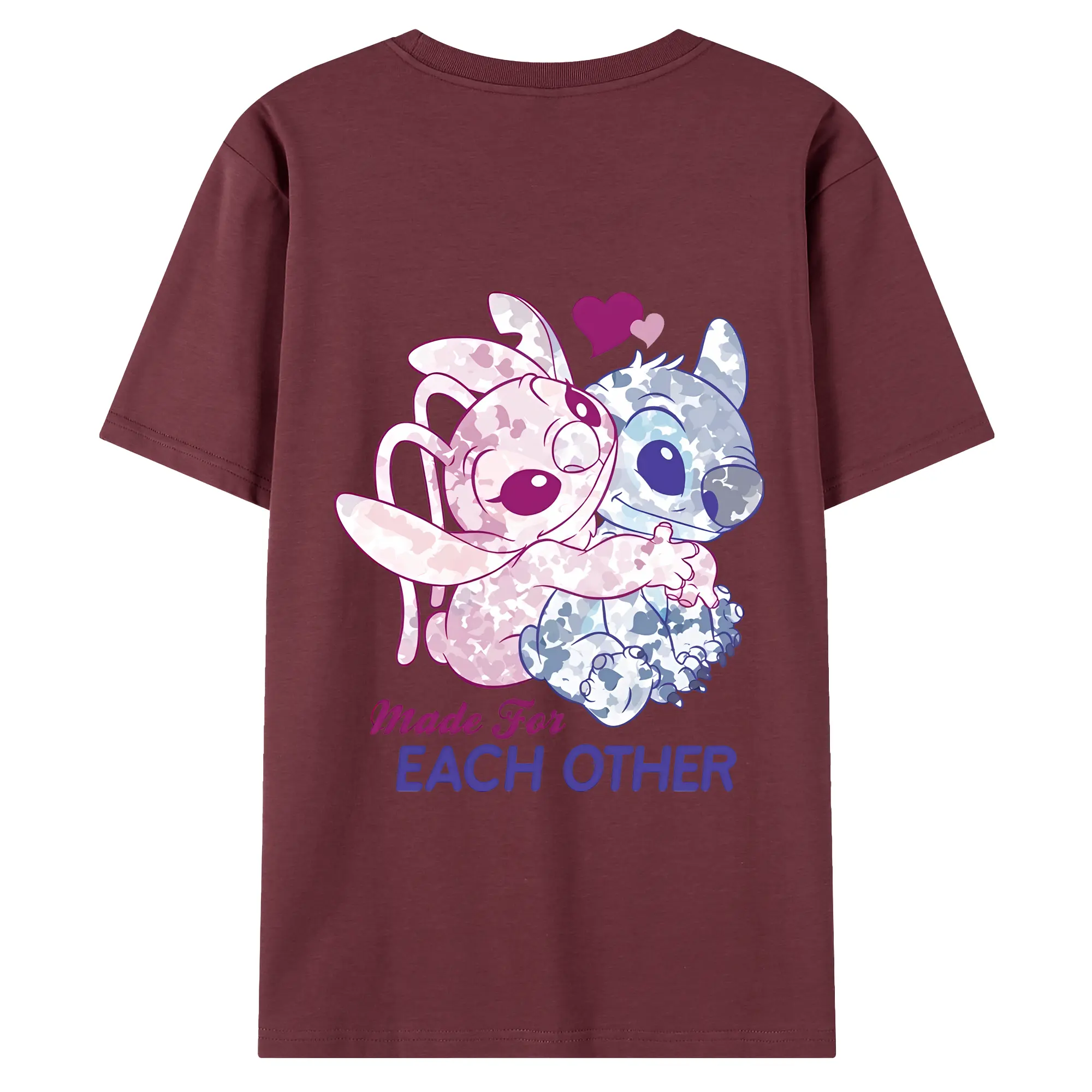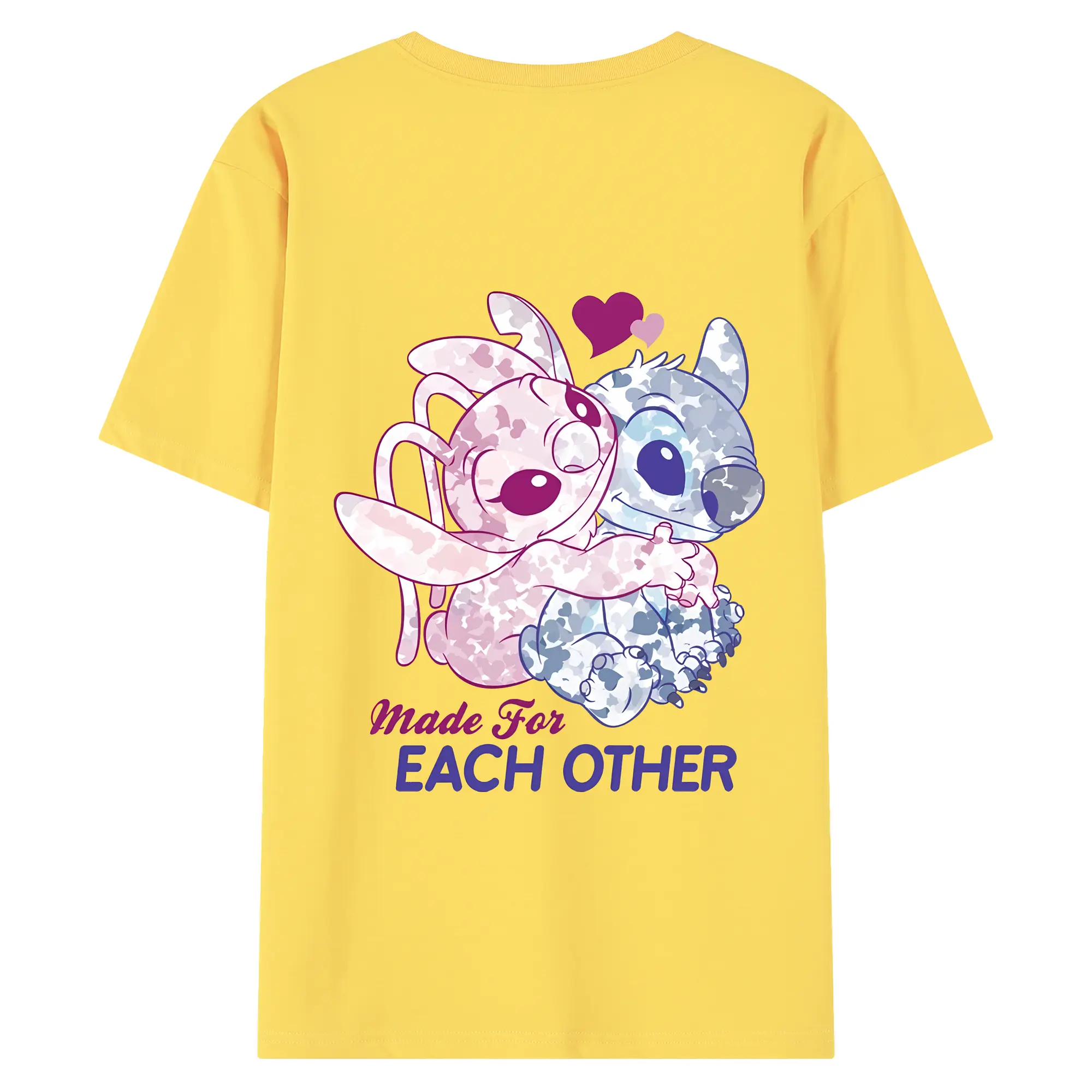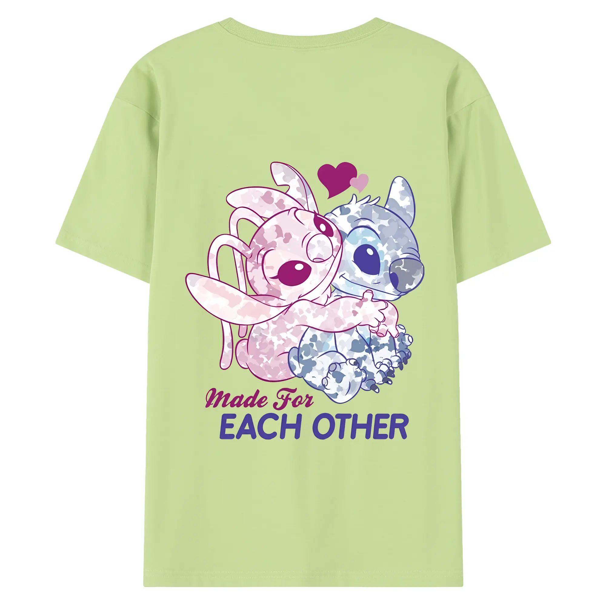 リロ&スティッチ グッズ エンジェル - 綿100% 半袖Tシャツ ・ フロントプリント ・ 快適 通気性 ・ 日常使い 散歩 スポーツ用