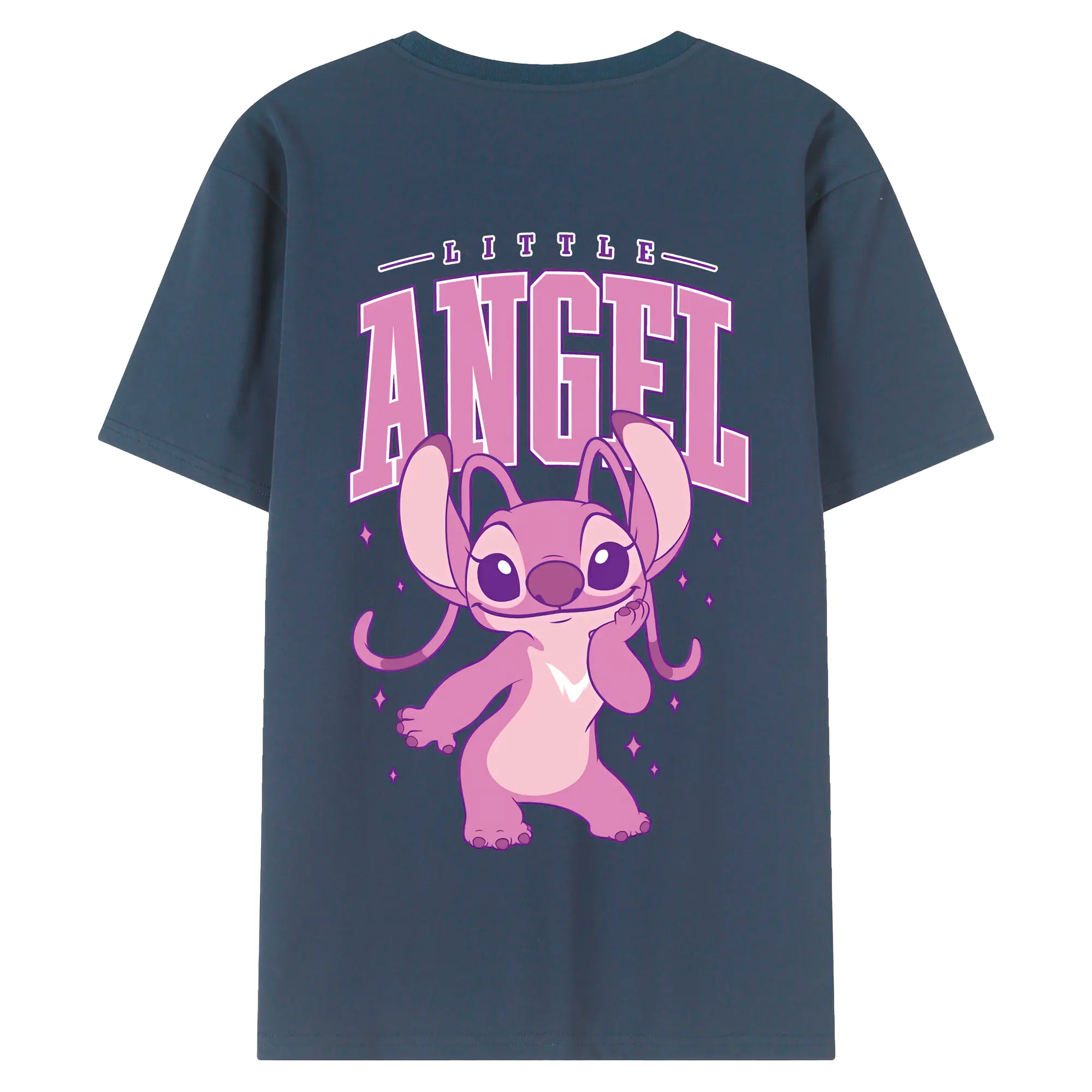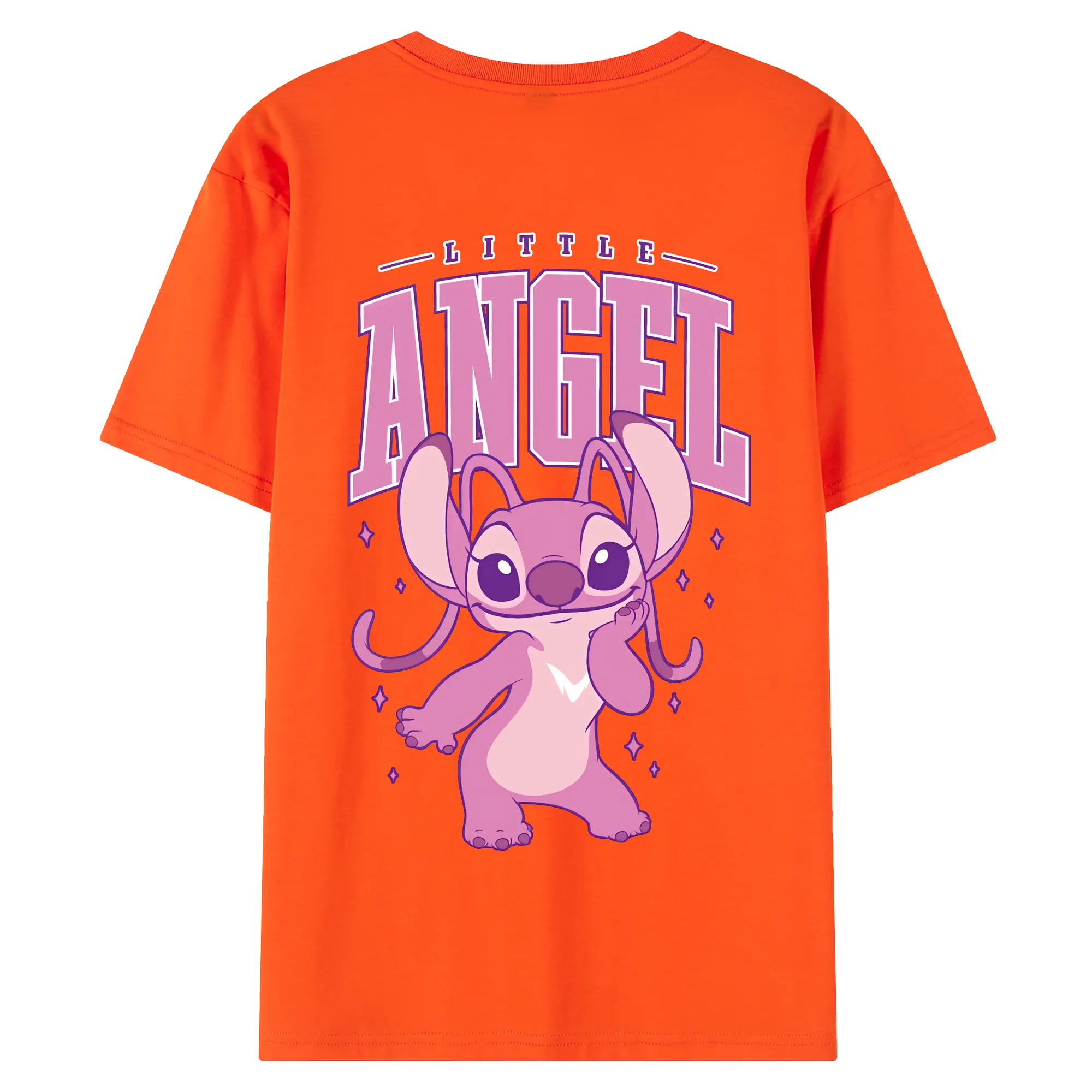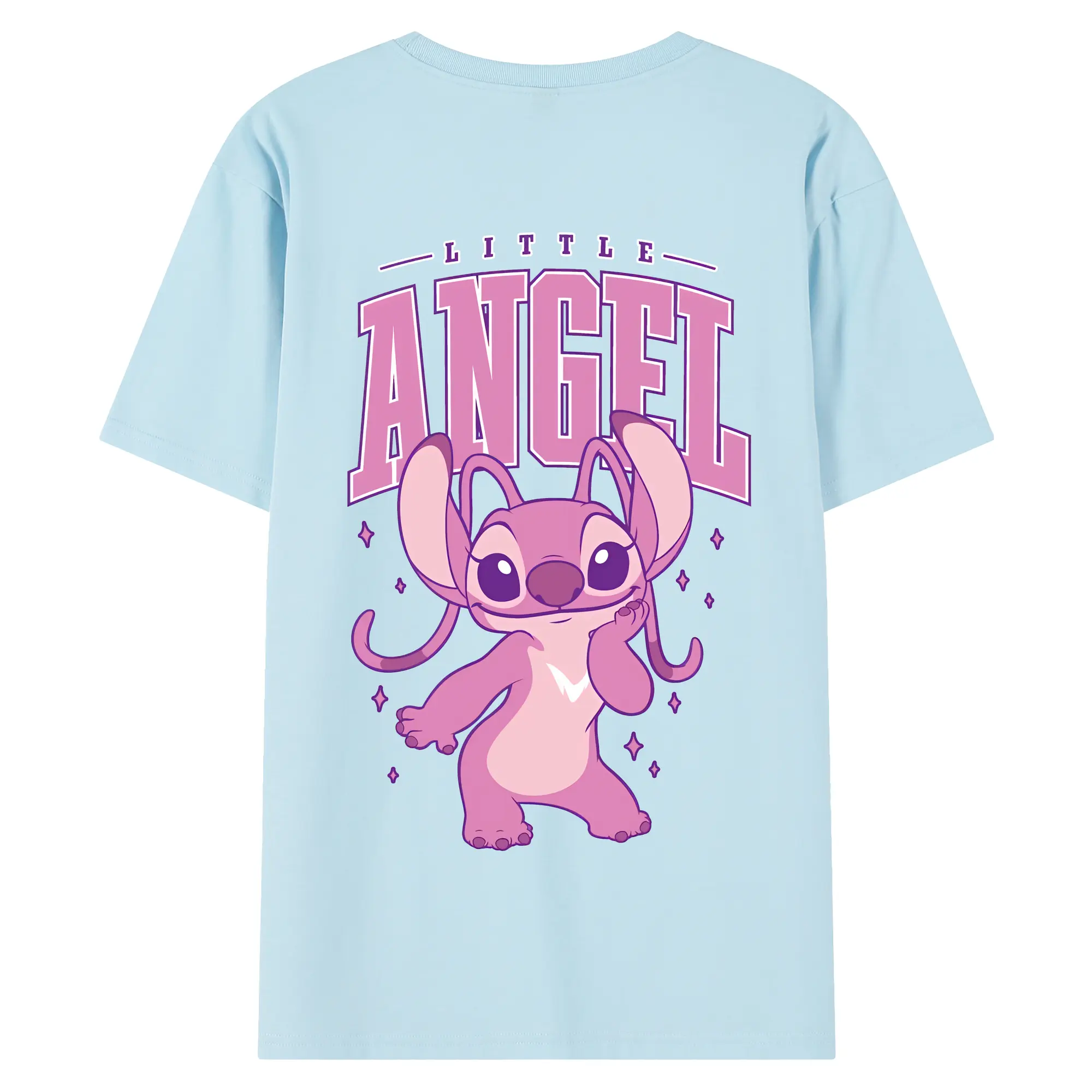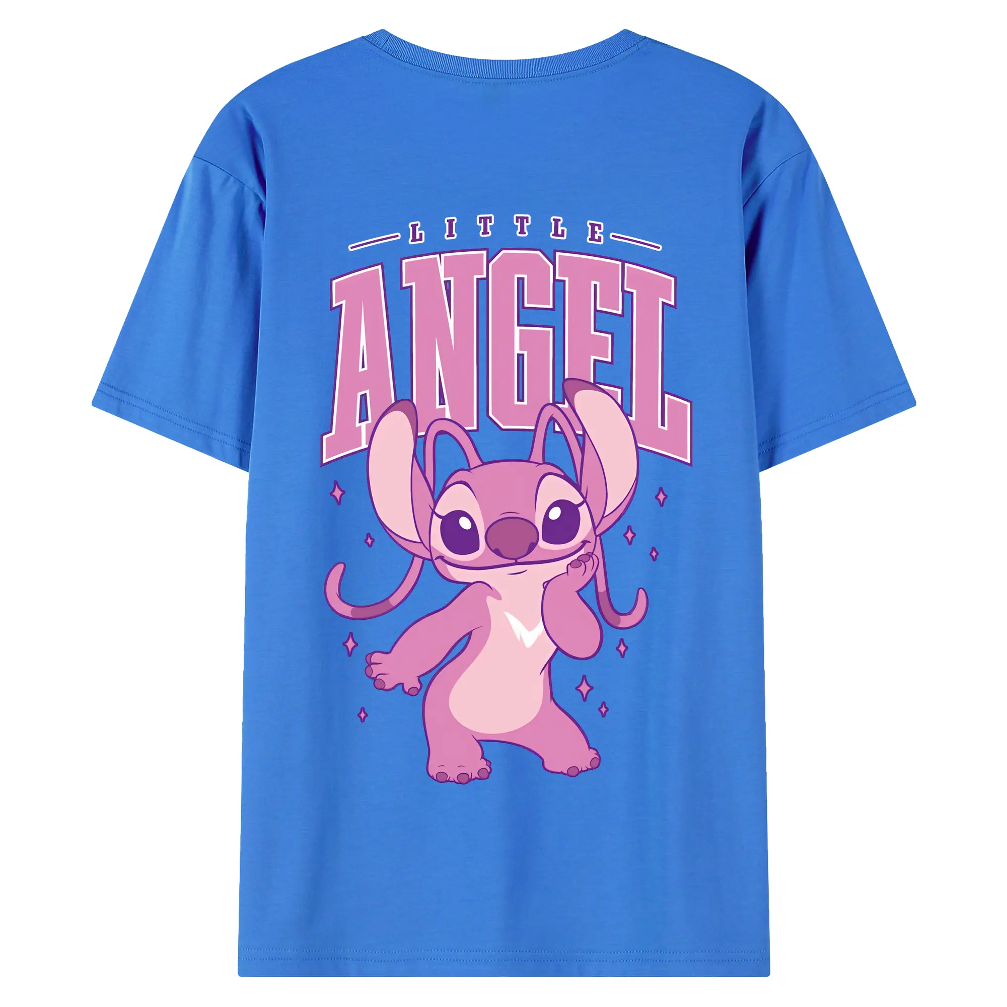 リロ&スティッチ グッズ エンジェル - 綿100% 半袖Tシャツ ・ フロントプリント ・ 快適 通気性 ・ 日常使い 散歩 スポーツ用