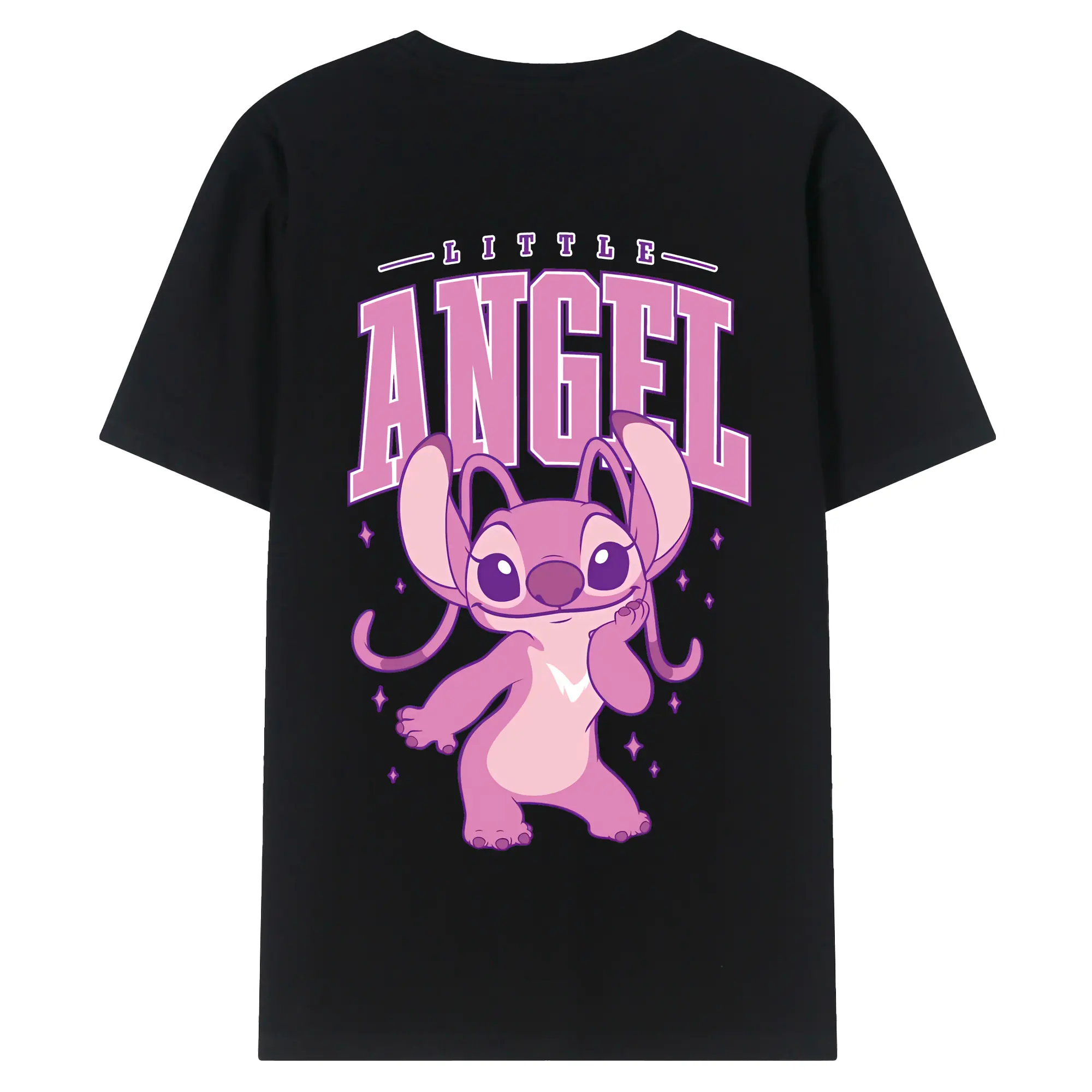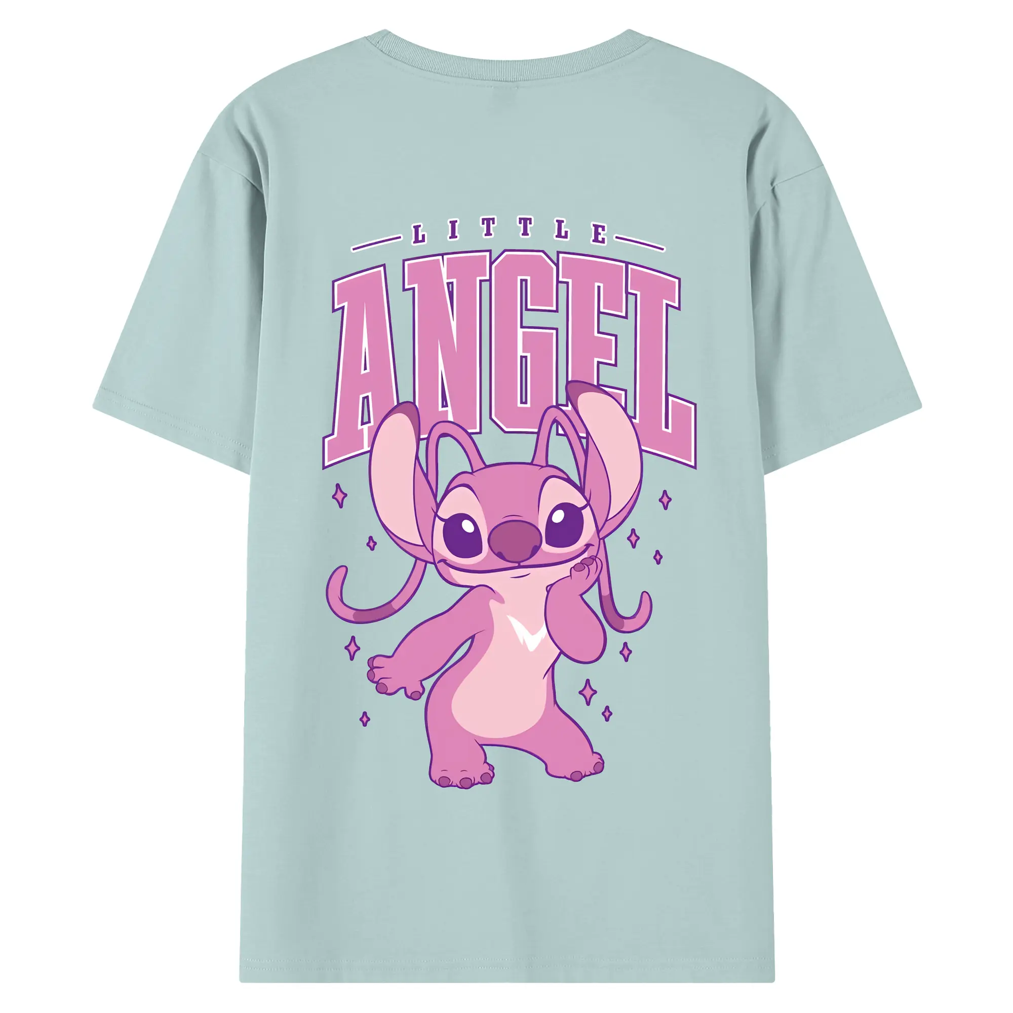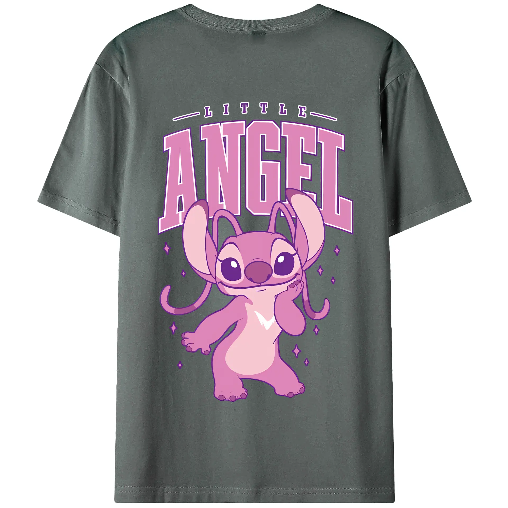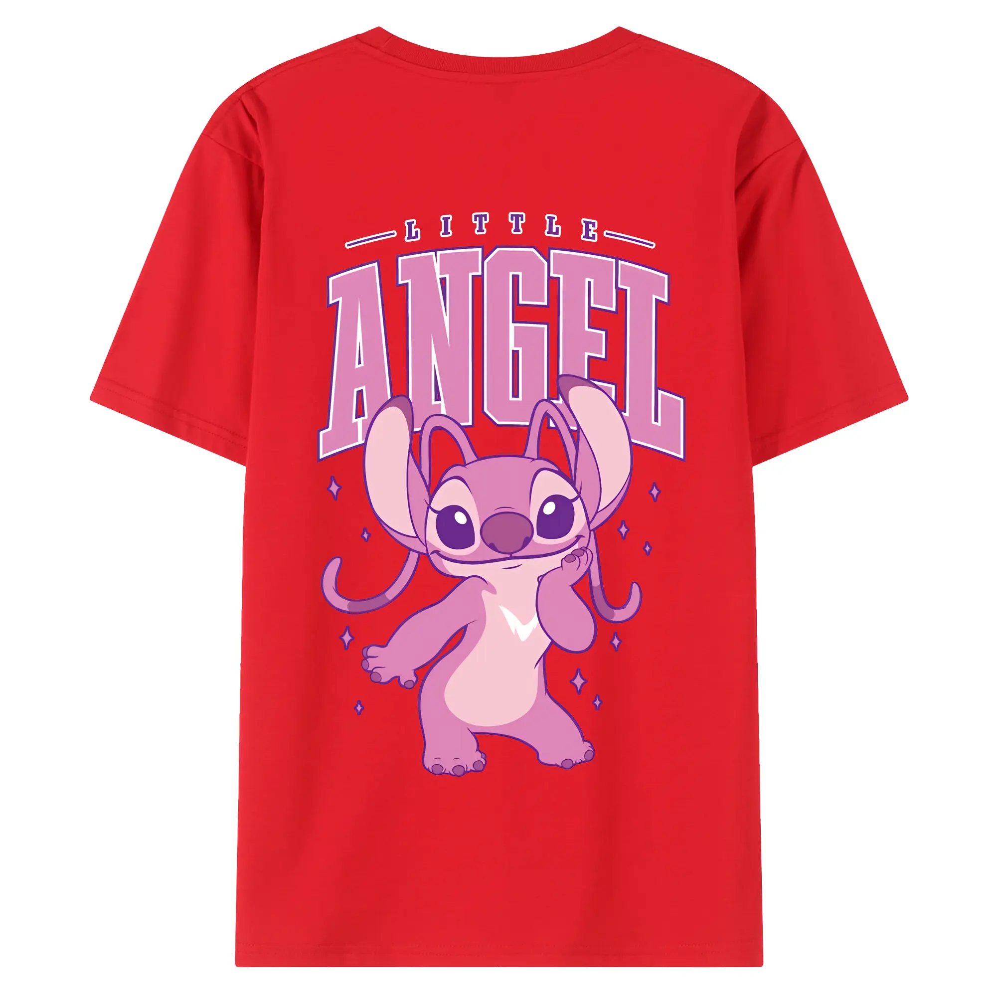 リロ&スティッチ グッズ エンジェル - 綿100% 半袖Tシャツ ・ フロントプリント ・ 快適 通気性 ・ 日常使い 散歩 スポーツ用