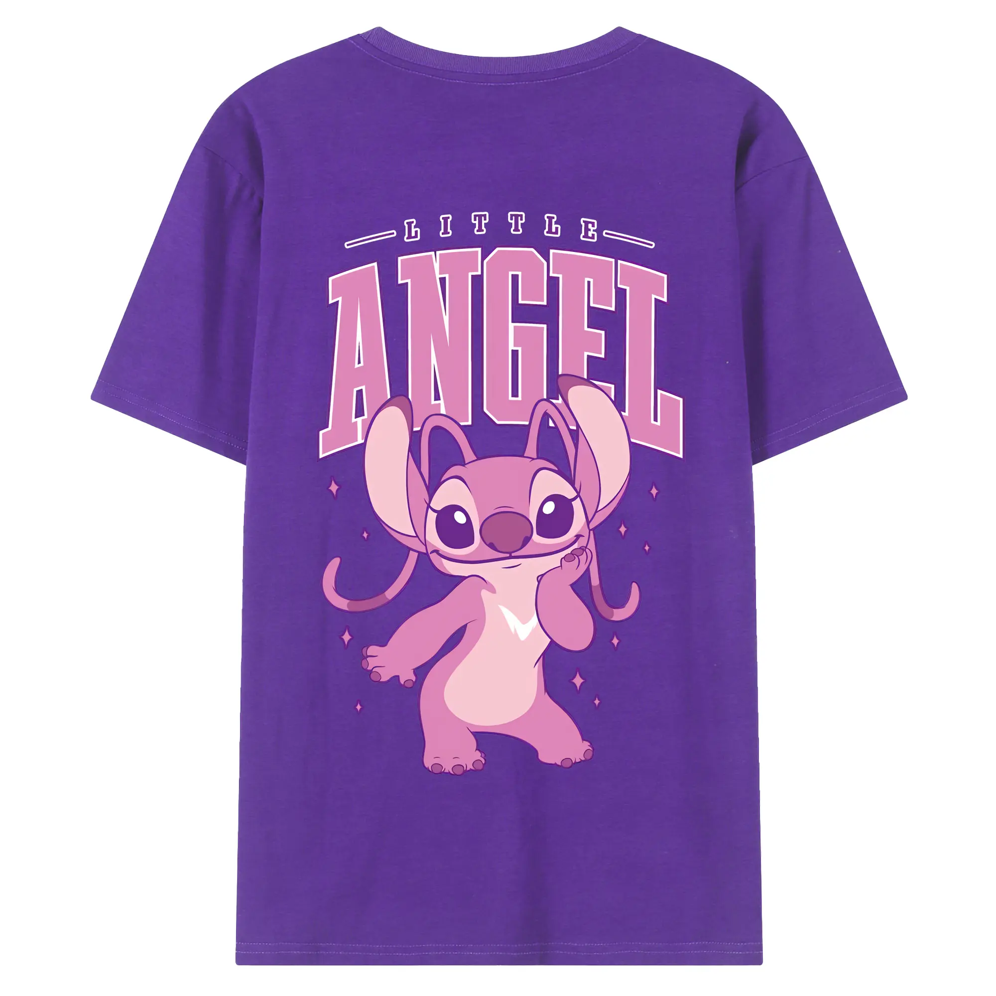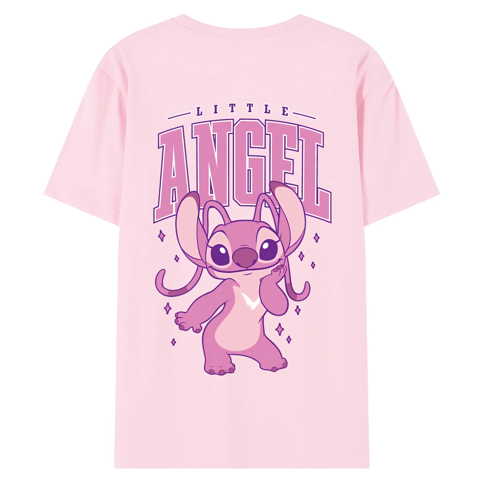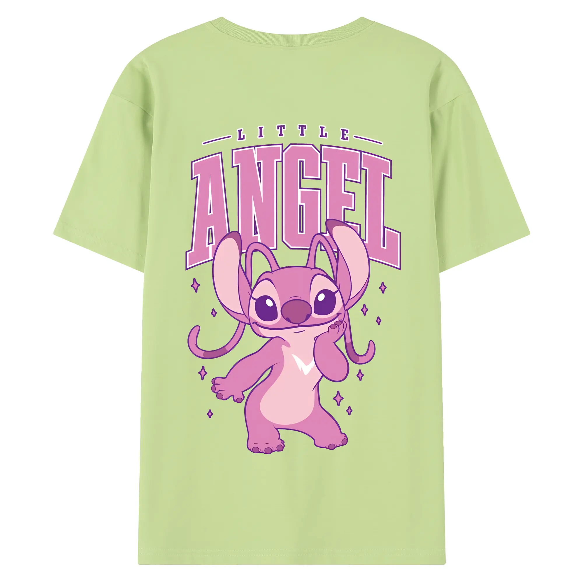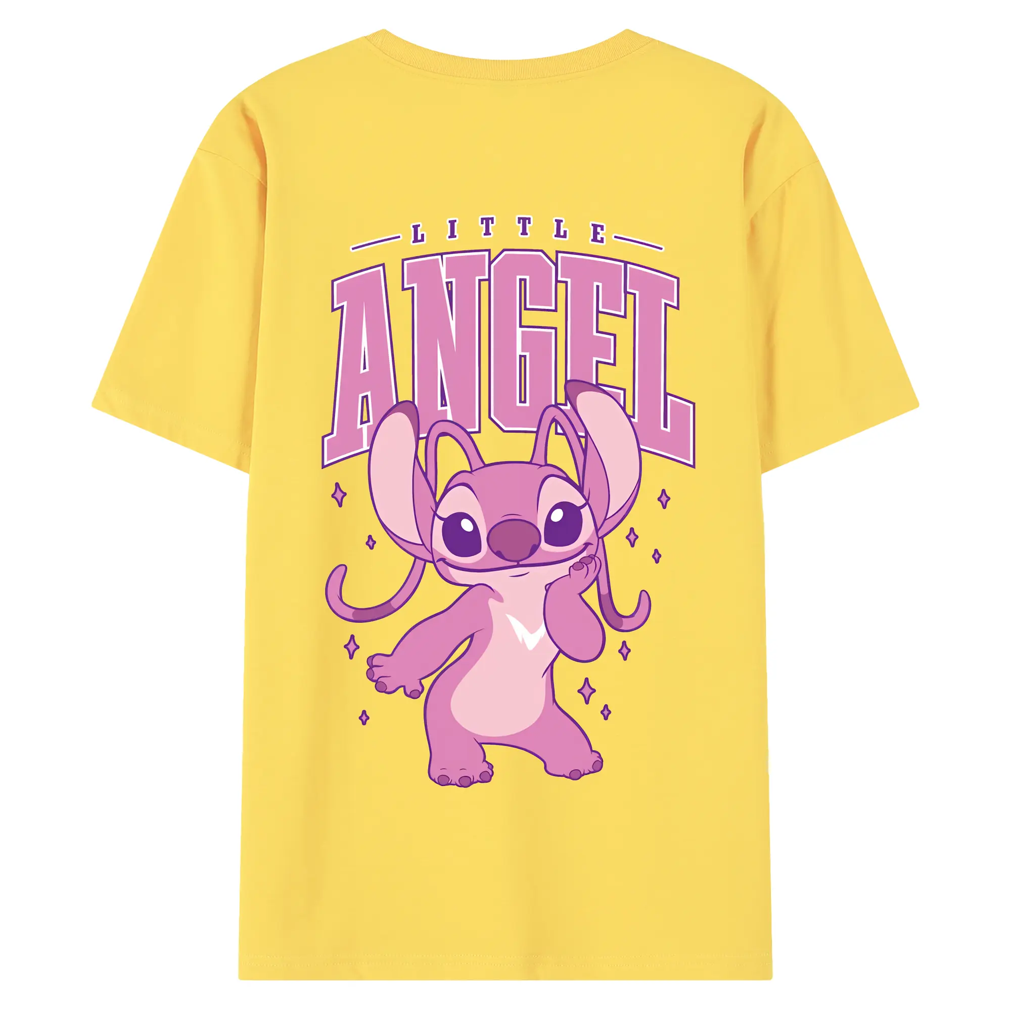 リロ&スティッチ グッズ エンジェル - 綿100% 半袖Tシャツ ・ フロントプリント ・ 快適 通気性 ・ 日常使い 散歩 スポーツ用
