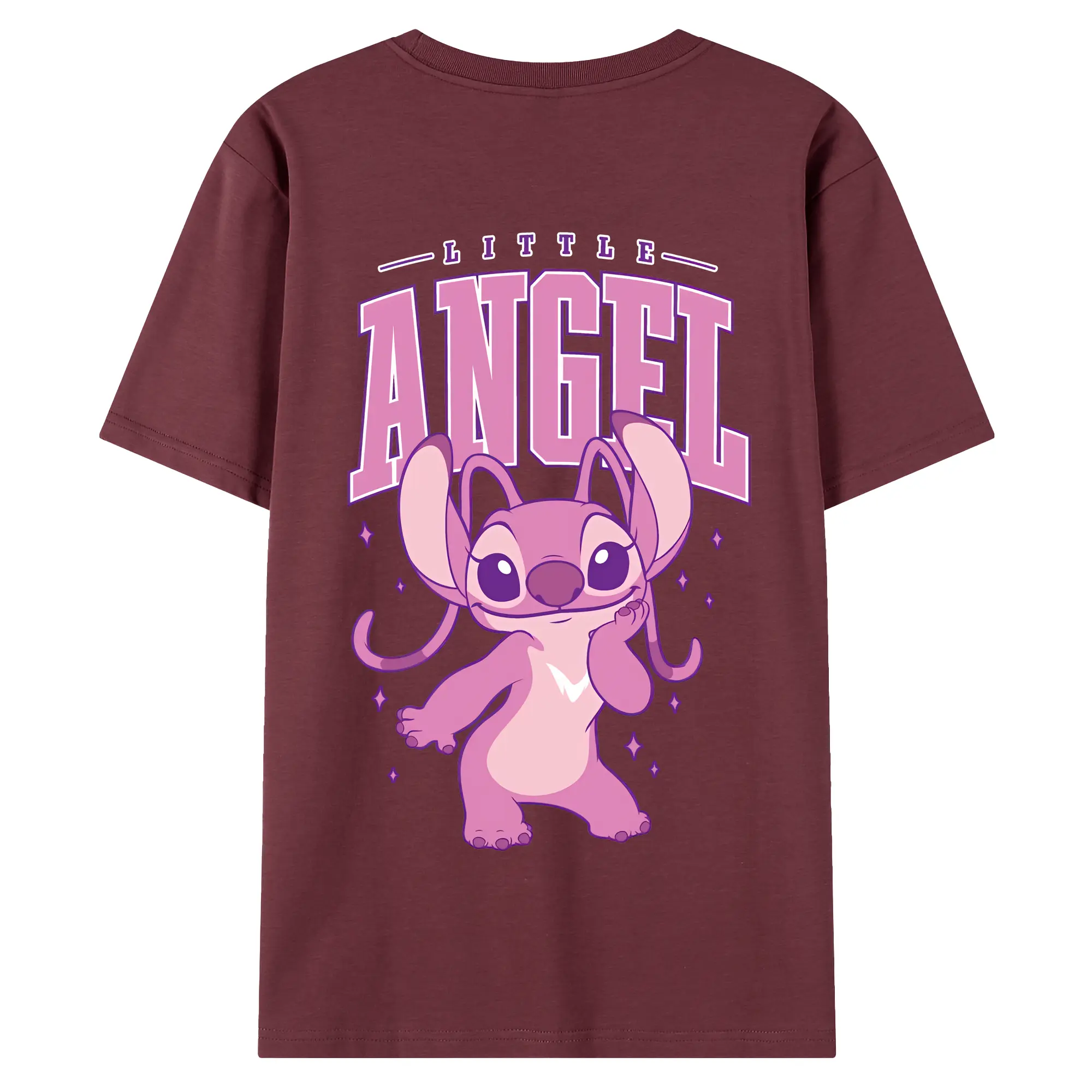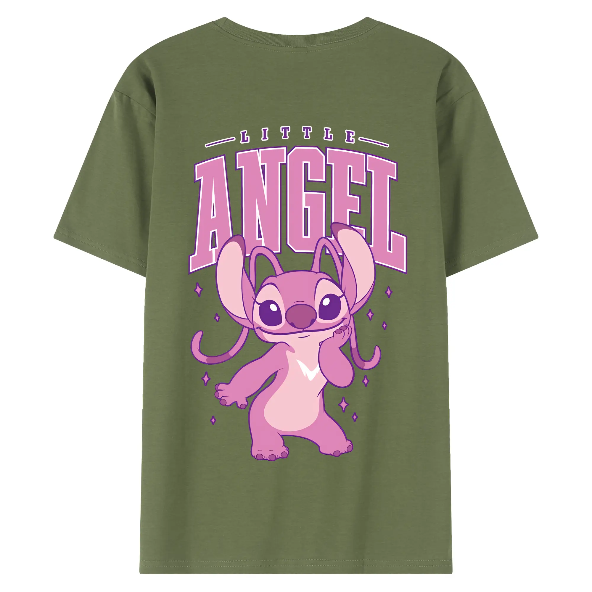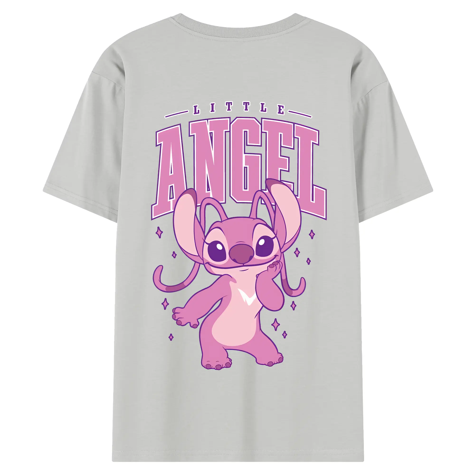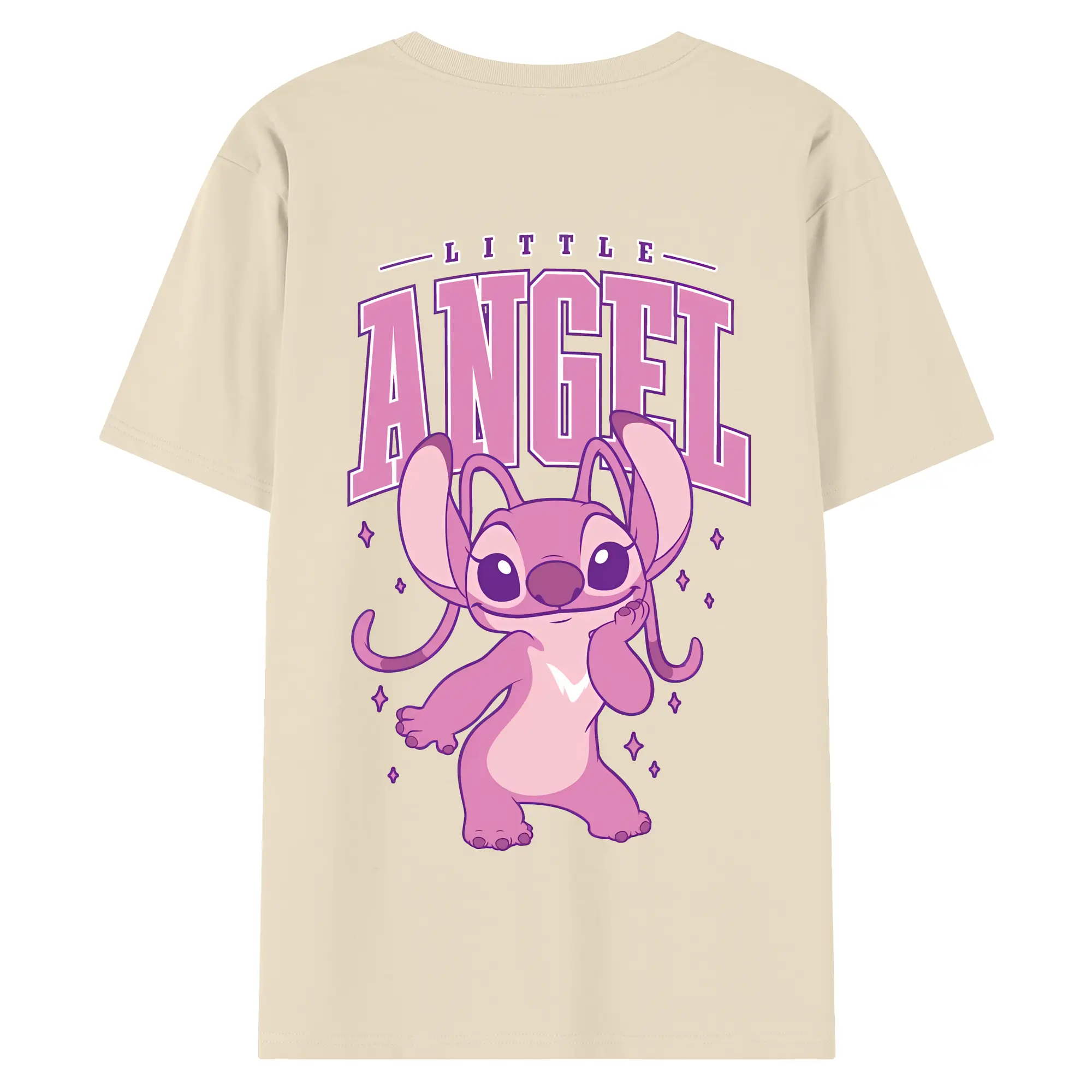 リロ&スティッチ グッズ エンジェル - 綿100% 半袖Tシャツ ・ フロントプリント ・ 快適 通気性 ・ 日常使い 散歩 スポーツ用