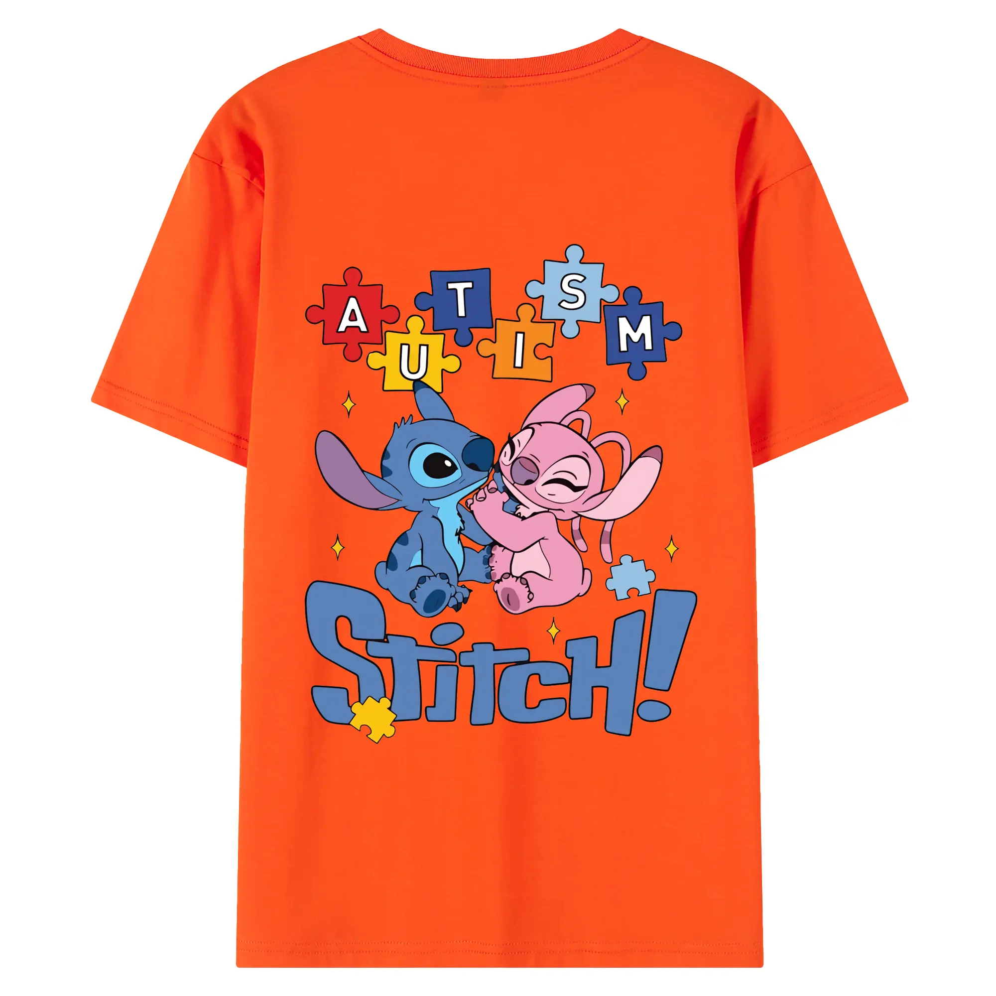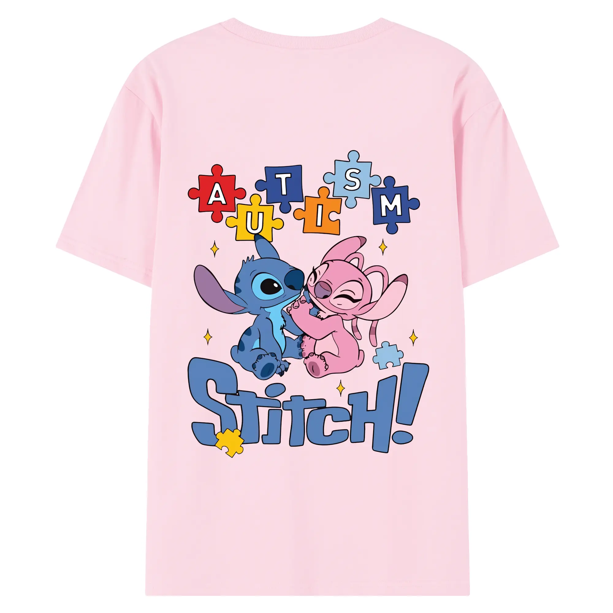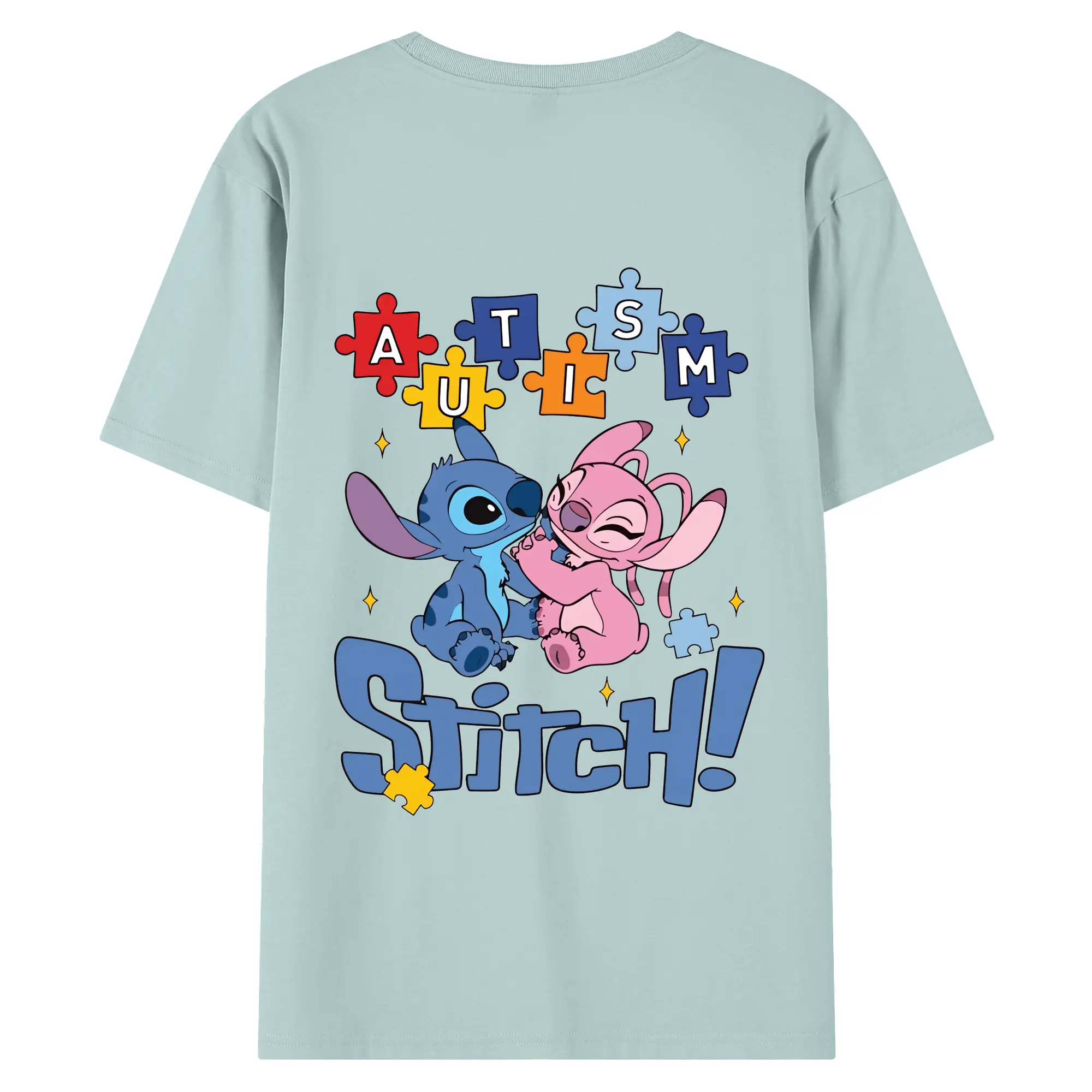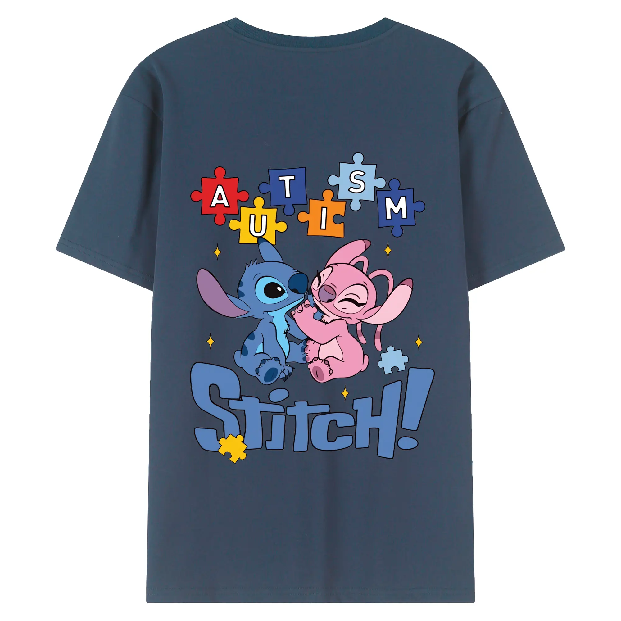 リロ&スティッチ グッズ エンジェル - 綿100% 半袖Tシャツ ・ フロントプリント ・ 快適 通気性 ・ 日常使い 散歩 スポーツ用