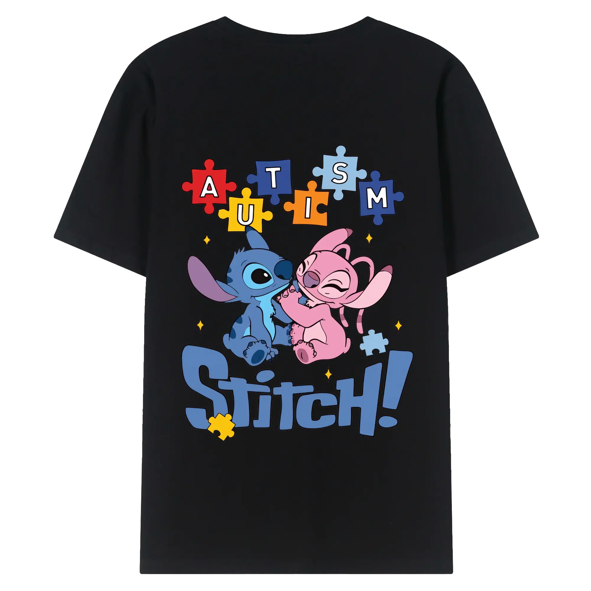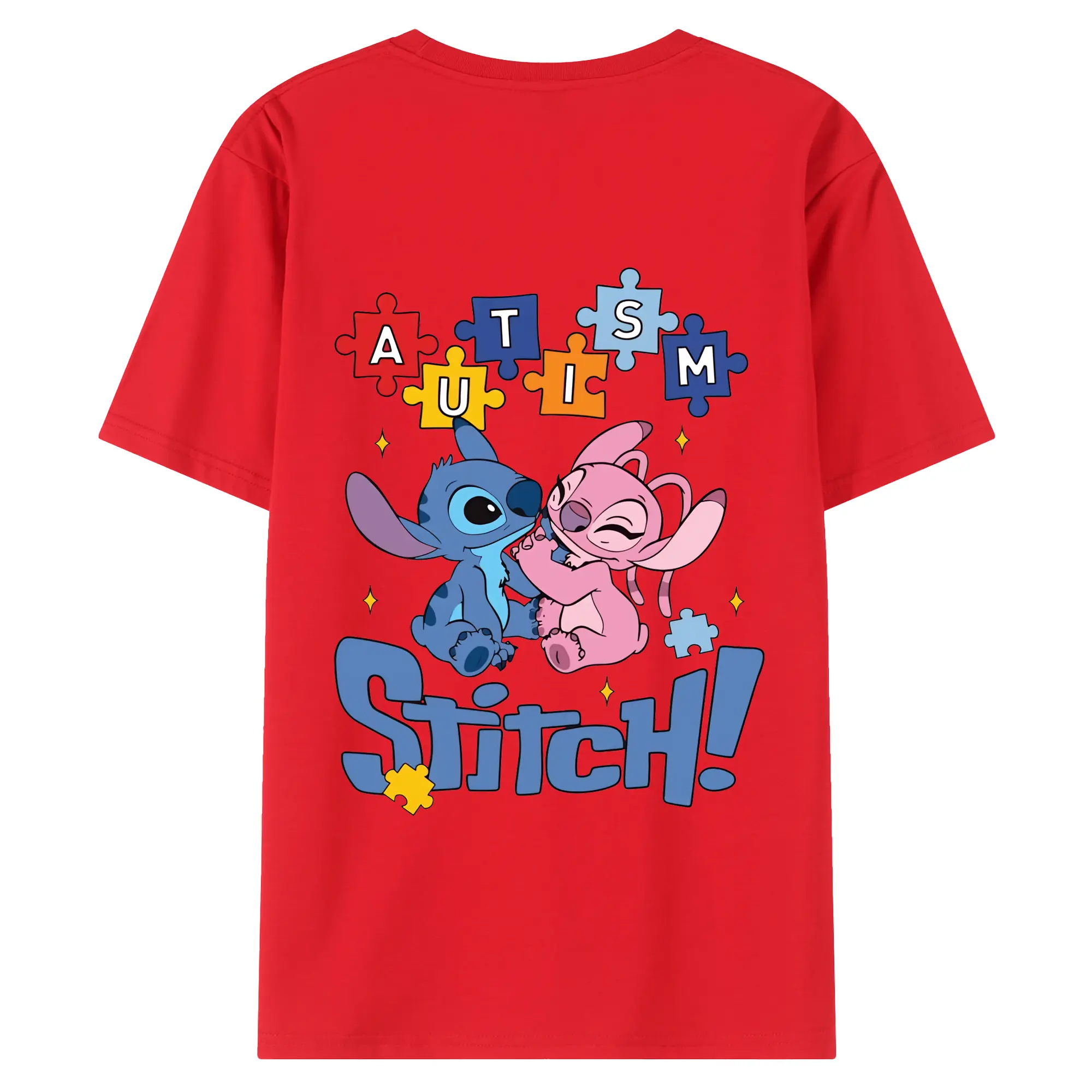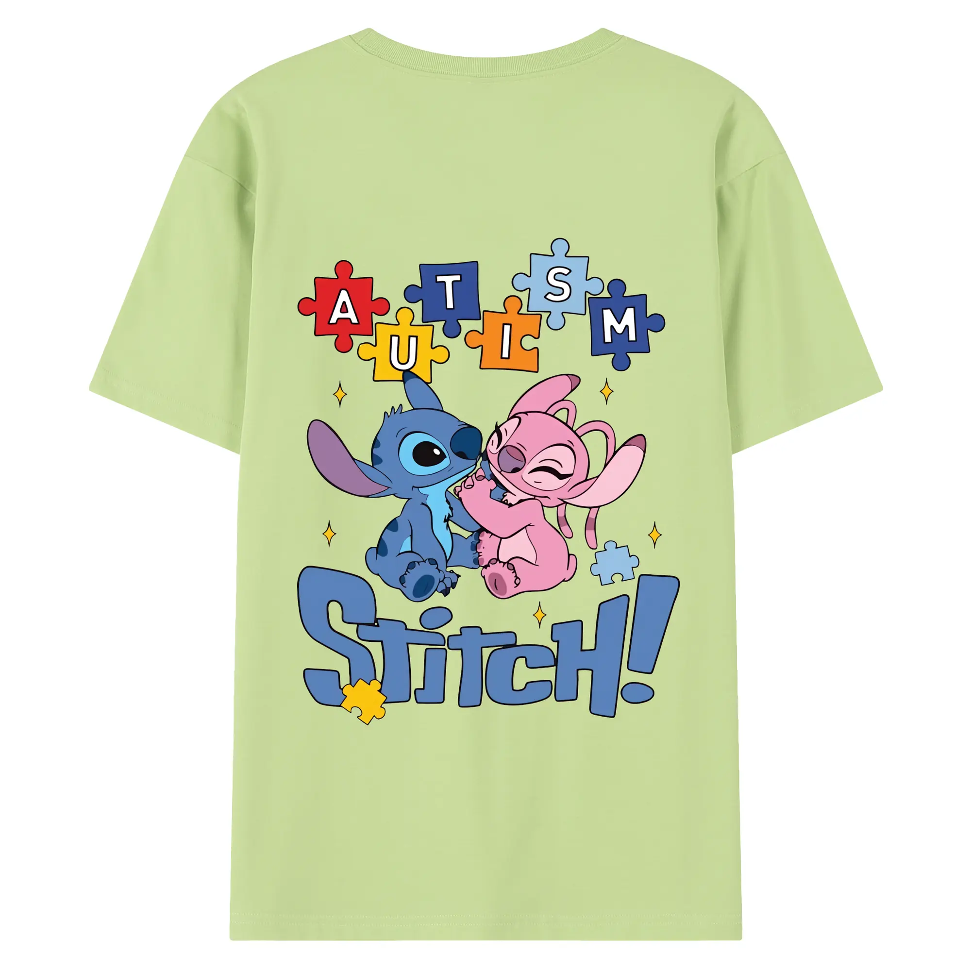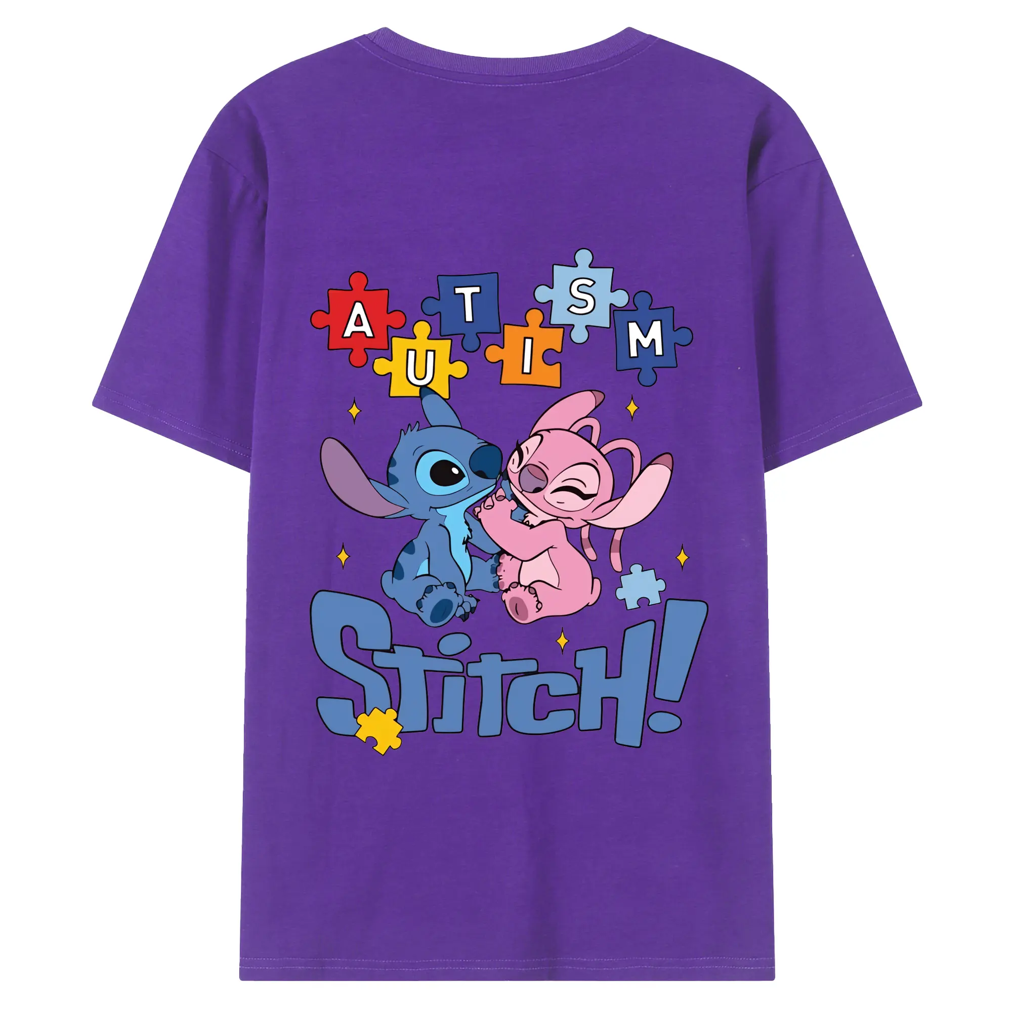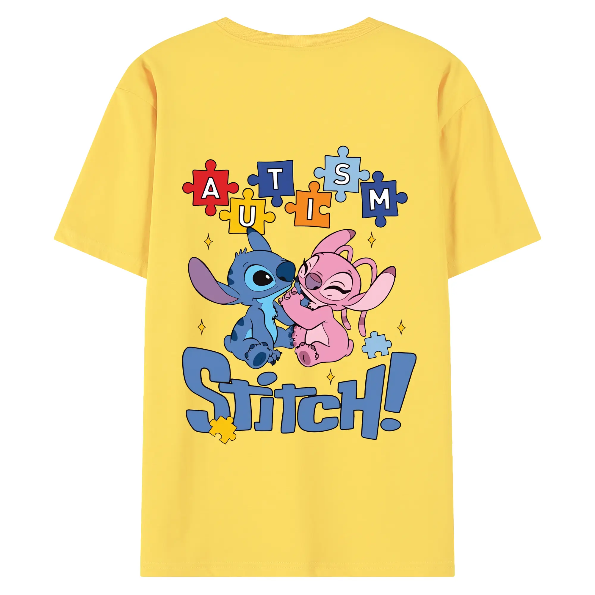 リロ&スティッチ グッズ エンジェル - 綿100% 半袖Tシャツ ・ フロントプリント ・ 快適 通気性 ・ 日常使い 散歩 スポーツ用