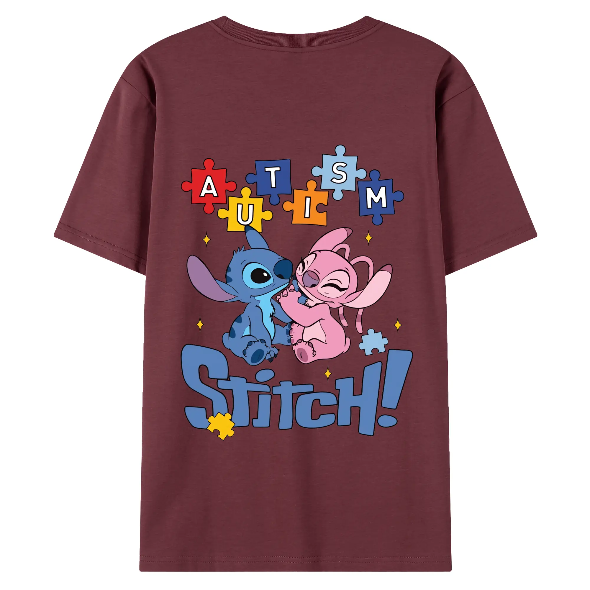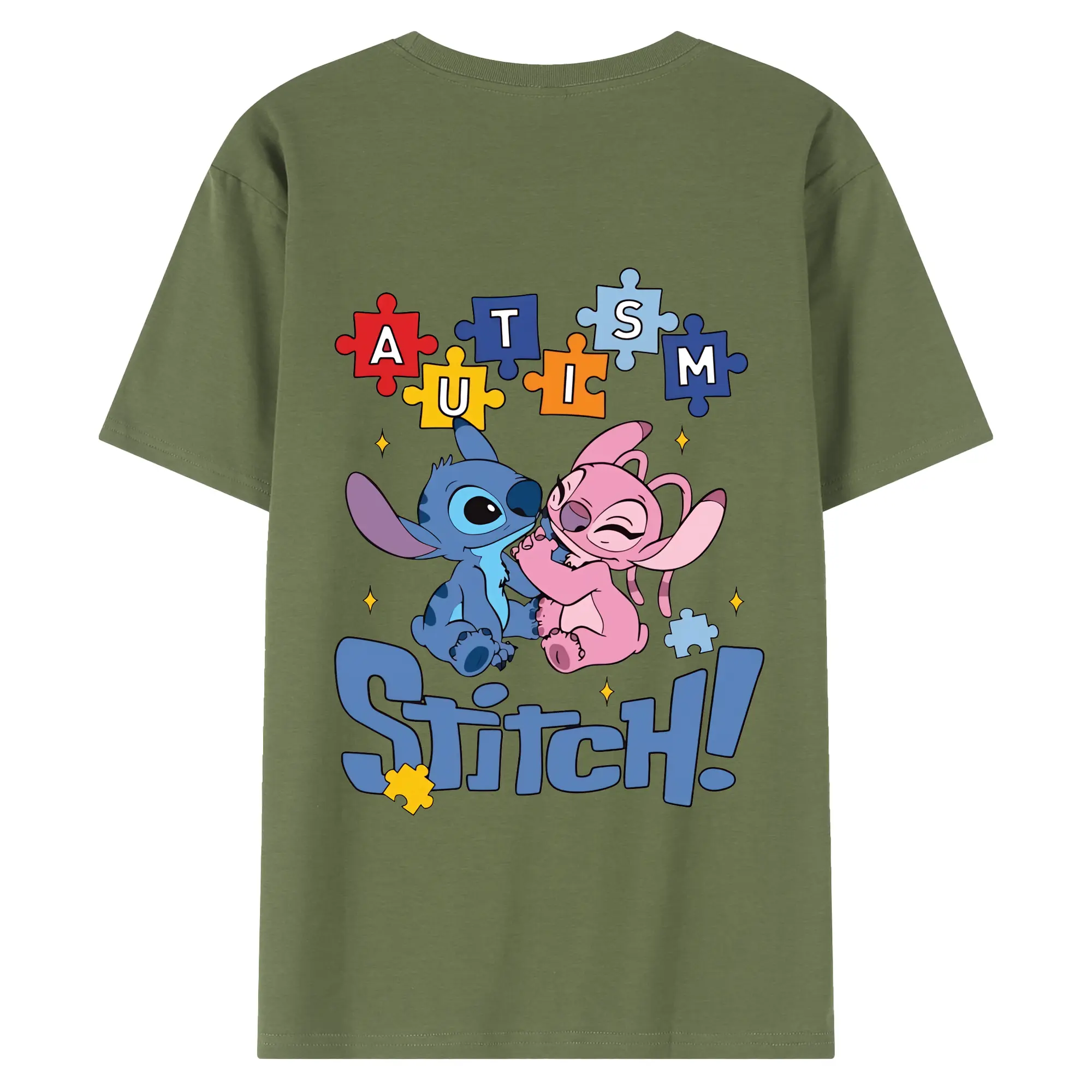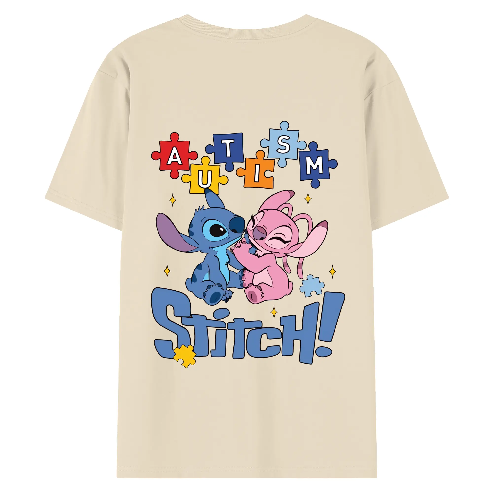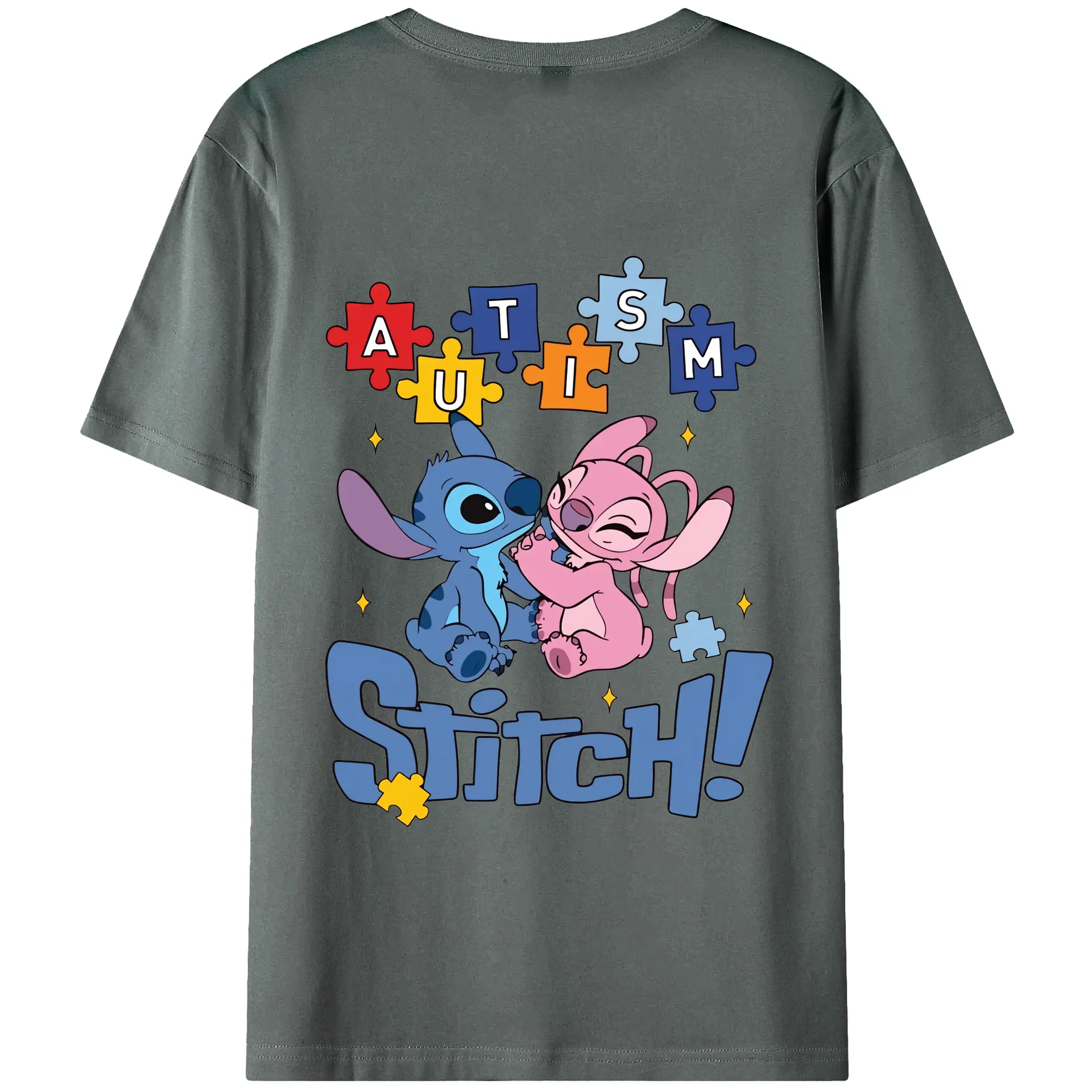 リロ&スティッチ グッズ エンジェル - 綿100% 半袖Tシャツ ・ フロントプリント ・ 快適 通気性 ・ 日常使い 散歩 スポーツ用