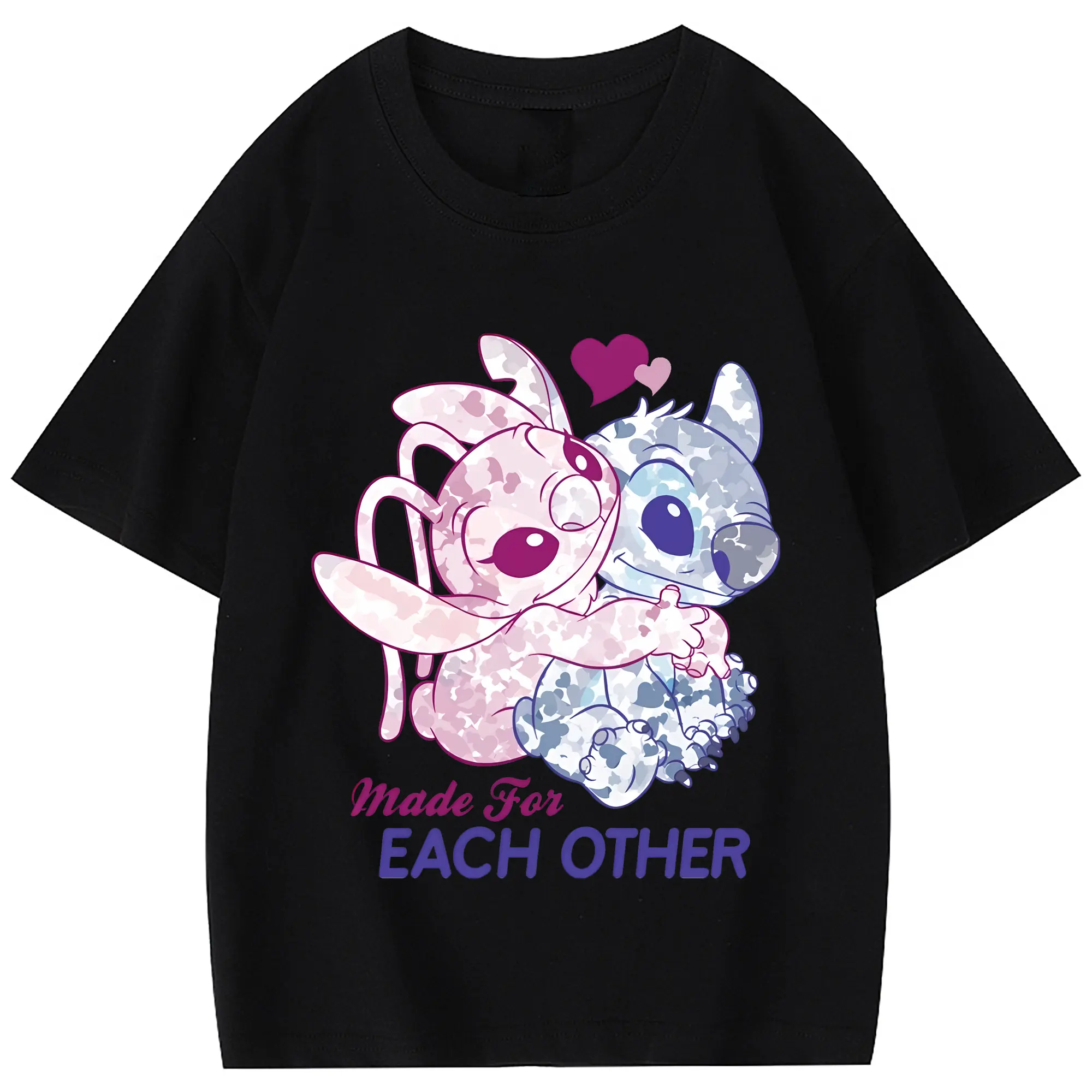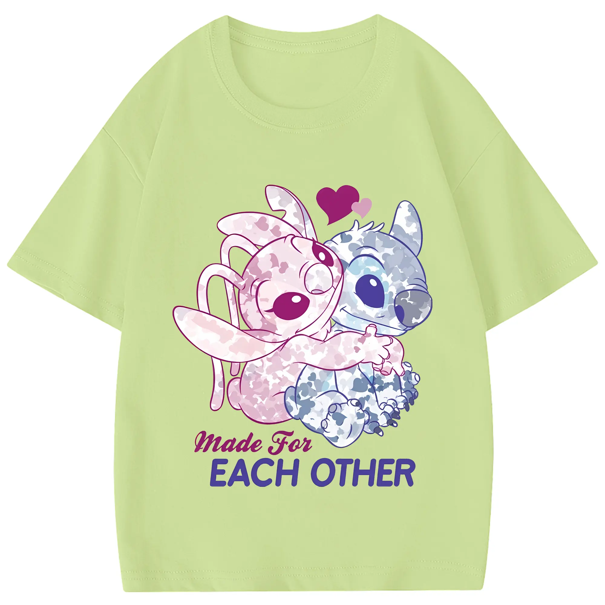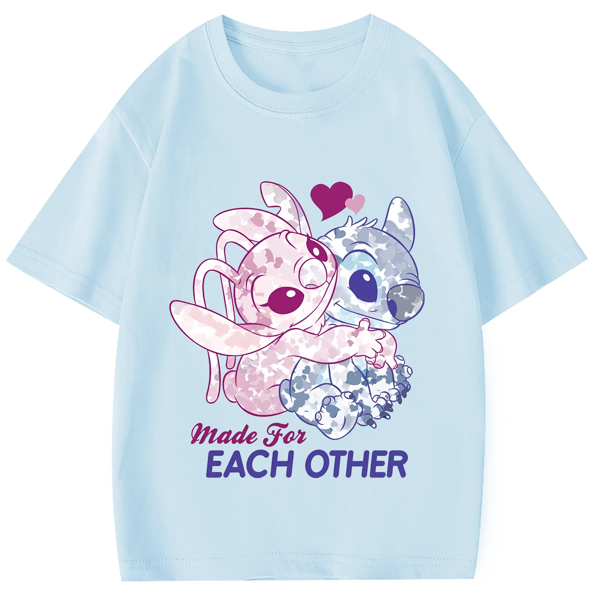 リロ&スティッチ グッズ エンジェル - 綿100% 半袖Tシャツ ・ フロントプリント ・ 快適 通気性 ・ 日常使い 散歩 スポーツ用