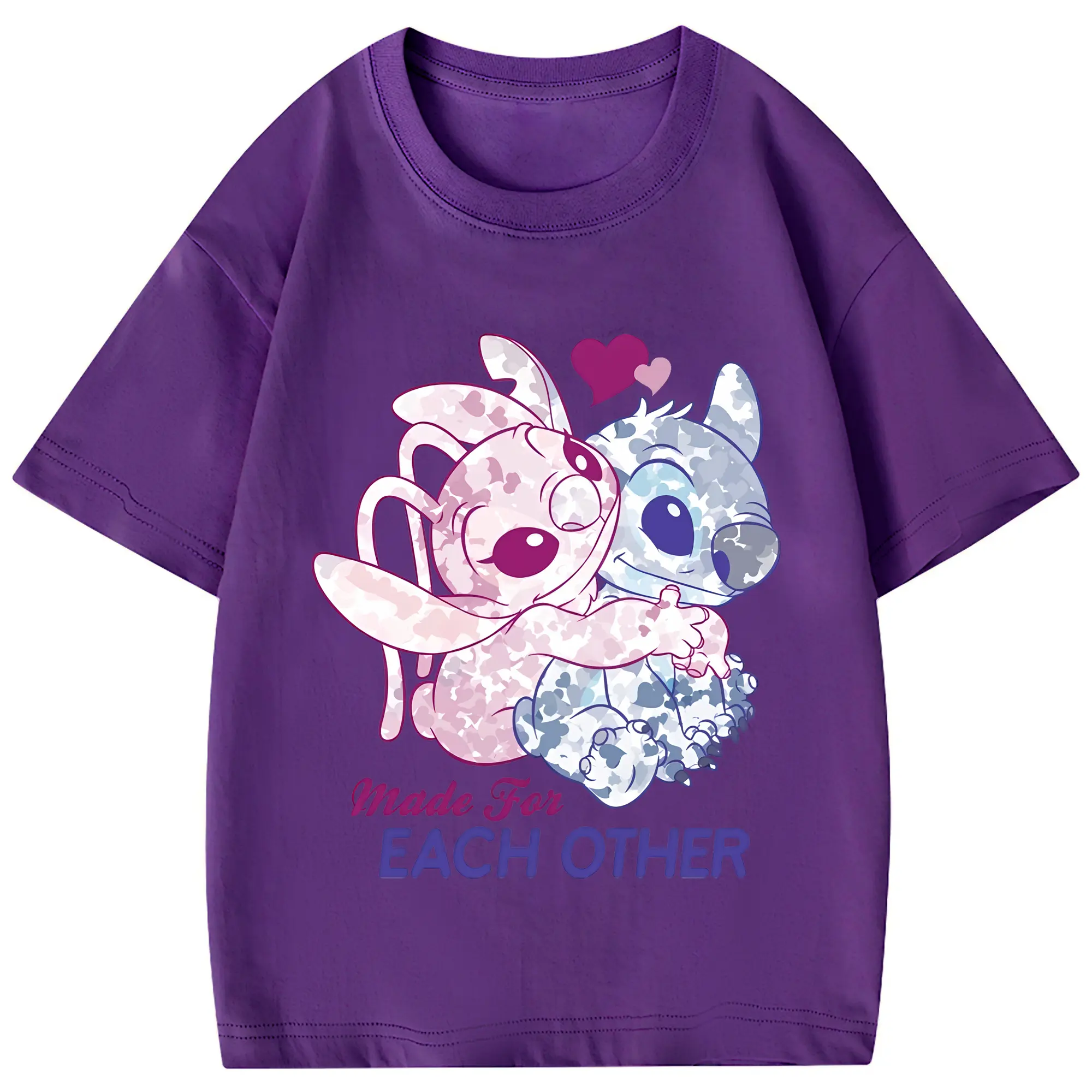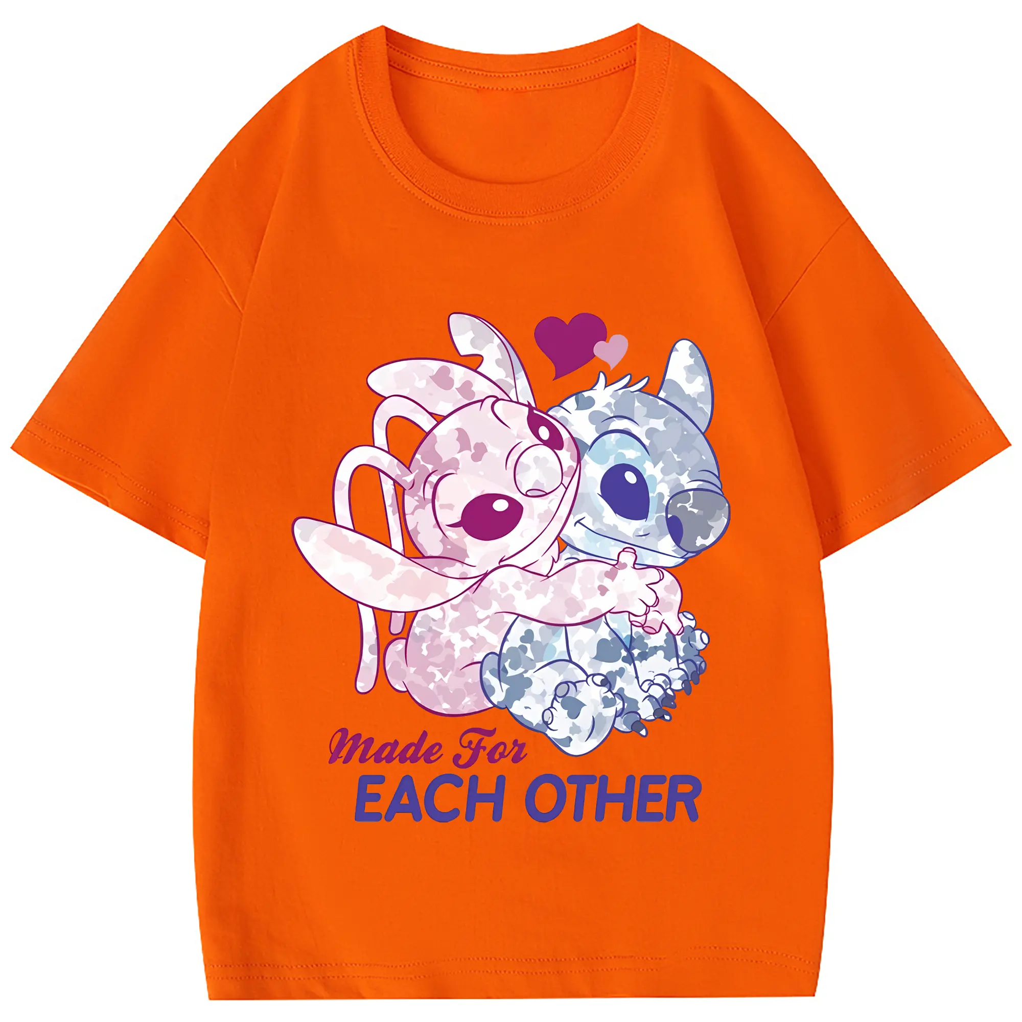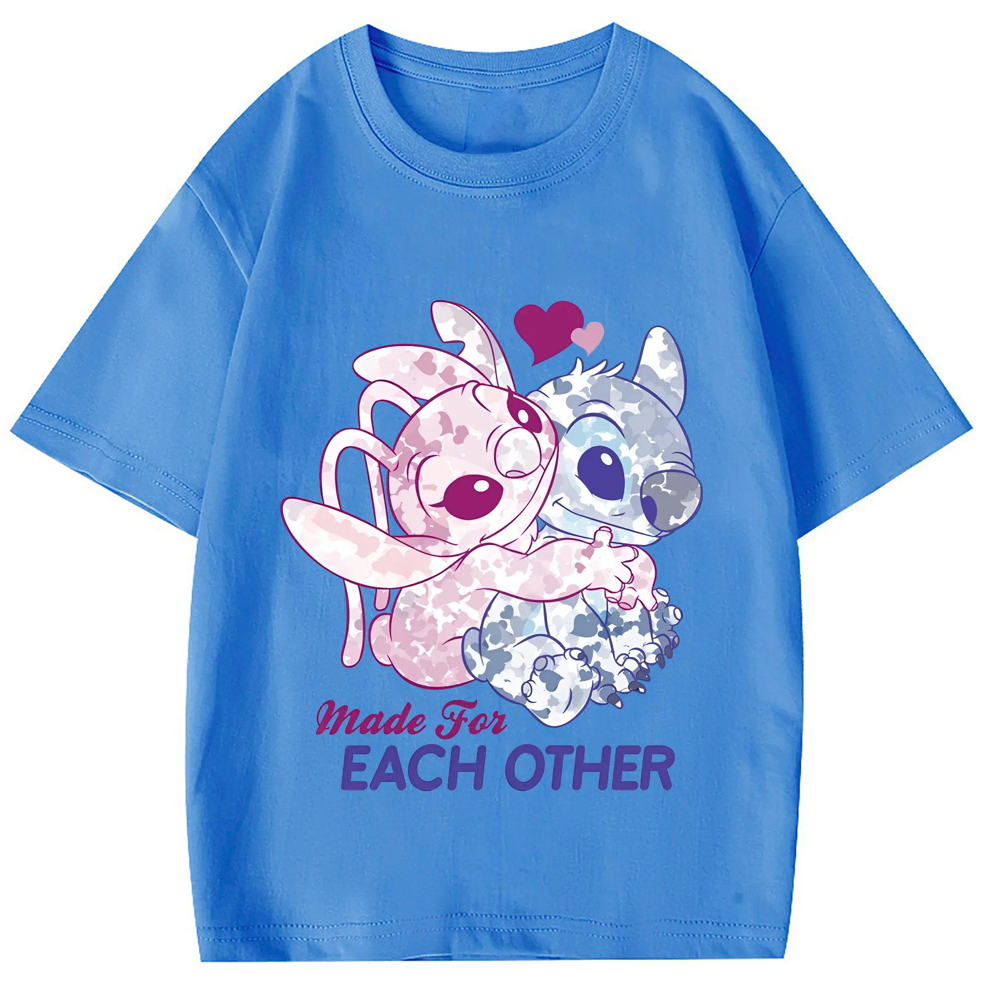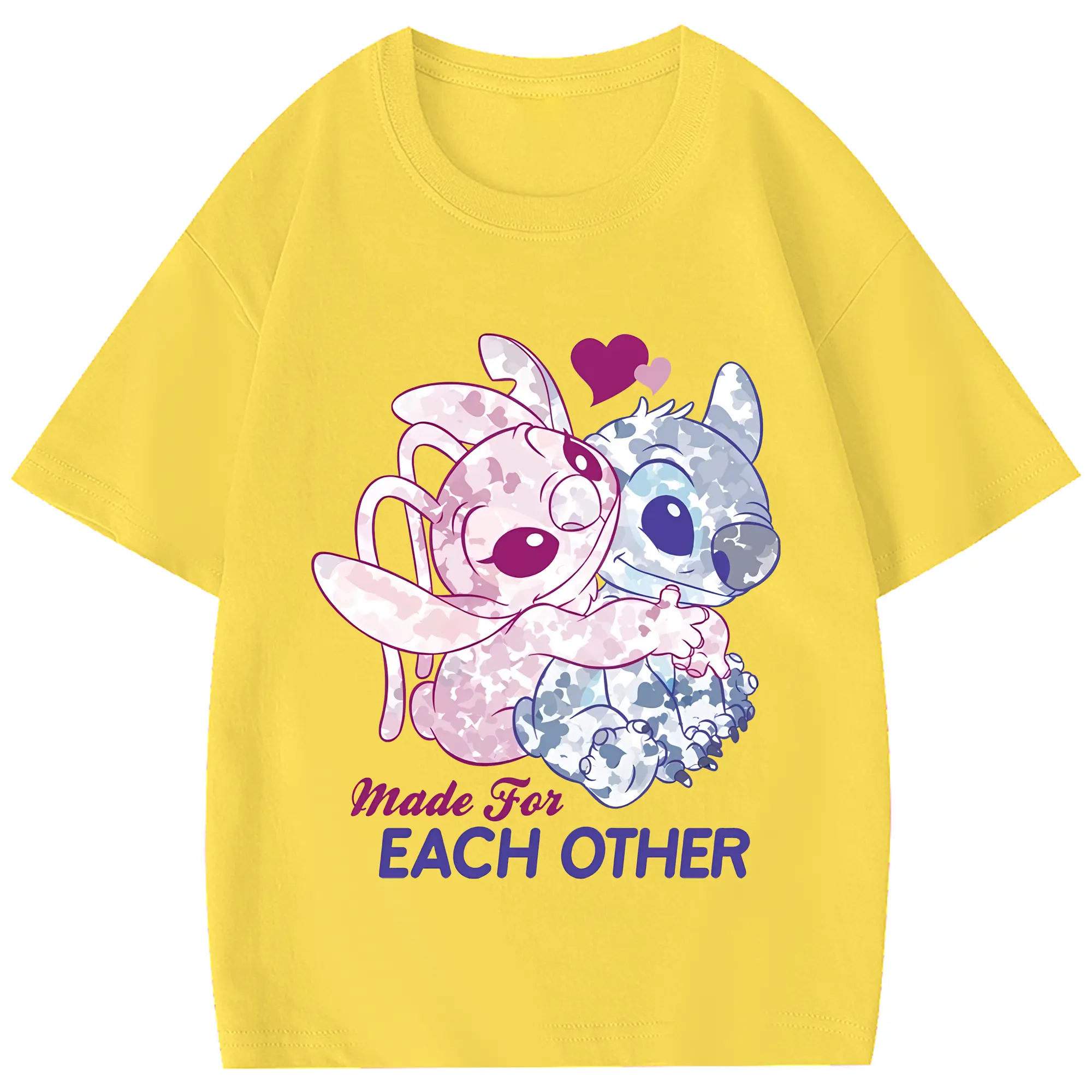 リロ&スティッチ グッズ エンジェル - 綿100% 半袖Tシャツ ・ フロントプリント ・ 快適 通気性 ・ 日常使い 散歩 スポーツ用