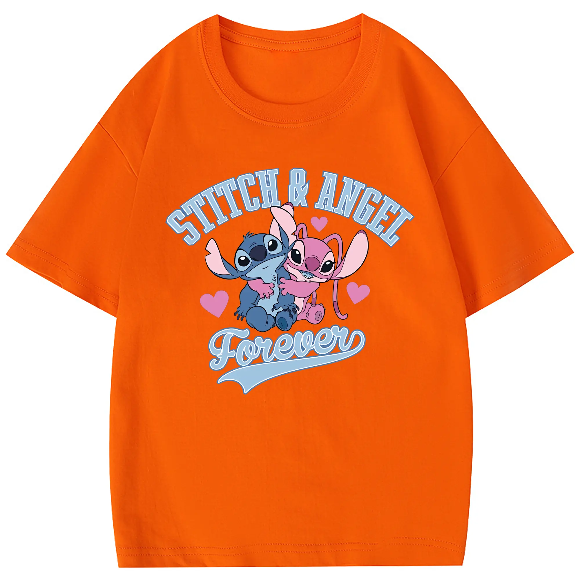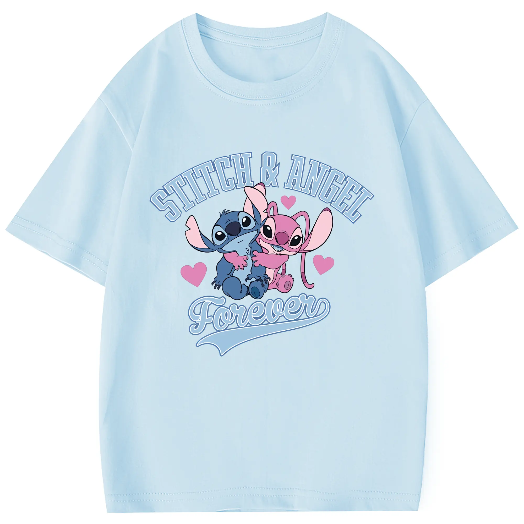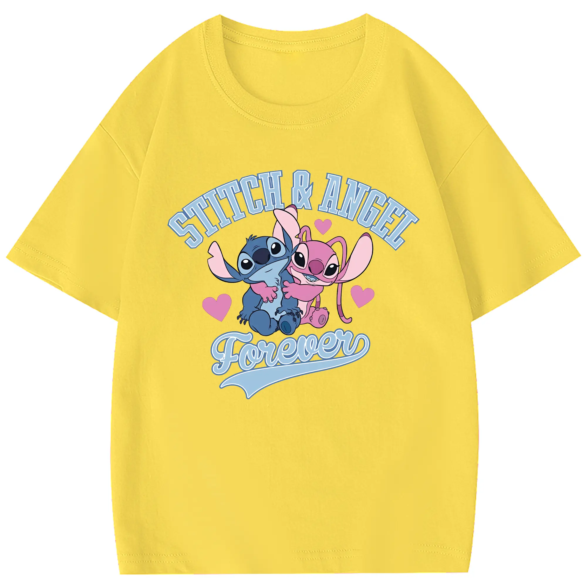 リロ&スティッチ グッズ エンジェル - 綿100% 半袖Tシャツ ・ フロントプリント ・ 快適 通気性 ・ 日常使い 散歩 スポーツ用