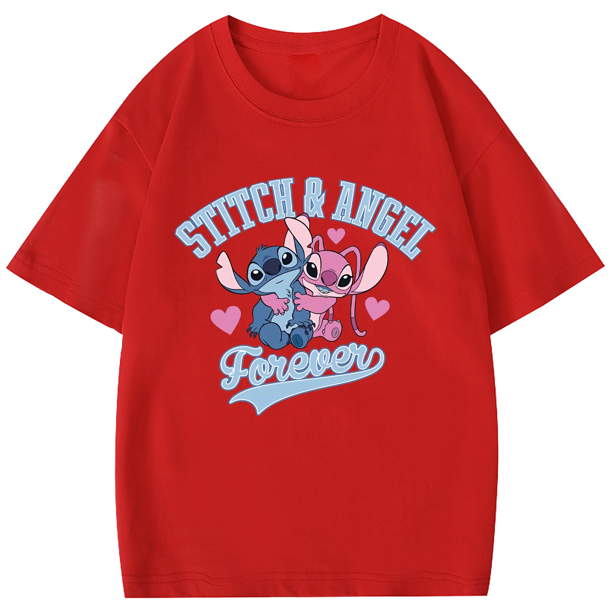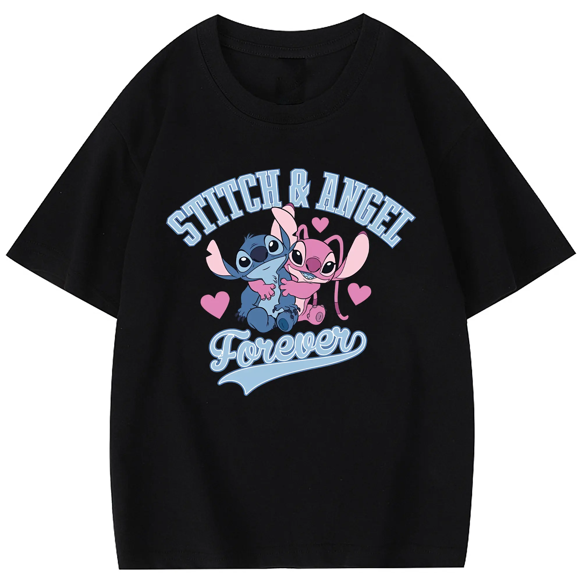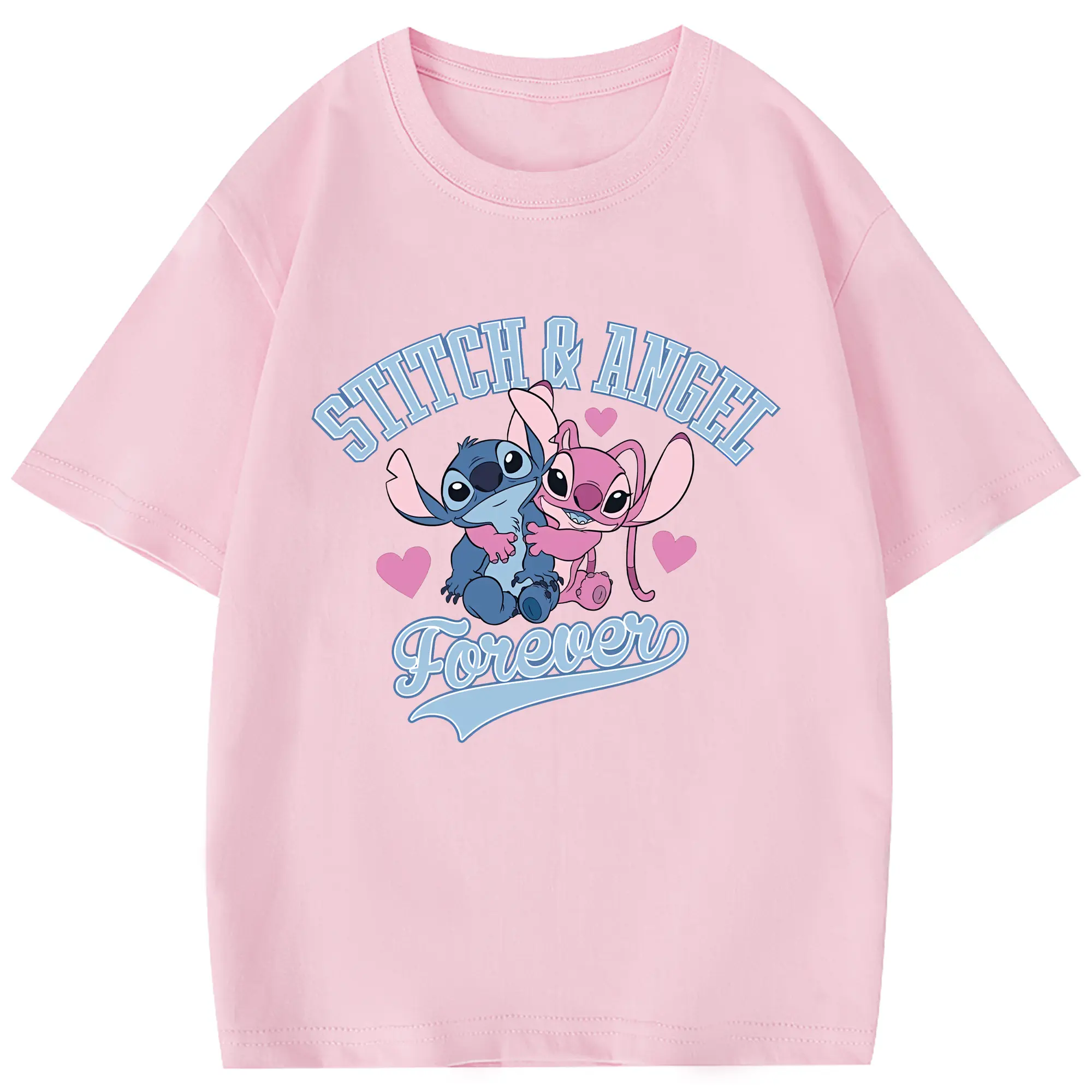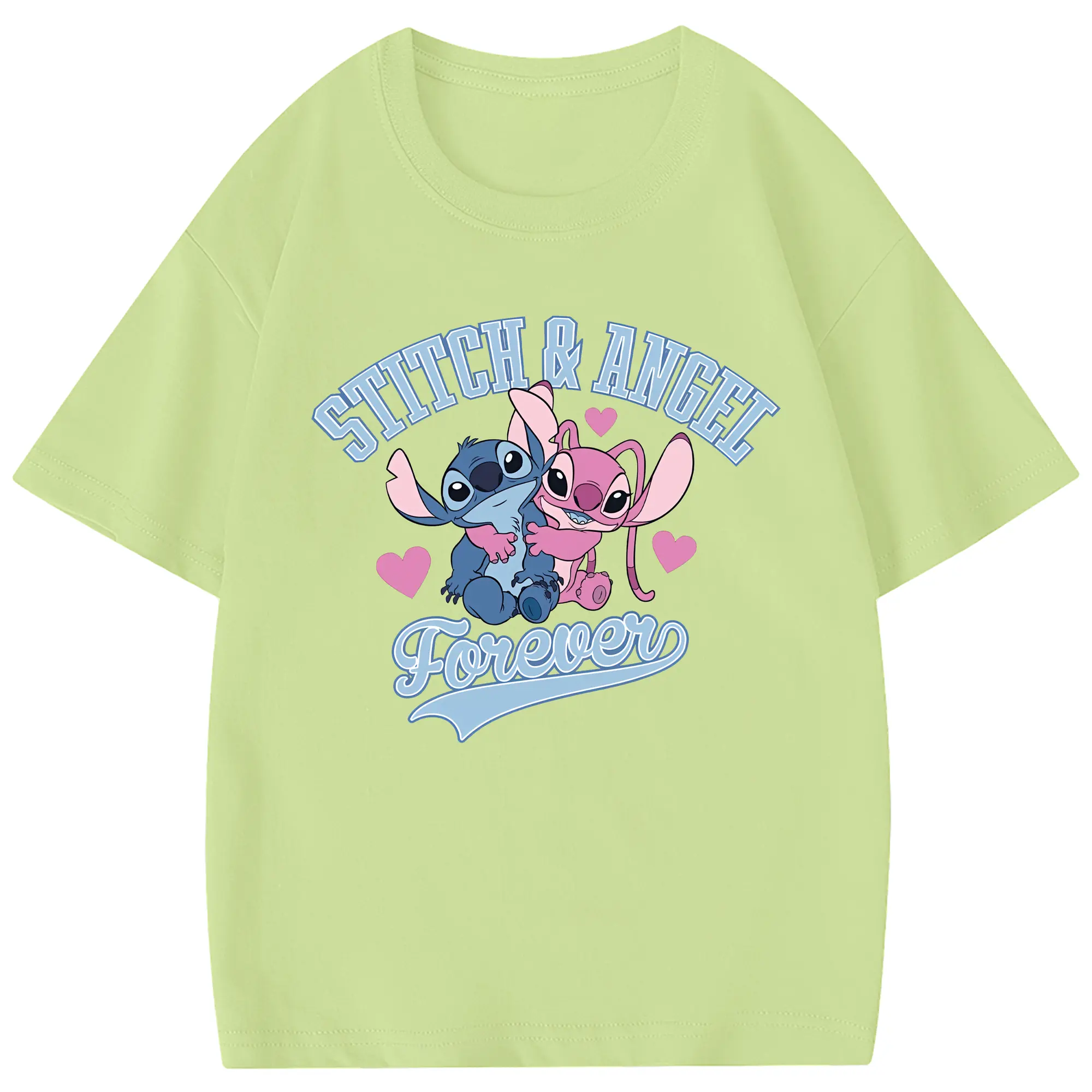 リロ&スティッチ グッズ エンジェル - 綿100% 半袖Tシャツ ・ フロントプリント ・ 快適 通気性 ・ 日常使い 散歩 スポーツ用