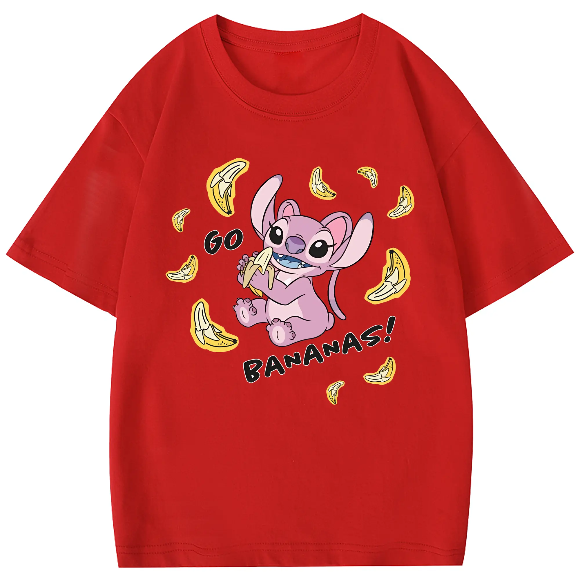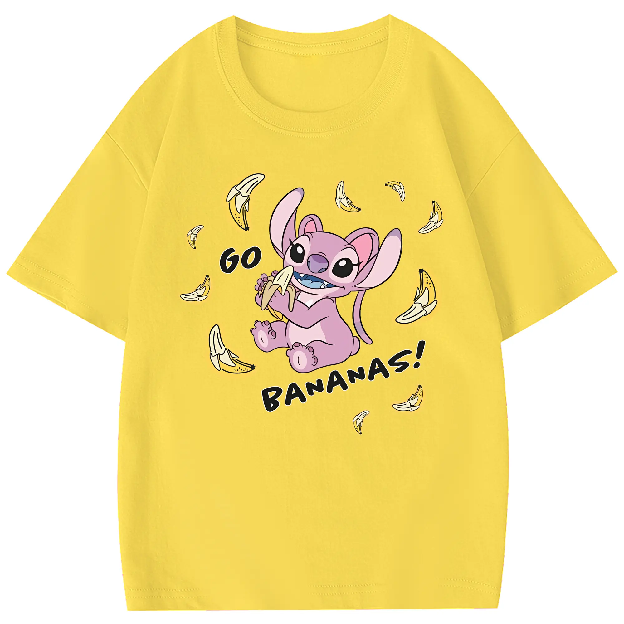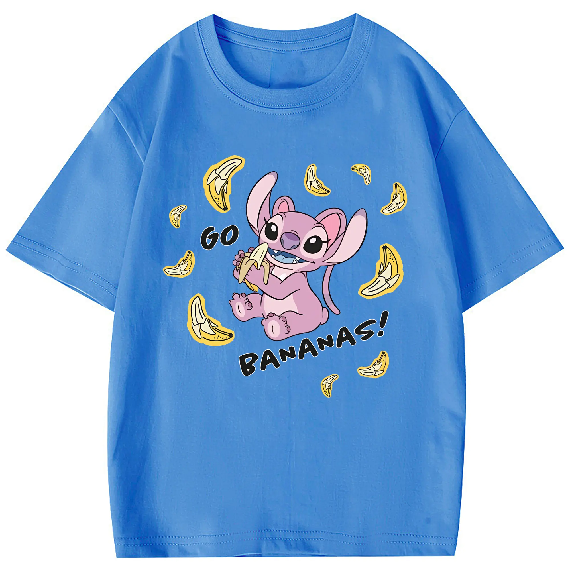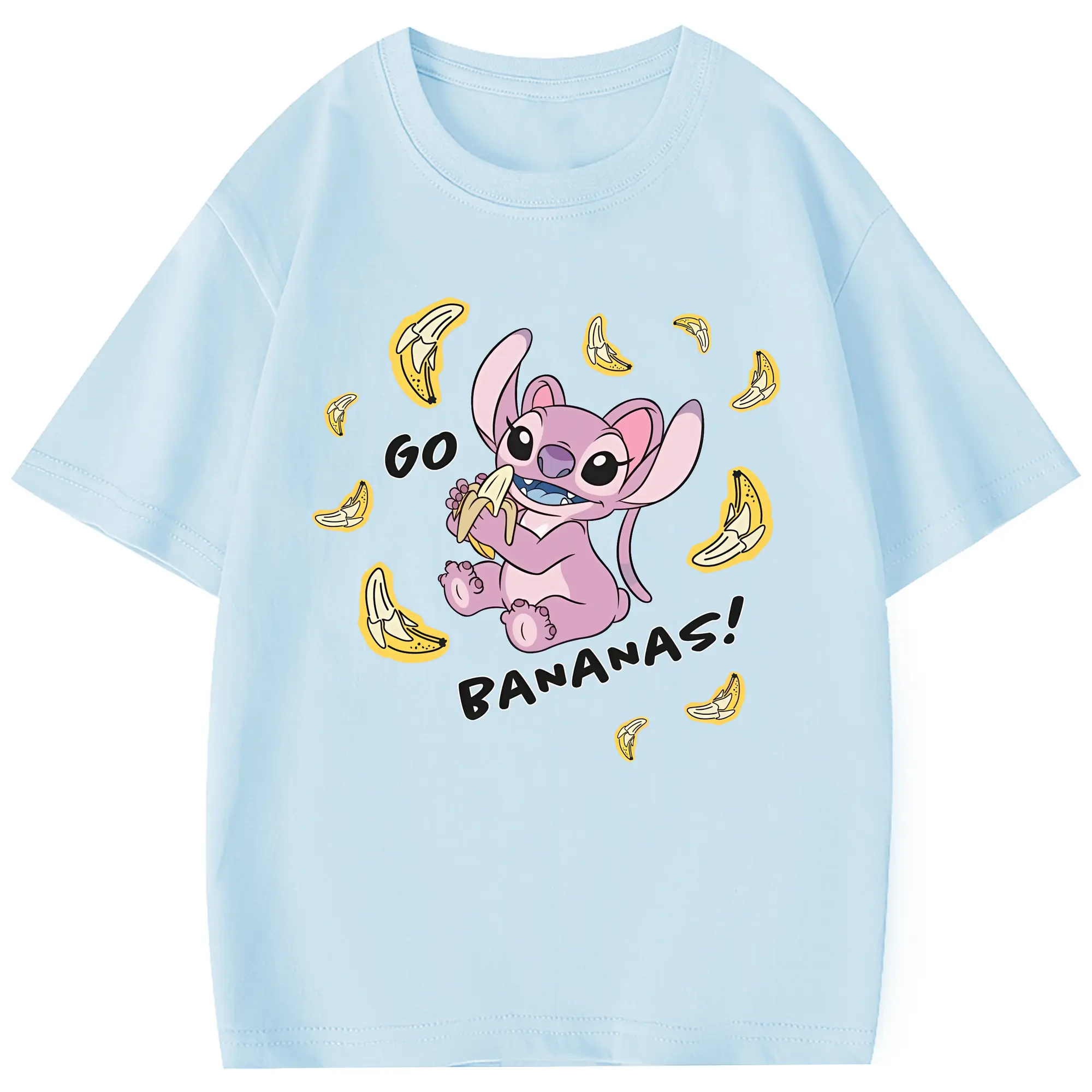 リロ&スティッチ グッズ エンジェル - 綿100% 半袖Tシャツ ・ フロントプリント ・ 快適 通気性 ・ 日常使い 散歩 スポーツ用