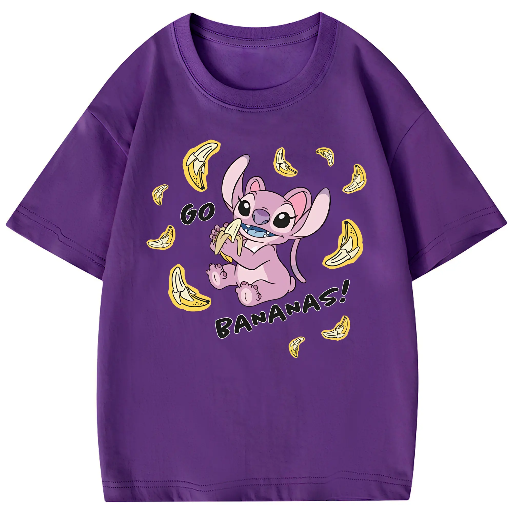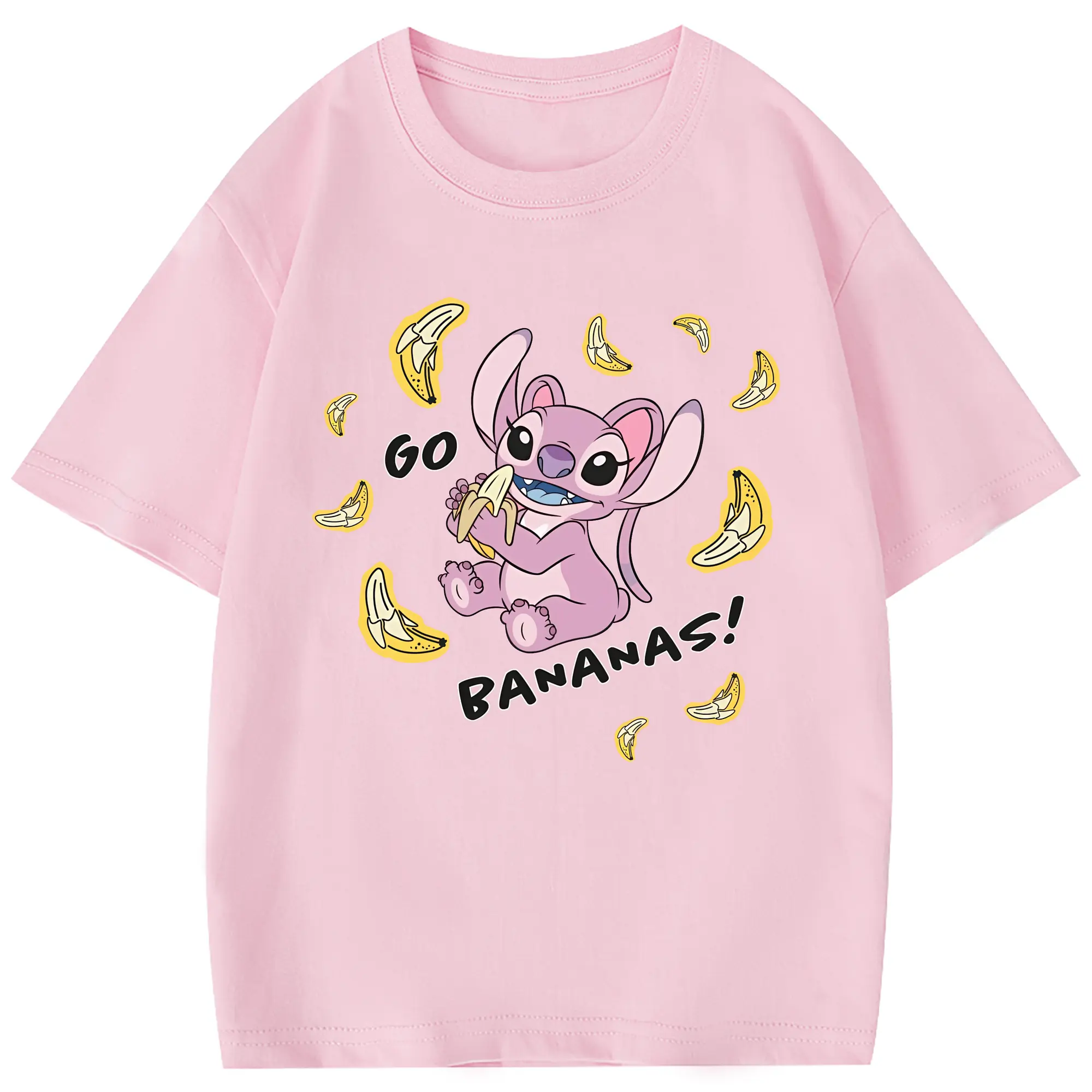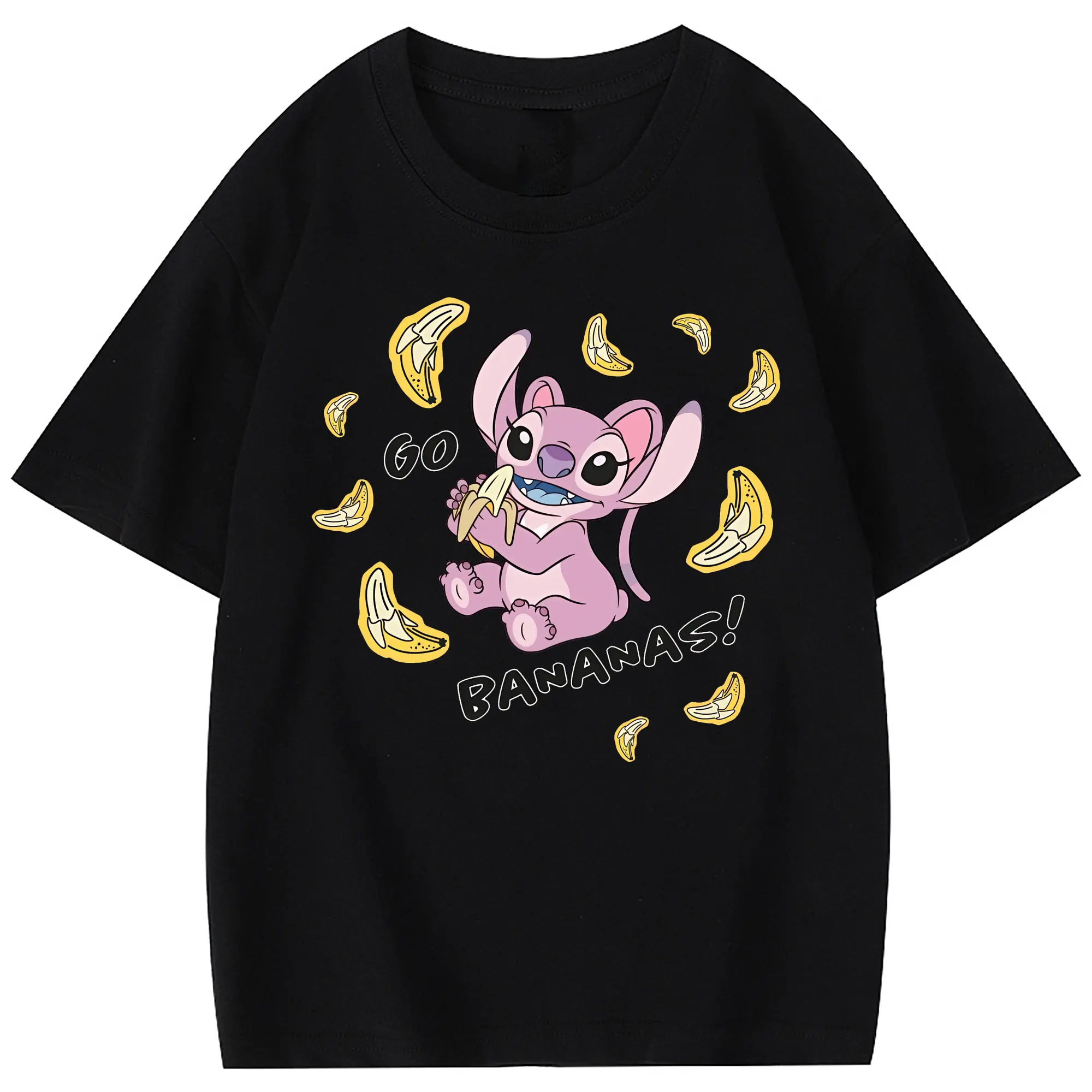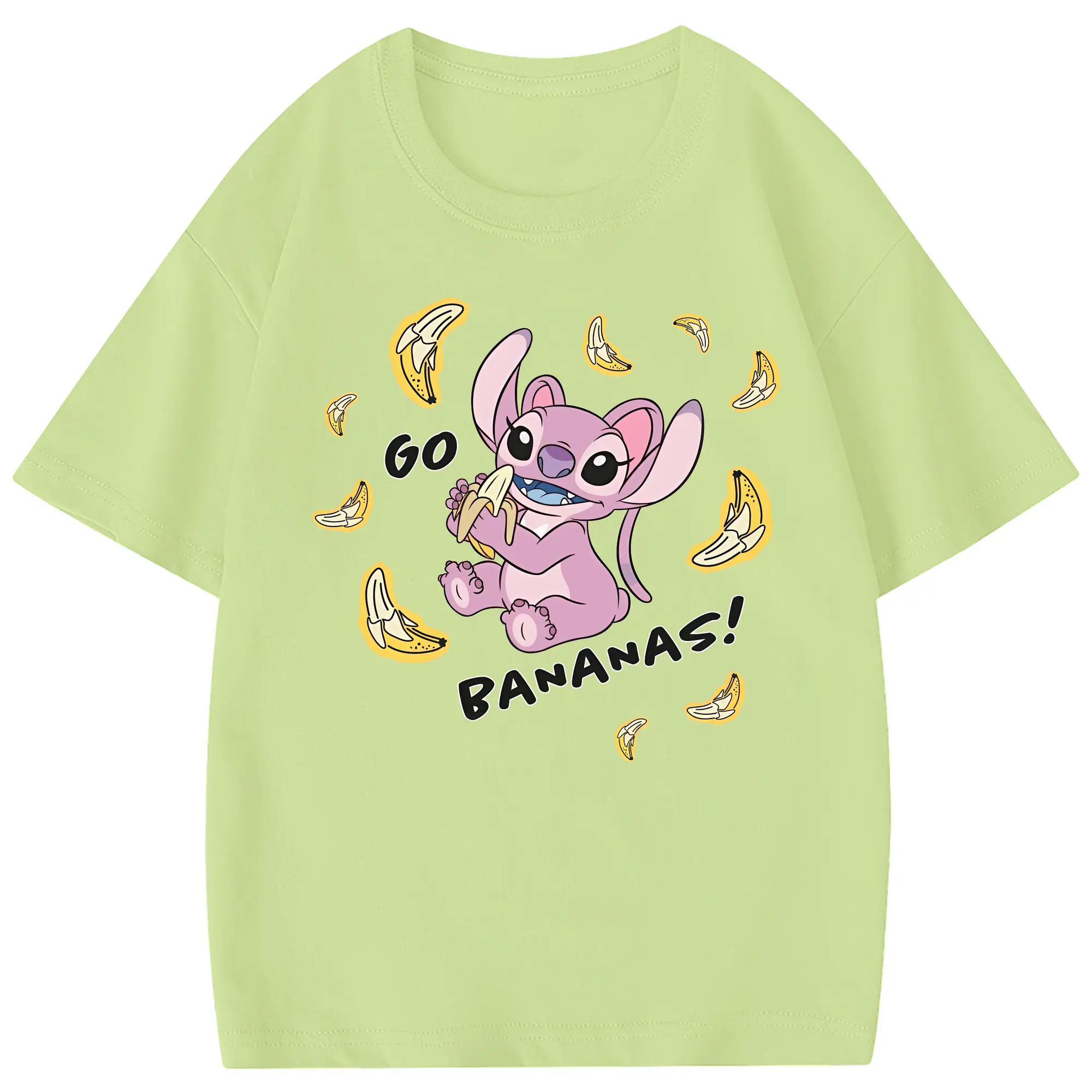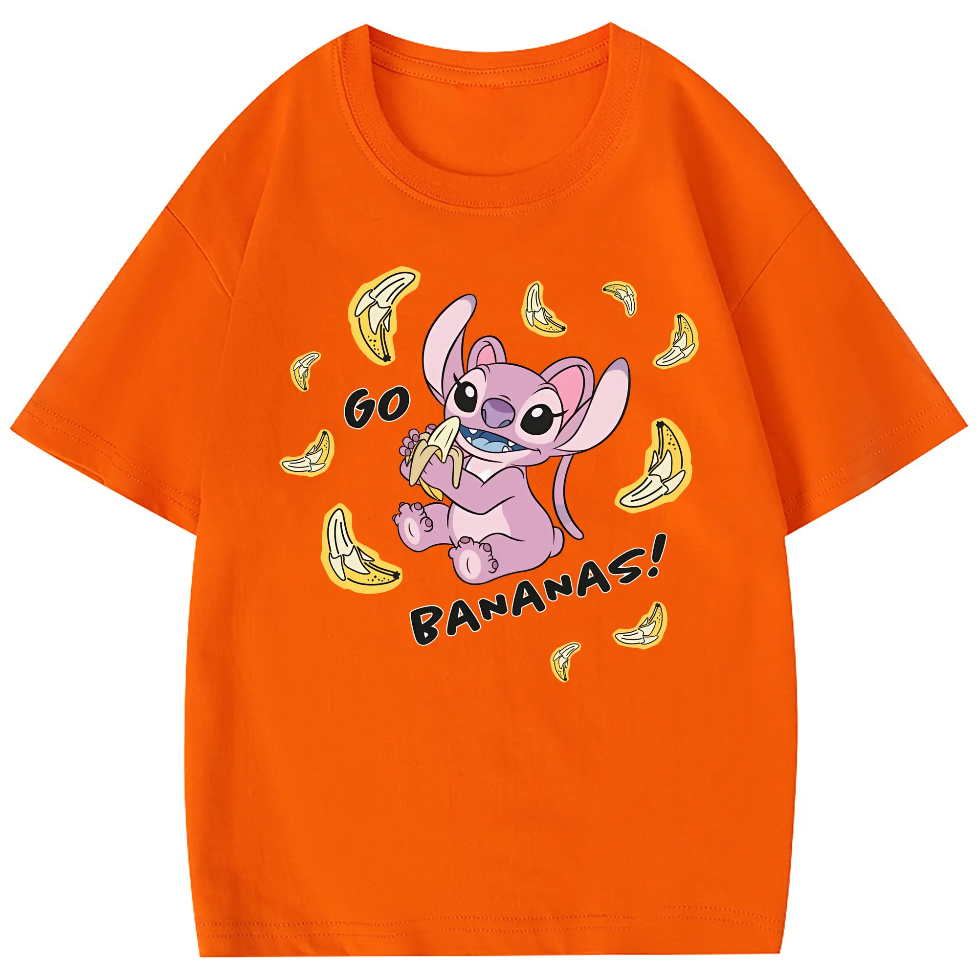 リロ&スティッチ グッズ エンジェル - 綿100% 半袖Tシャツ ・ フロントプリント ・ 快適 通気性 ・ 日常使い 散歩 スポーツ用