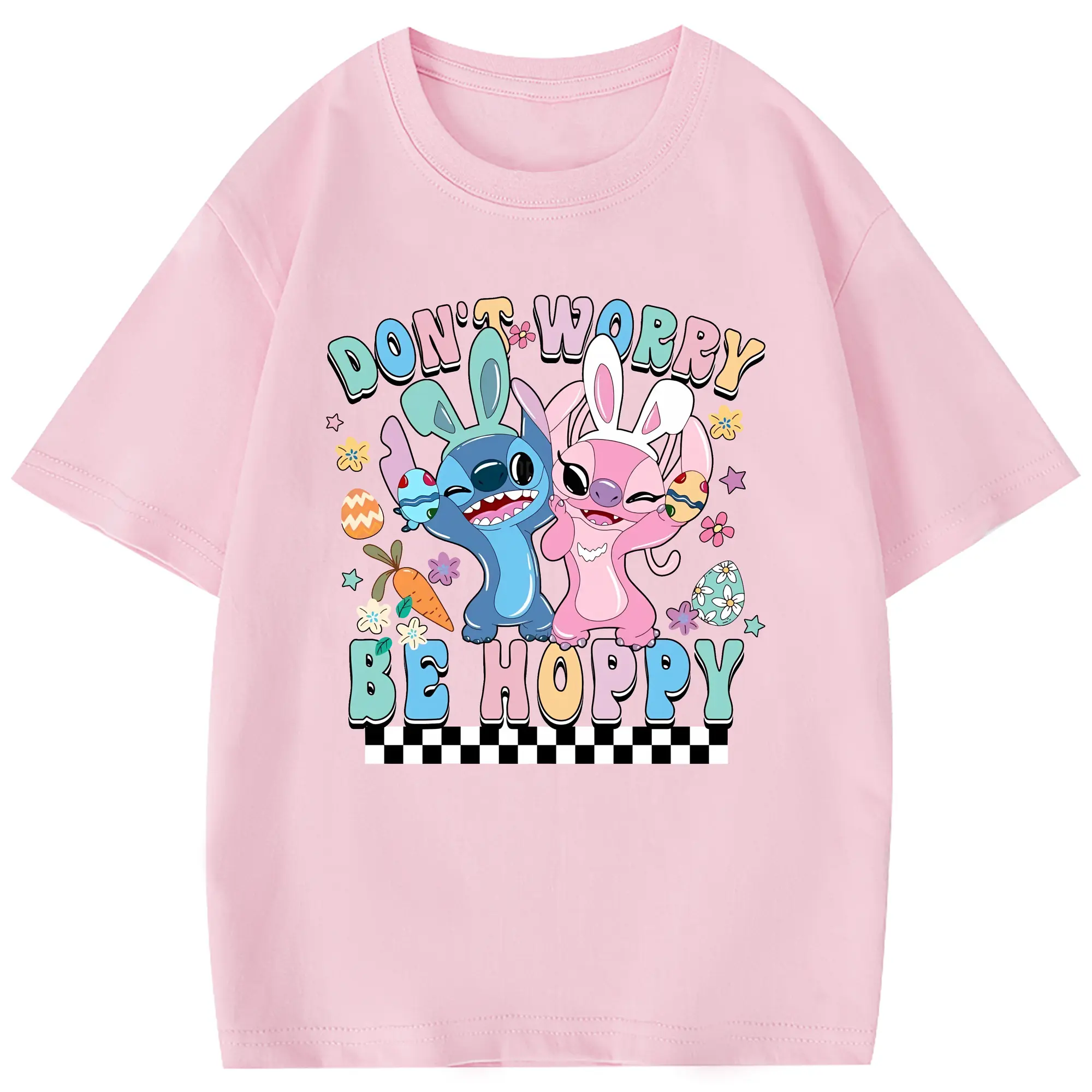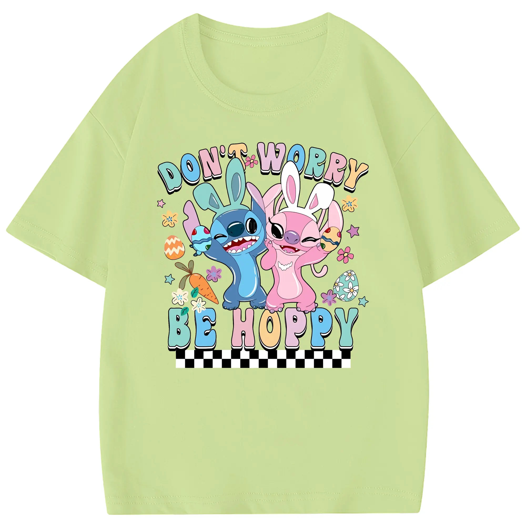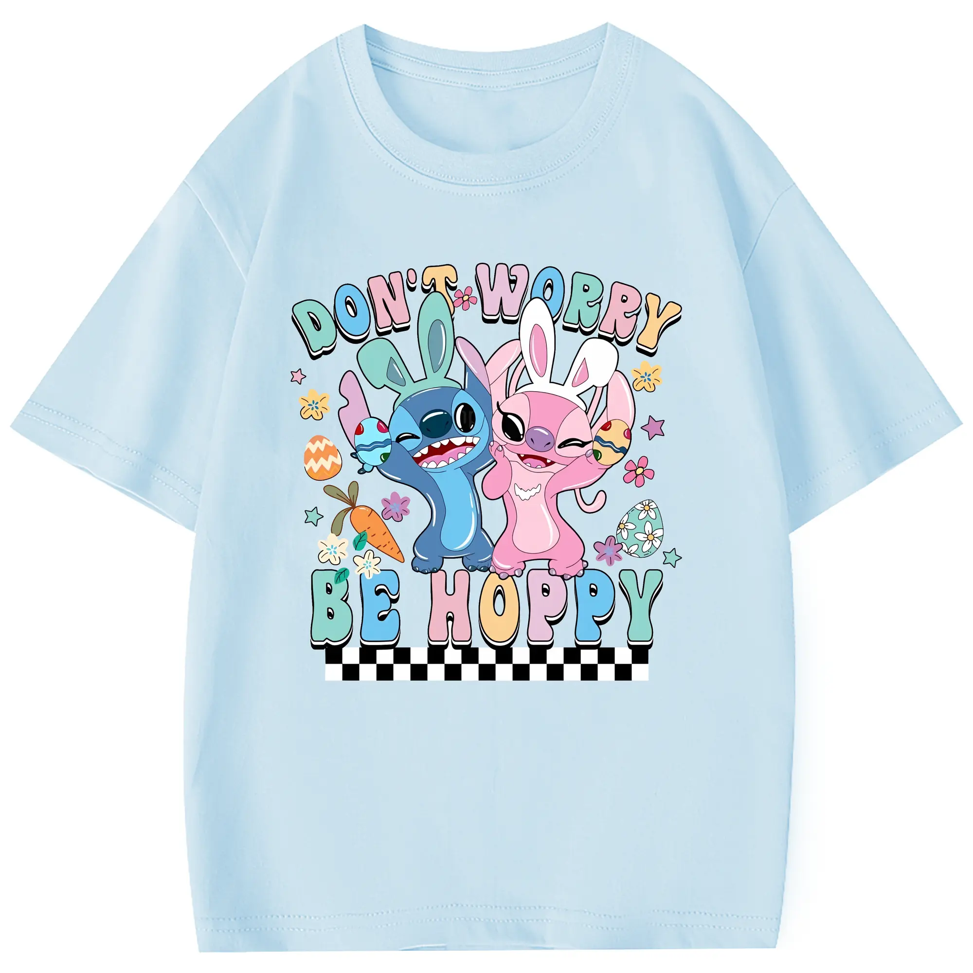 リロ&スティッチ グッズ エンジェル - 綿100% 半袖Tシャツ ・ フロントプリント ・ 快適 通気性 ・ 日常使い 散歩 スポーツ用