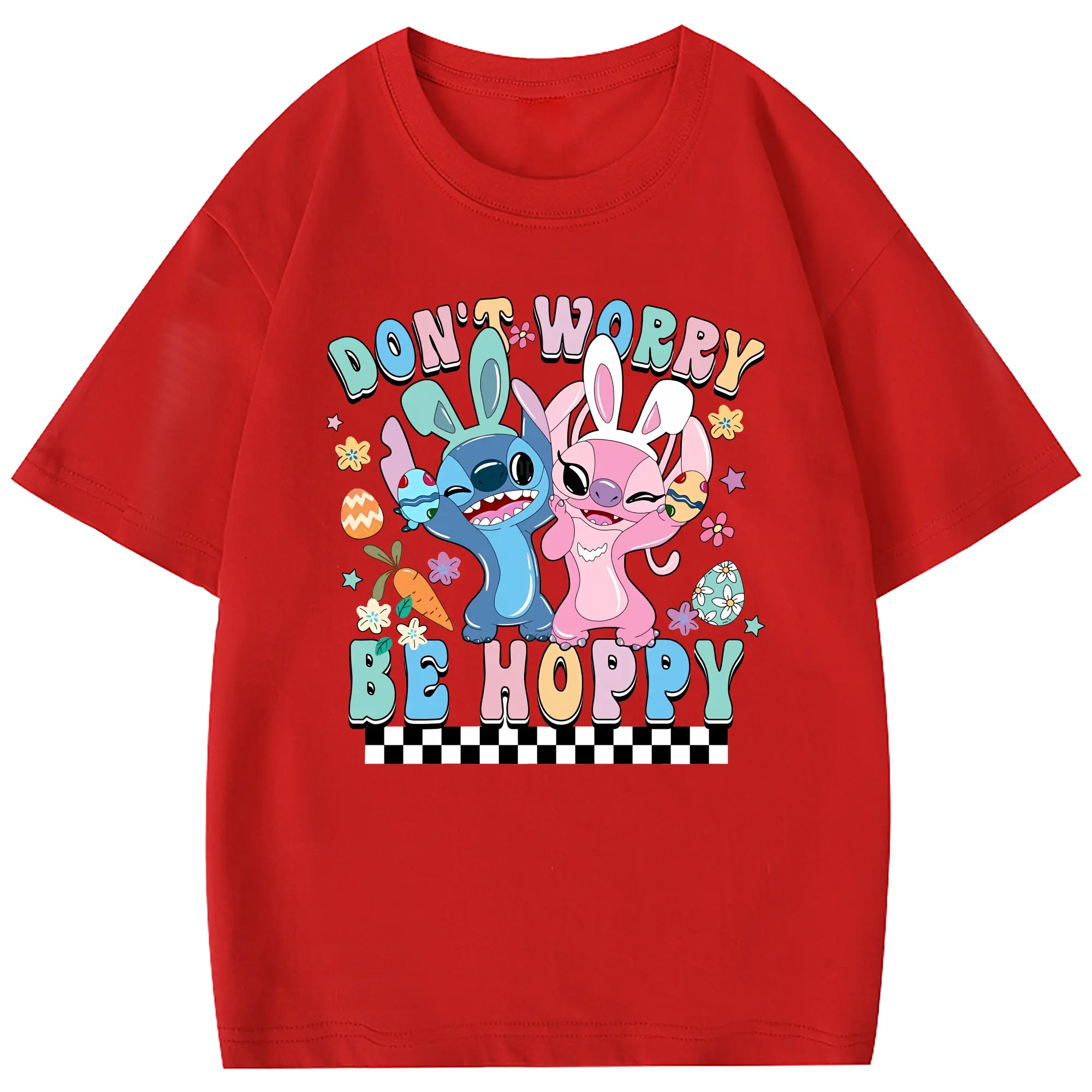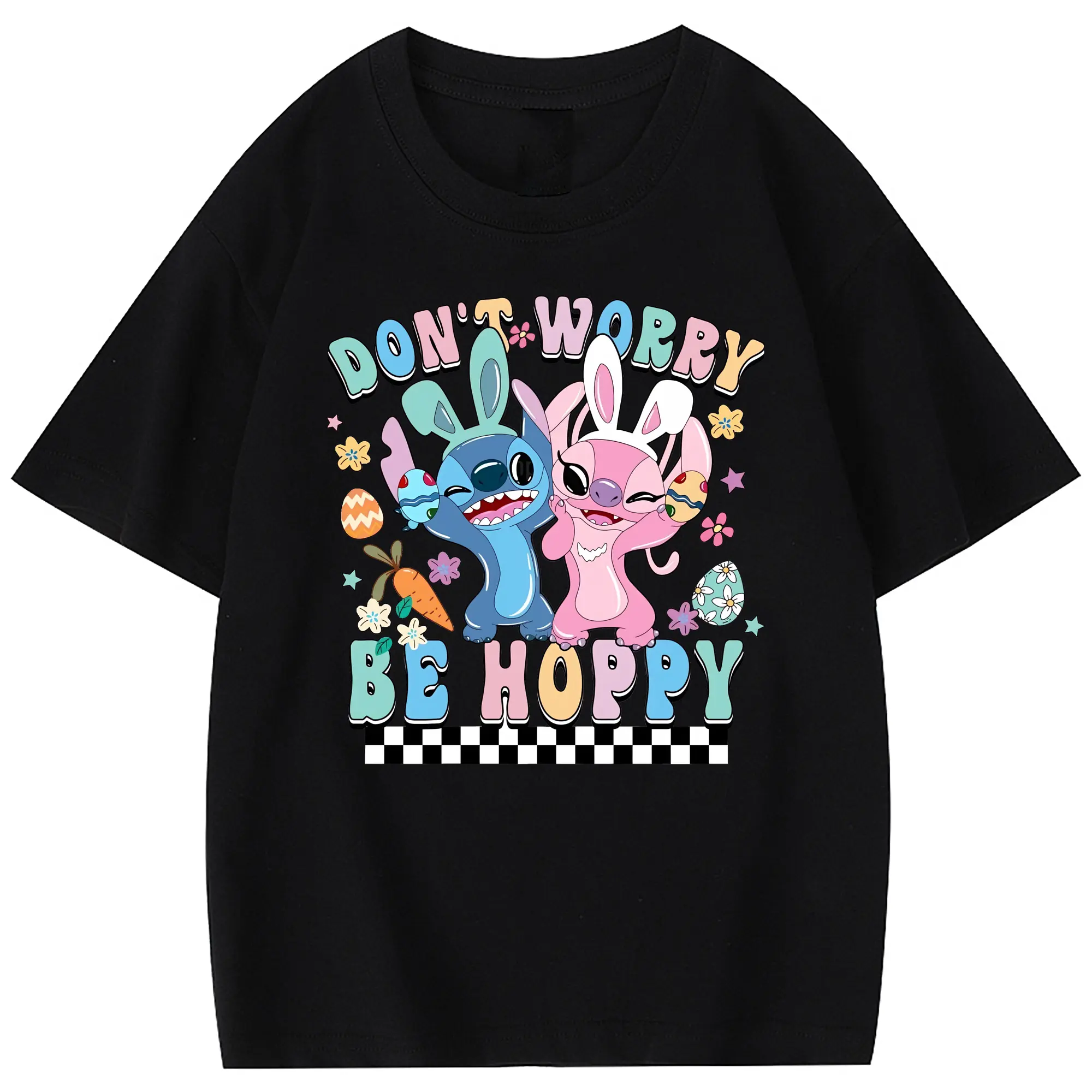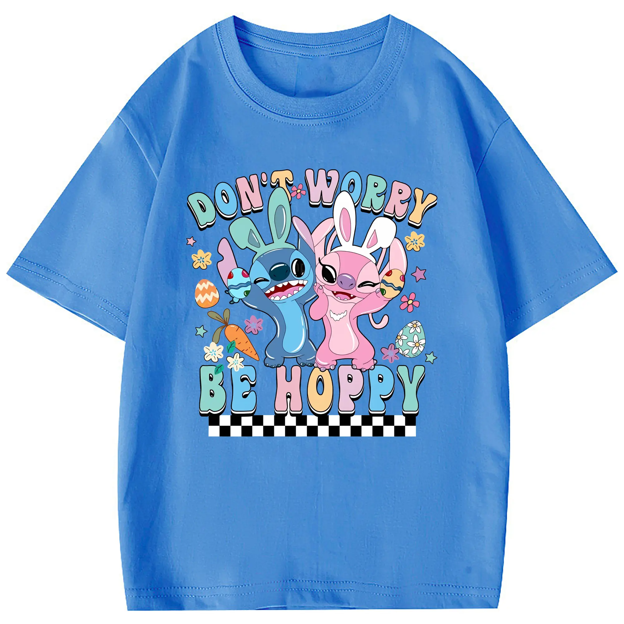 リロ&スティッチ グッズ エンジェル - 綿100% 半袖Tシャツ ・ フロントプリント ・ 快適 通気性 ・ 日常使い 散歩 スポーツ用