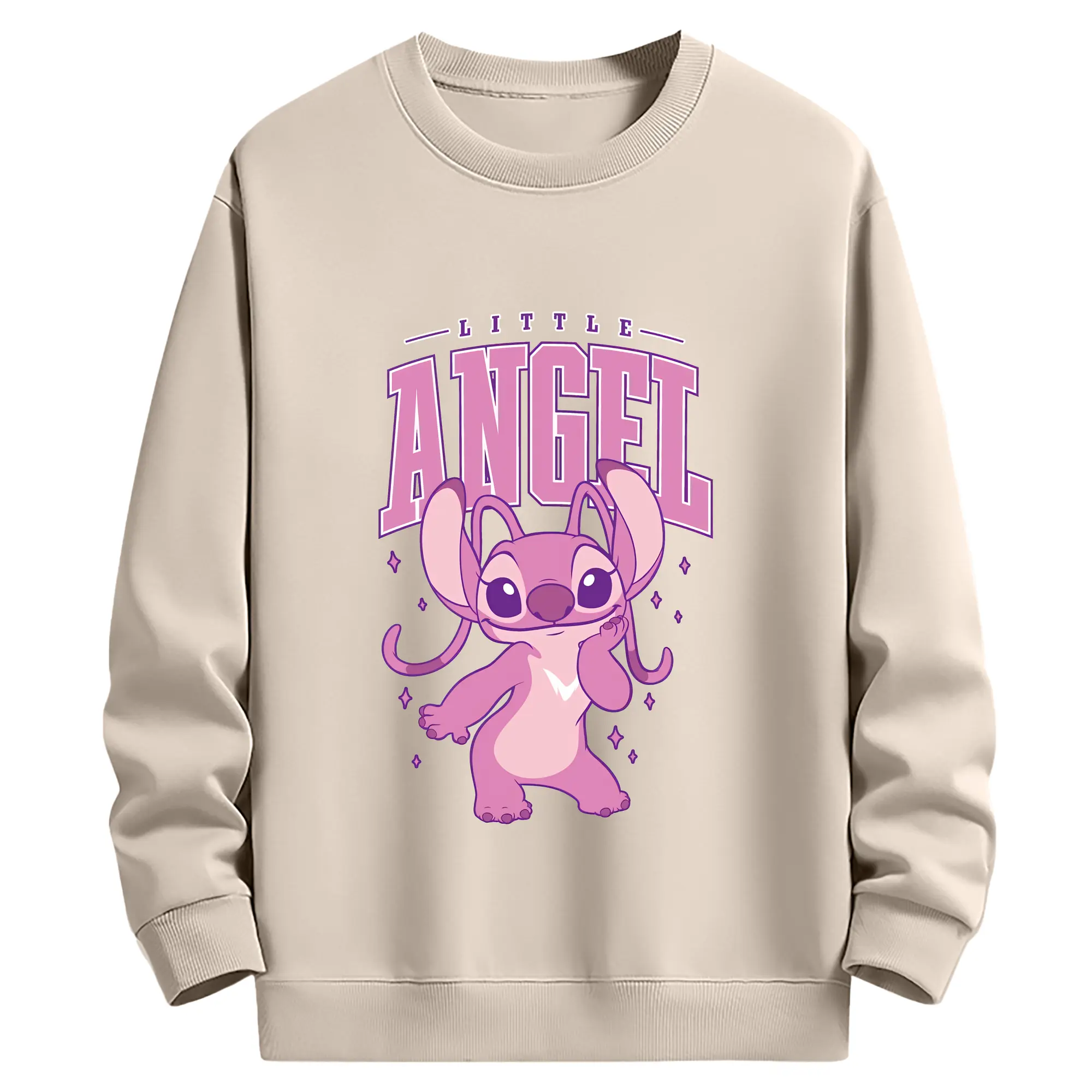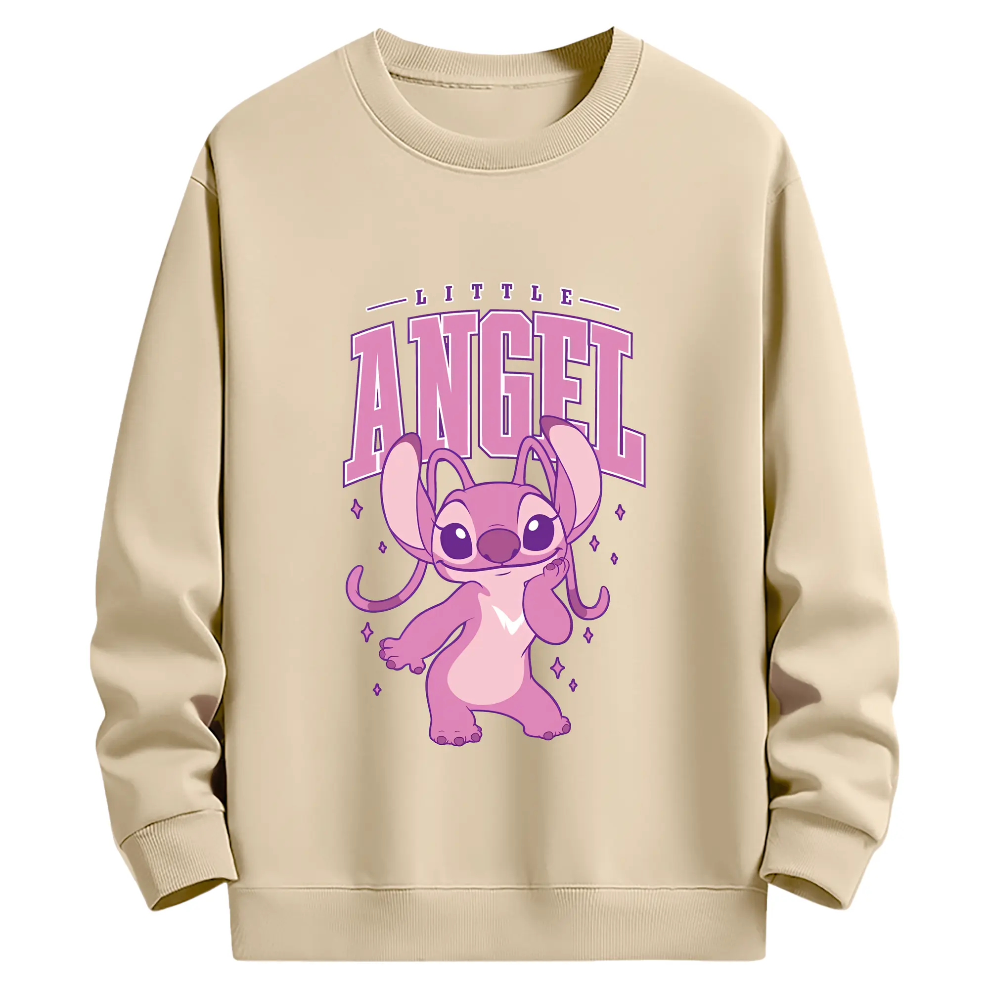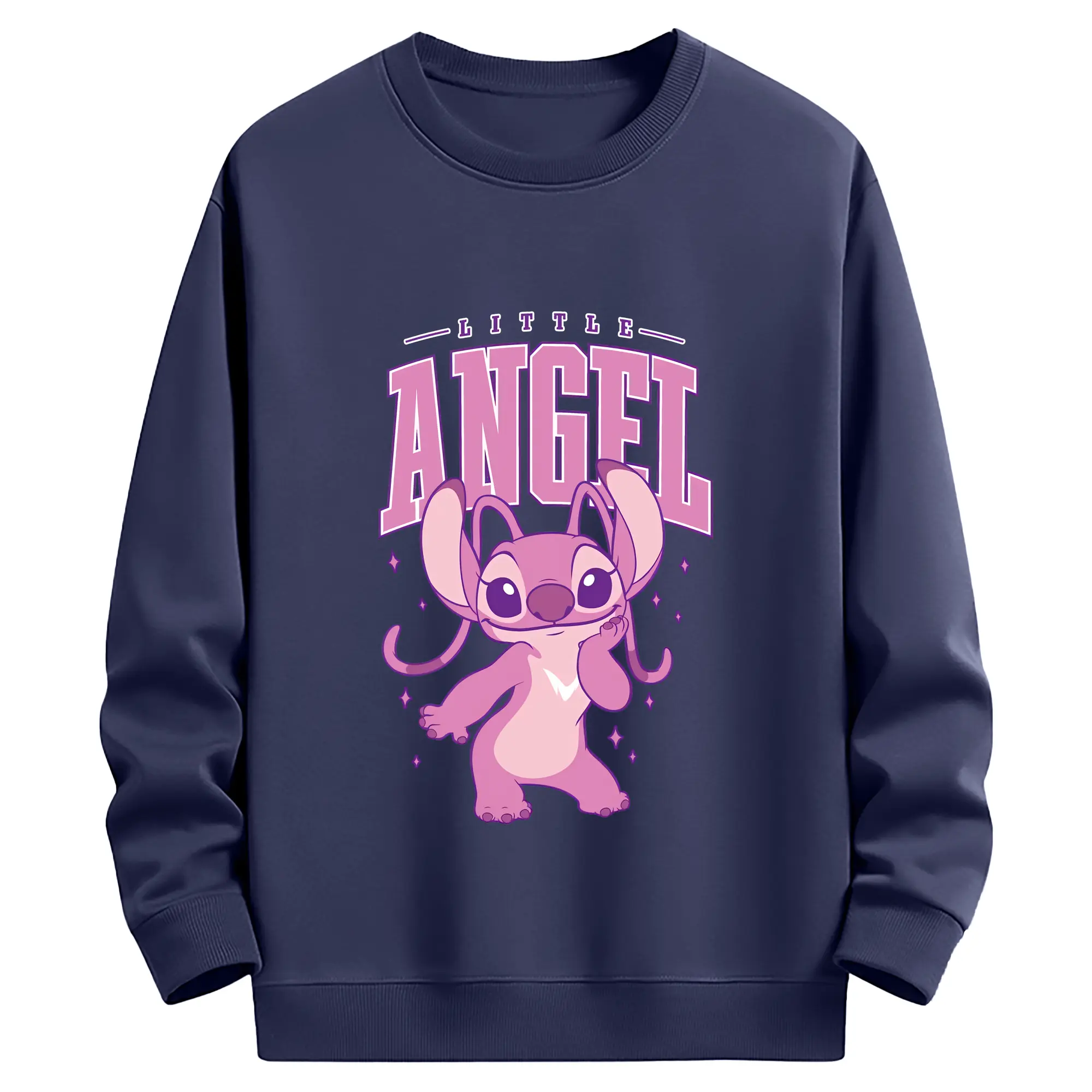 リロ&スティッチ グッズ エンジェル - 薄手 クルーネック スウェット 裏毛260g · ポリエステル 春秋向け カジュアル 男女兼用 · トレーナー デイリー スポーツ 散歩に最適