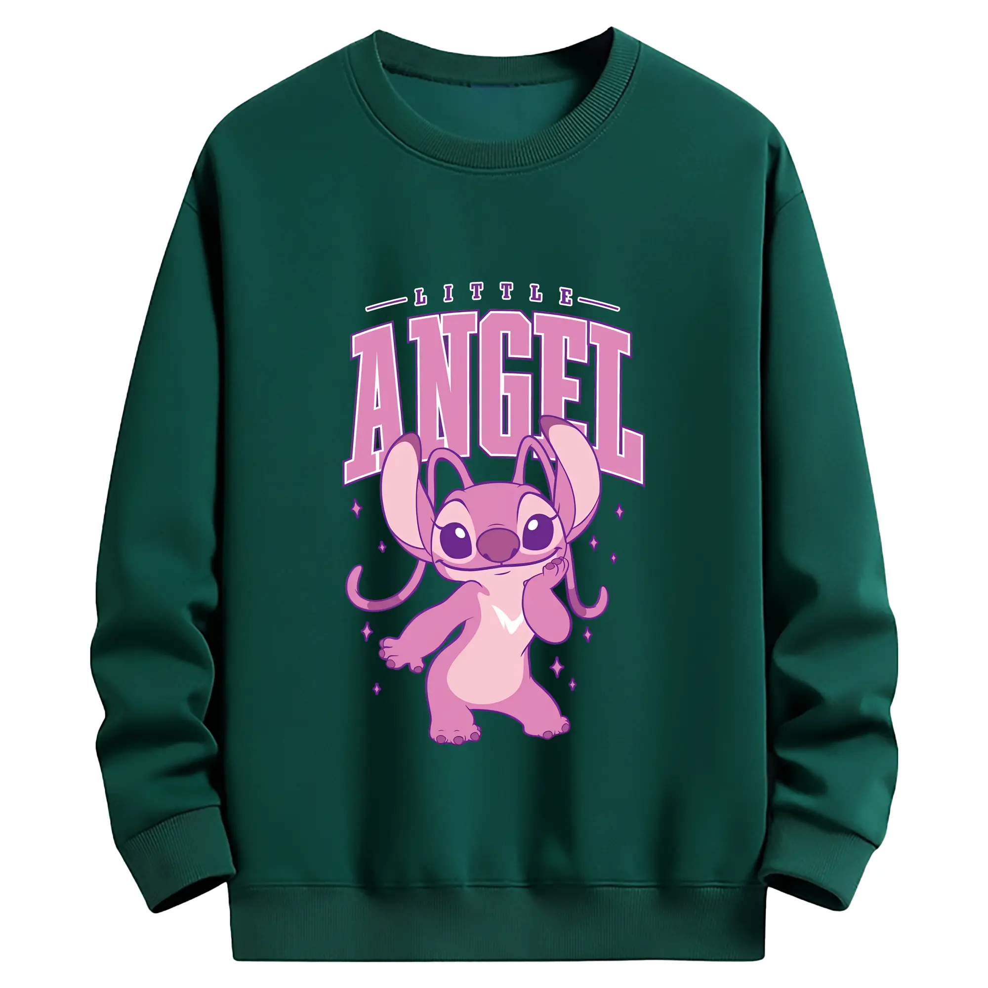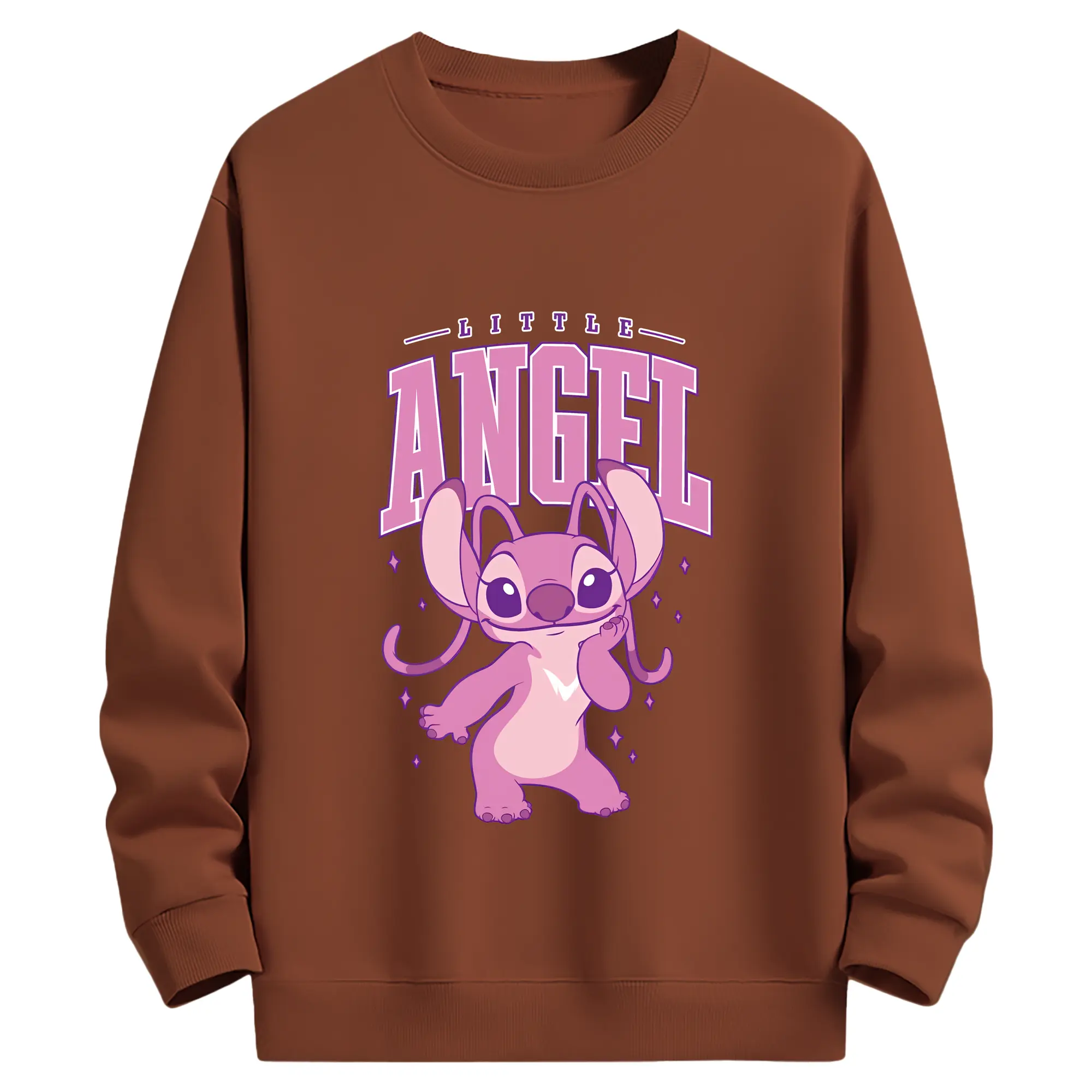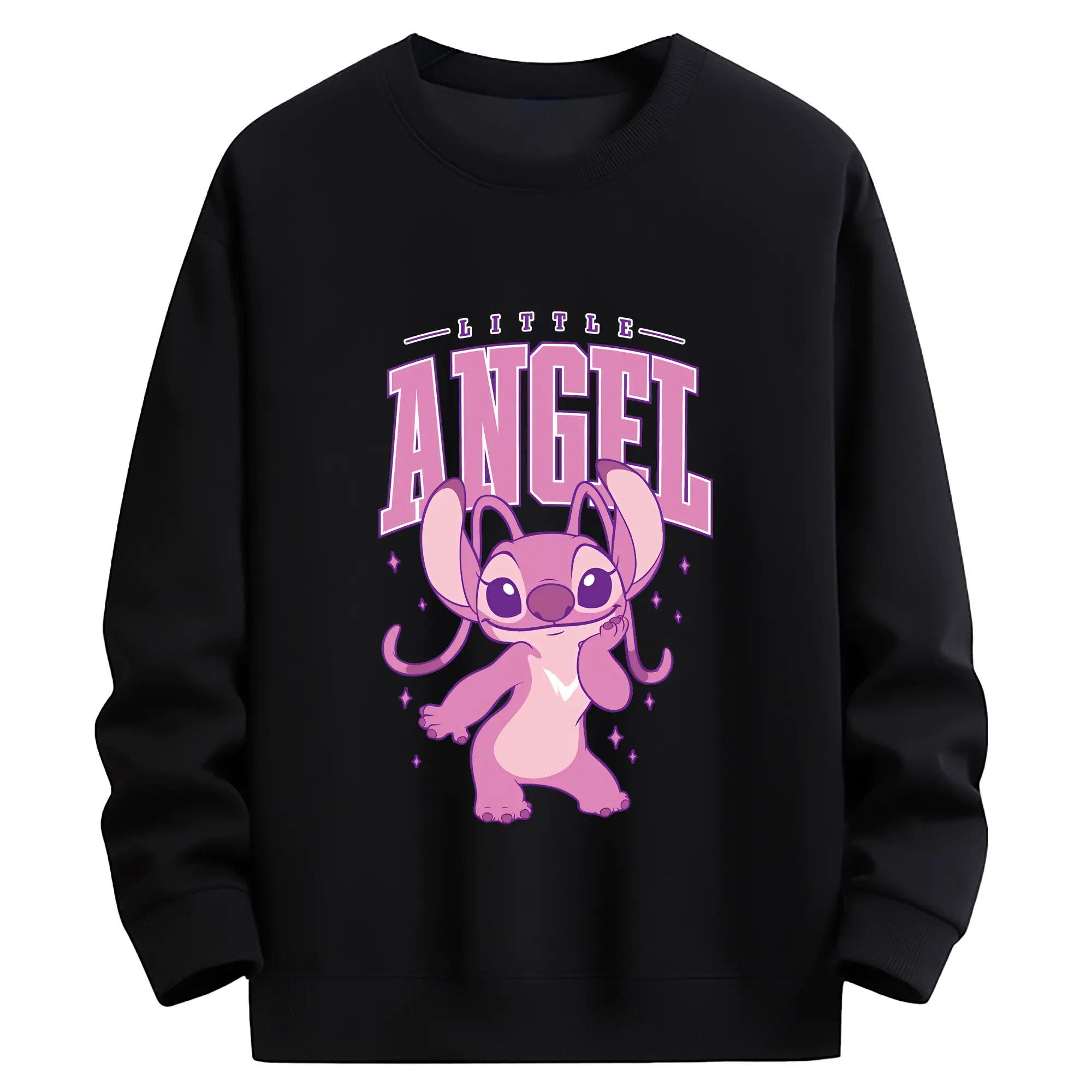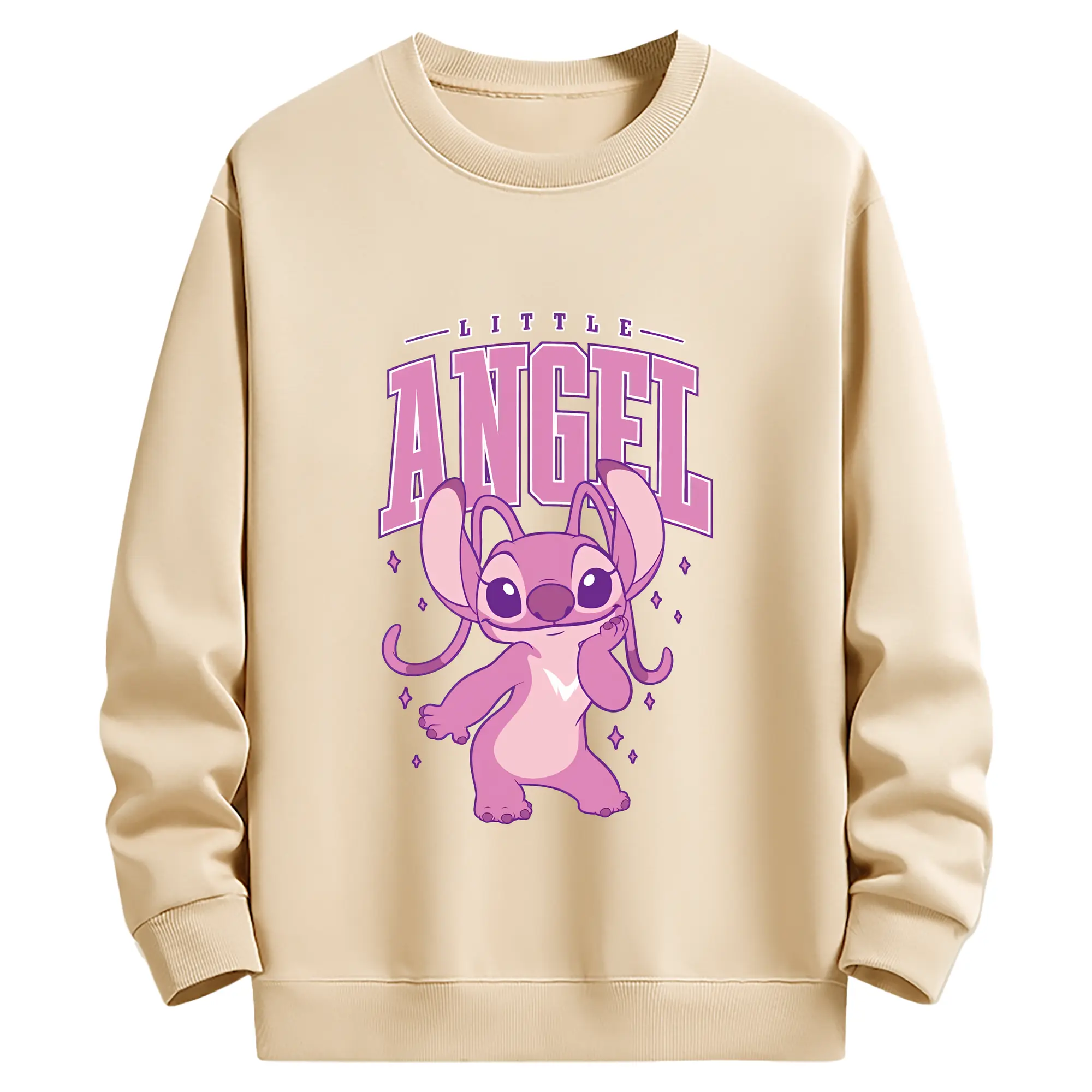 リロ&スティッチ グッズ エンジェル - 薄手 クルーネック スウェット 裏毛260g · ポリエステル 春秋向け カジュアル 男女兼用 · トレーナー デイリー スポーツ 散歩に最適
