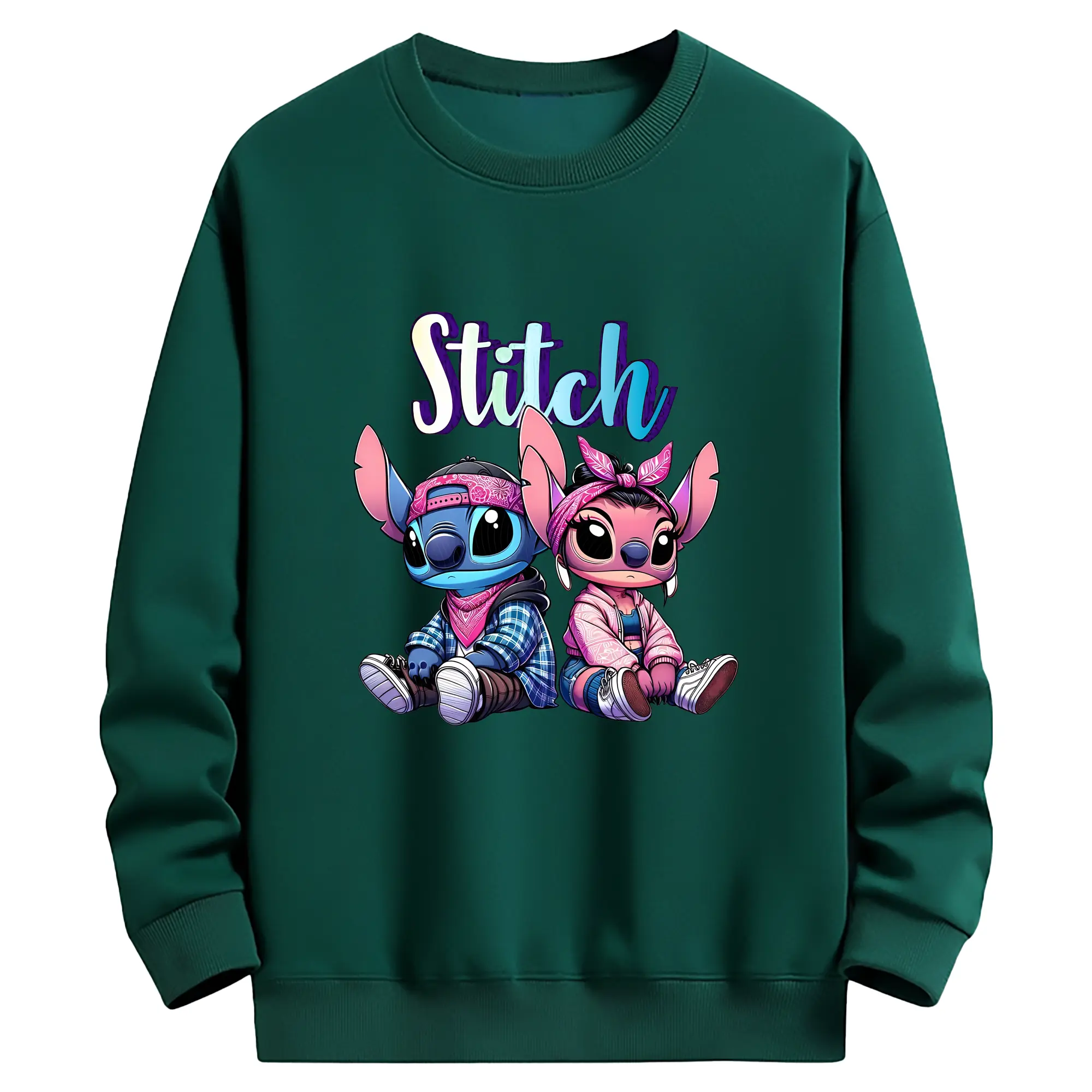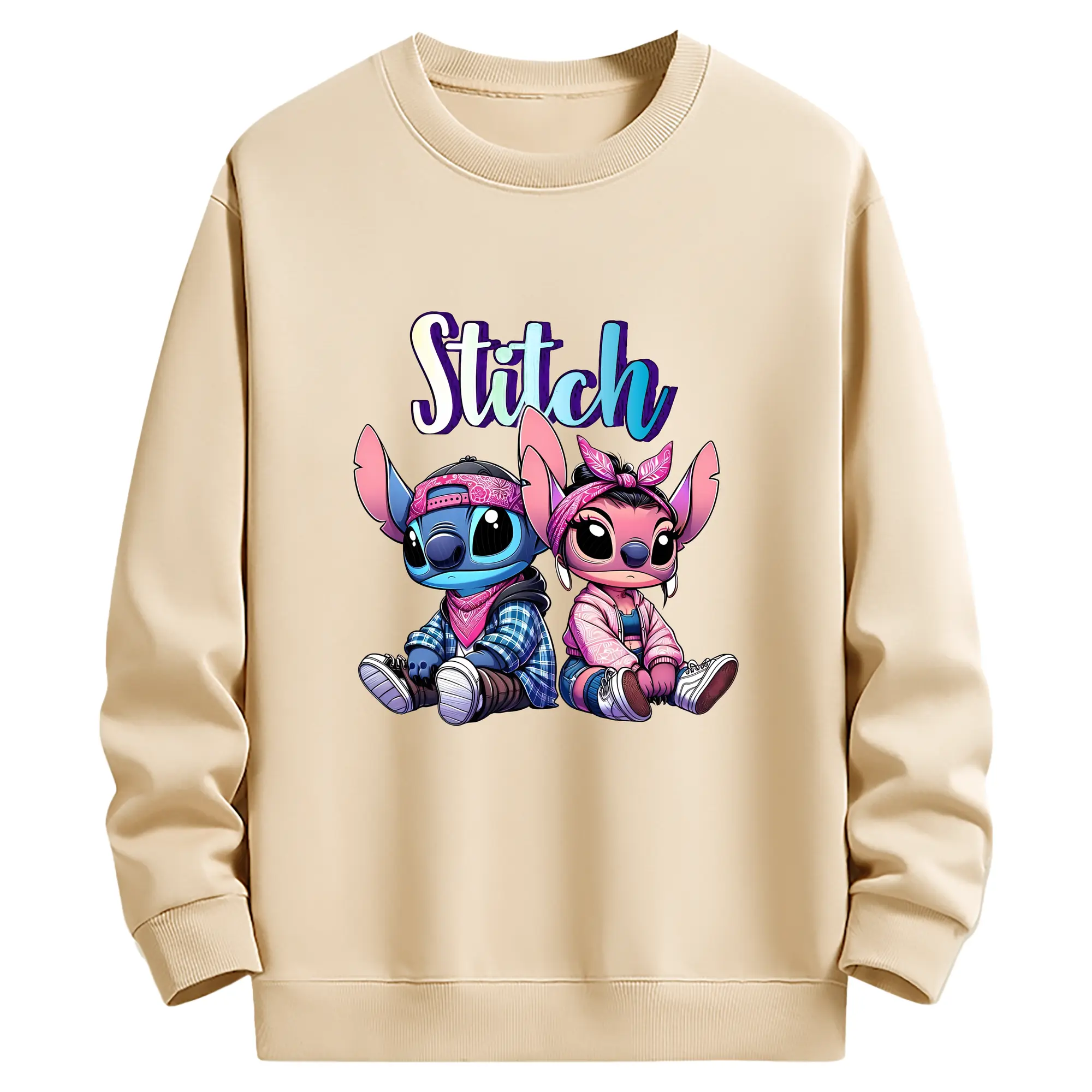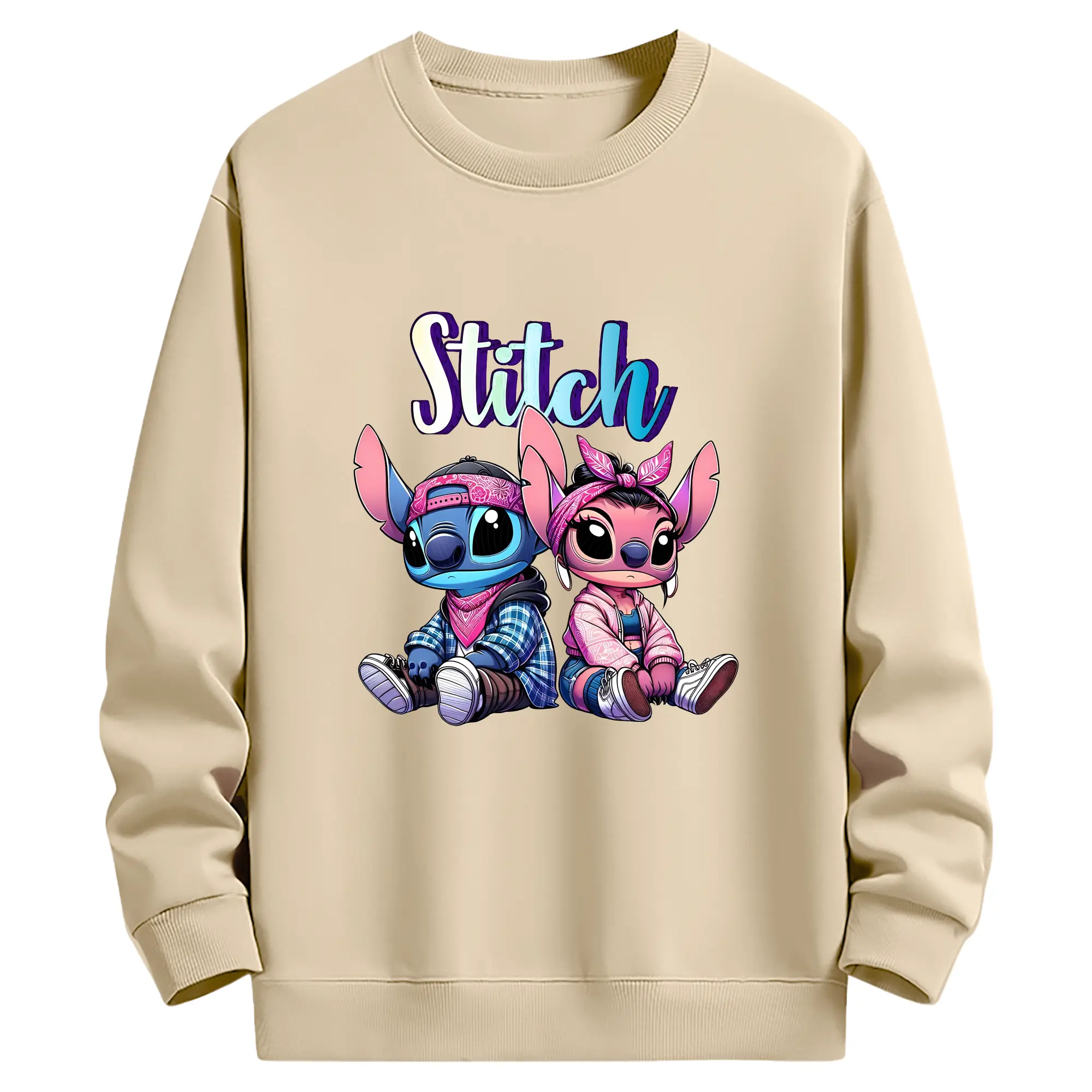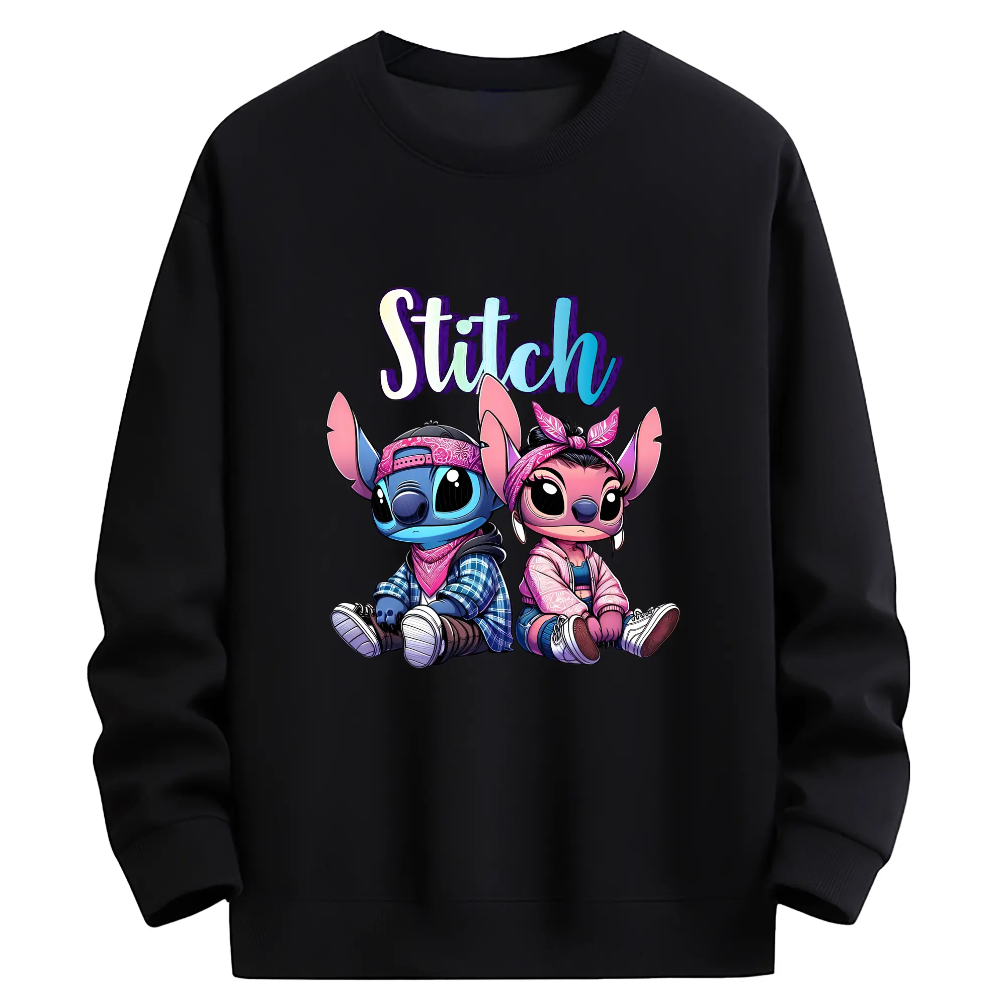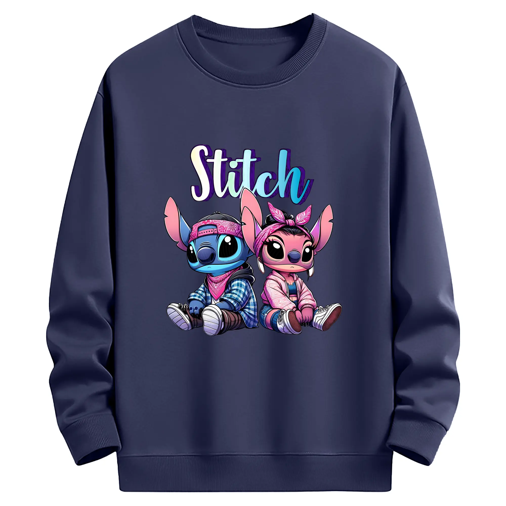 リロ&スティッチ グッズ エンジェル - 薄手 クルーネック スウェット 裏毛260g · ポリエステル 春秋向け カジュアル 男女兼用 · トレーナー デイリー スポーツ 散歩に最適