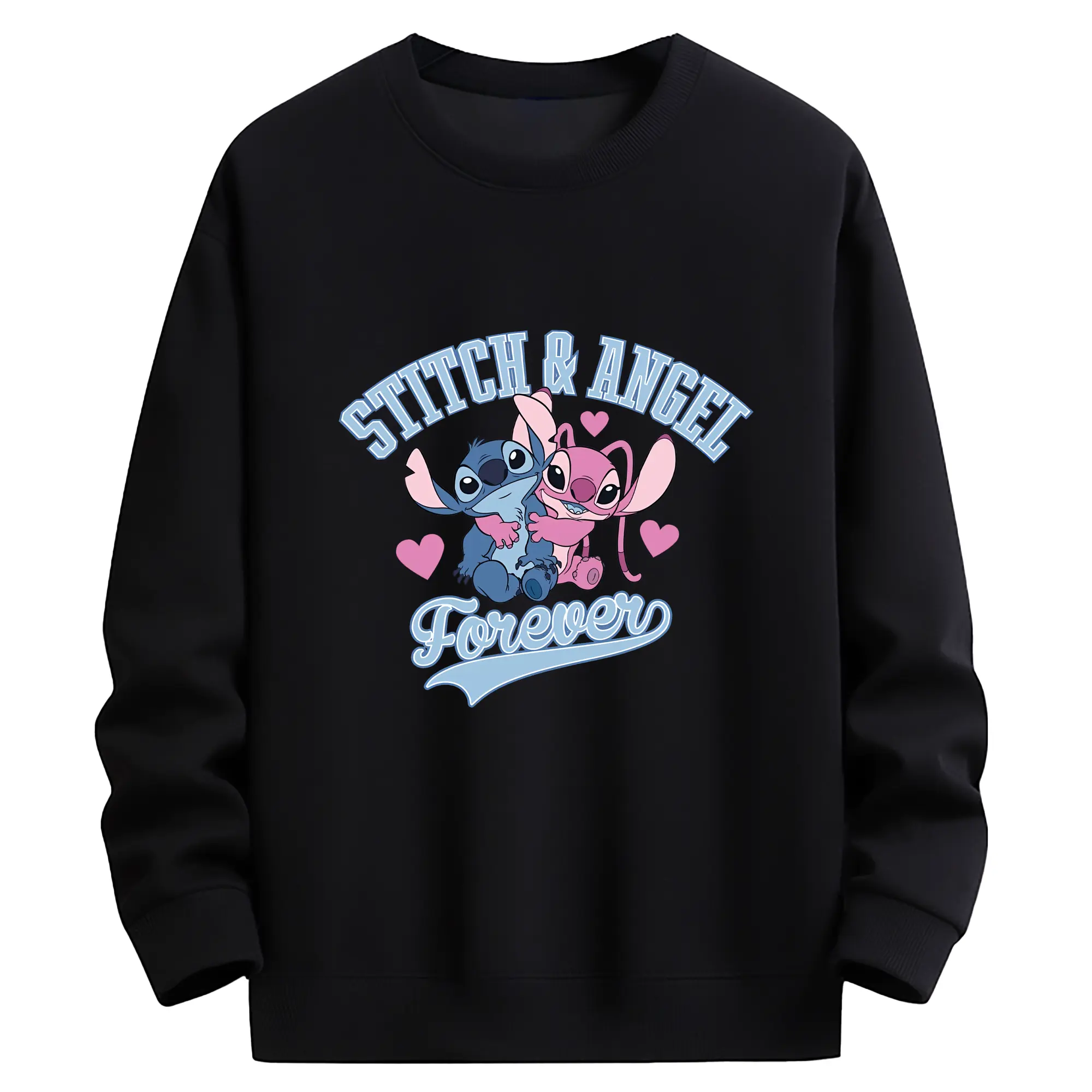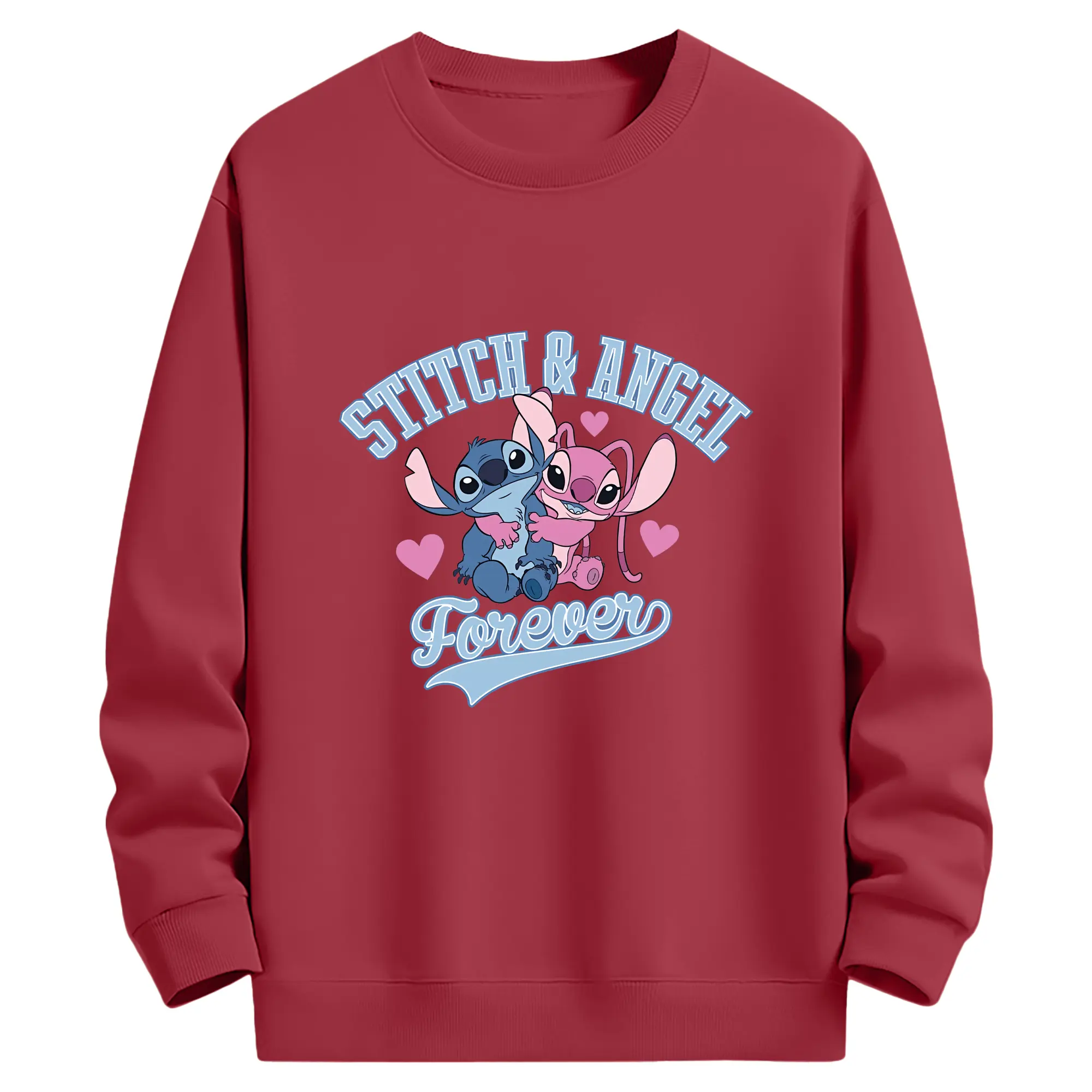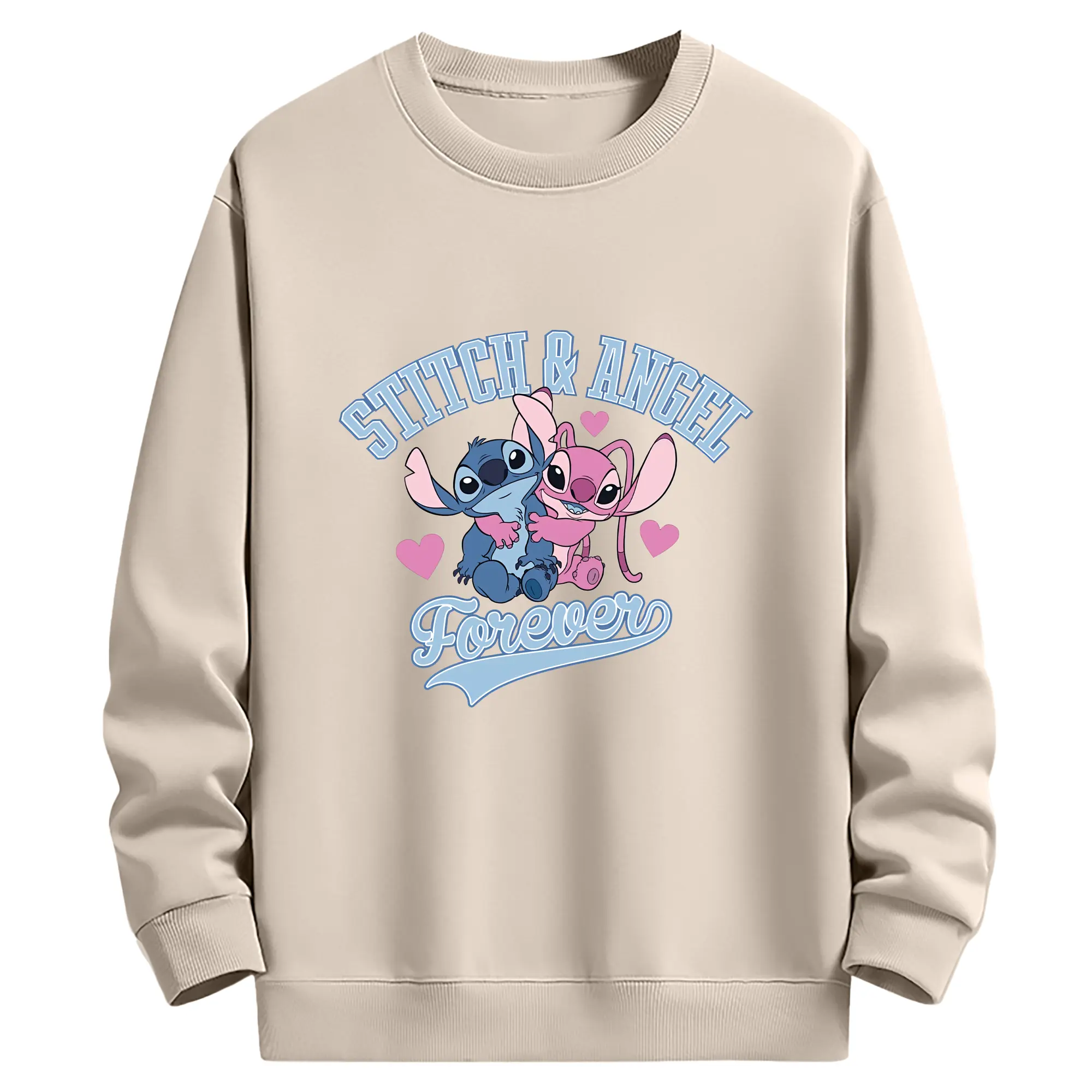 リロ&スティッチ グッズ エンジェル - 薄手 クルーネック スウェット 裏毛260g · ポリエステル 春秋向け カジュアル 男女兼用 · トレーナー デイリー スポーツ 散歩に最適