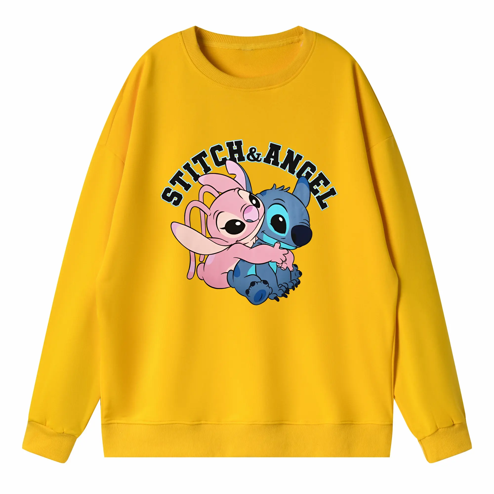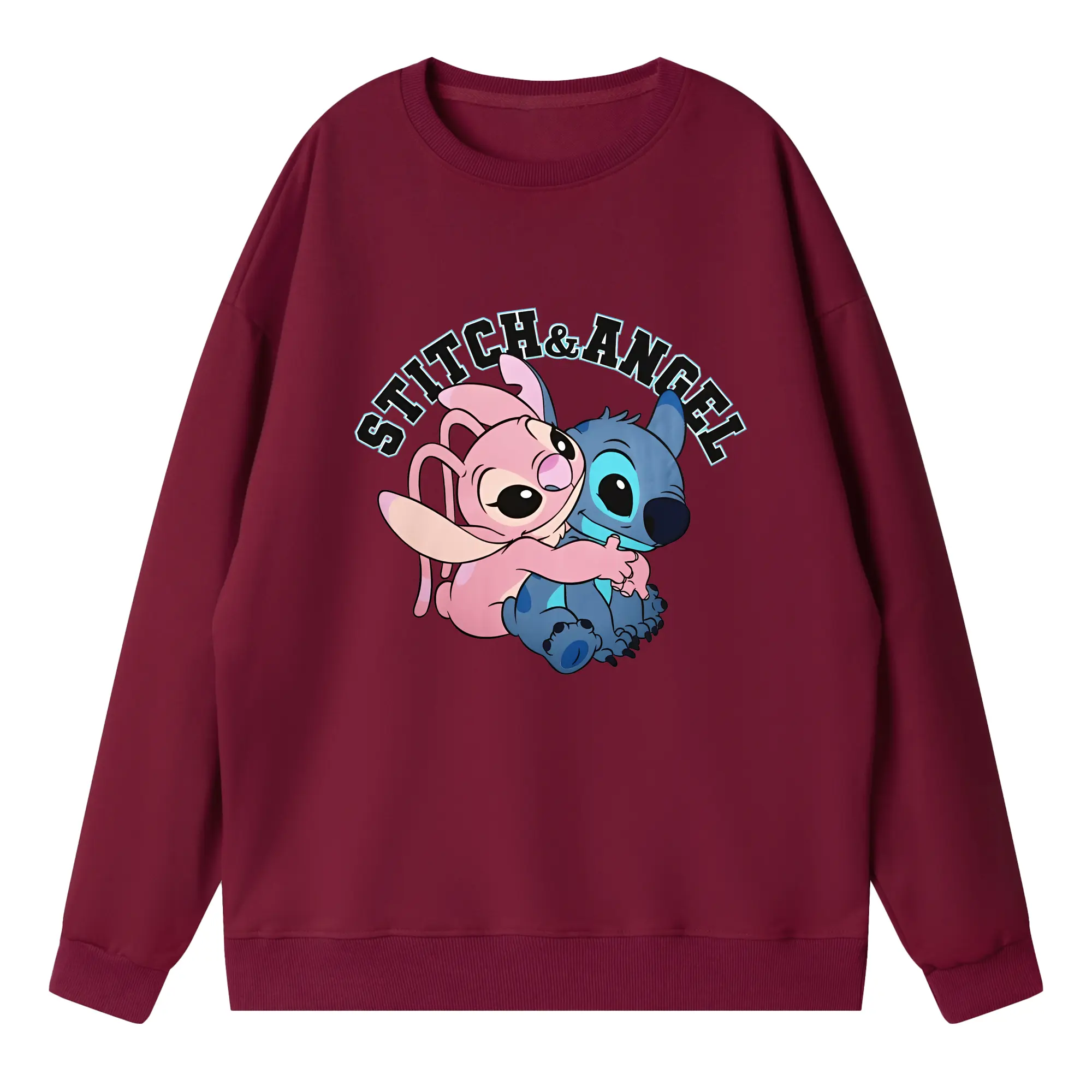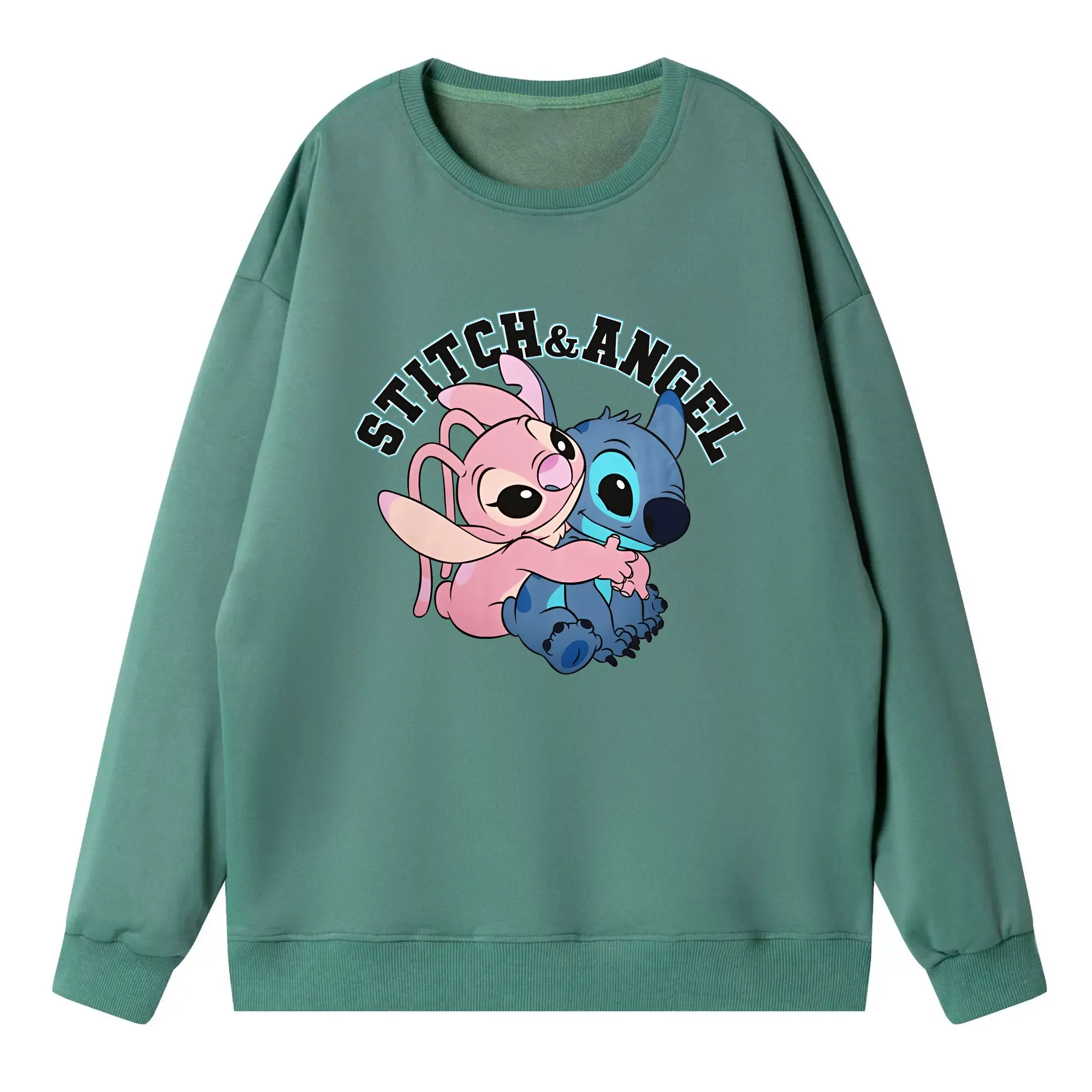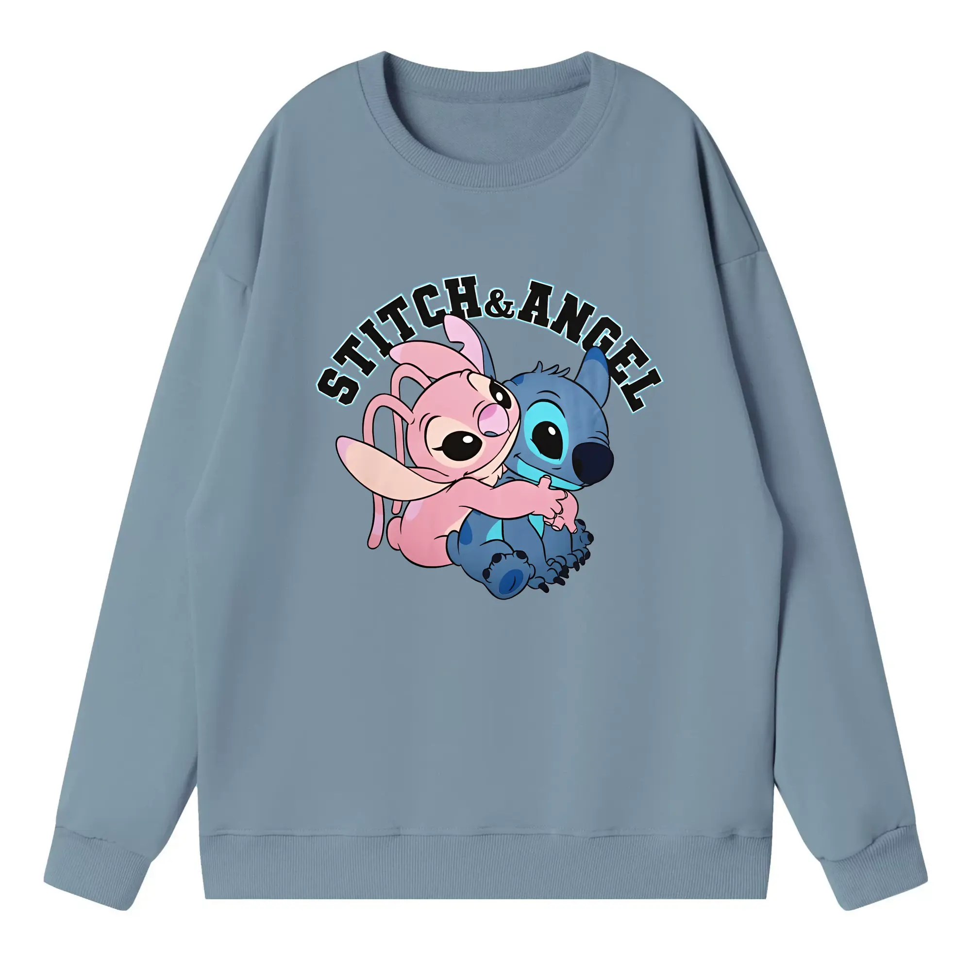 リロ&スティッチ グッズ エンジェル - 高品質 クルーネック スウェット ・ コットン59% ポリエステル41% ・ ユニセックス 長袖 トレーナー ・ カジュアル デイリー スポーツ 散歩用