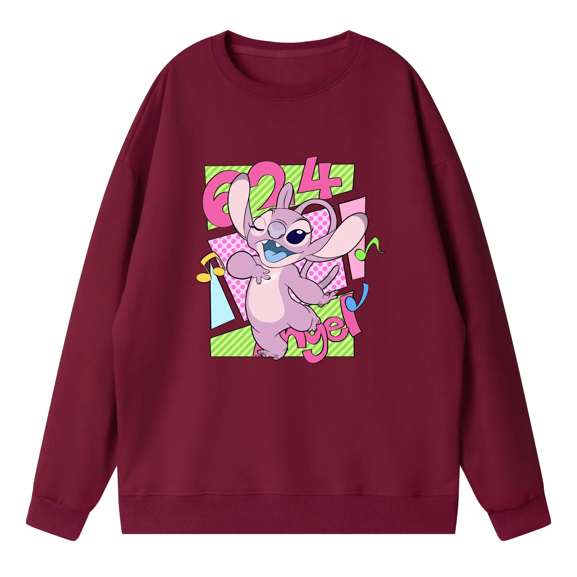 リロ&スティッチ グッズ エンジェル - 高品質 クルーネック スウェット ・ コットン59% ポリエステル41% ・ ユニセックス 長袖 トレーナー ・ カジュアル デイリー スポーツ 散歩用