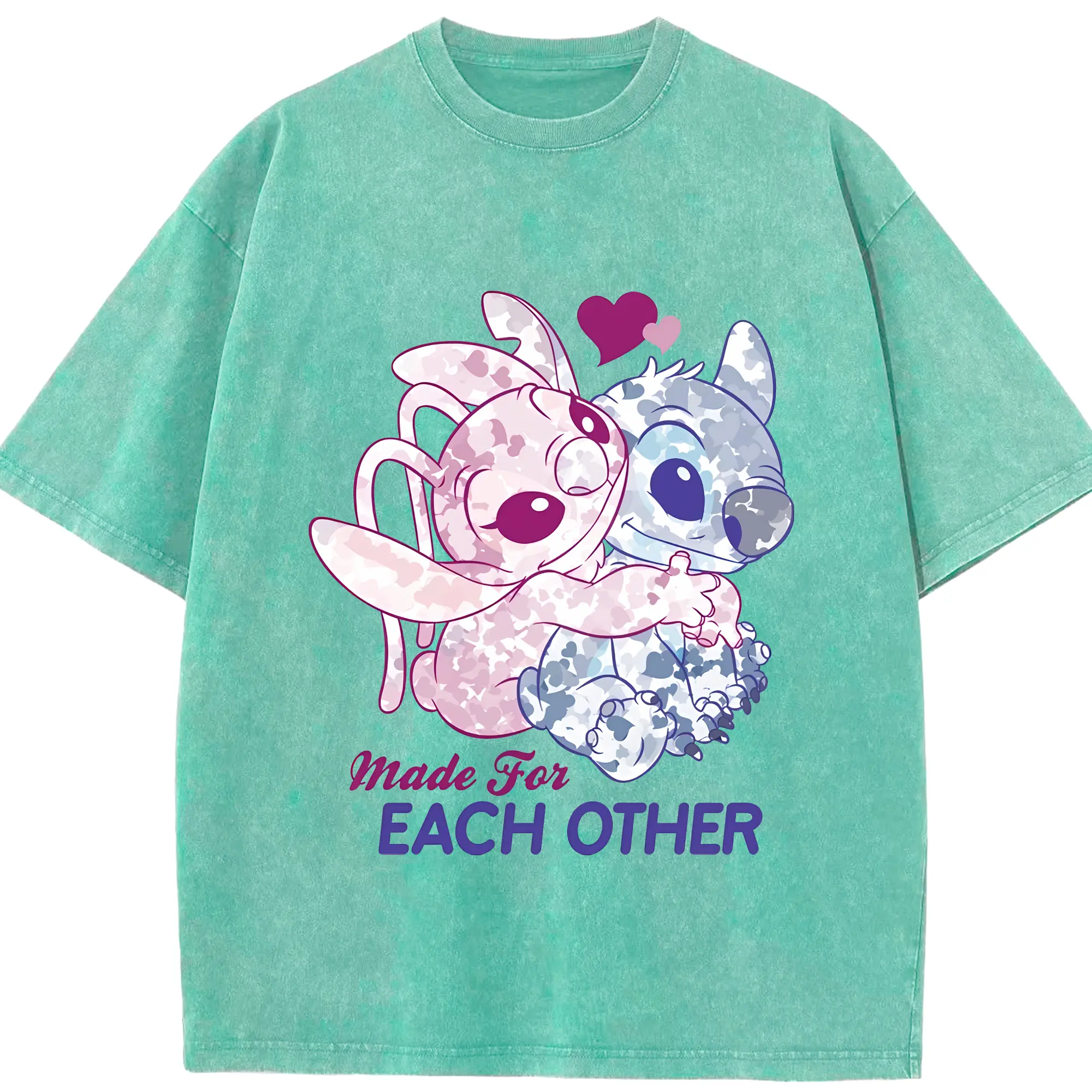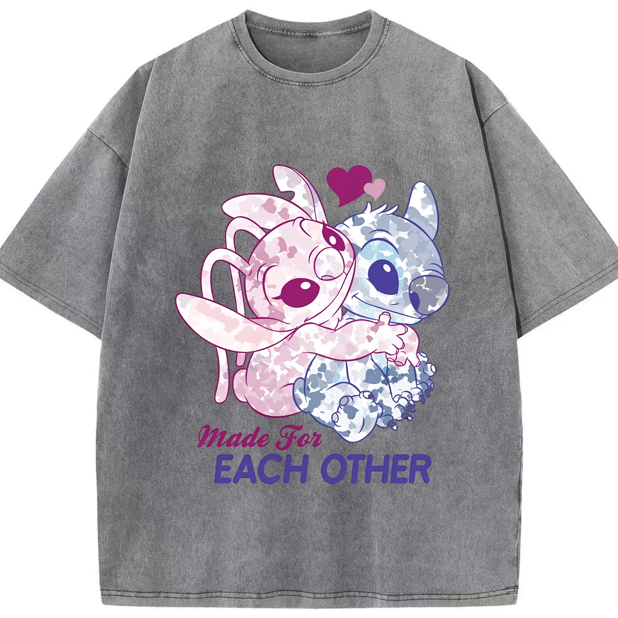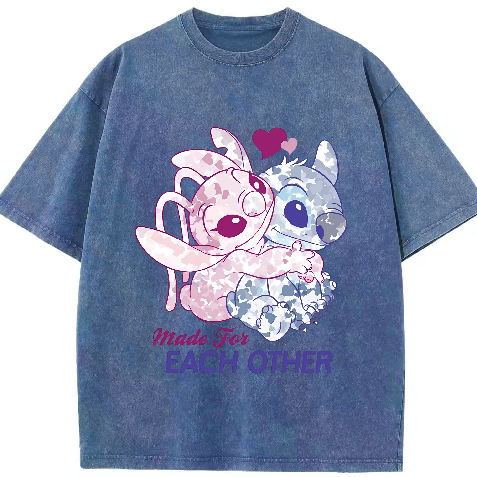 リロ&スティッチ グッズ エンジェル - 綿100% ヴィンテージ風 半袖Tシャツ ・ 背面プリント ・ 柔らか肌触り ・ 通気性 快適 ・ スポーツ カジュアル 外出用