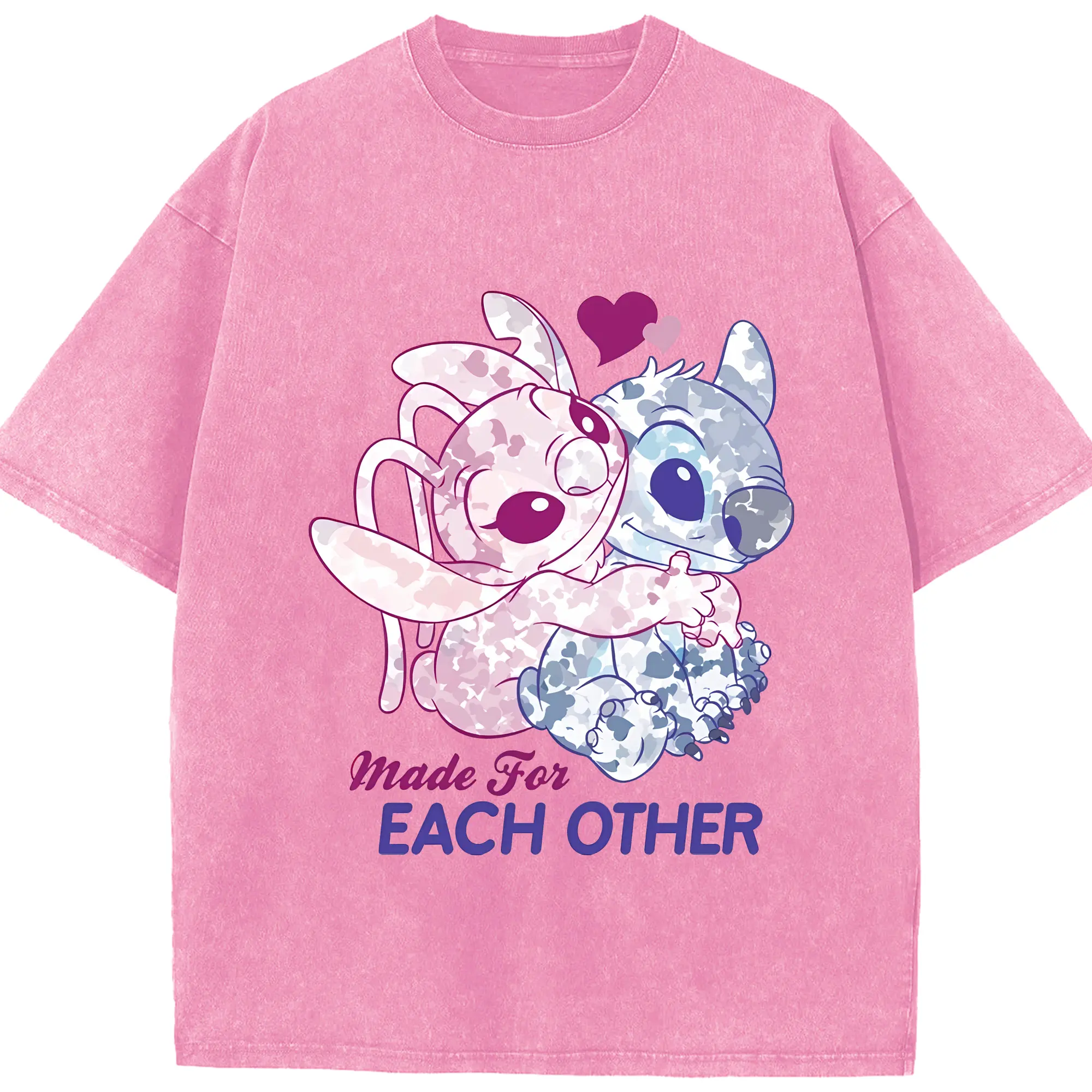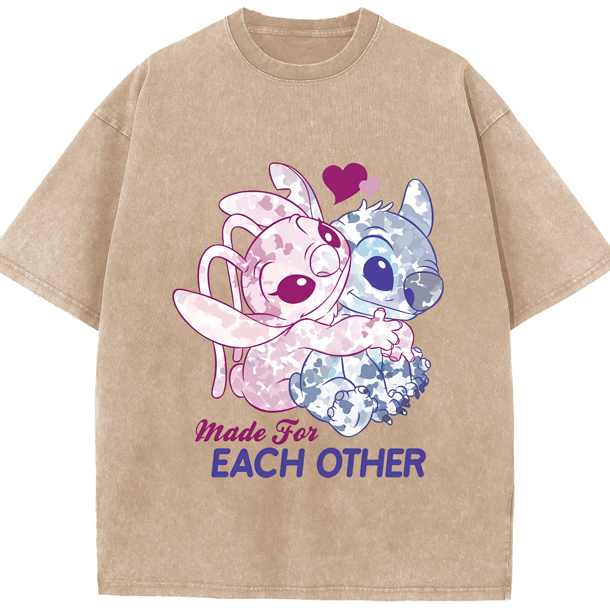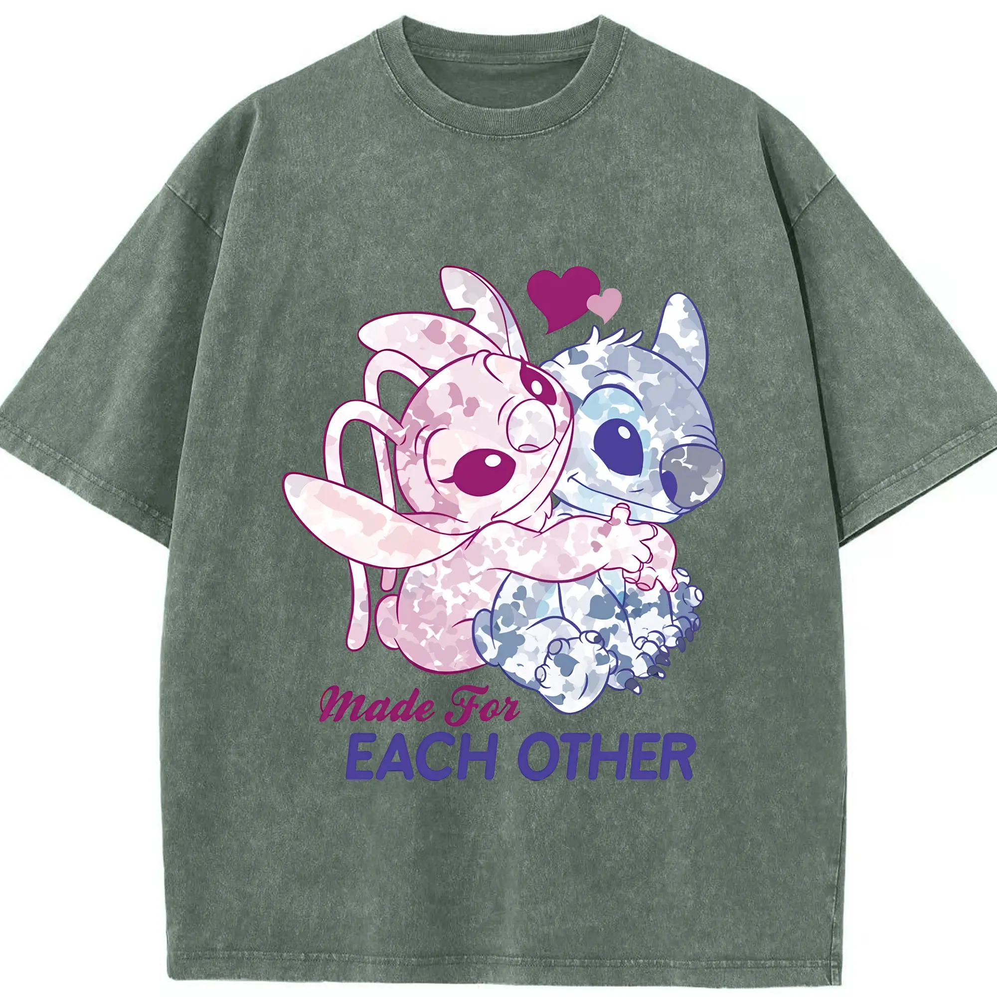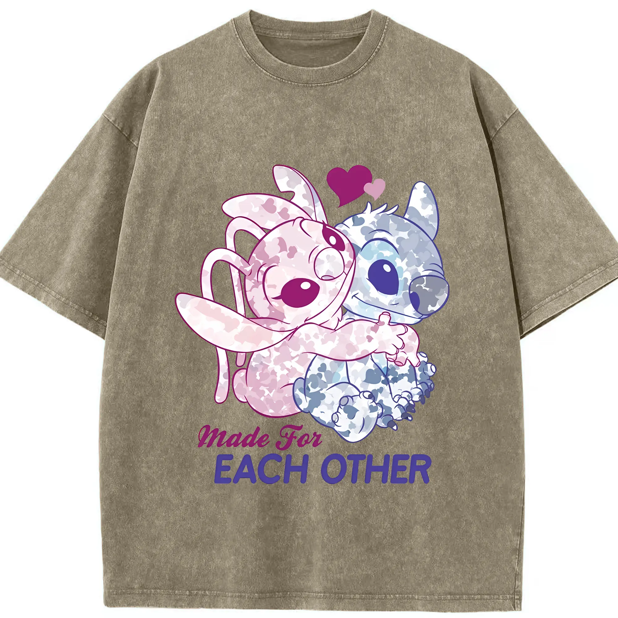 リロ&スティッチ グッズ エンジェル - 綿100% ヴィンテージ風 半袖Tシャツ ・ 背面プリント ・ 柔らか肌触り ・ 通気性 快適 ・ スポーツ カジュアル 外出用