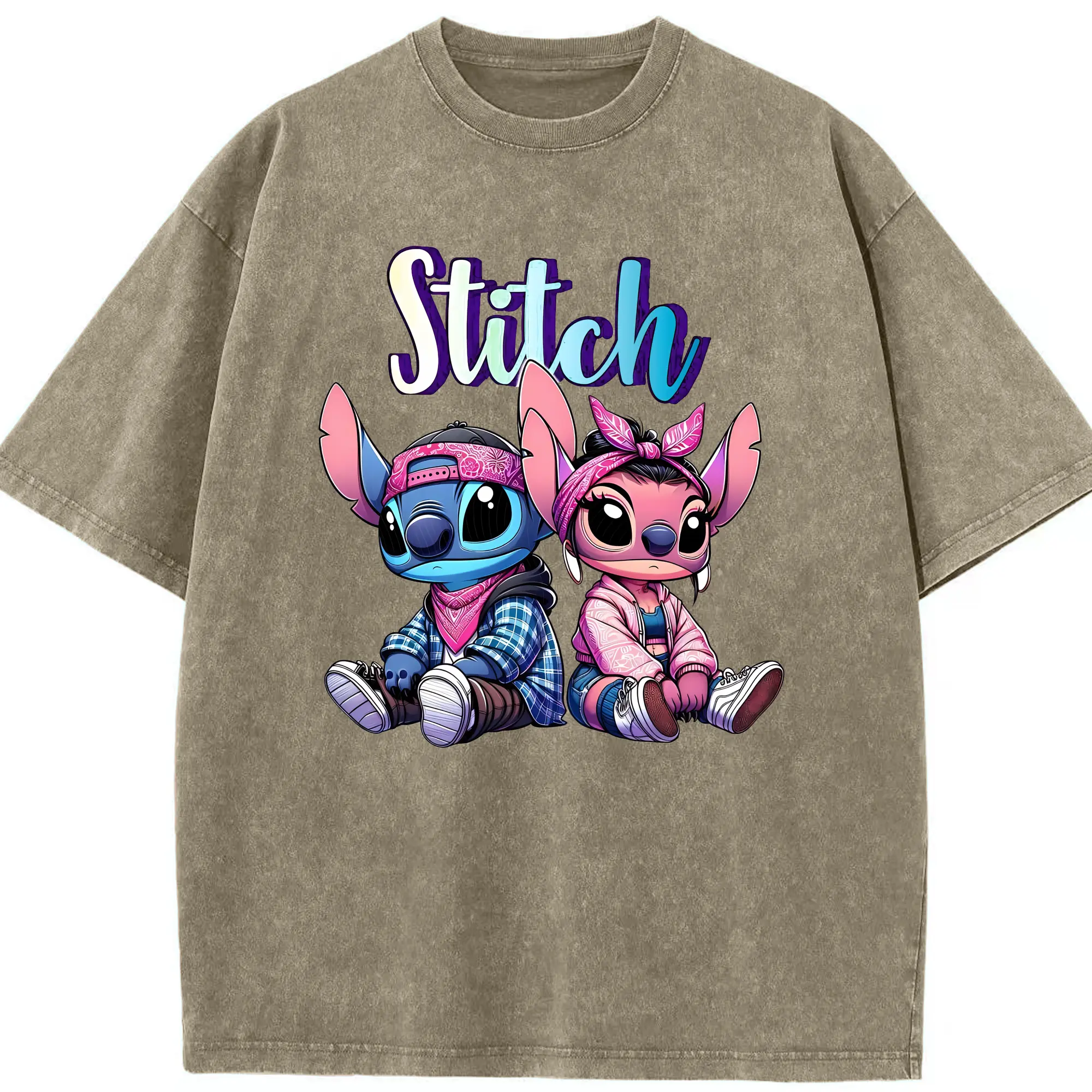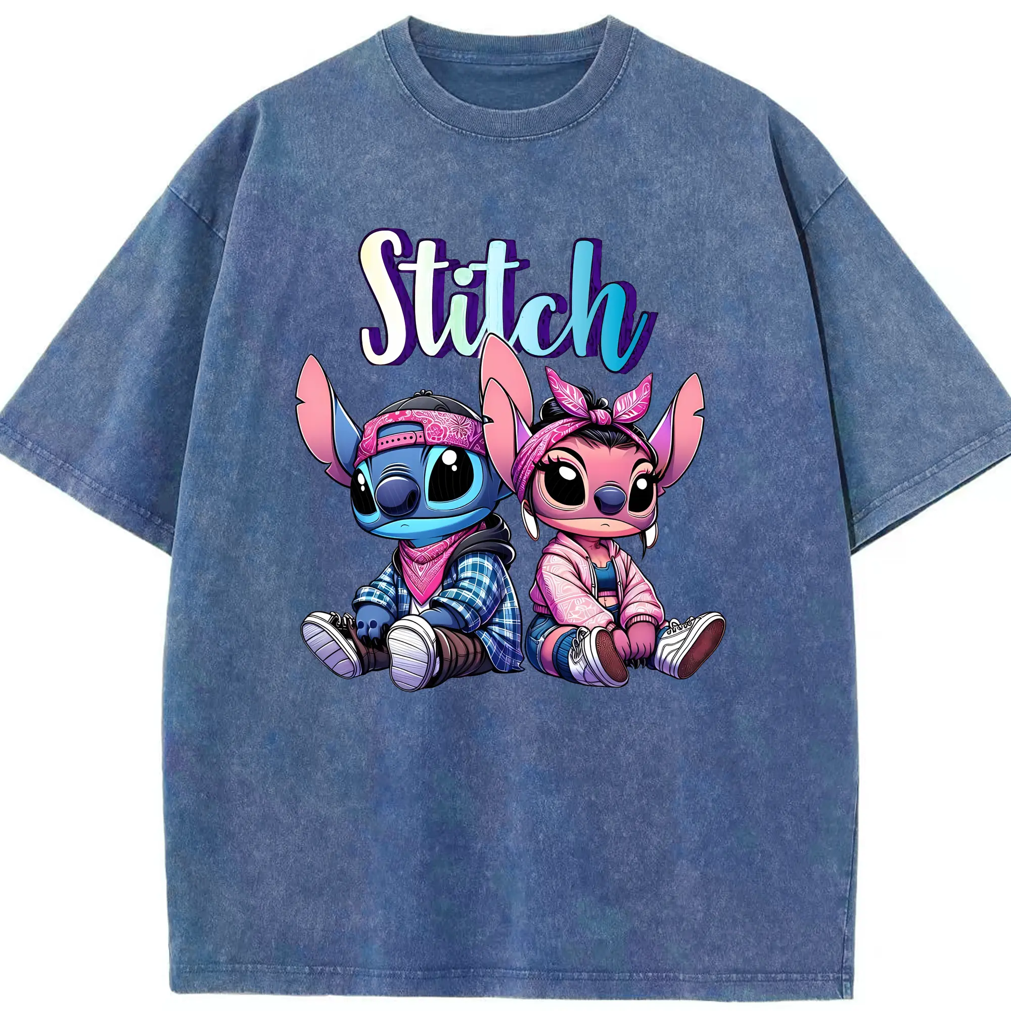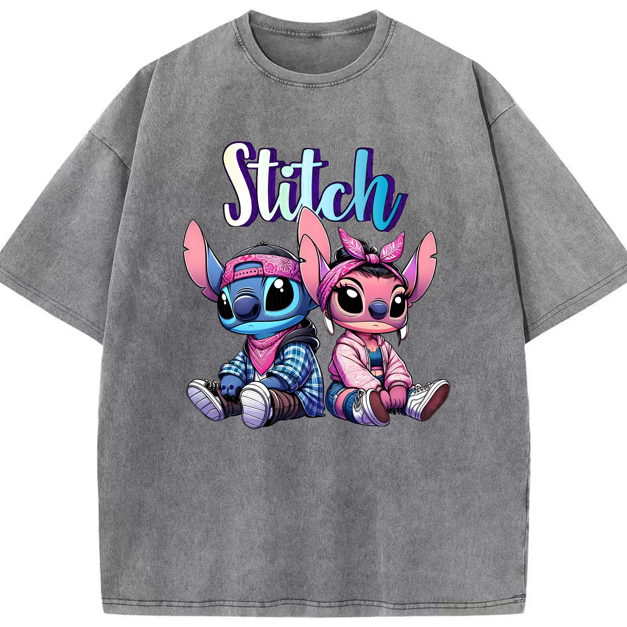 リロ&スティッチ グッズ エンジェル - 綿100% ヴィンテージ風 半袖Tシャツ ・ 背面プリント ・ 柔らか肌触り ・ 通気性 快適 ・ スポーツ カジュアル 外出用