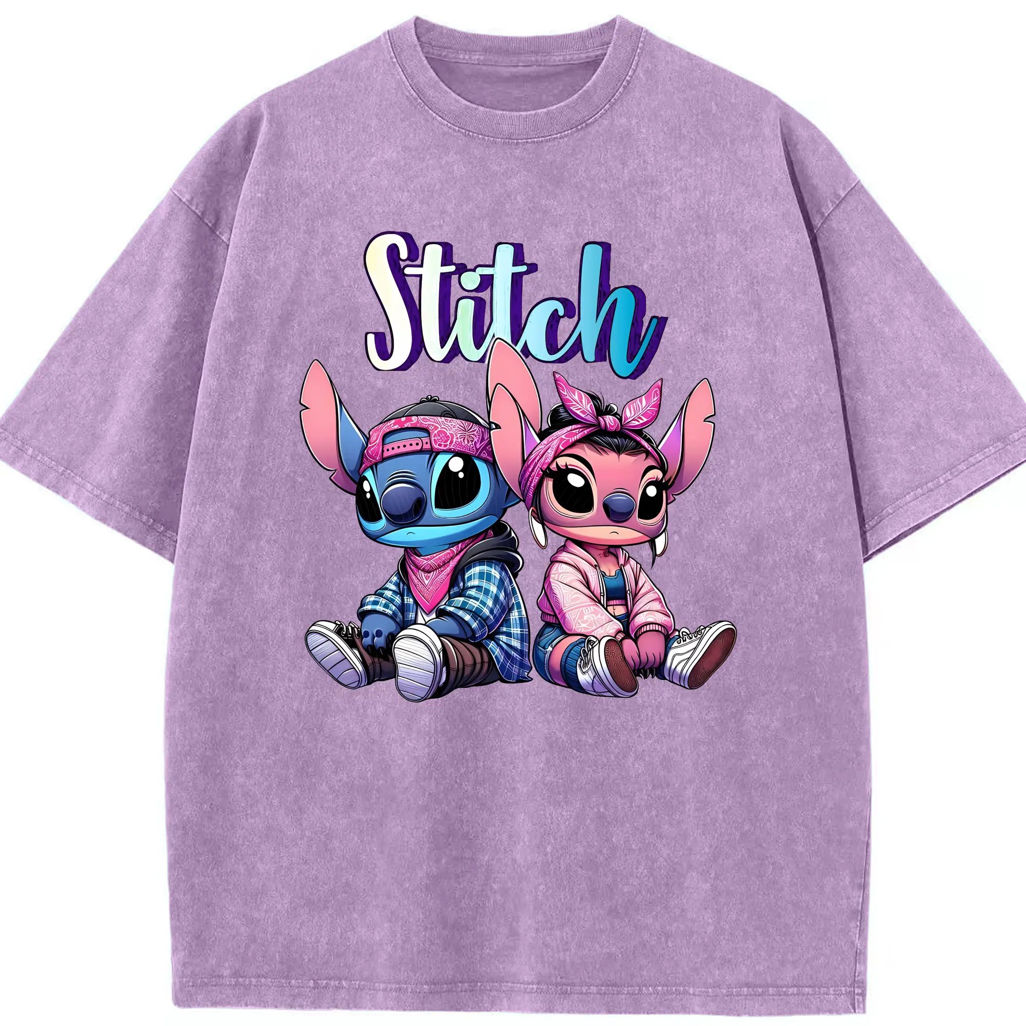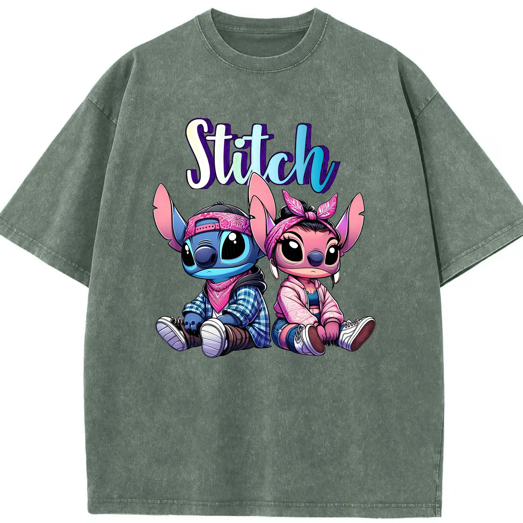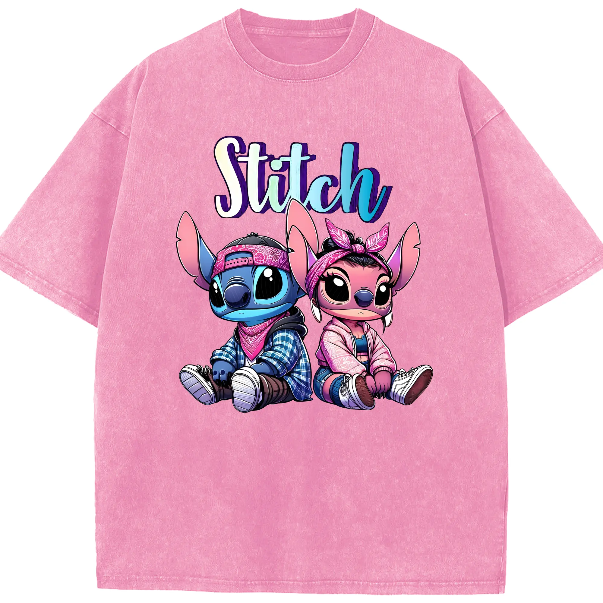 リロ&スティッチ グッズ エンジェル - 綿100% ヴィンテージ風 半袖Tシャツ ・ 背面プリント ・ 柔らか肌触り ・ 通気性 快適 ・ スポーツ カジュアル 外出用