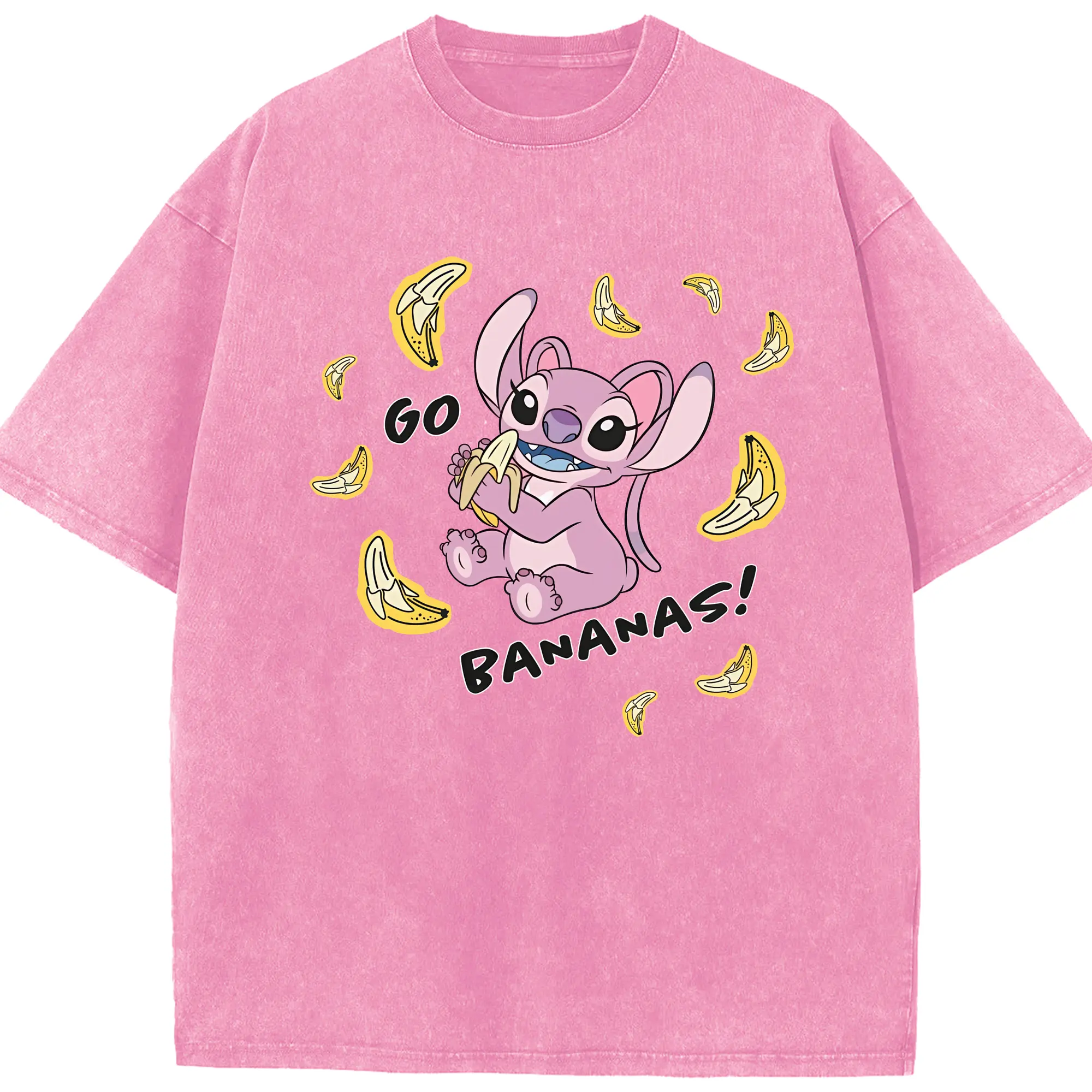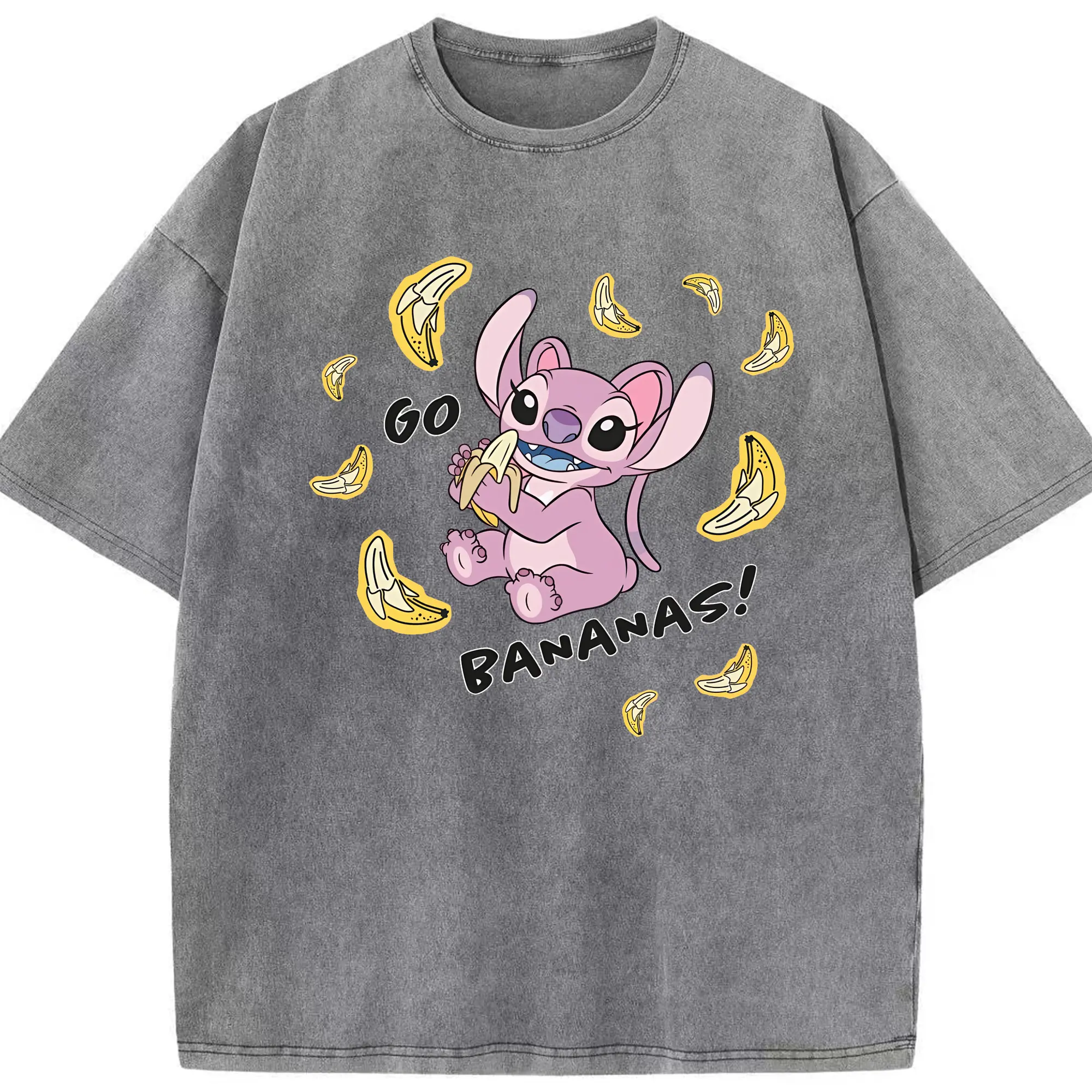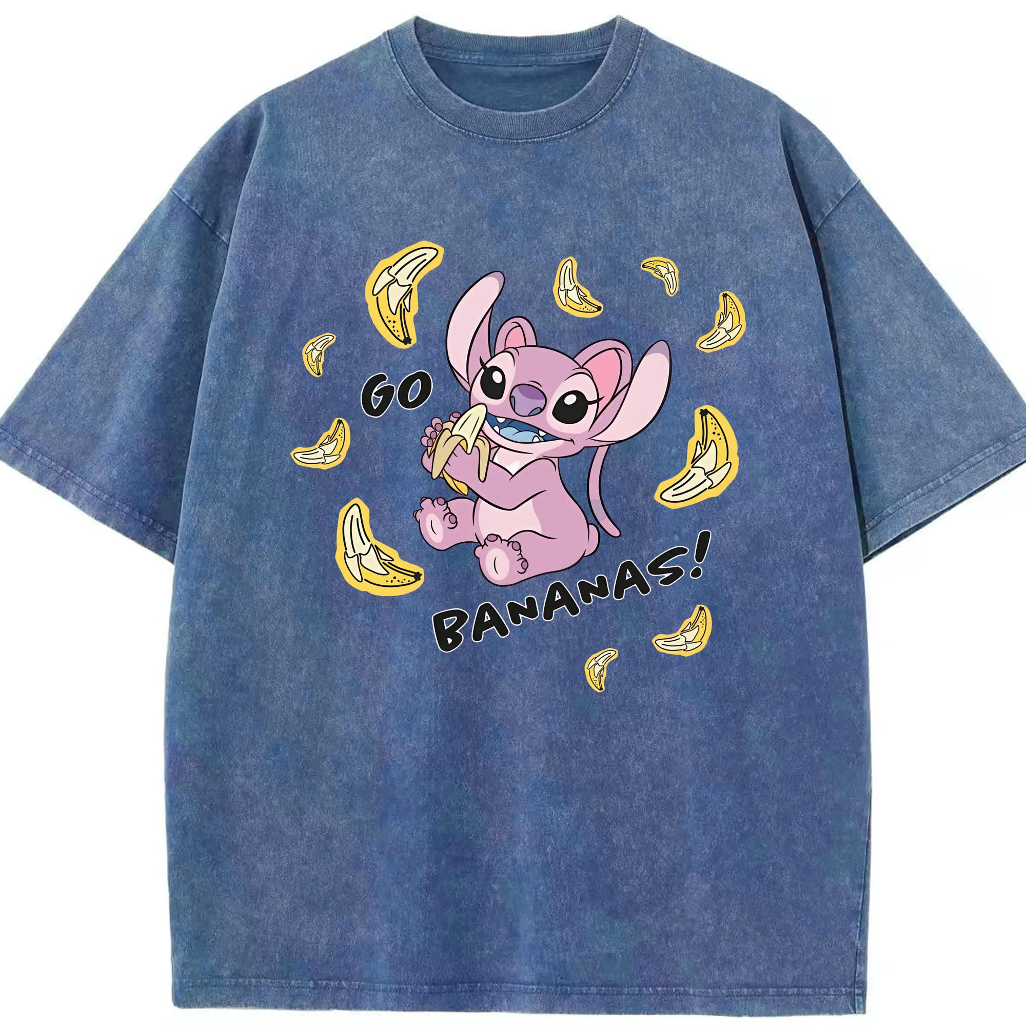 リロ&スティッチ グッズ エンジェル - 綿100% ヴィンテージ風 半袖Tシャツ ・ 背面プリント ・ 柔らか肌触り ・ 通気性 快適 ・ スポーツ カジュアル 外出用