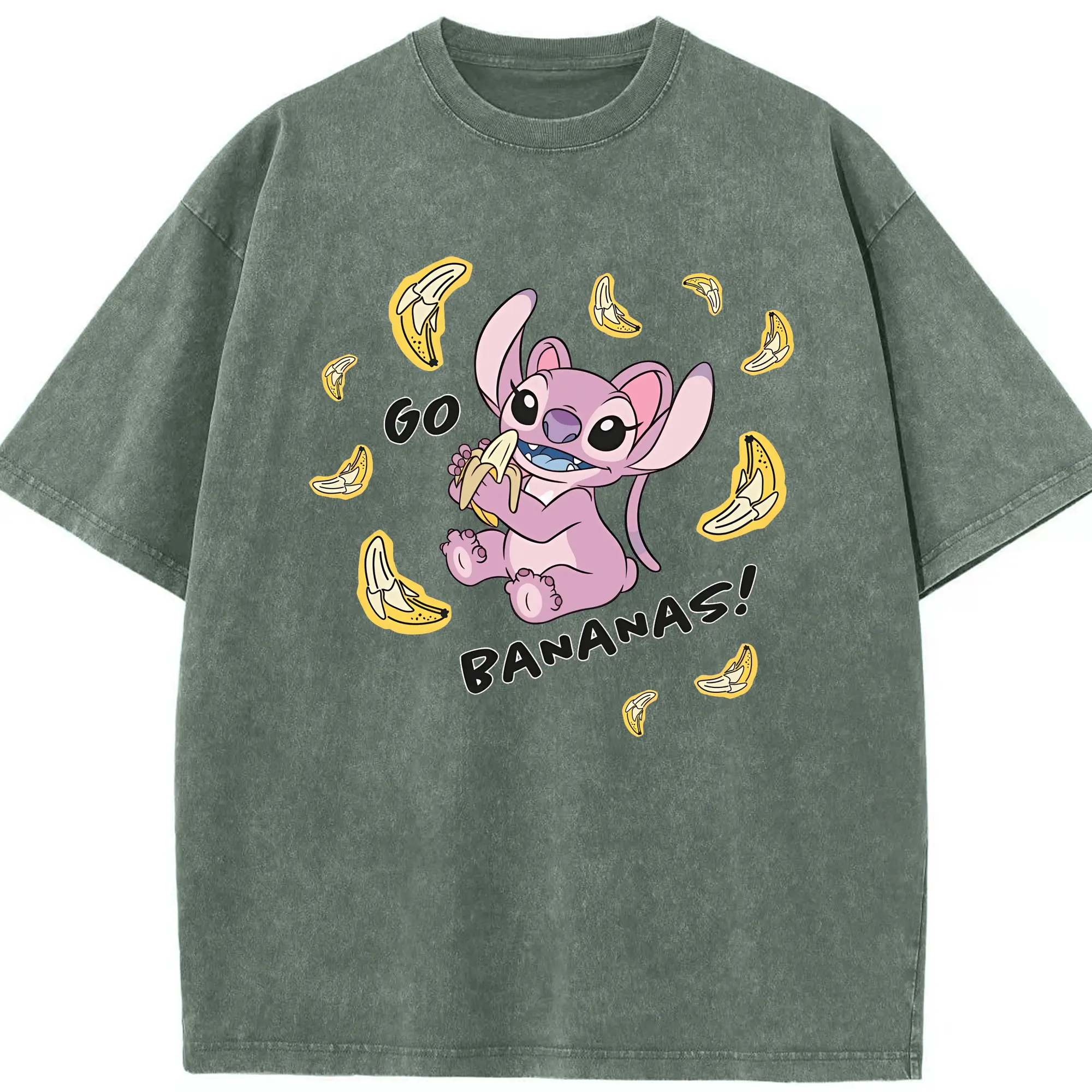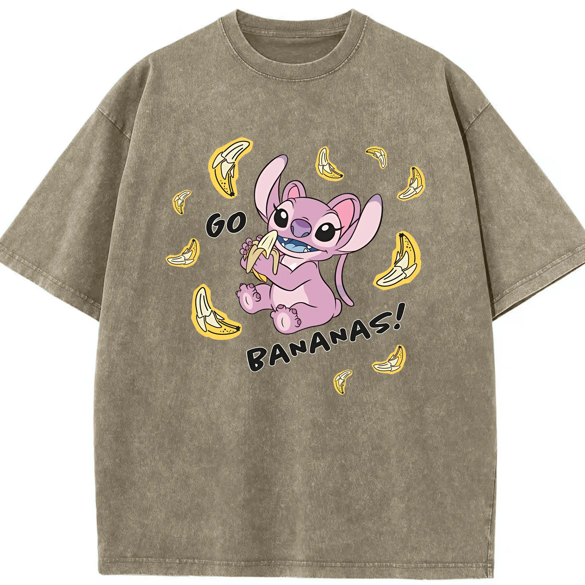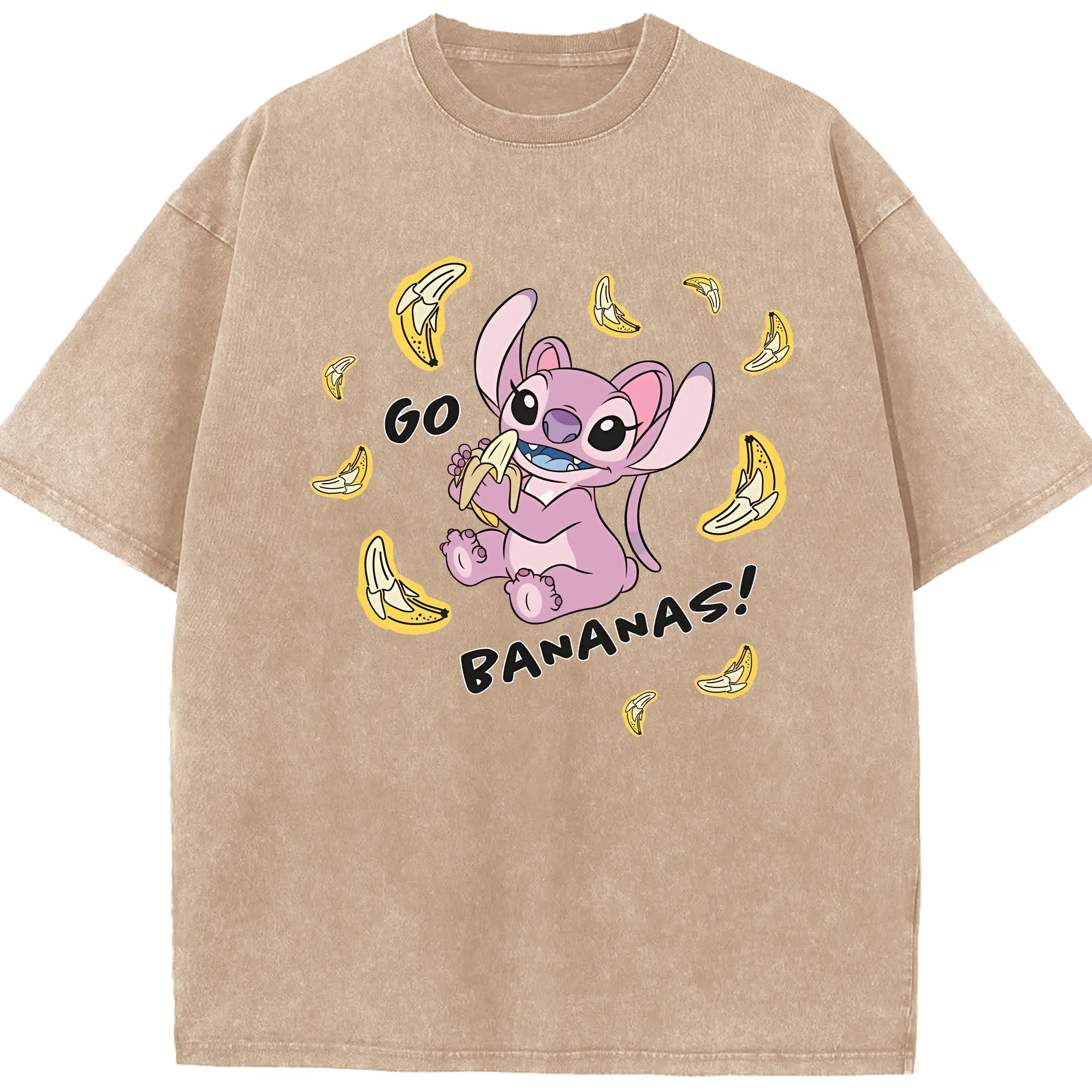 リロ&スティッチ グッズ エンジェル - 綿100% ヴィンテージ風 半袖Tシャツ ・ 背面プリント ・ 柔らか肌触り ・ 通気性 快適 ・ スポーツ カジュアル 外出用