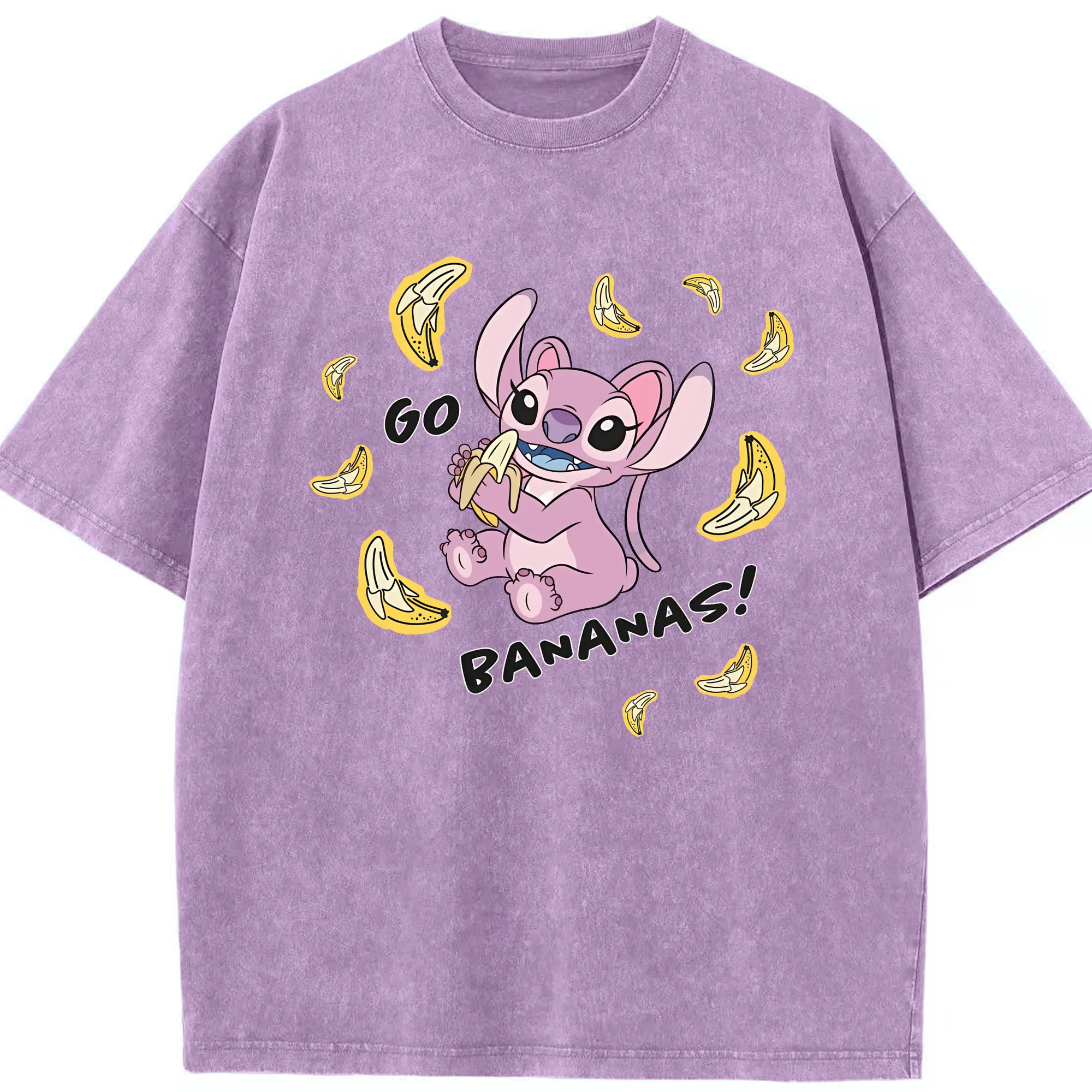 リロ&スティッチ グッズ エンジェル - 綿100% 半袖Tシャツ ・ フロントプリント ・ 快適 通気性 ・ 日常使い 散歩 スポーツ用