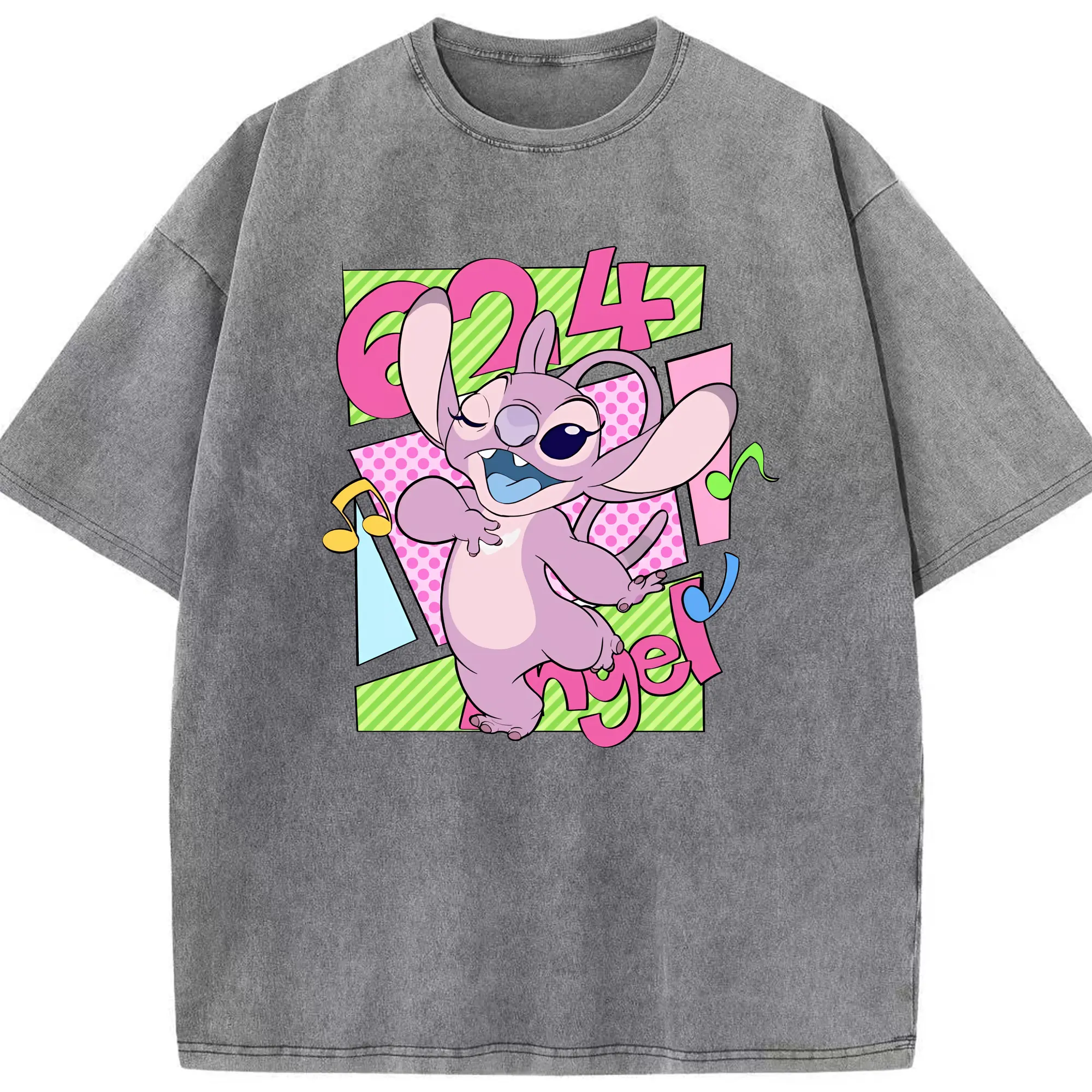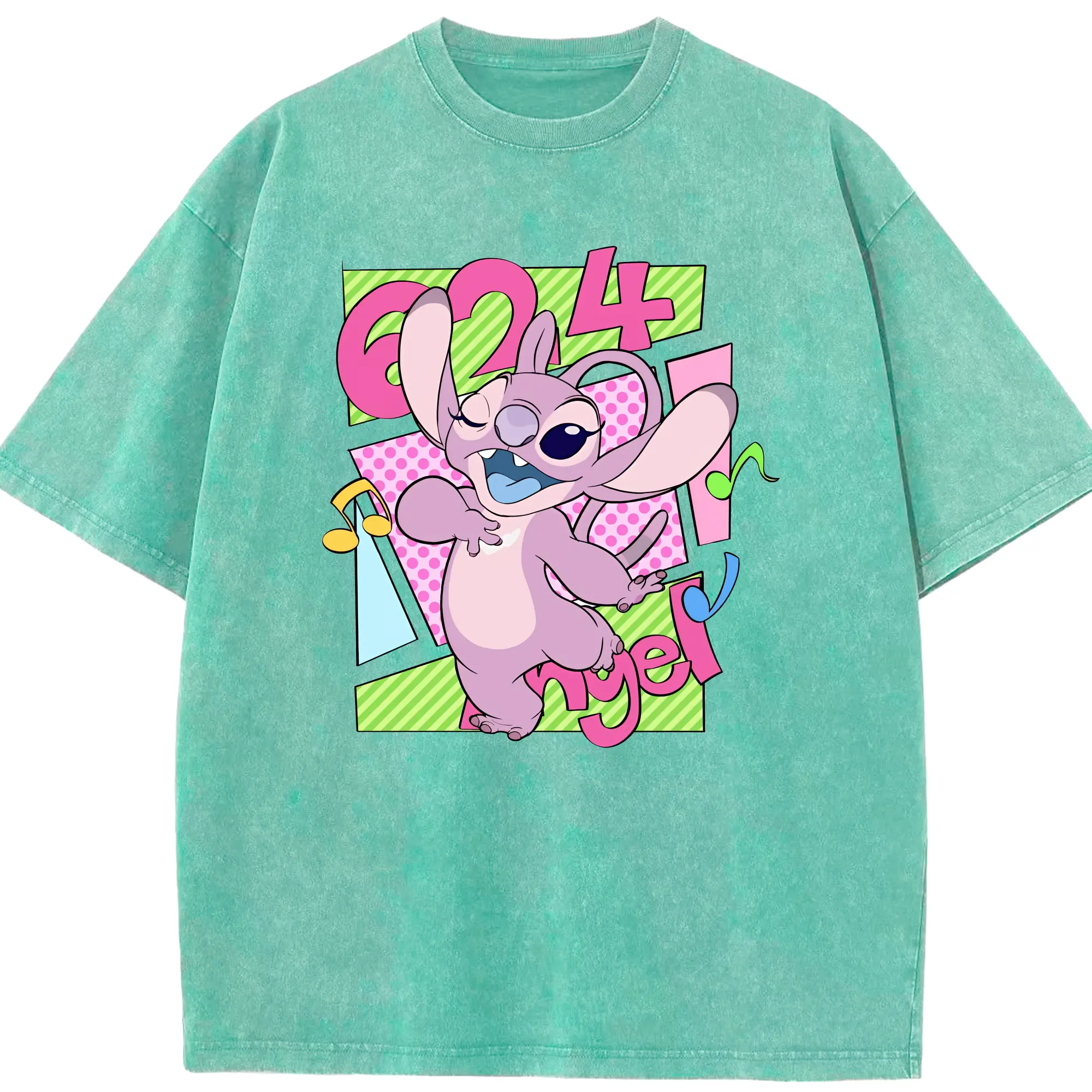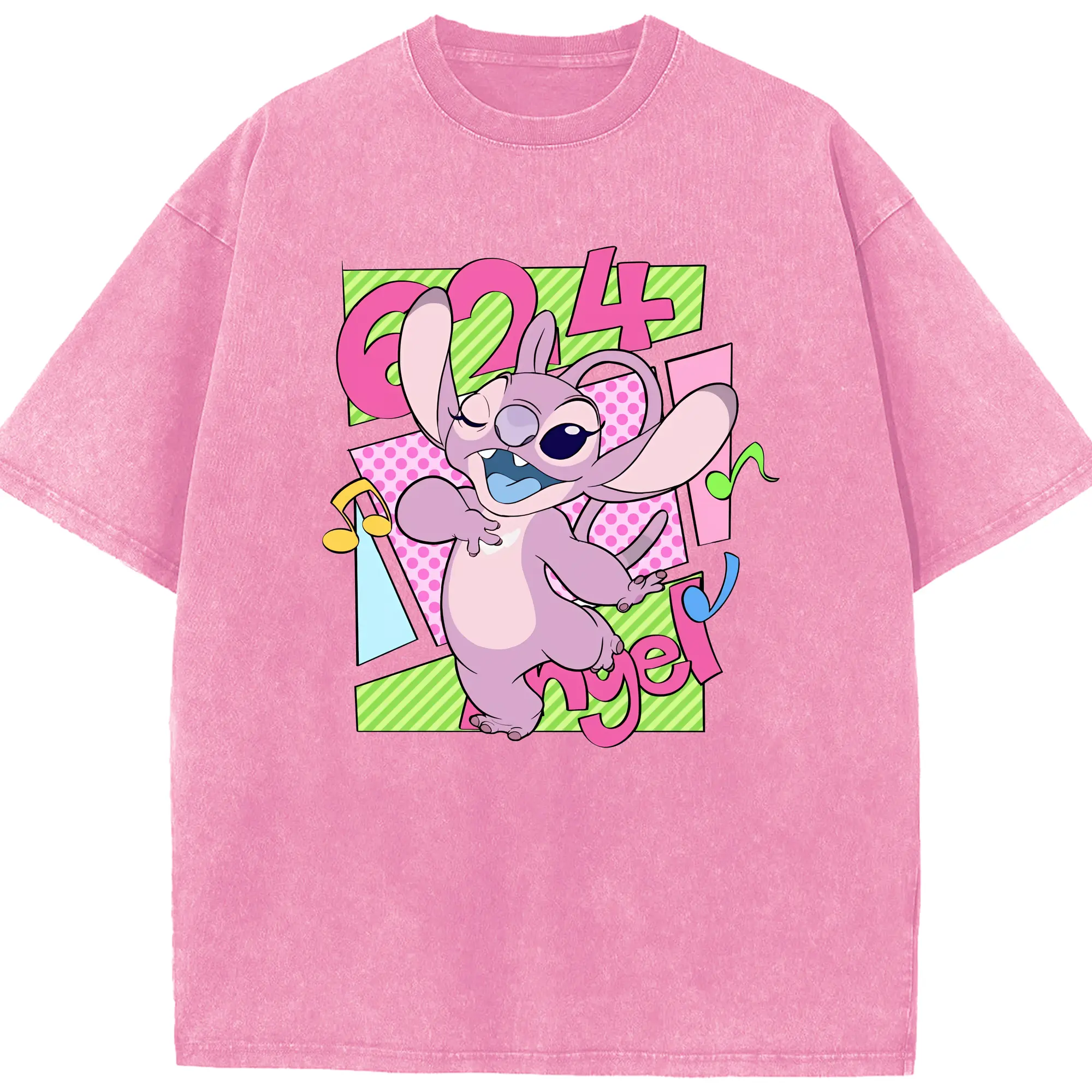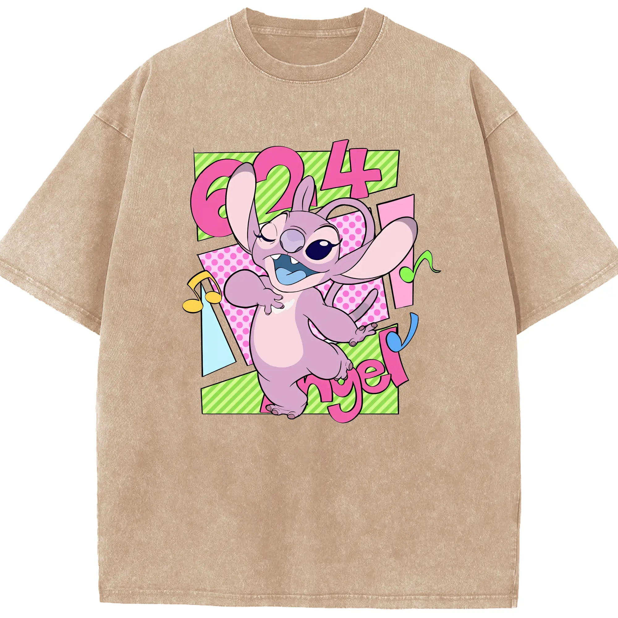 リロ&スティッチ グッズ エンジェル - 綿100% ヴィンテージ風 半袖Tシャツ ・ 背面プリント ・ 柔らか肌触り ・ 通気性 快適 ・ スポーツ カジュアル 外出用