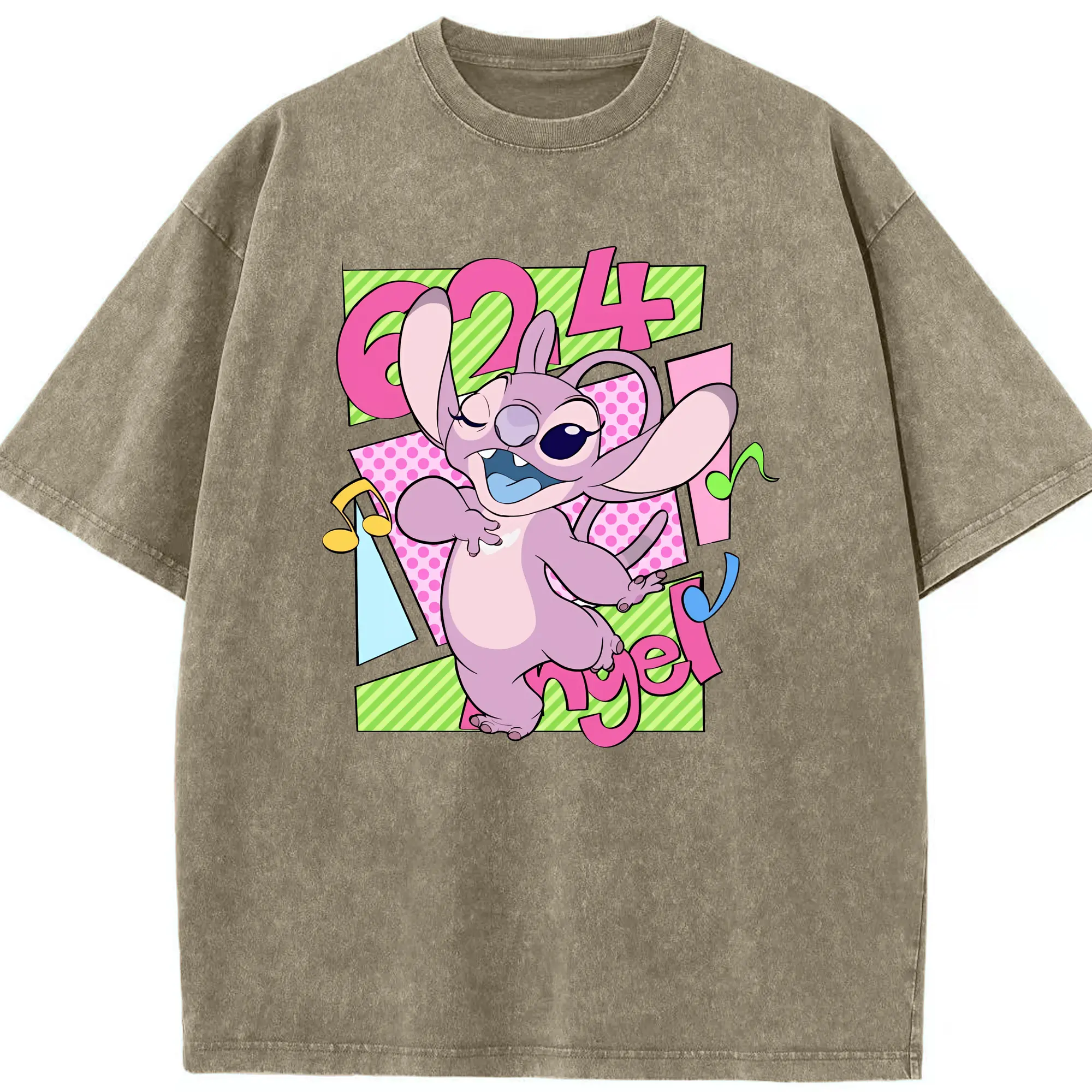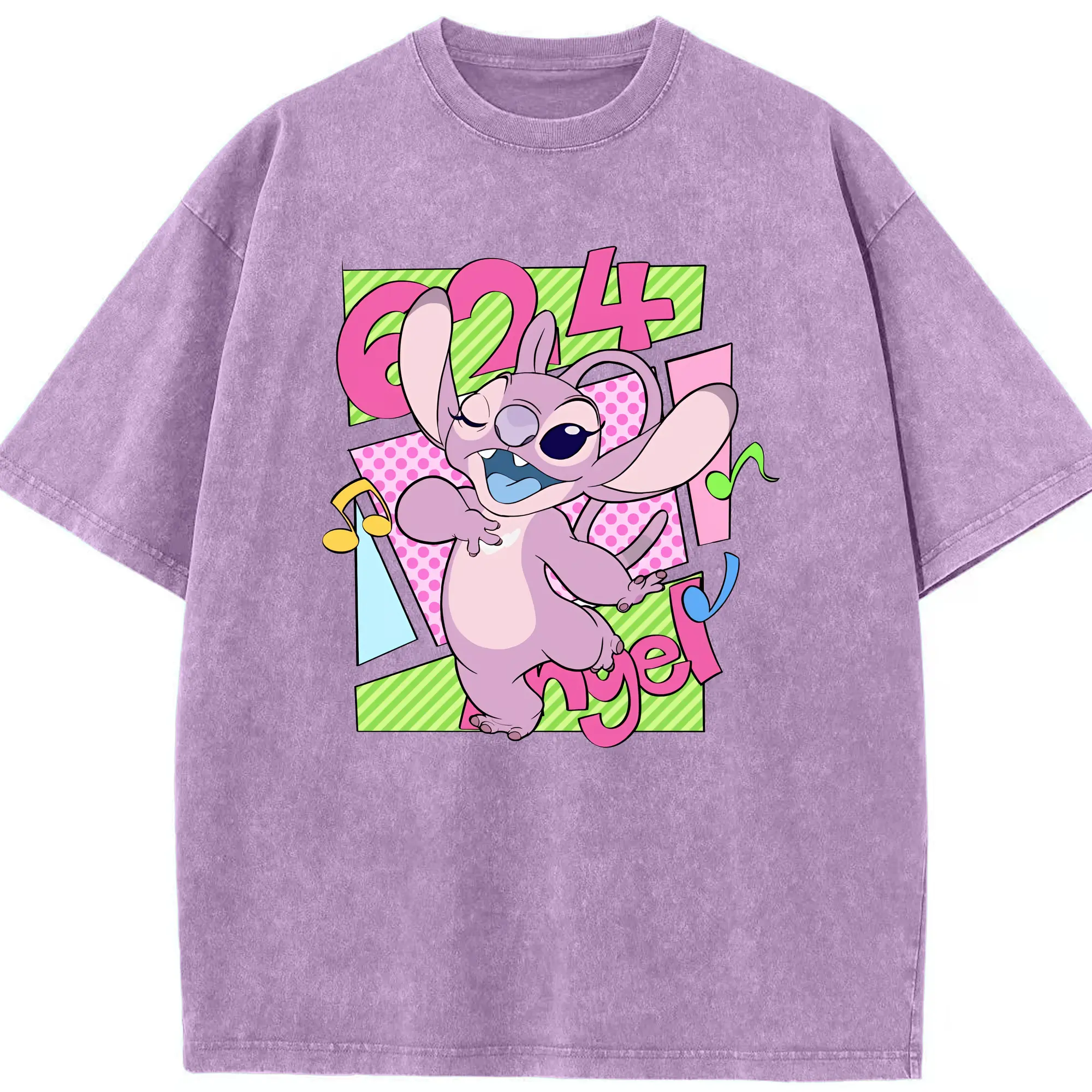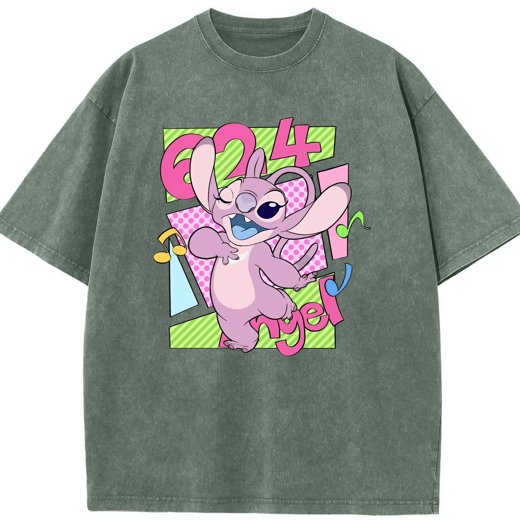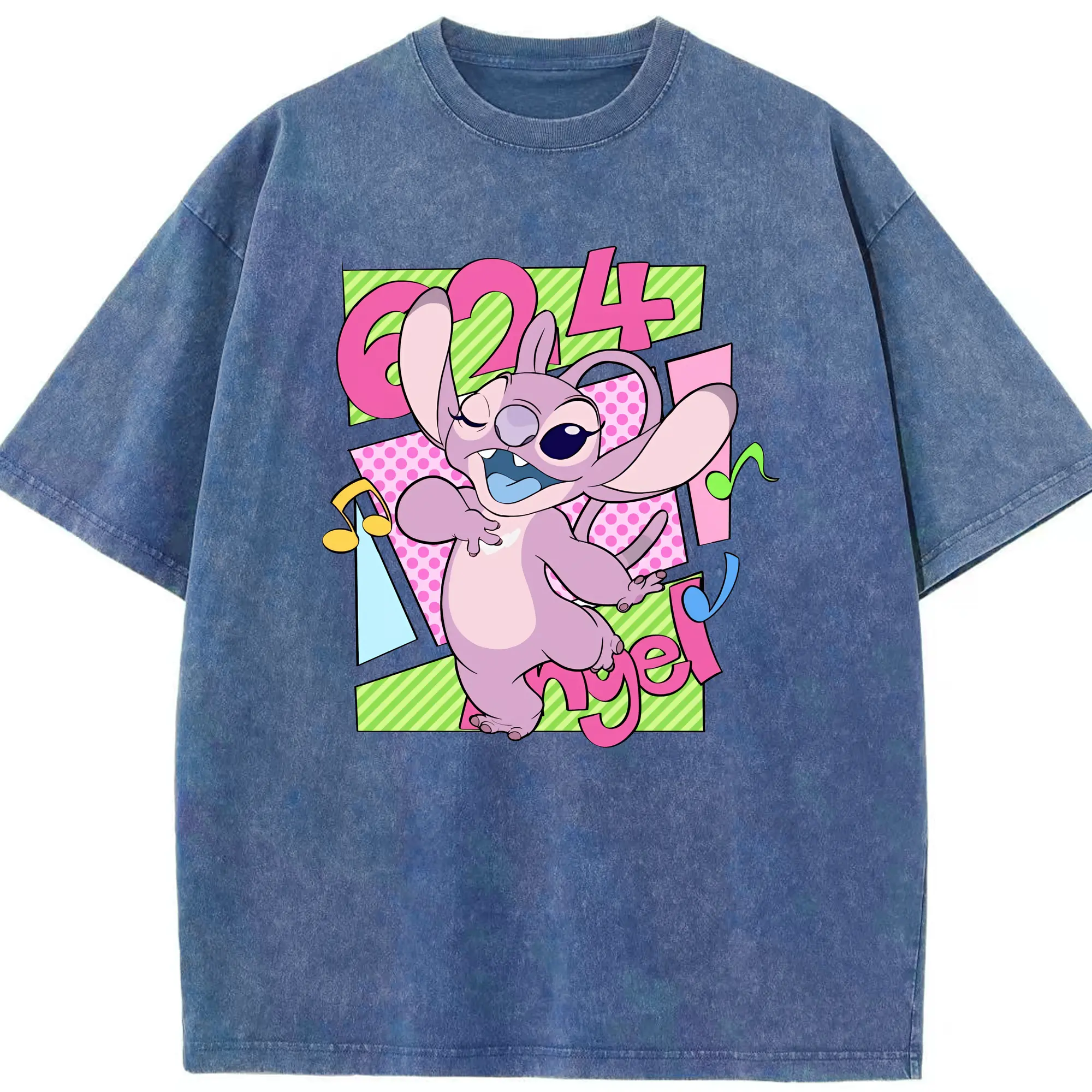 リロ&スティッチ グッズ エンジェル - 綿100% ヴィンテージ風 半袖Tシャツ ・ 背面プリント ・ 柔らか肌触り ・ 通気性 快適 ・ スポーツ カジュアル 外出用