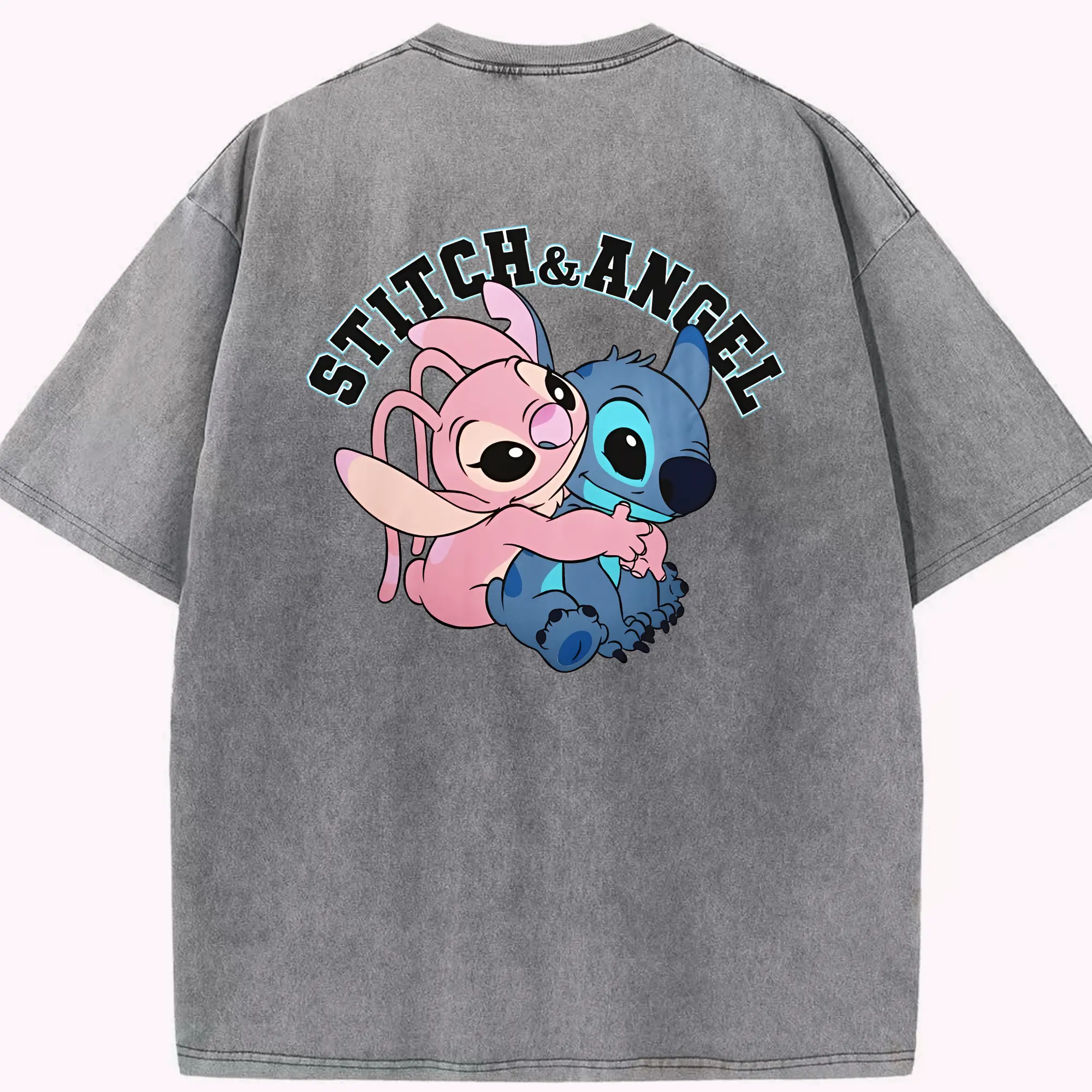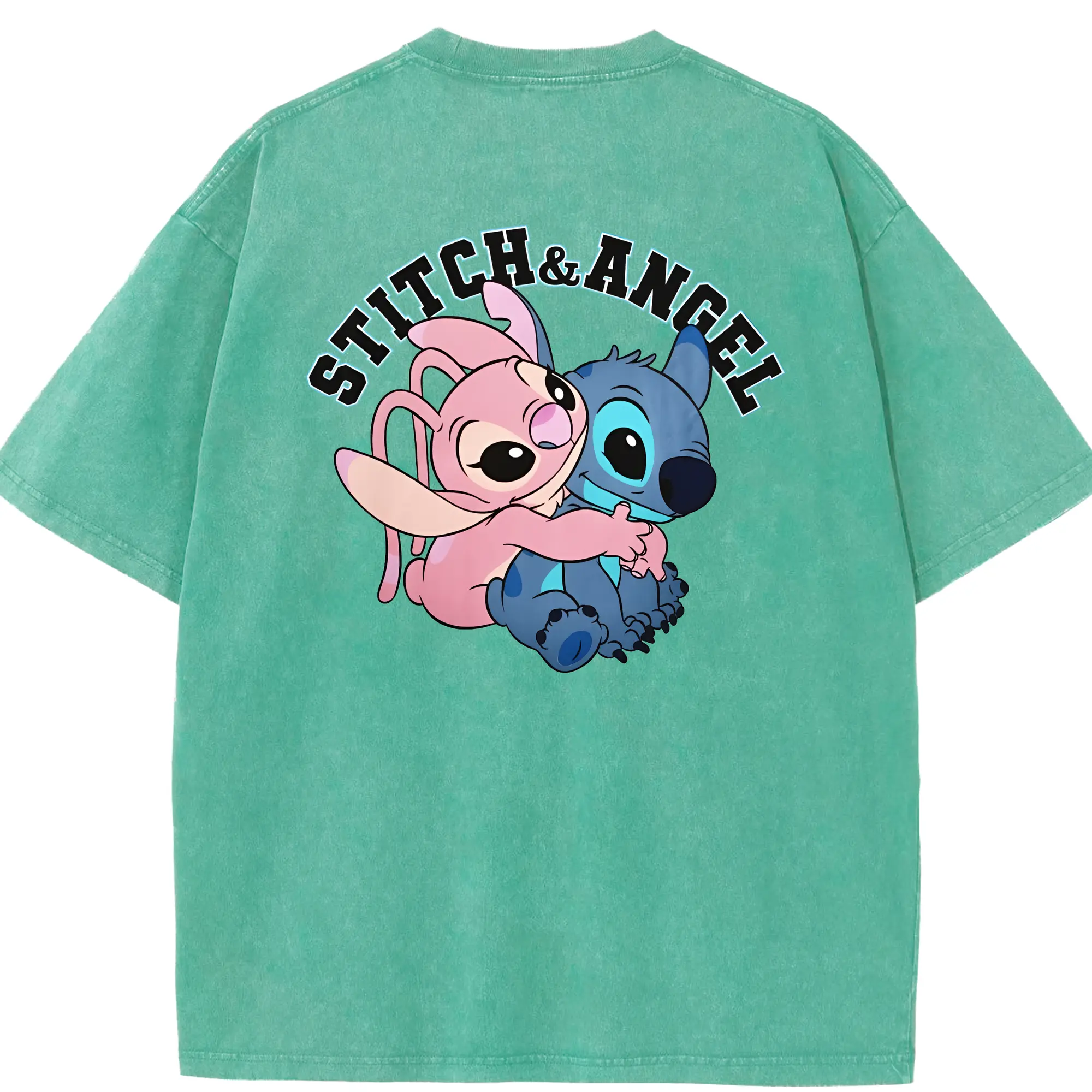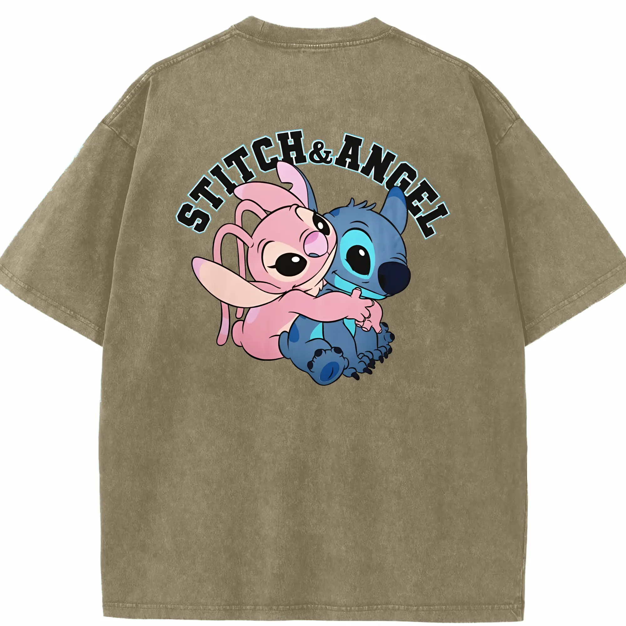 リロ&スティッチ グッズ エンジェル - 綿100% ヴィンテージ風 半袖Tシャツ ・ フロントプリント ・ 柔らか肌触り ・ 通気性 快適 ・ スポーツ カジュアル 外出用