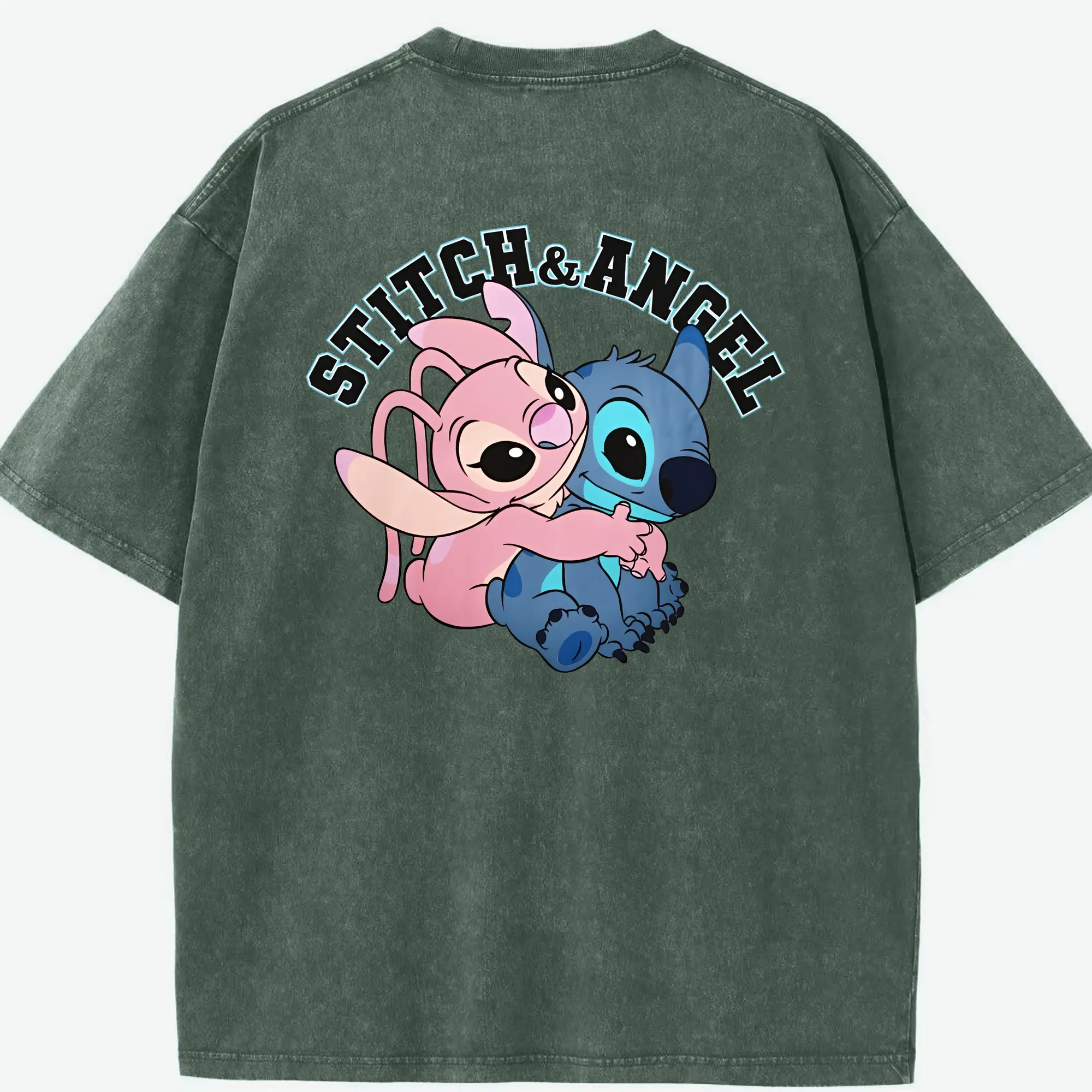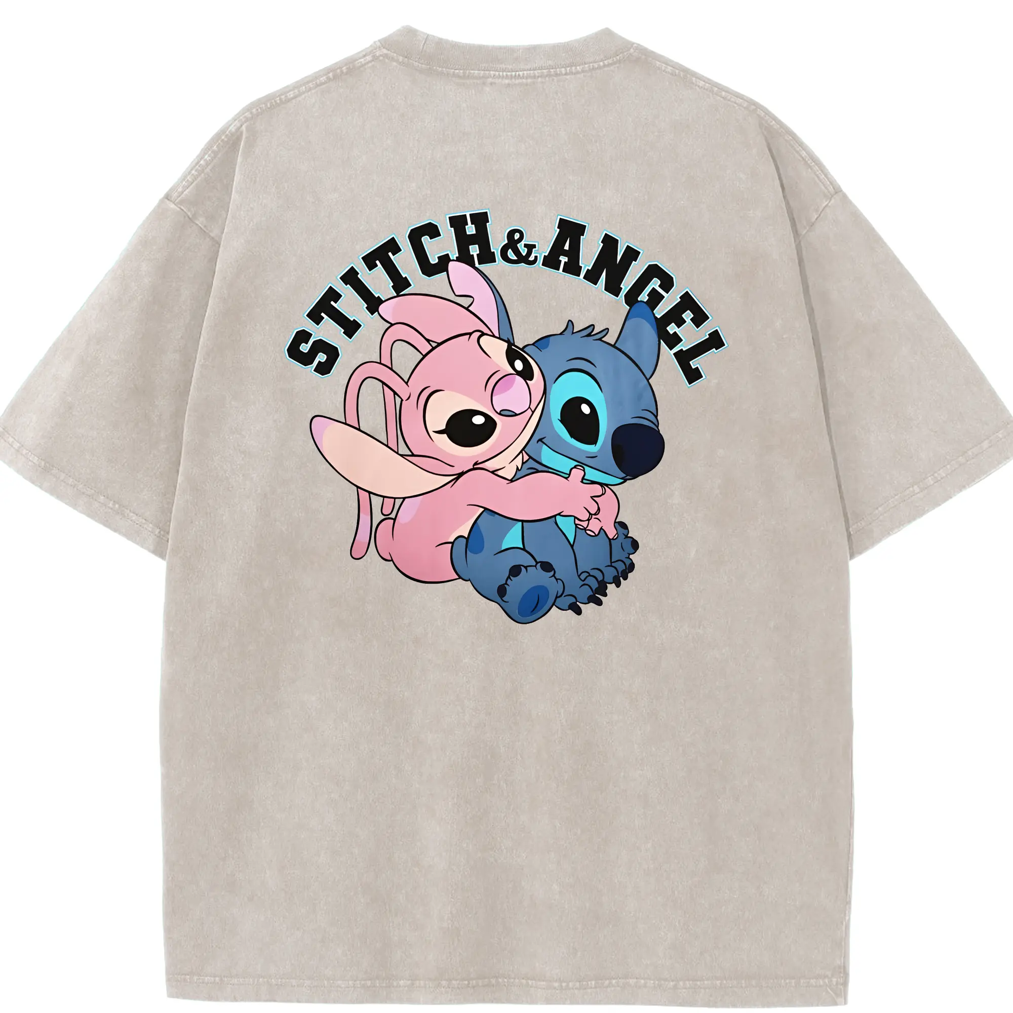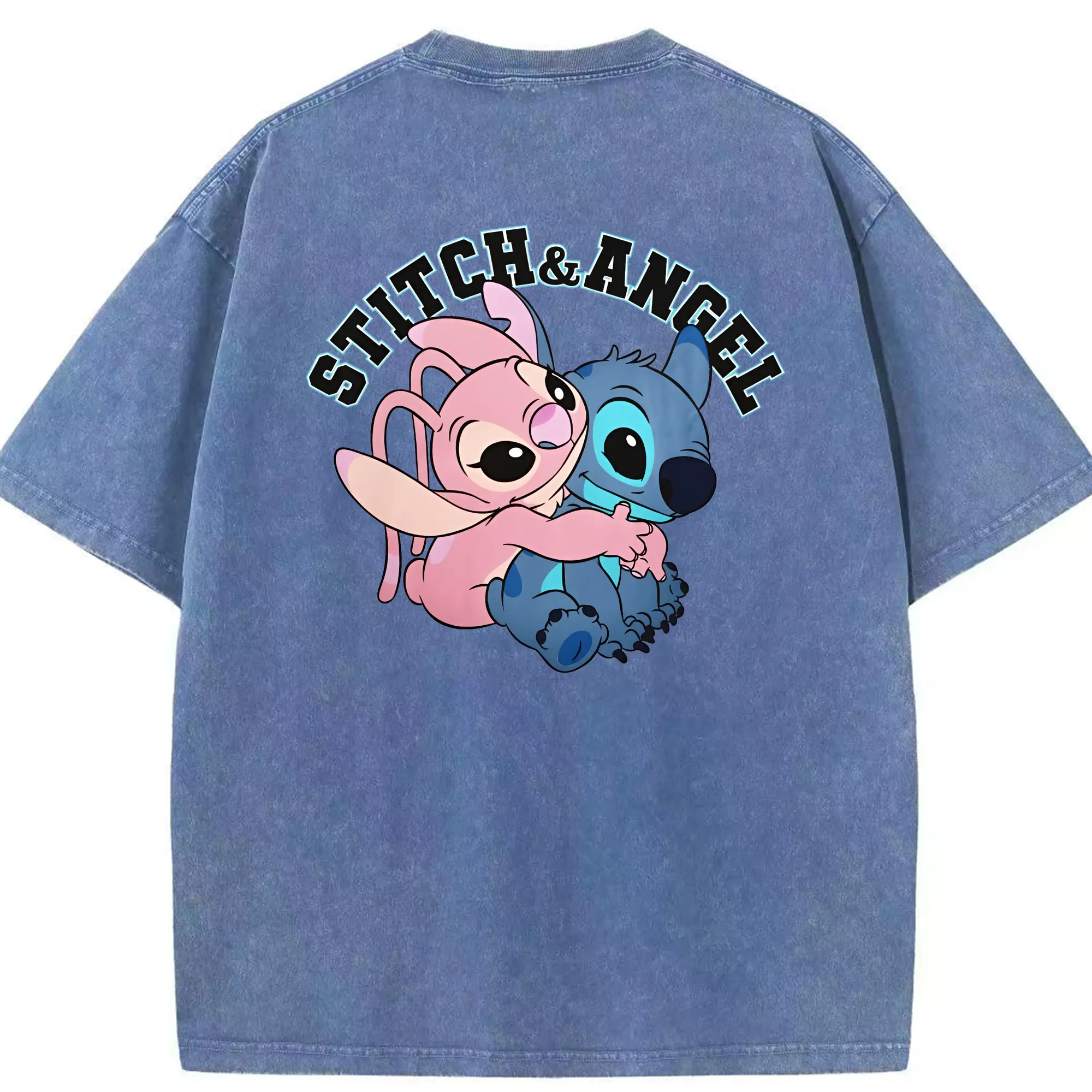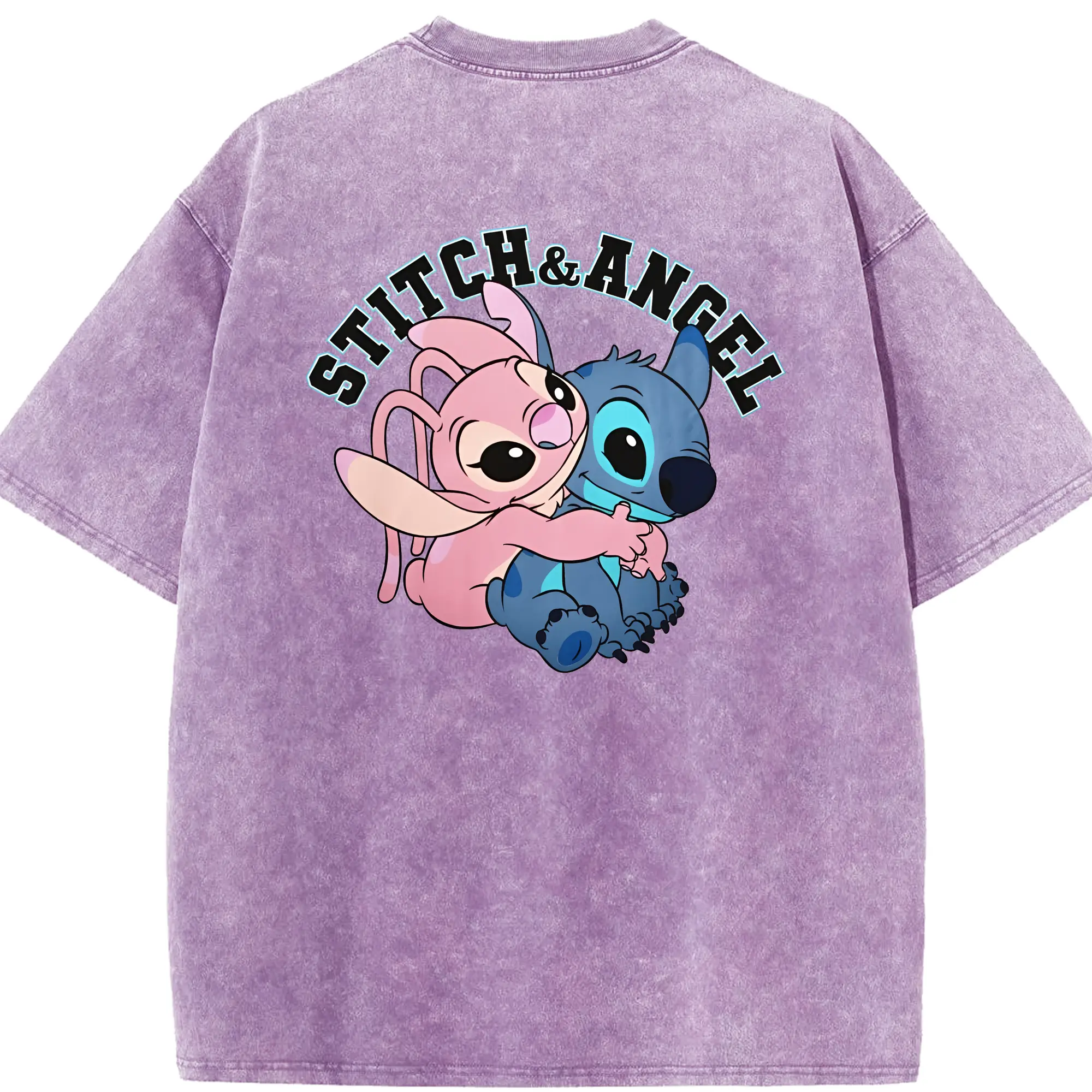 リロ&スティッチ グッズ エンジェル - 綿100% ヴィンテージ風 半袖Tシャツ ・ フロントプリント ・ 柔らか肌触り ・ 通気性 快適 ・ スポーツ カジュアル 外出用