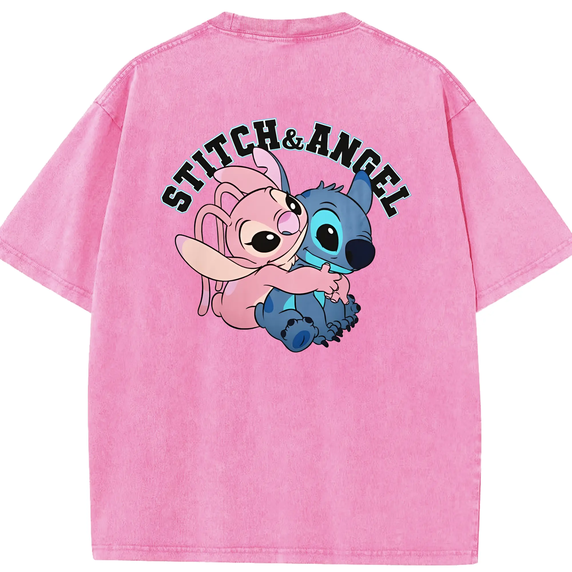 リロ&スティッチ グッズ エンジェル - 綿100% 半袖Tシャツ ・ バックプリント ・ 快適 通気性 ・ 日常使い 散歩 スポーツ用