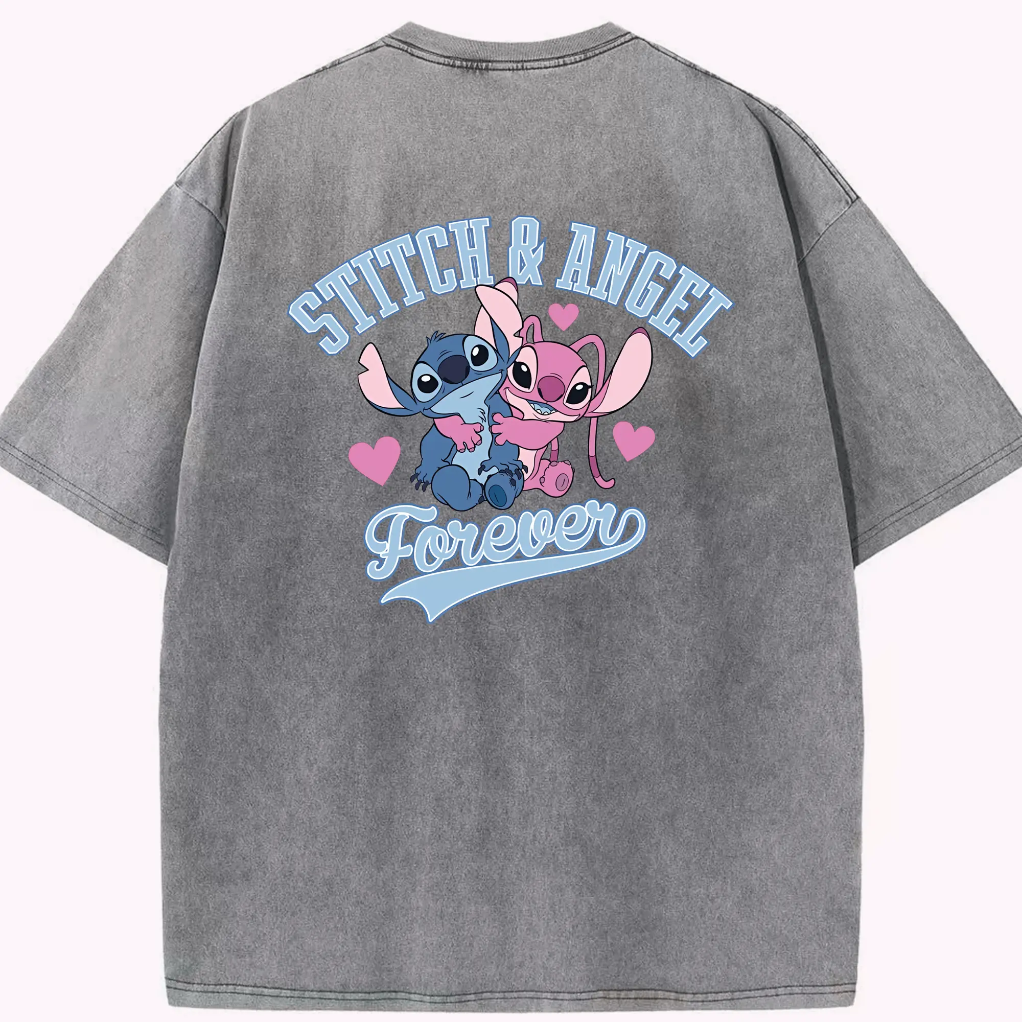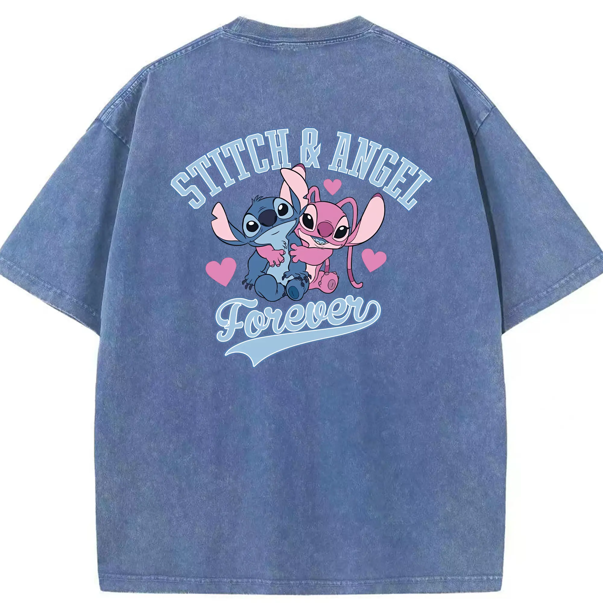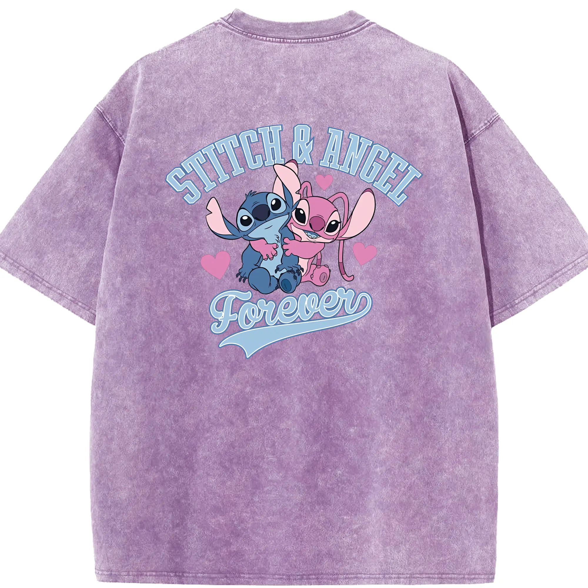 リロ&スティッチ グッズ エンジェル - 綿100% ヴィンテージ風 半袖Tシャツ ・ フロントプリント ・ 柔らか肌触り ・ 通気性 快適 ・ スポーツ カジュアル 外出用