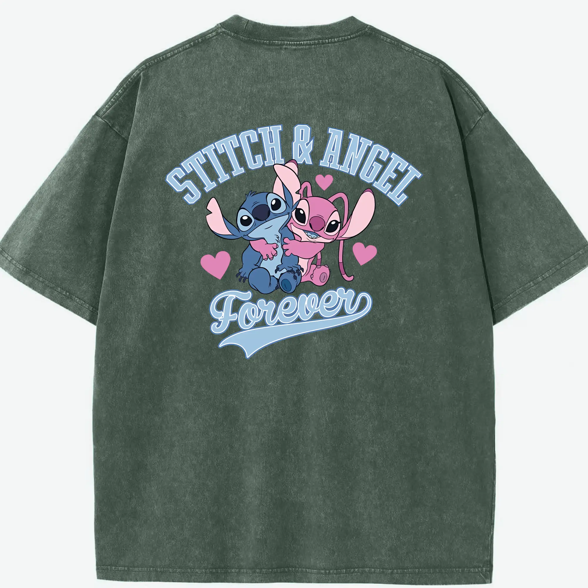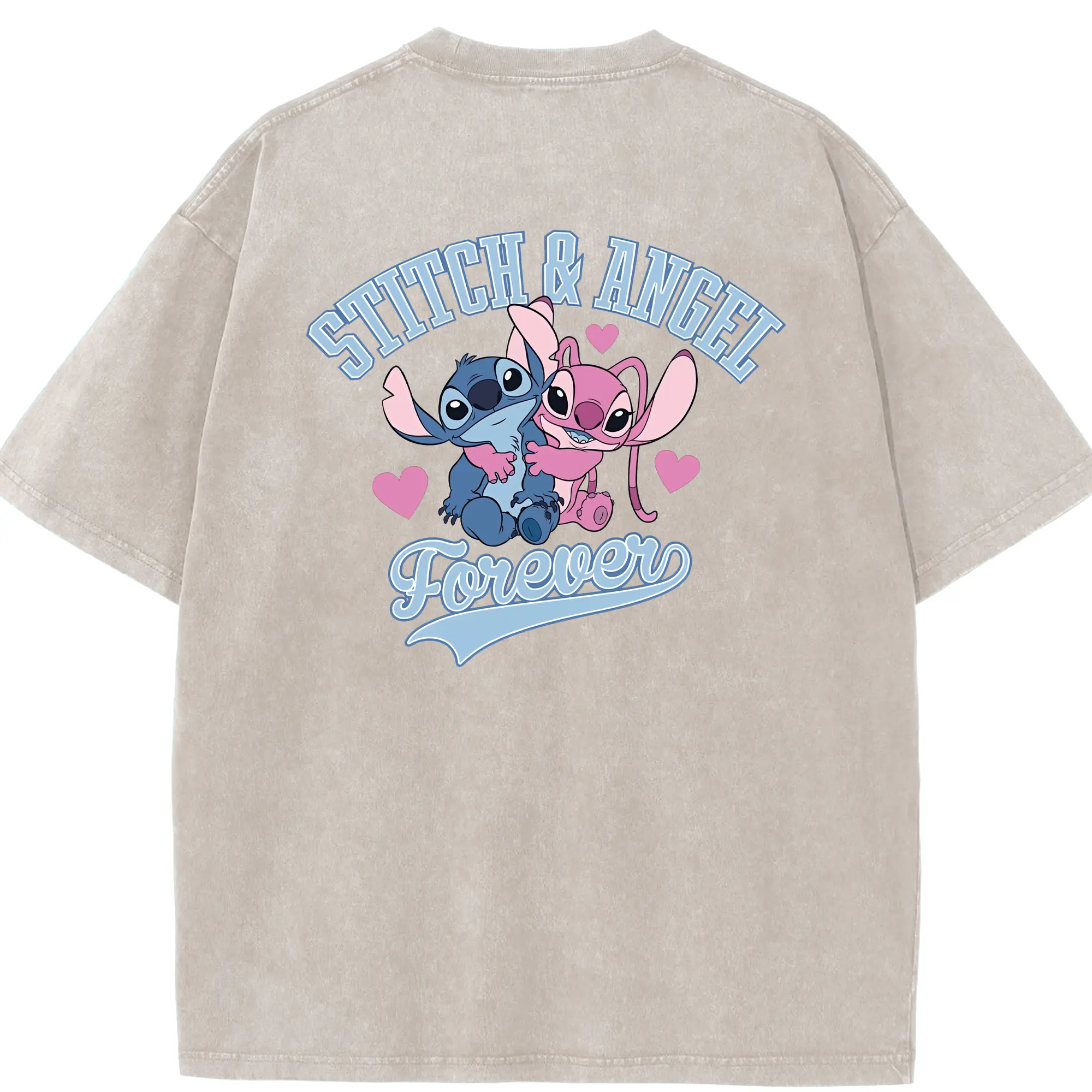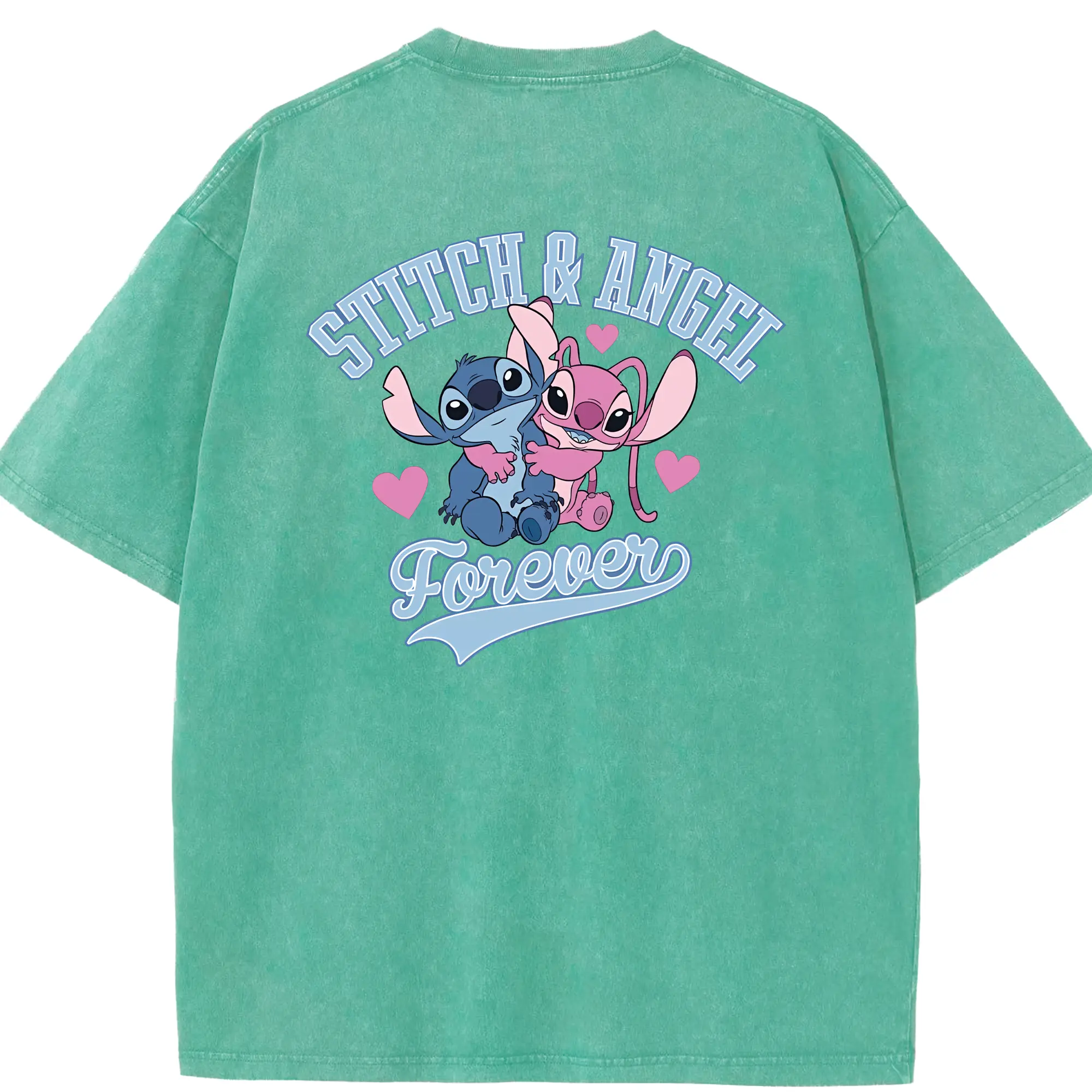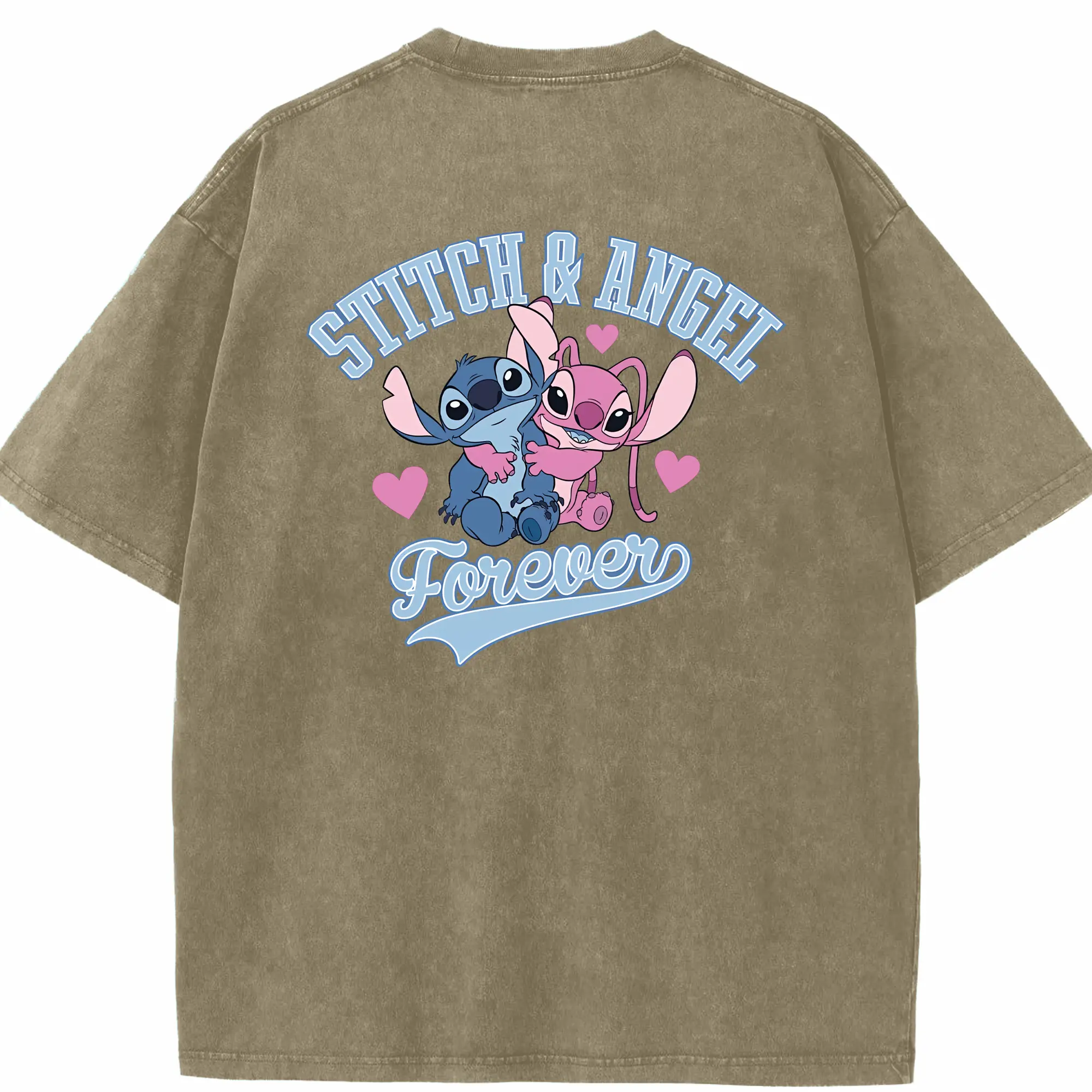 リロ&スティッチ グッズ エンジェル - 綿100% ヴィンテージ風 半袖Tシャツ ・ フロントプリント ・ 柔らか肌触り ・ 通気性 快適 ・ スポーツ カジュアル 外出用