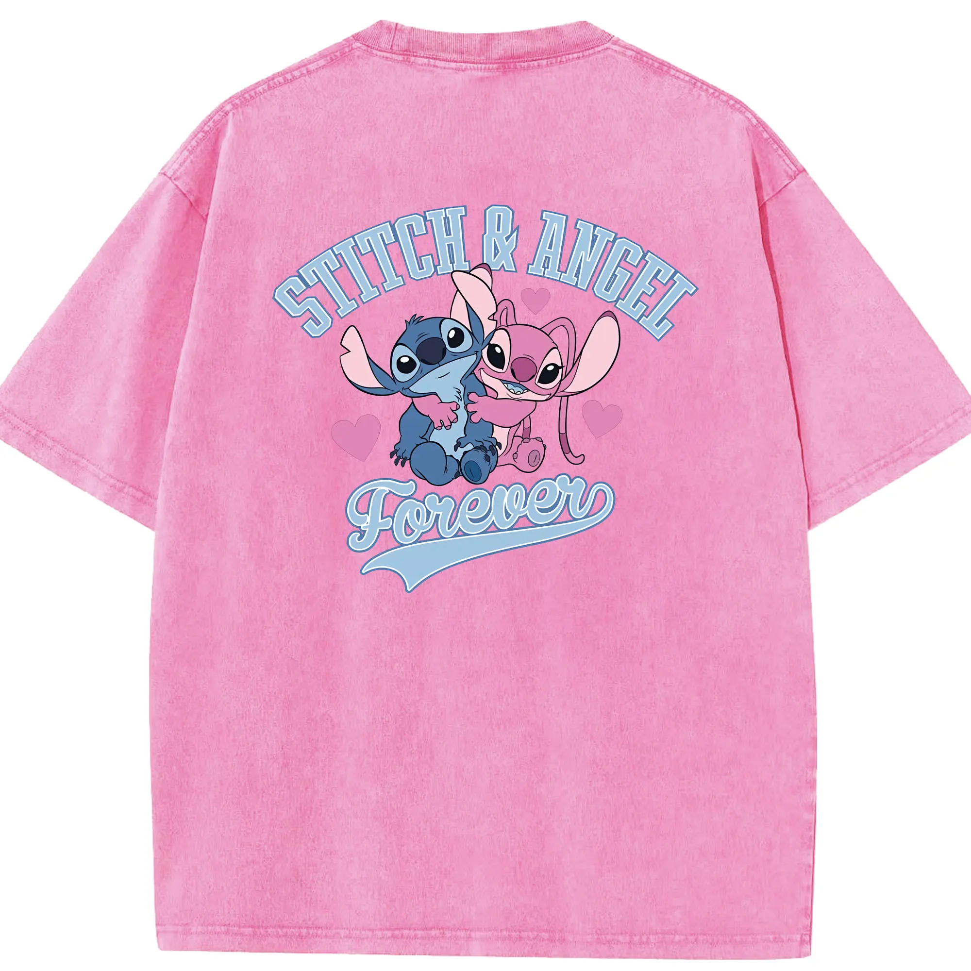 リロ&スティッチ グッズ エンジェル - 綿100% 半袖Tシャツ ・ バックプリント ・ 快適 通気性 ・ 日常使い 散歩 スポーツ用