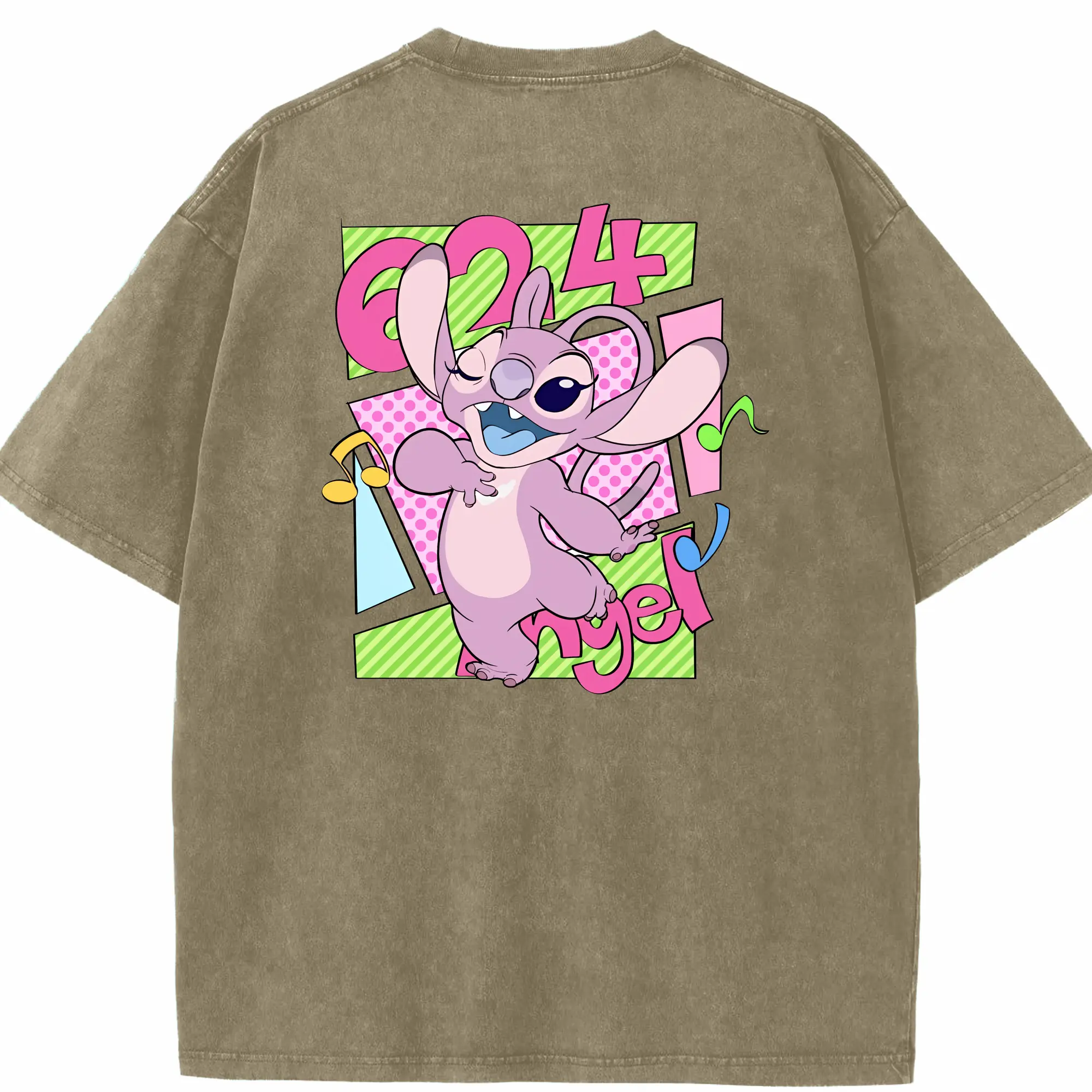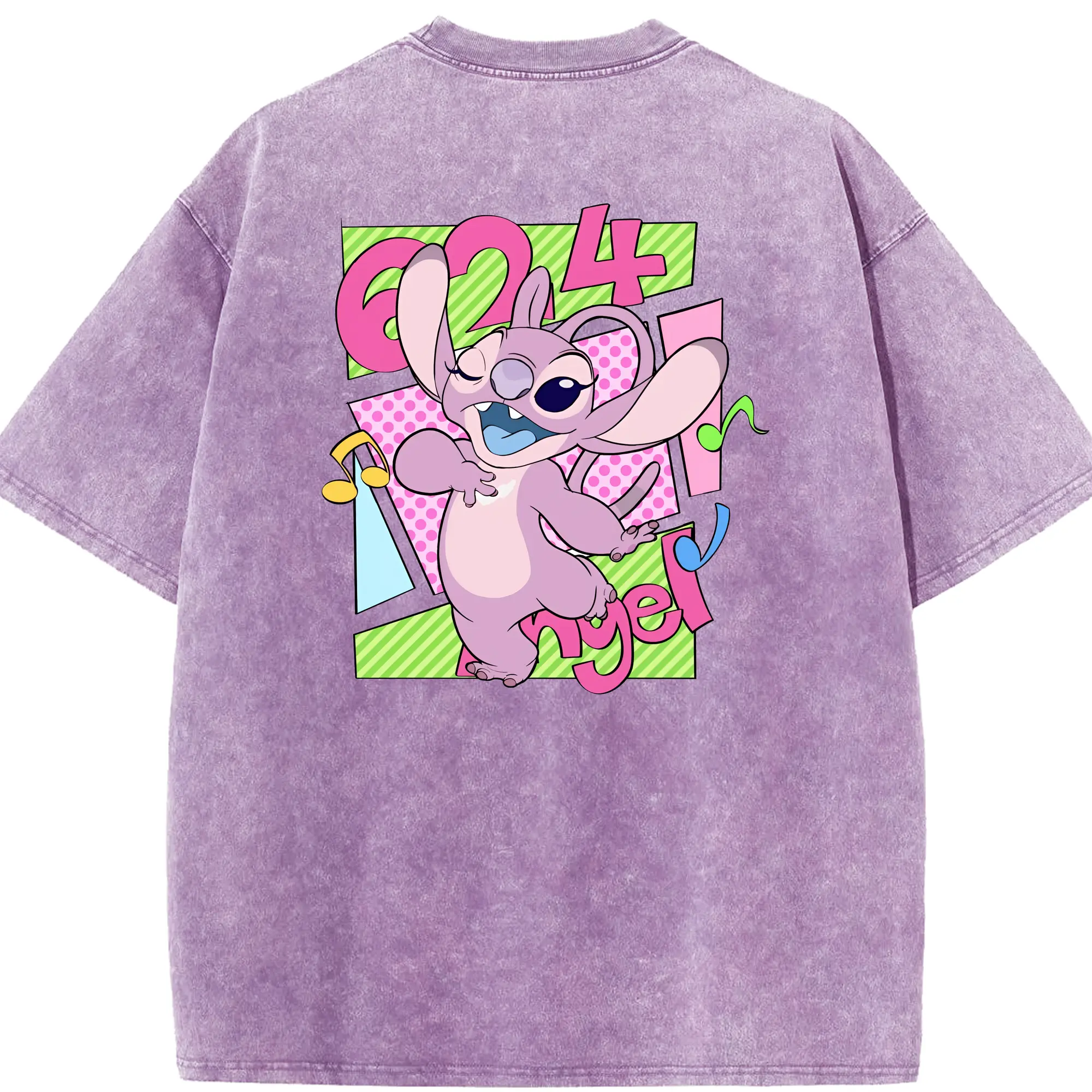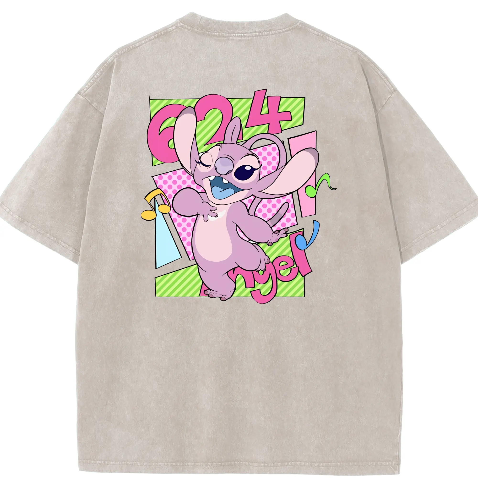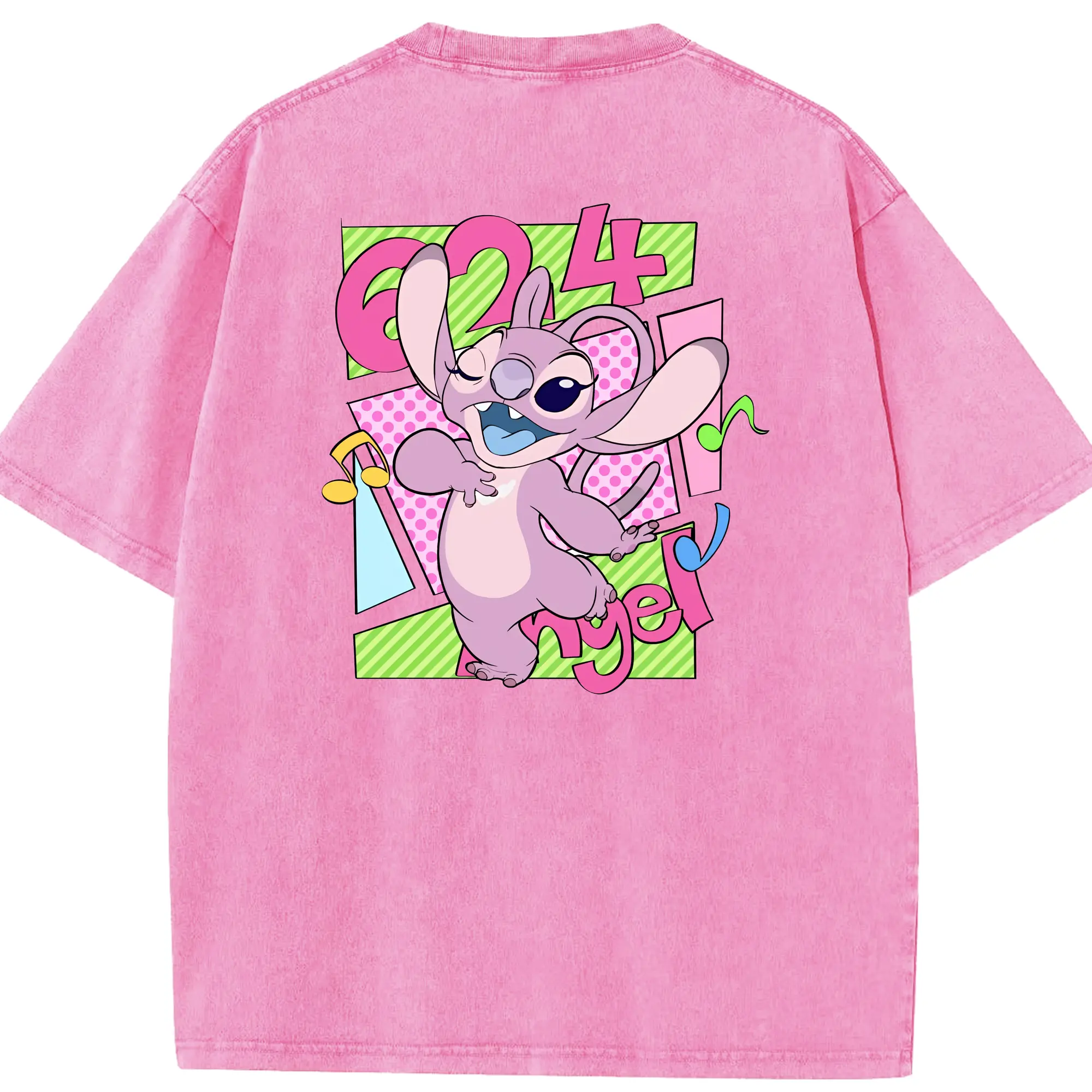 リロ&スティッチ グッズ エンジェル - 綿100% ヴィンテージ風 半袖Tシャツ ・ フロントプリント ・ 柔らか肌触り ・ 通気性 快適 ・ スポーツ カジュアル 外出用