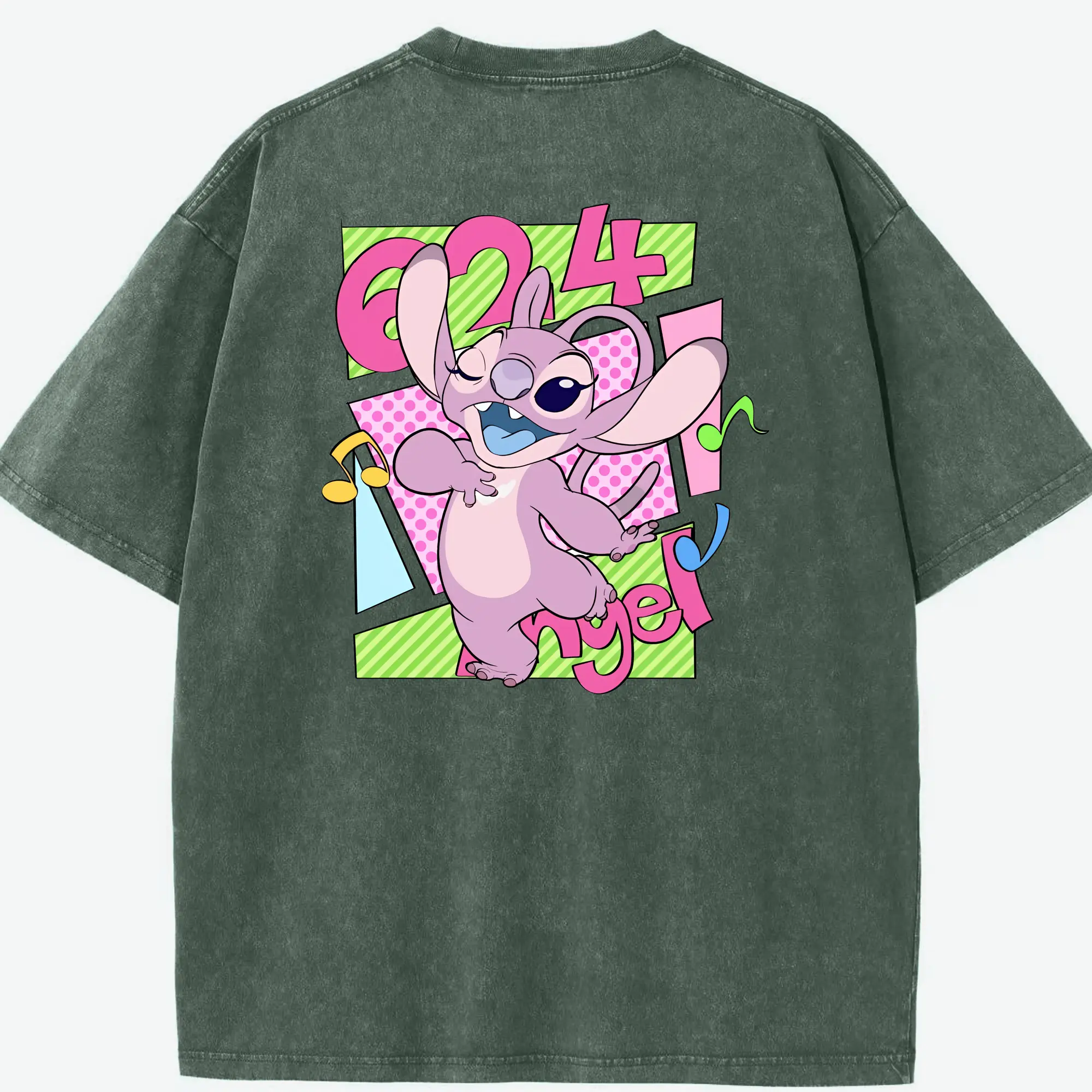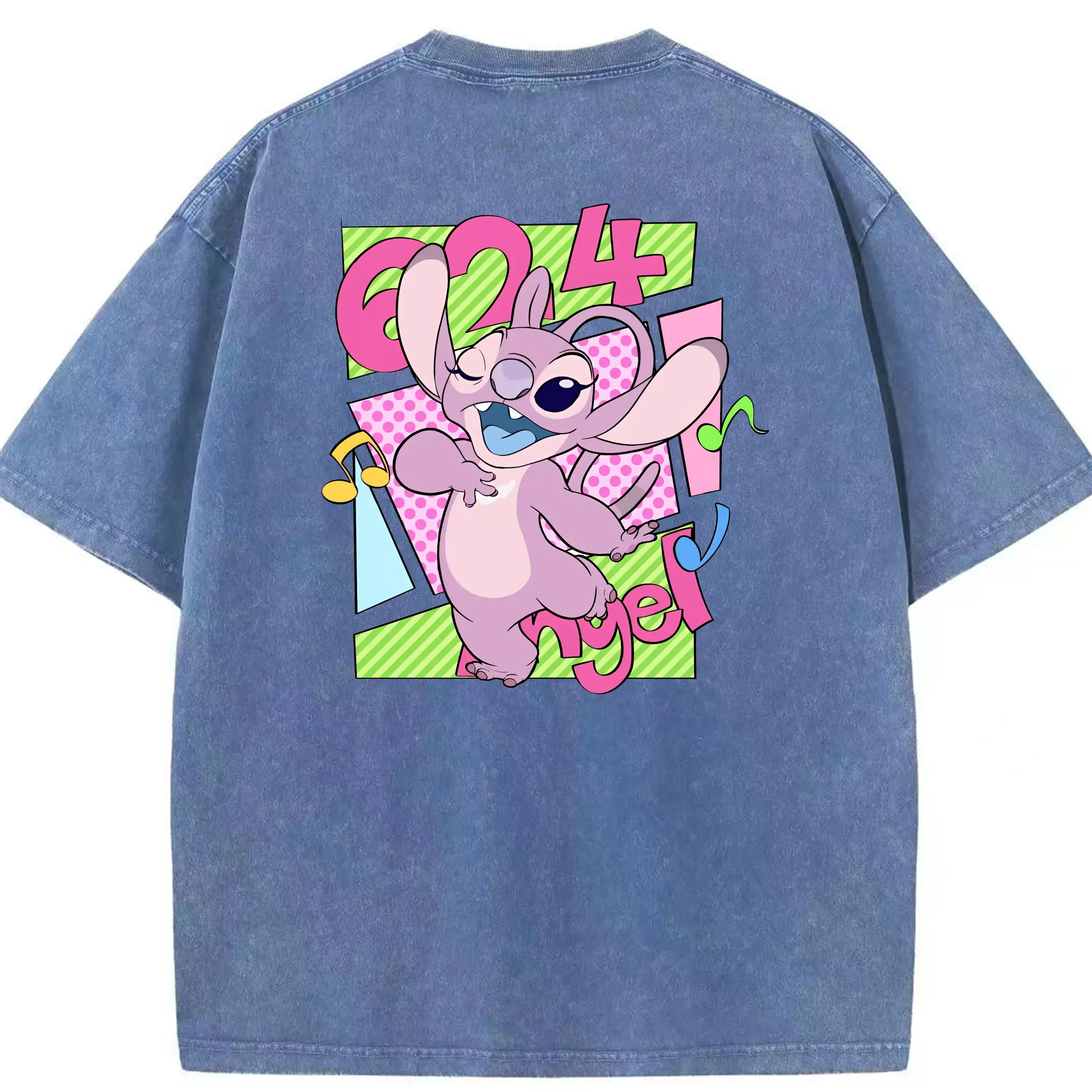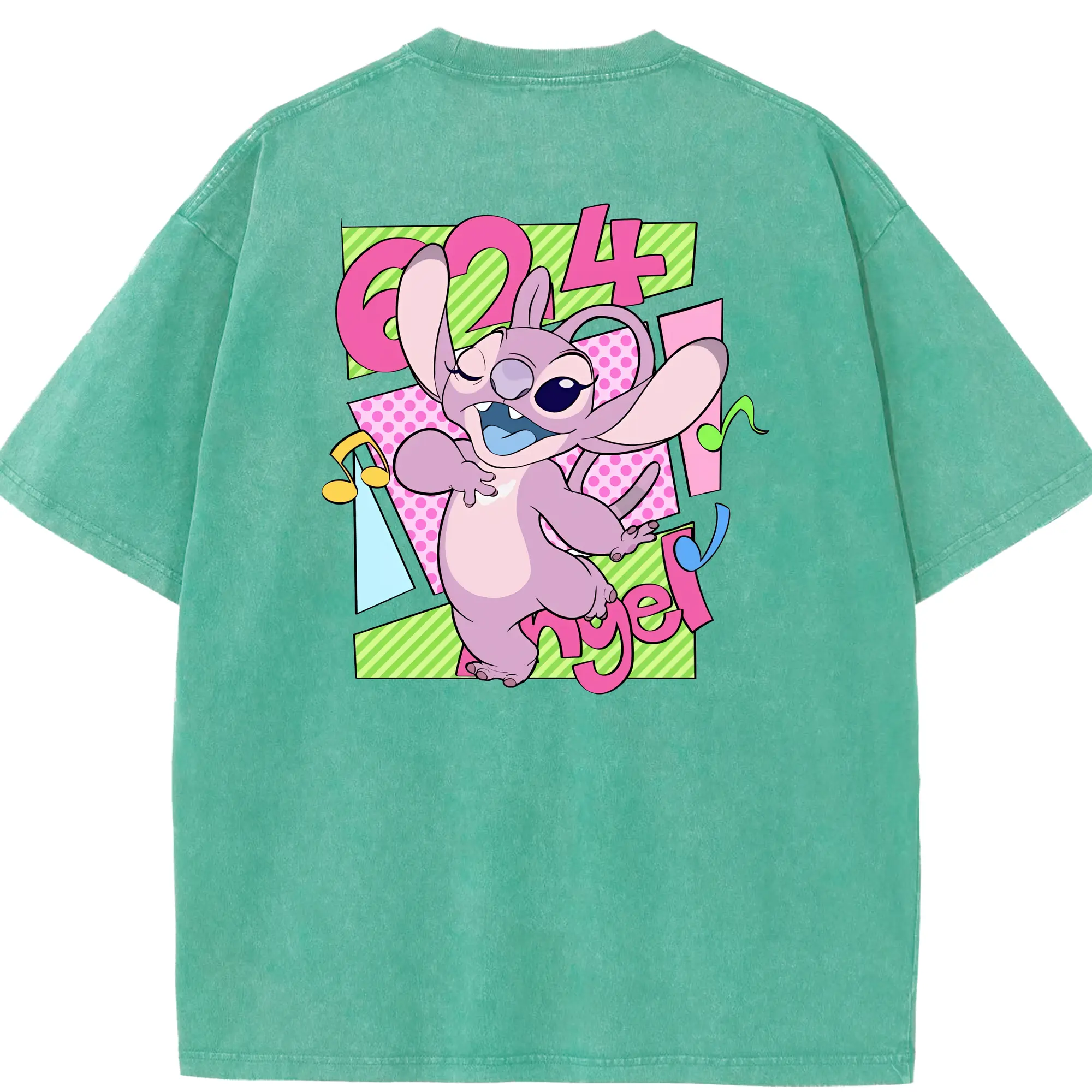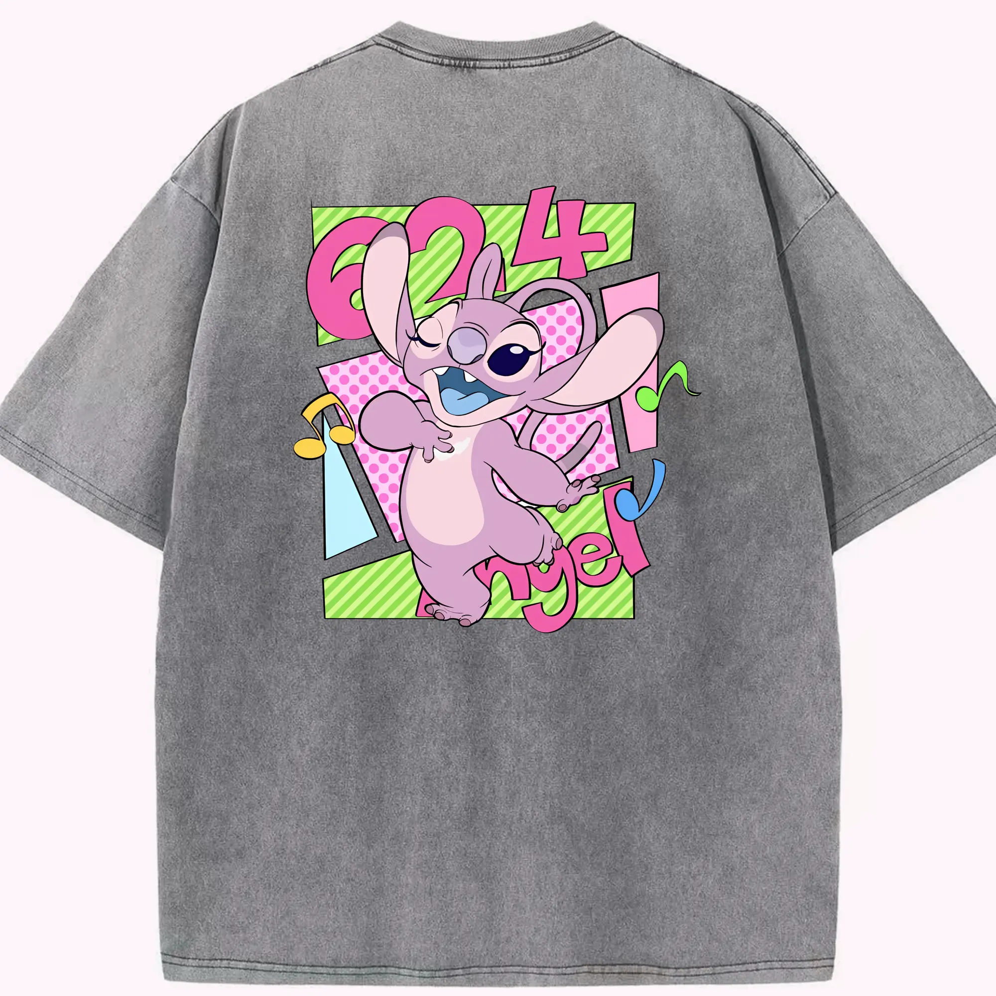 リロ&スティッチ グッズ エンジェル - 綿100% ヴィンテージ風 半袖Tシャツ ・ フロントプリント ・ 柔らか肌触り ・ 通気性 快適 ・ スポーツ カジュアル 外出用