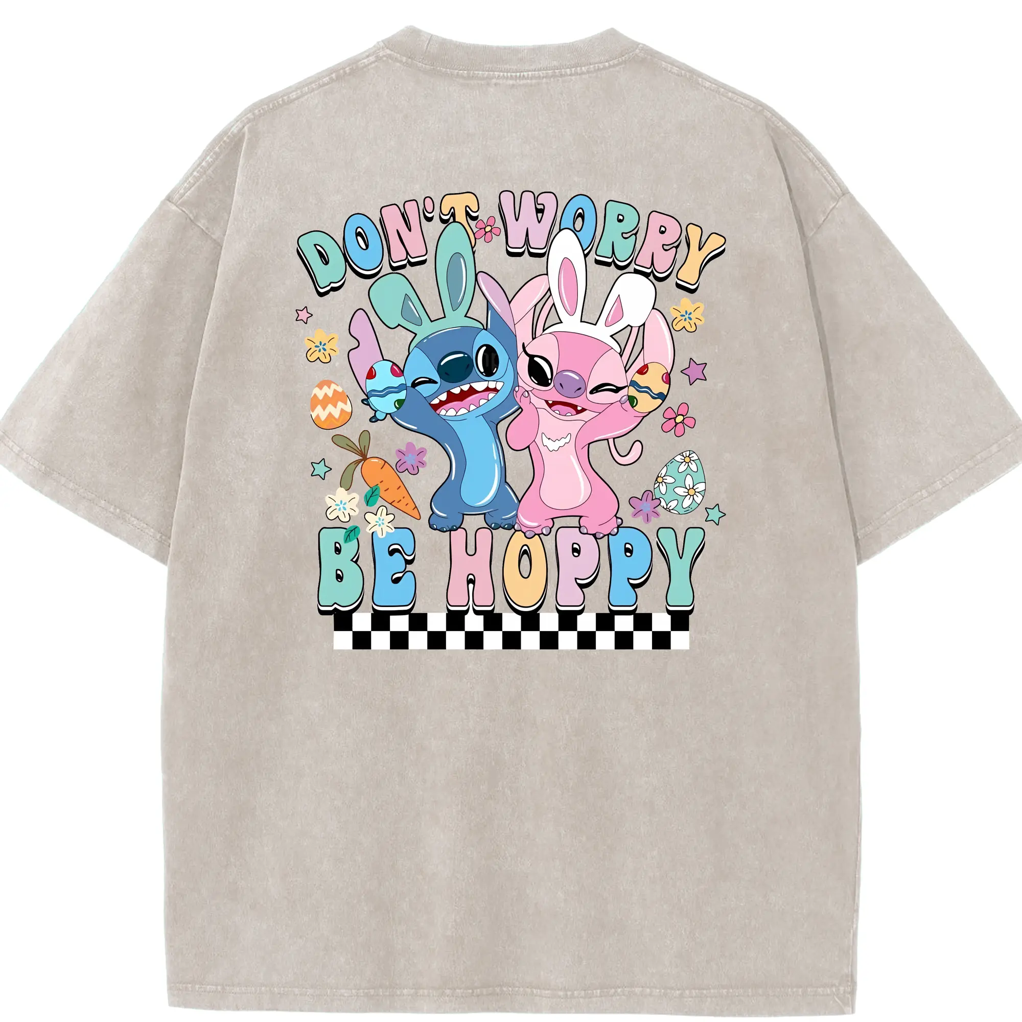 リロ&スティッチ グッズ エンジェル - 綿100% 半袖Tシャツ ・ バックプリント ・ 快適 通気性 ・ 日常使い 散歩 スポーツ用