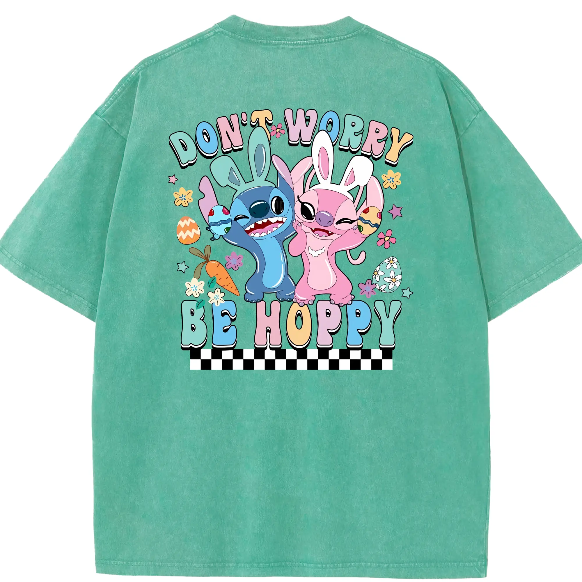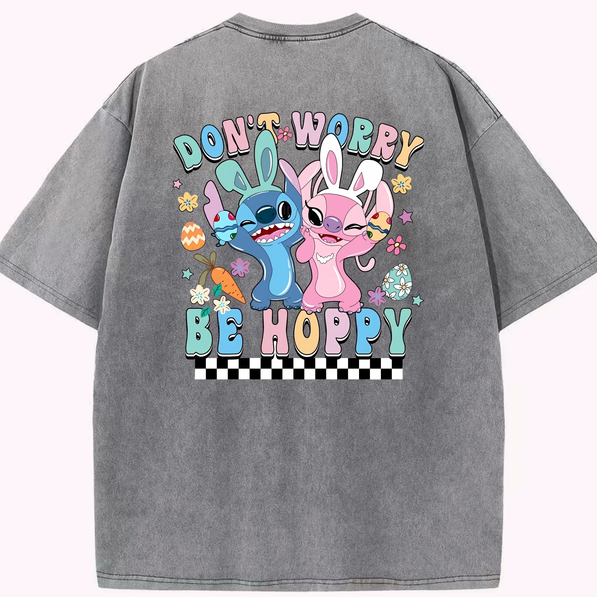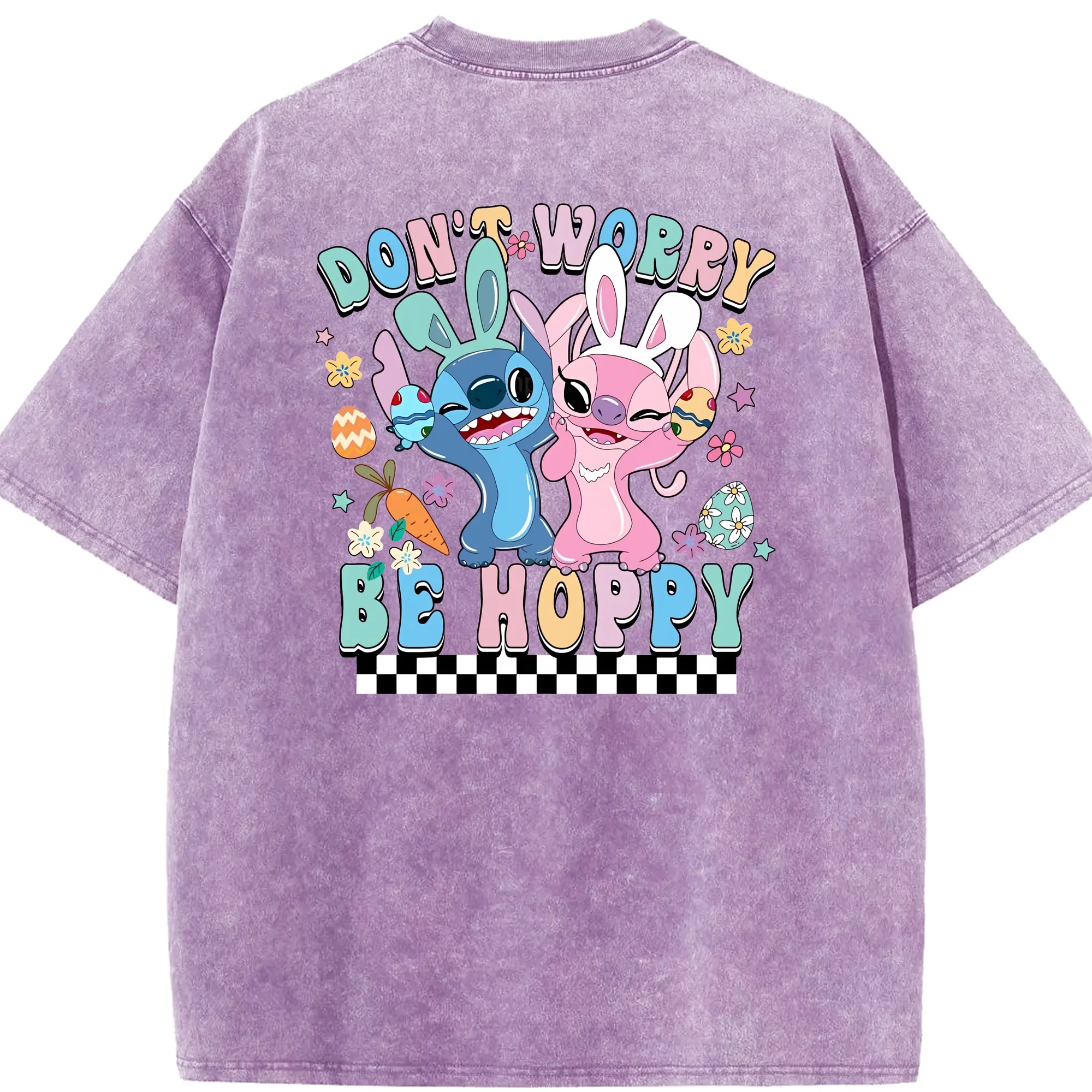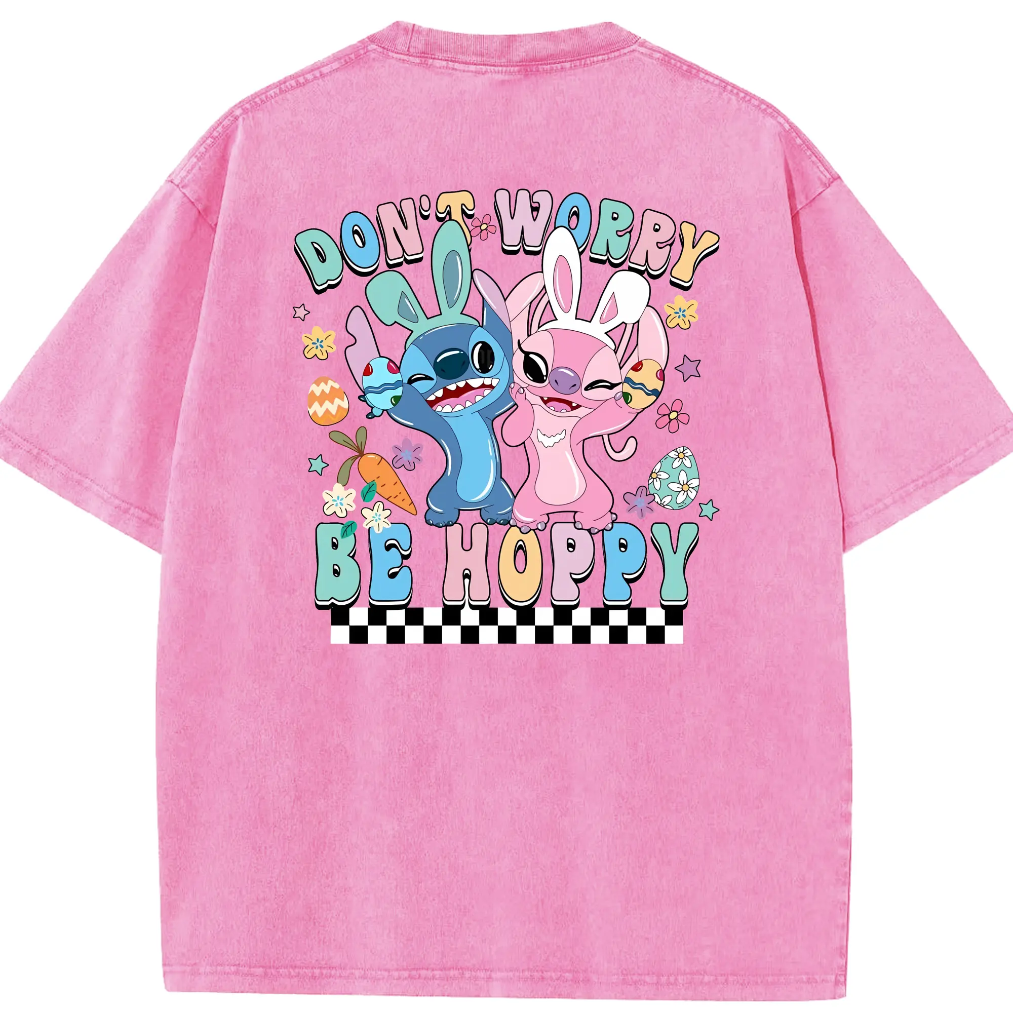リロ&スティッチ グッズ エンジェル - 綿100% 半袖Tシャツ ・ フロントプリント ・ 快適 通気性 ・ 日常使い 散歩 スポーツ用