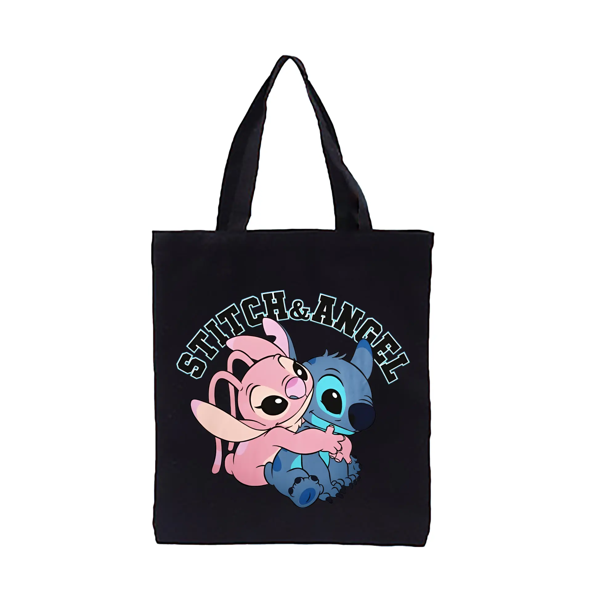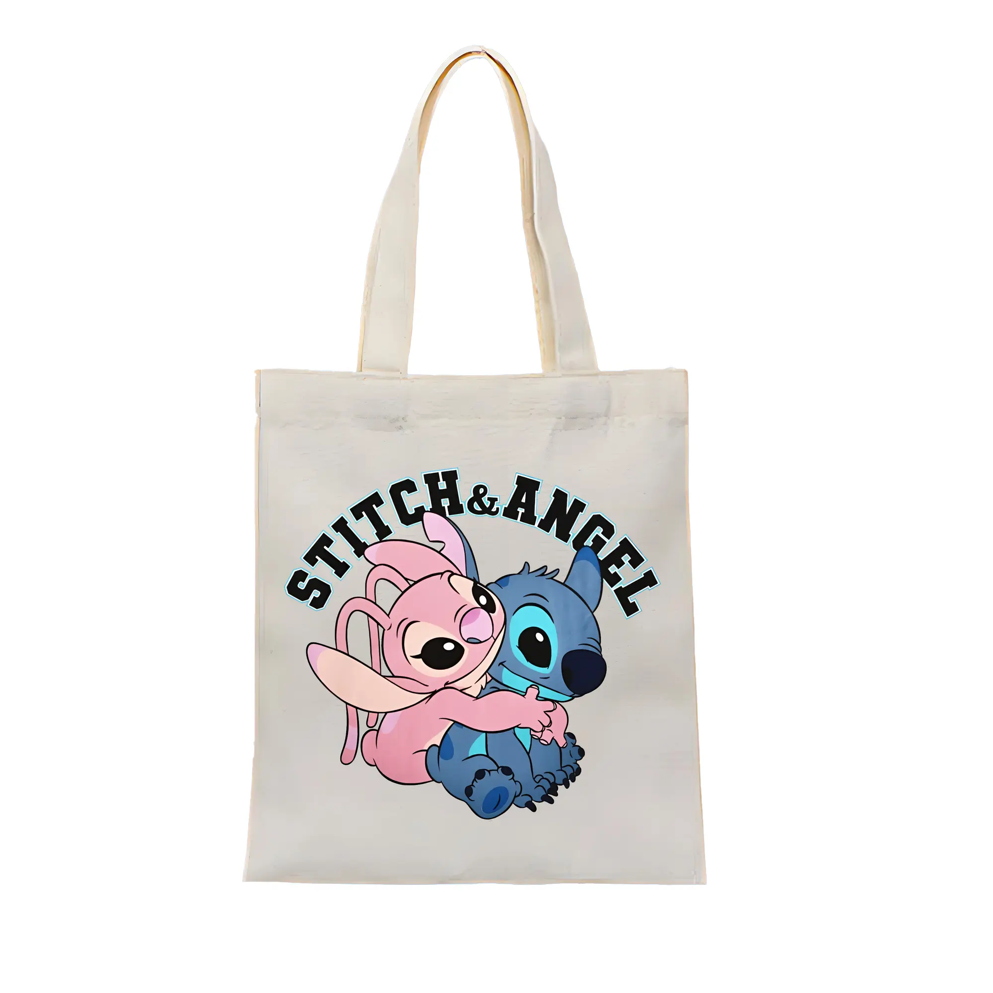 リロ&スティッチ グッズ エンジェル - 縦型キャンバス手提げバッグ(トートバッグ) ・ キャンバス素材 ・ ショッピング用 ・ 軽量 丈夫 お手入れ簡単