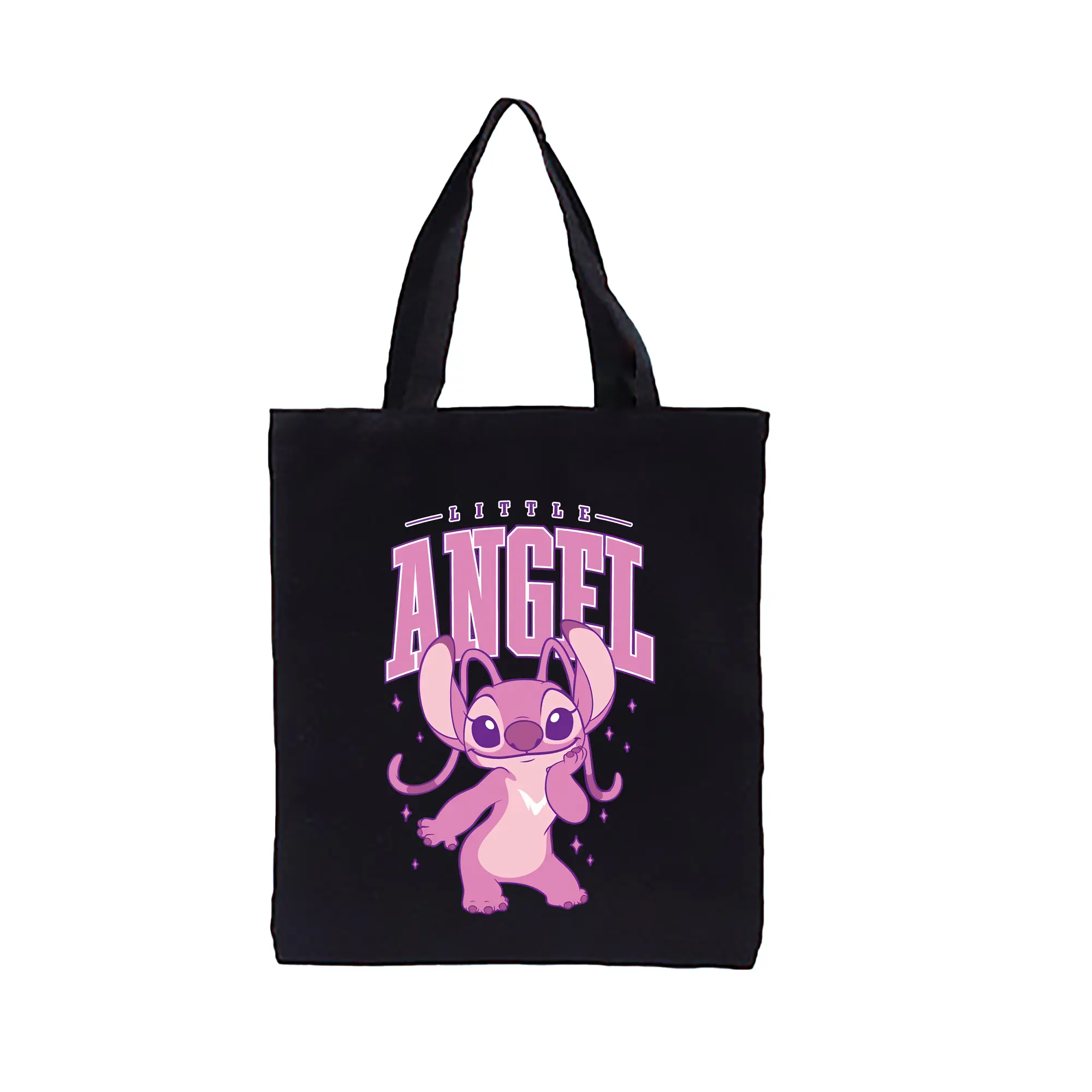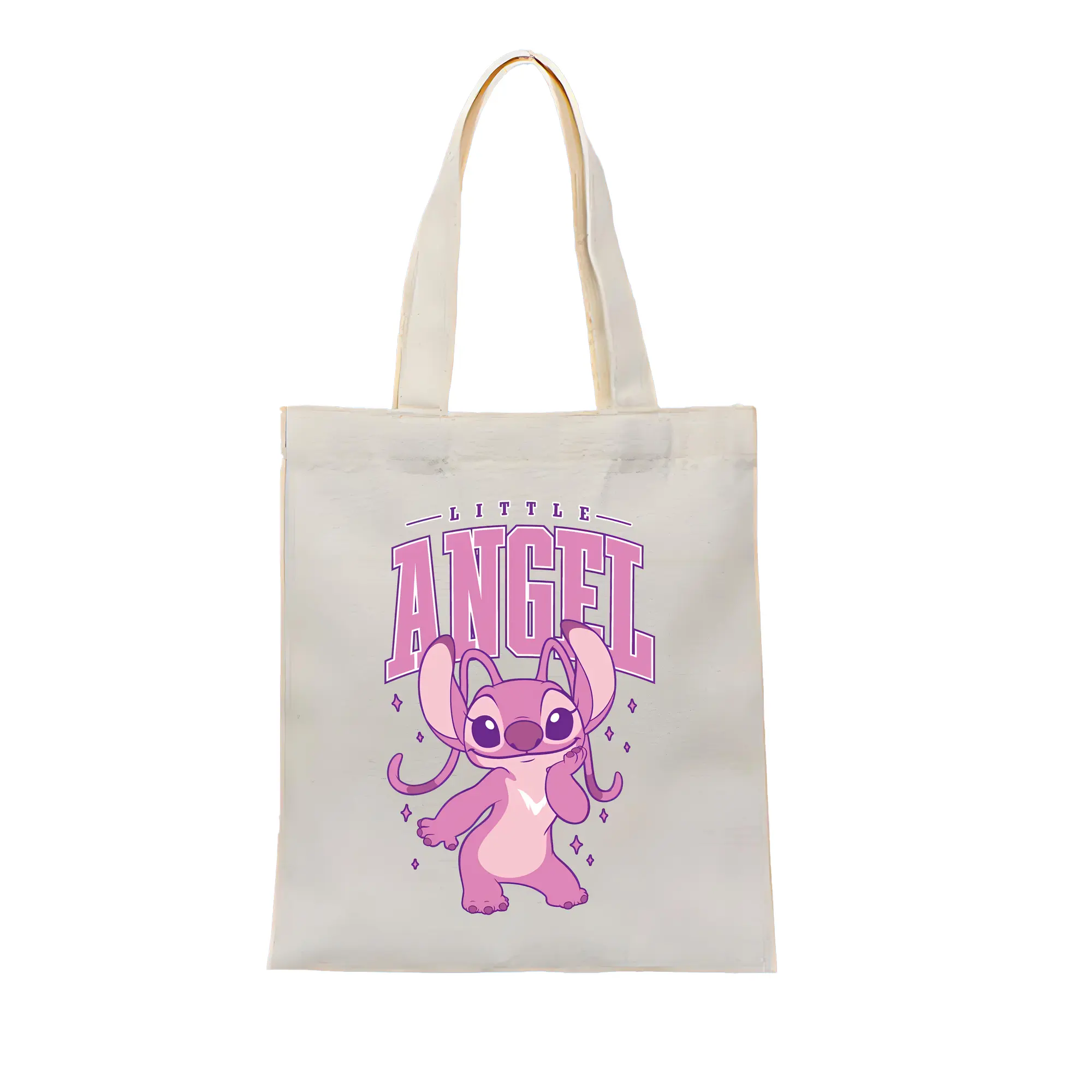 リロ&スティッチ グッズ エンジェル - 縦型キャンバス手提げバッグ(トートバッグ) ・ キャンバス素材 ・ ショッピング用 ・ 軽量 丈夫 お手入れ簡単